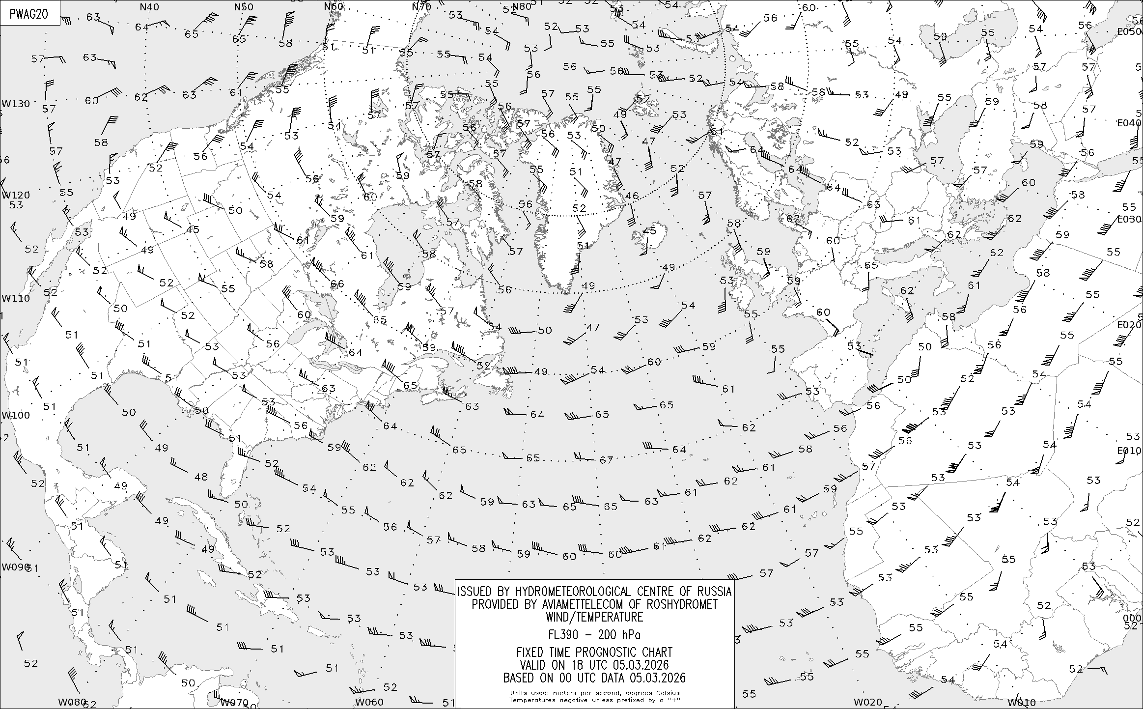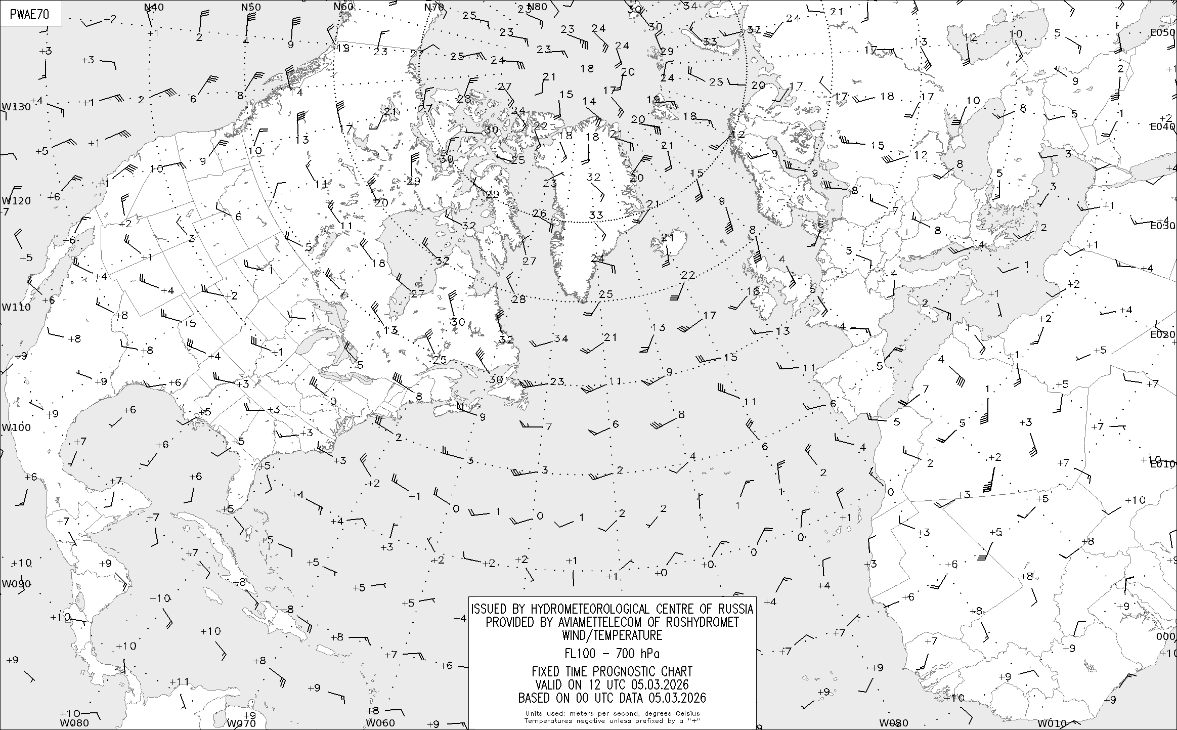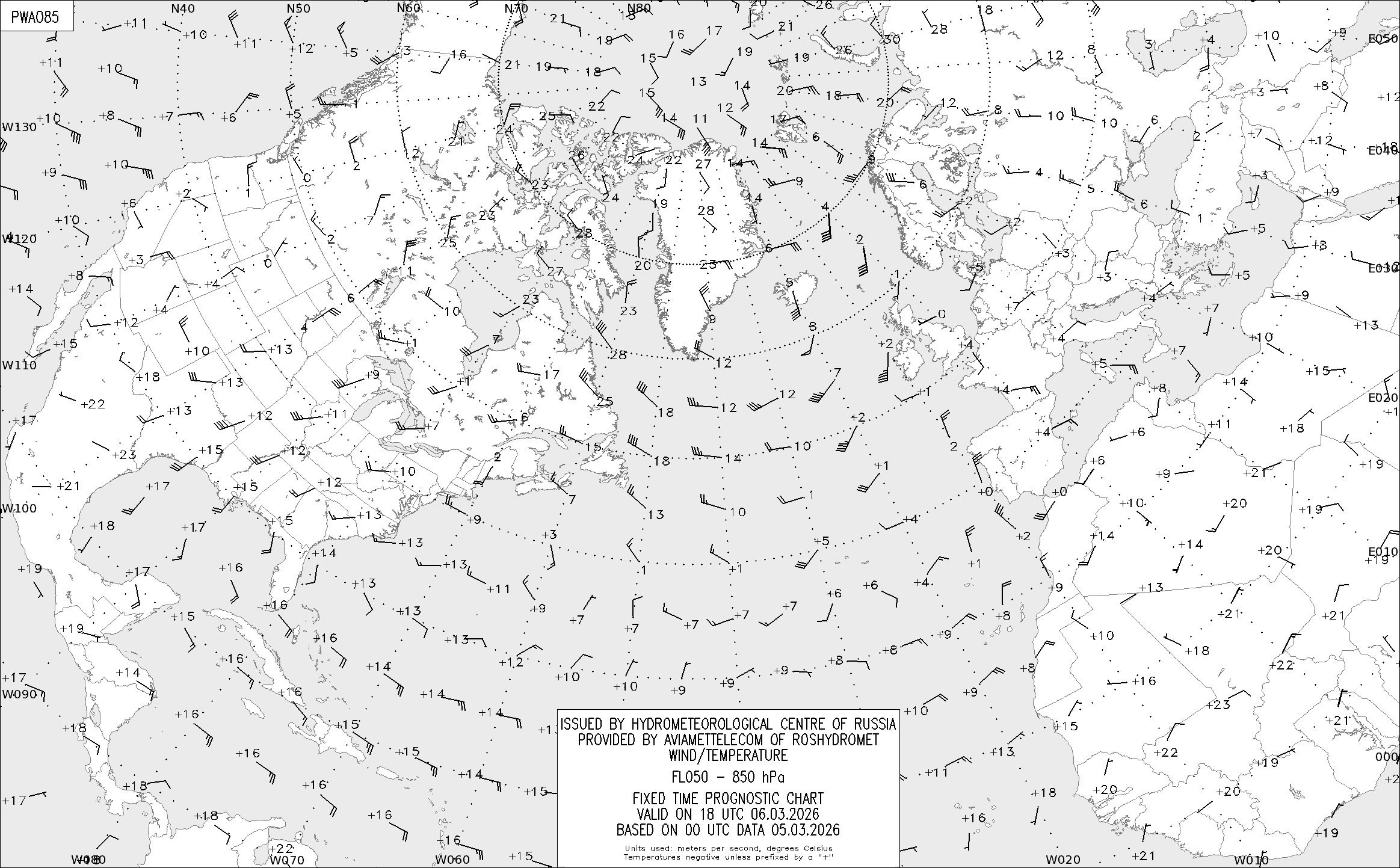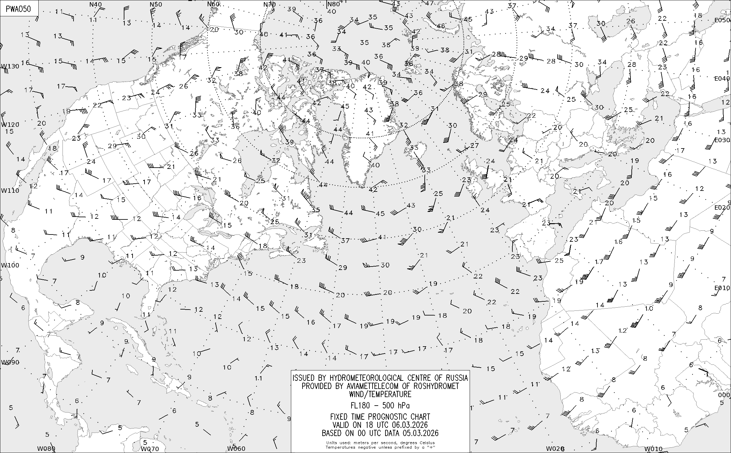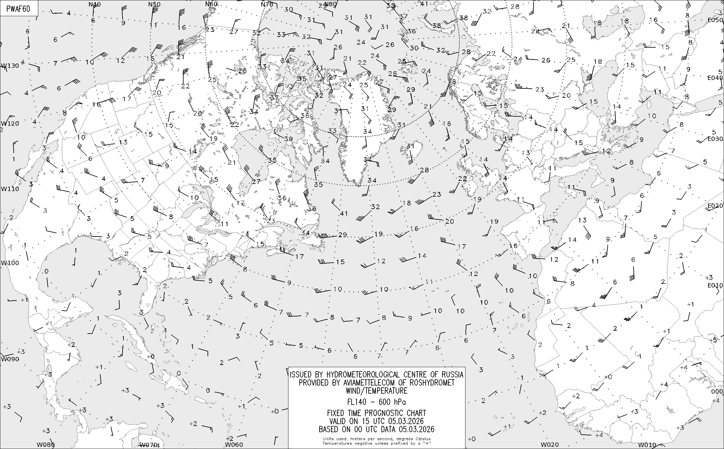 AREA A (Северная Америка и Европа) по данным за 00 UTC 05.03.2026