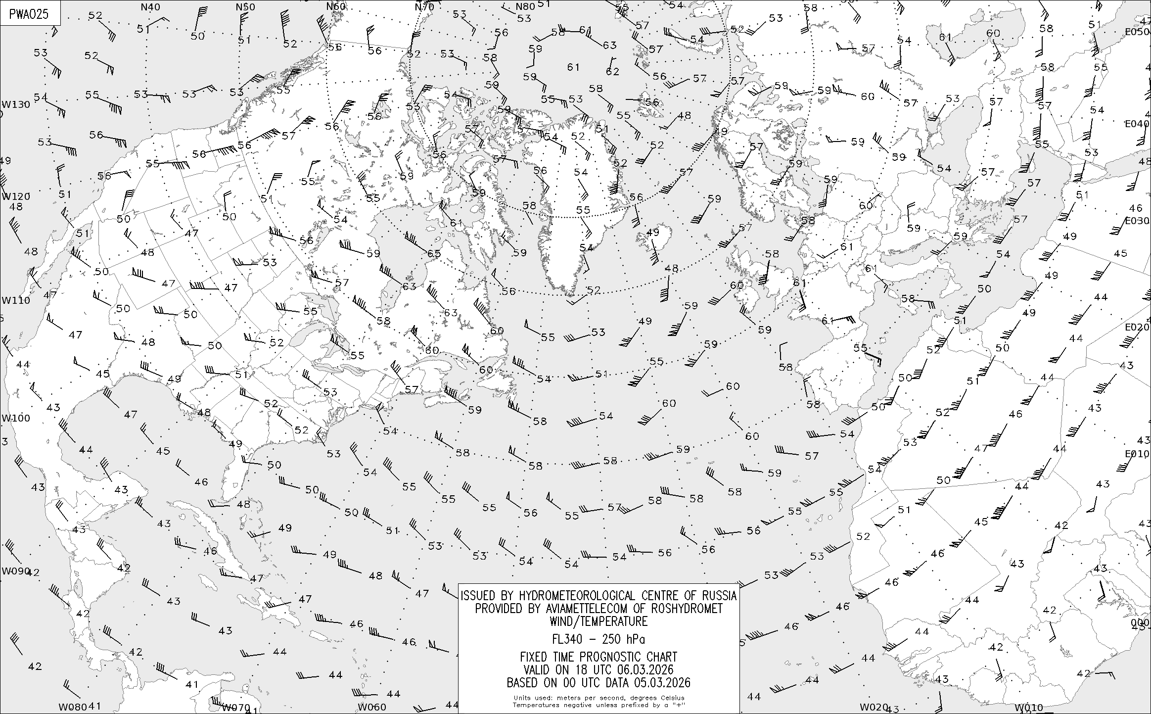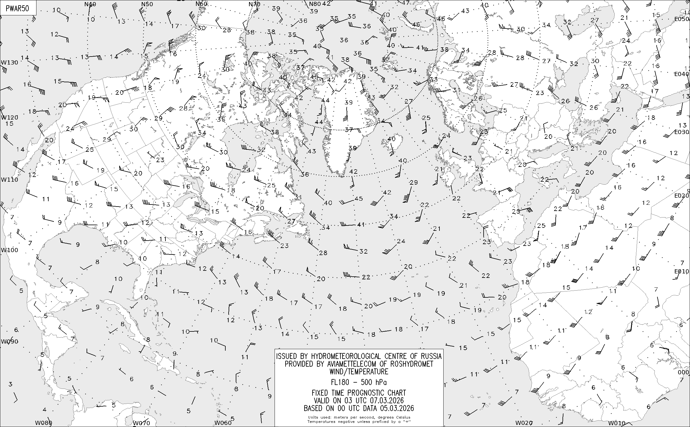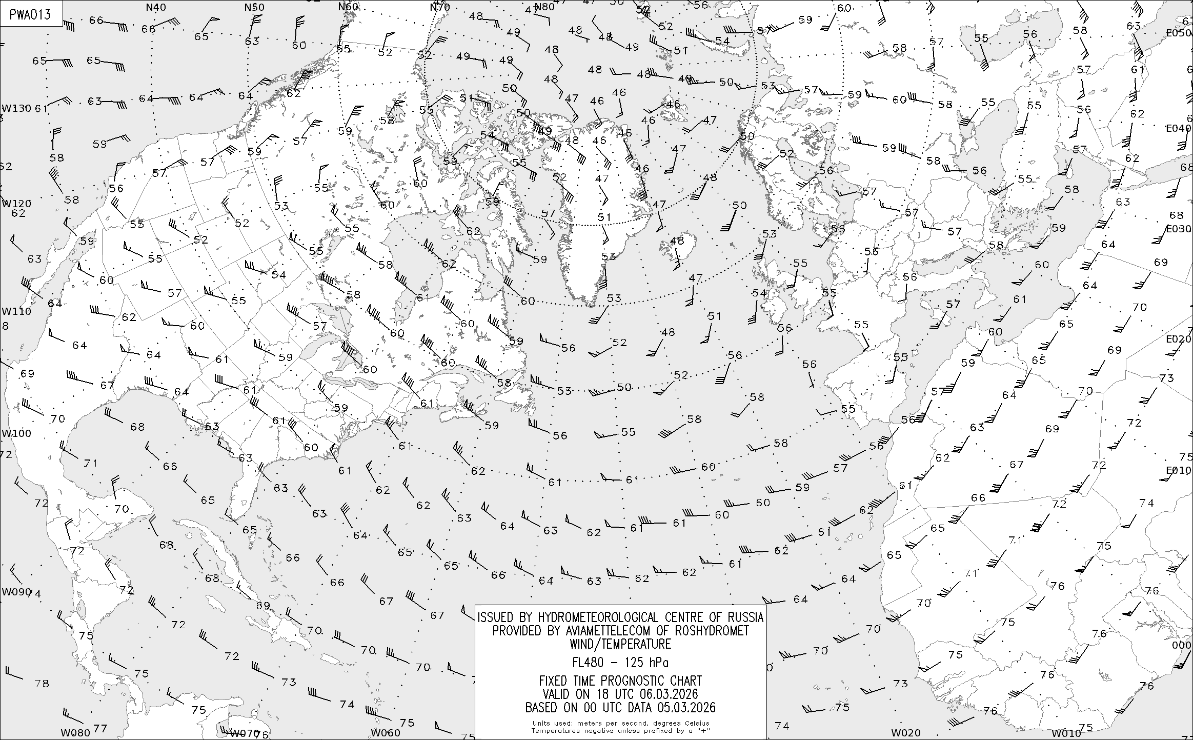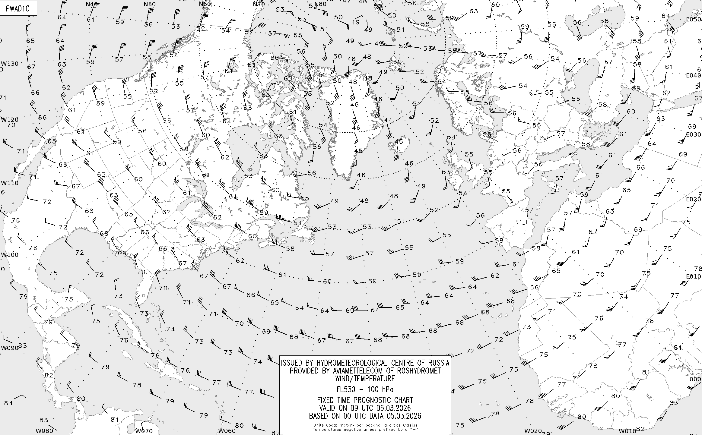 AREA A (Северная Америка и Европа) по данным за 00 UTC 05.03.2026