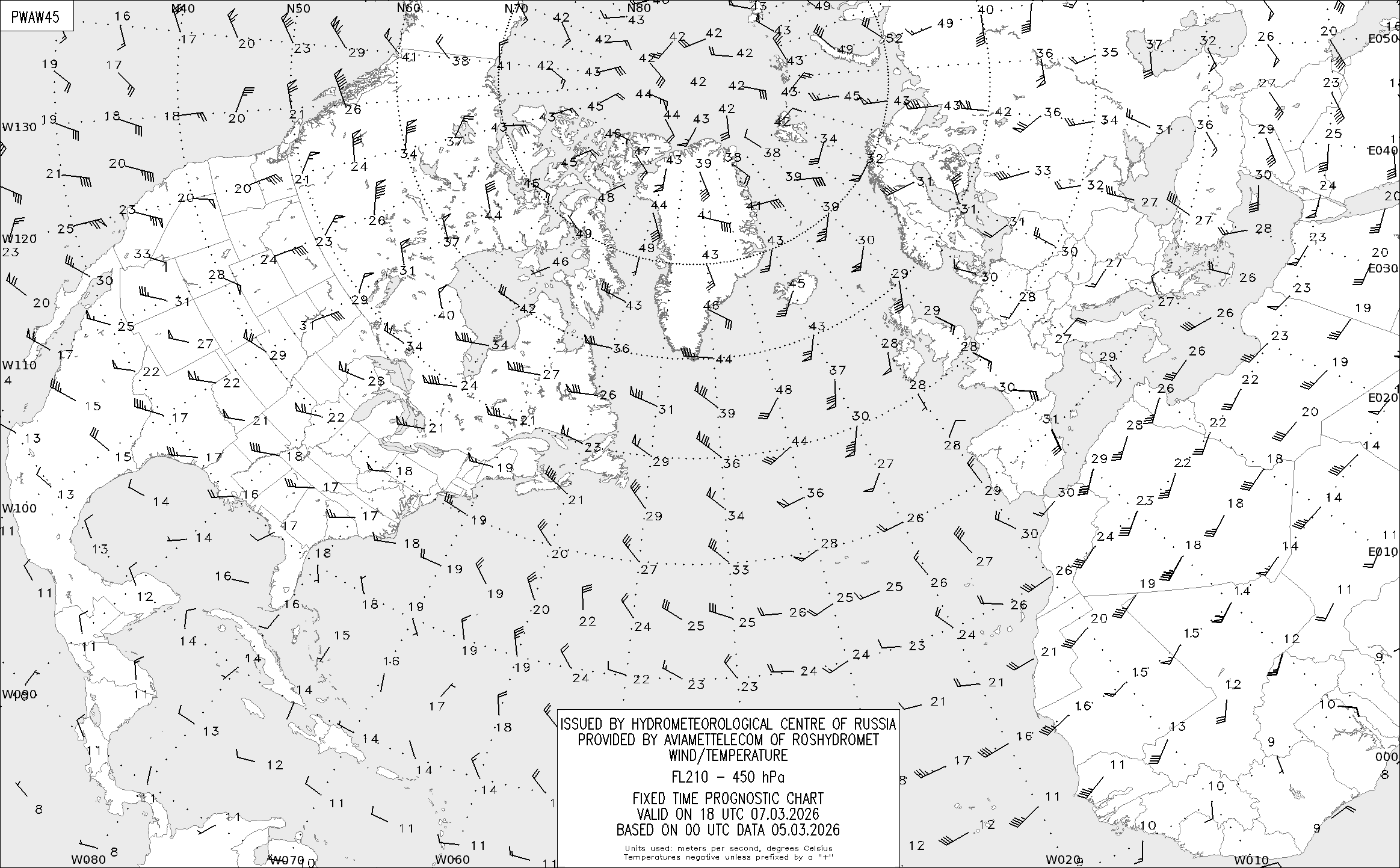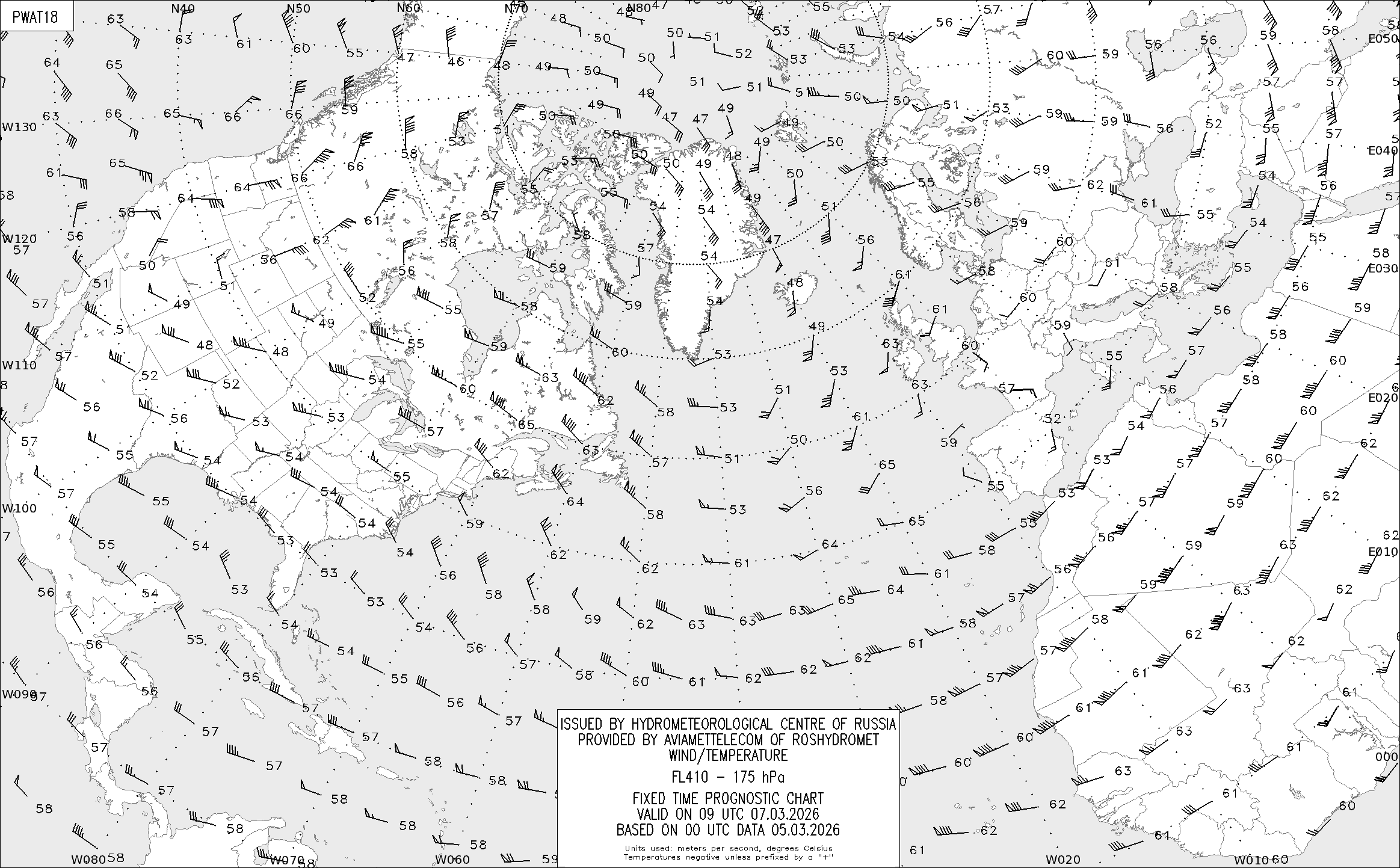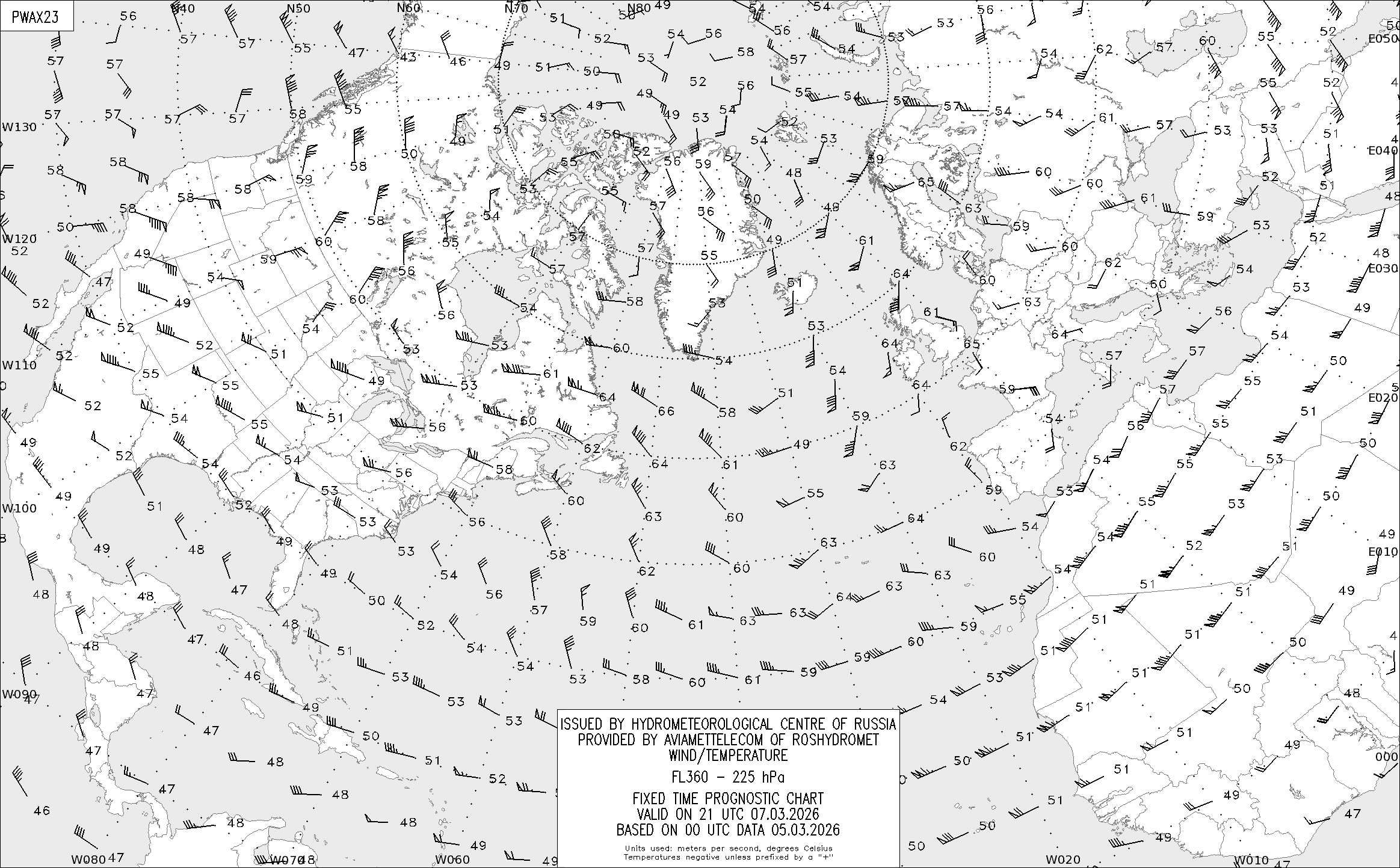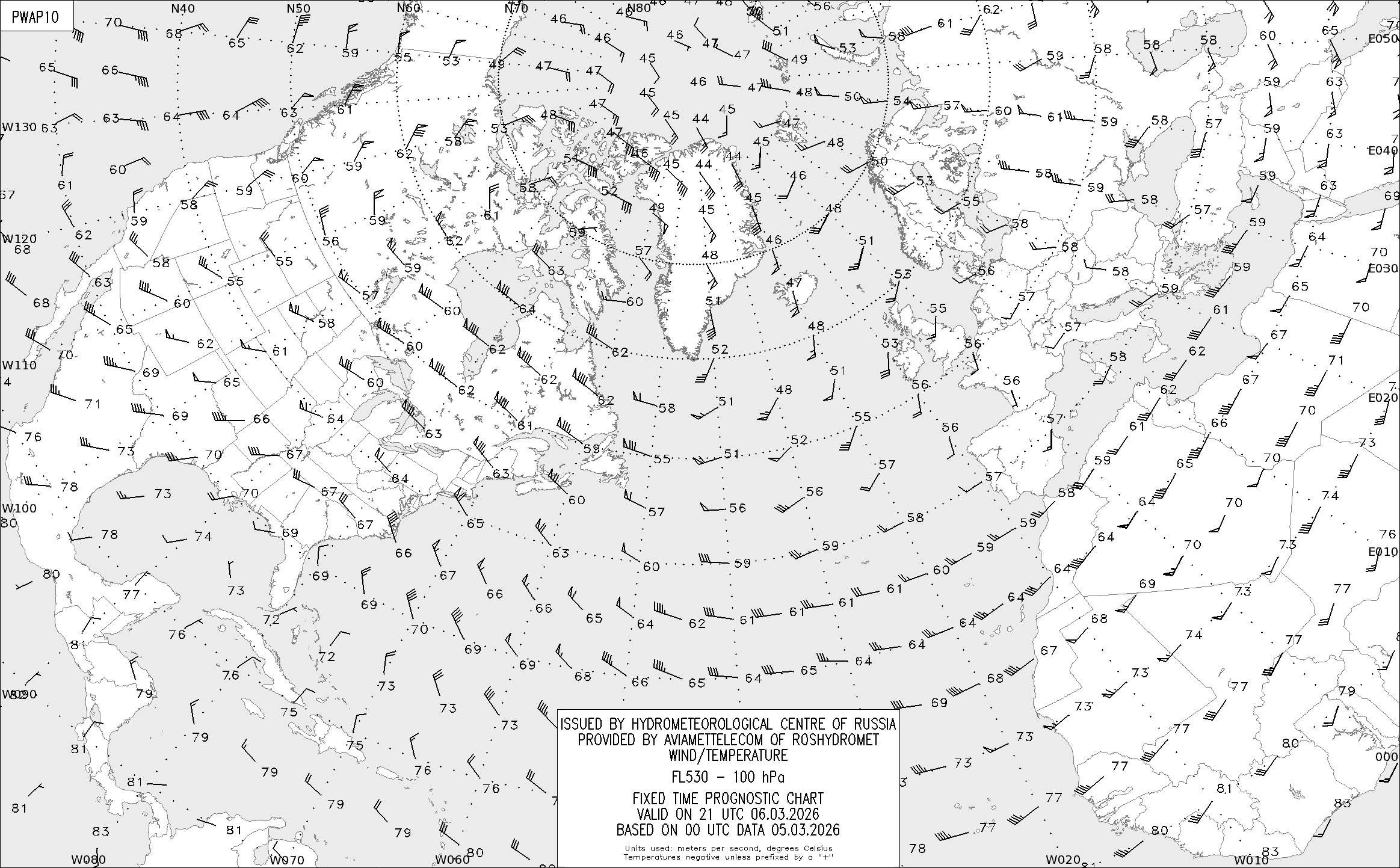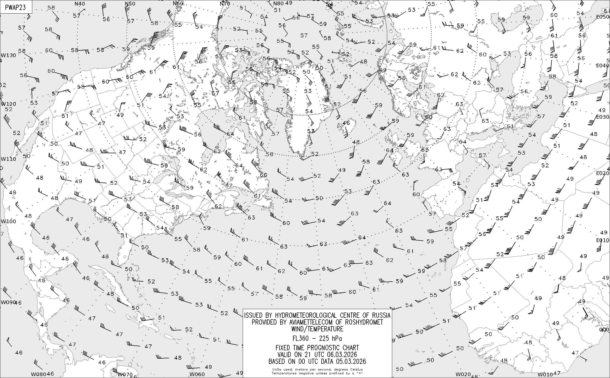 AREA A (Северная Америка и Европа) по данным за 00 UTC 05.03.2026