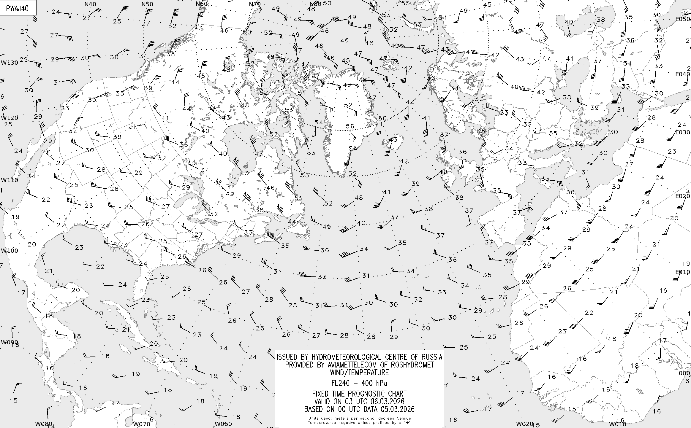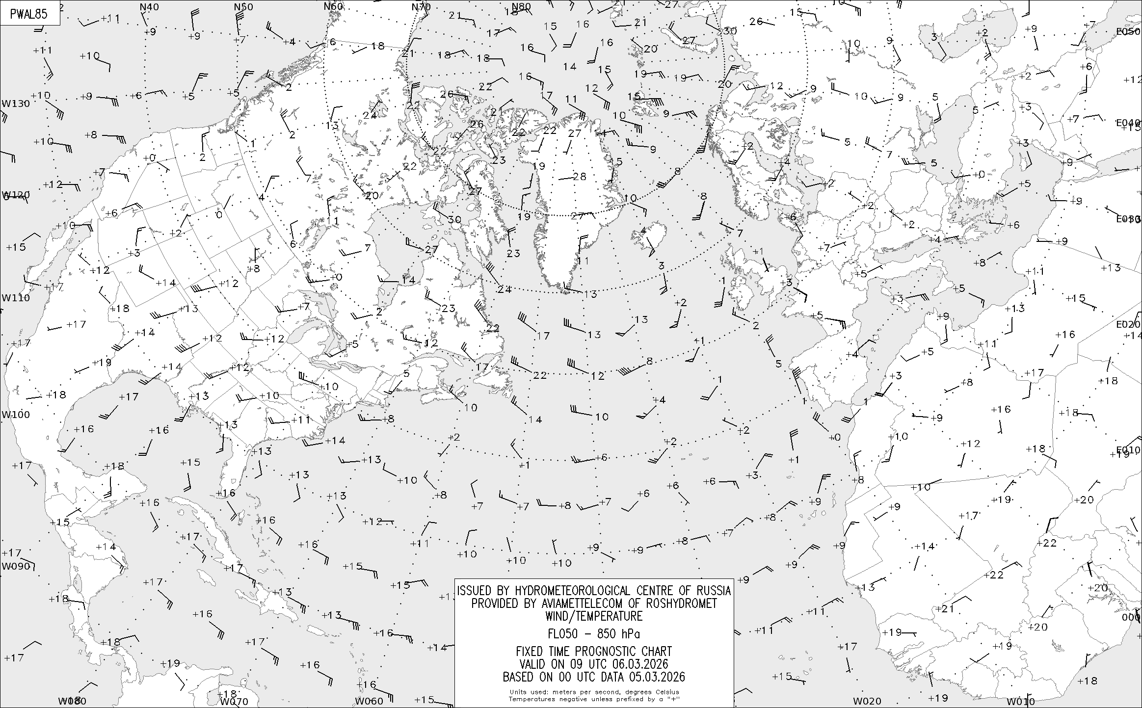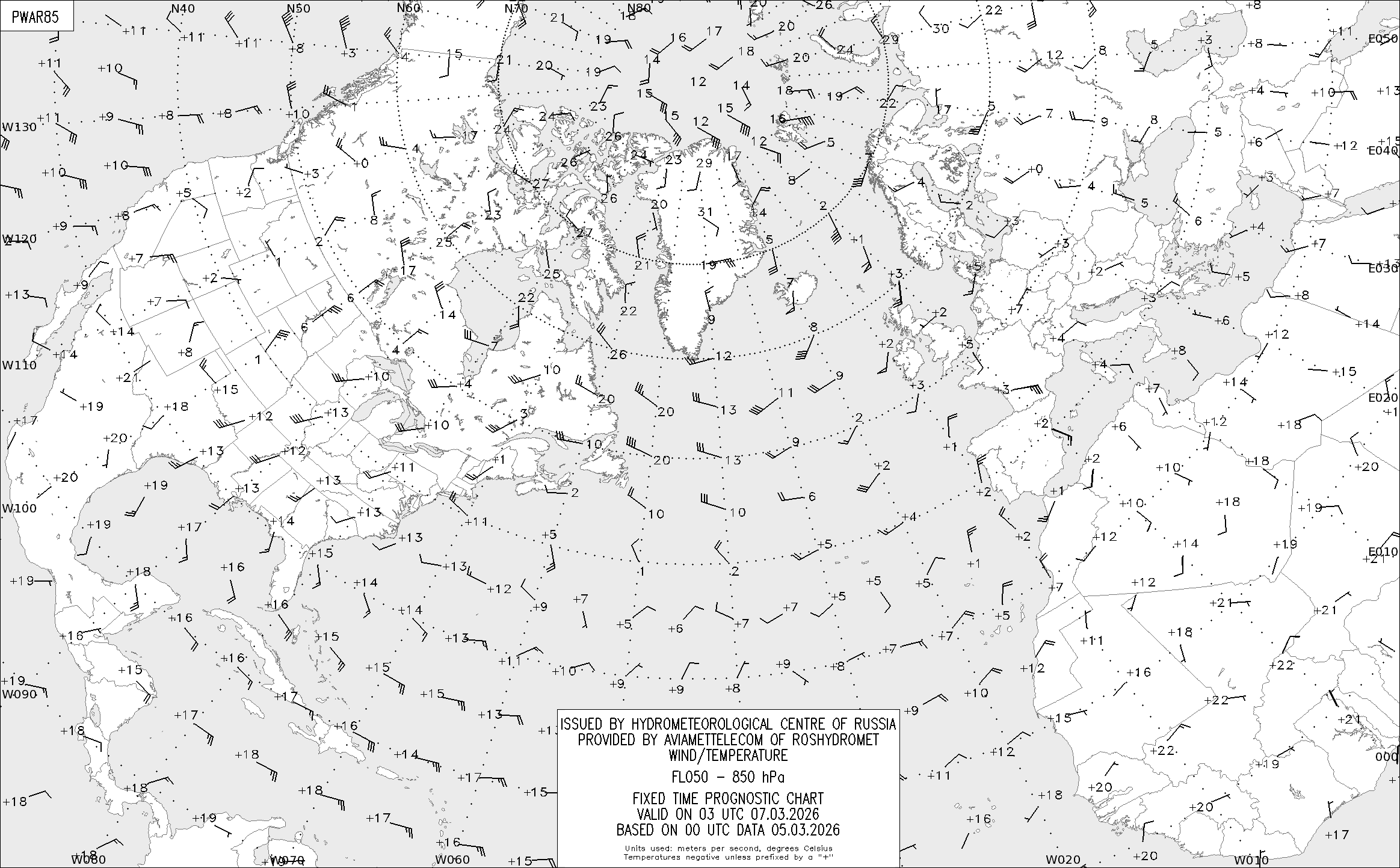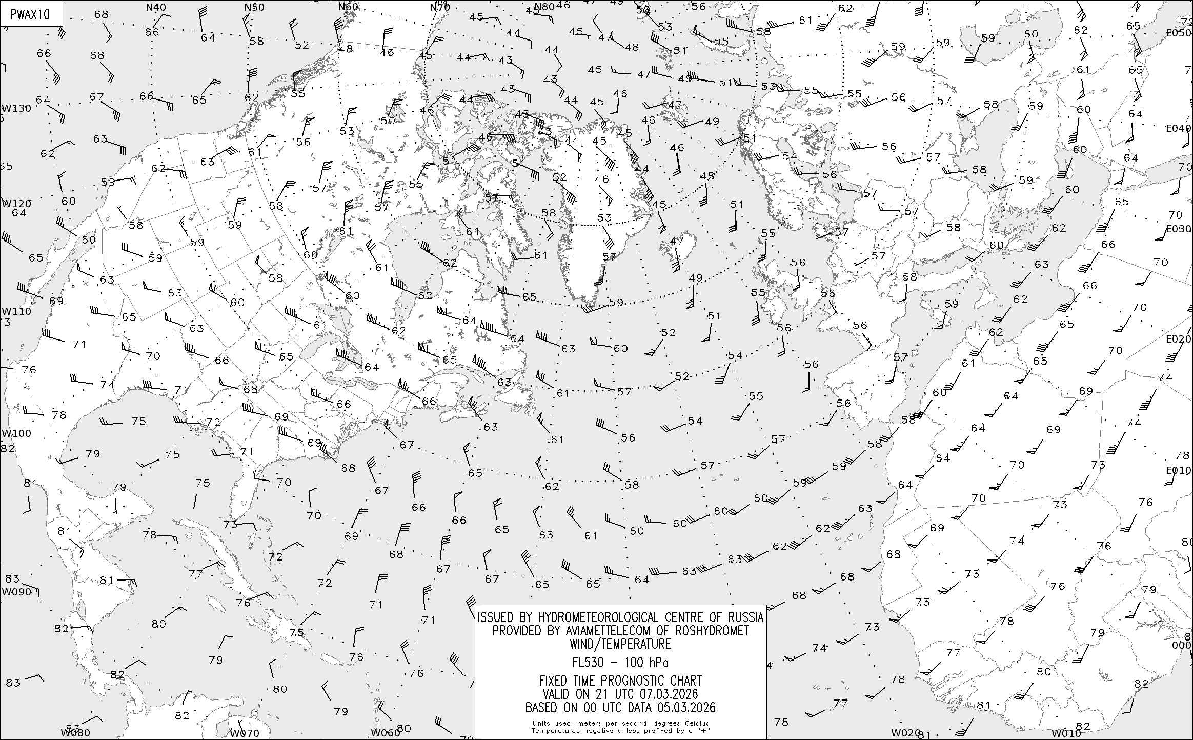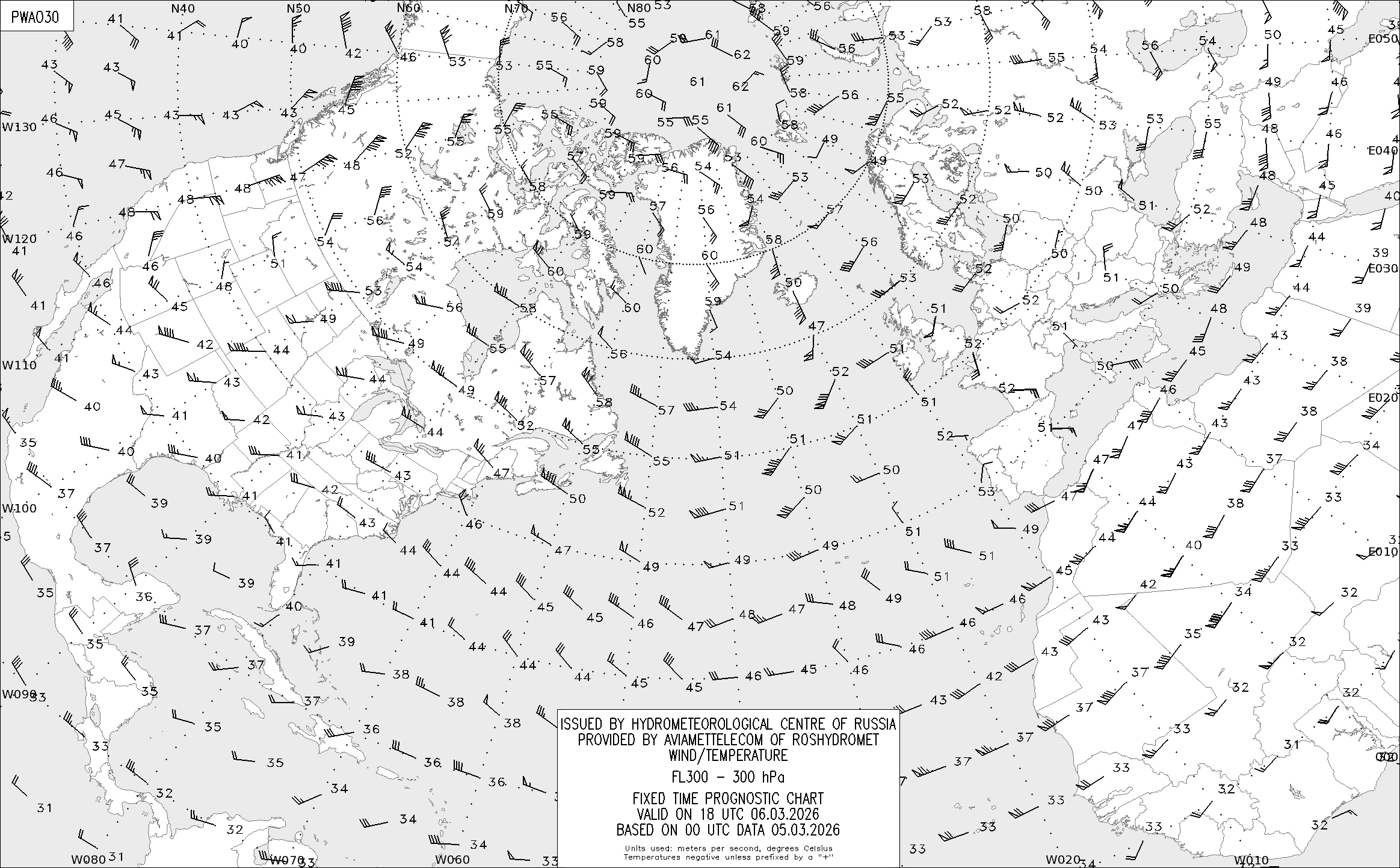 AREA A (Северная Америка и Европа) по данным за 00 UTC 05.03.2026