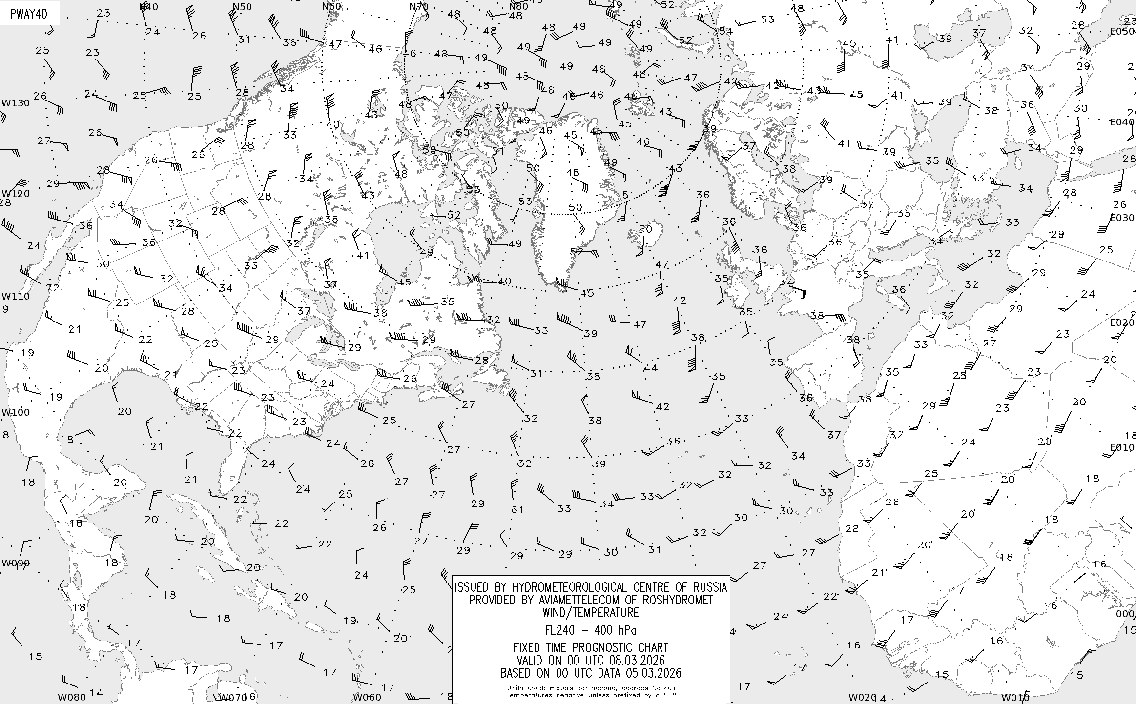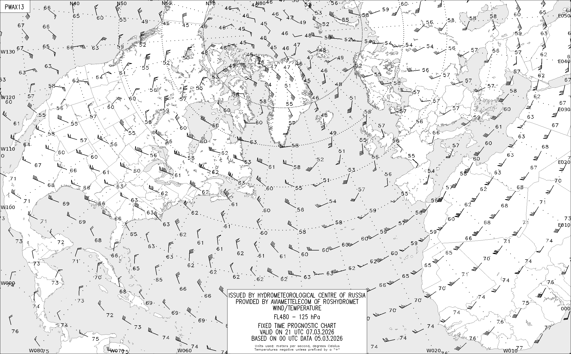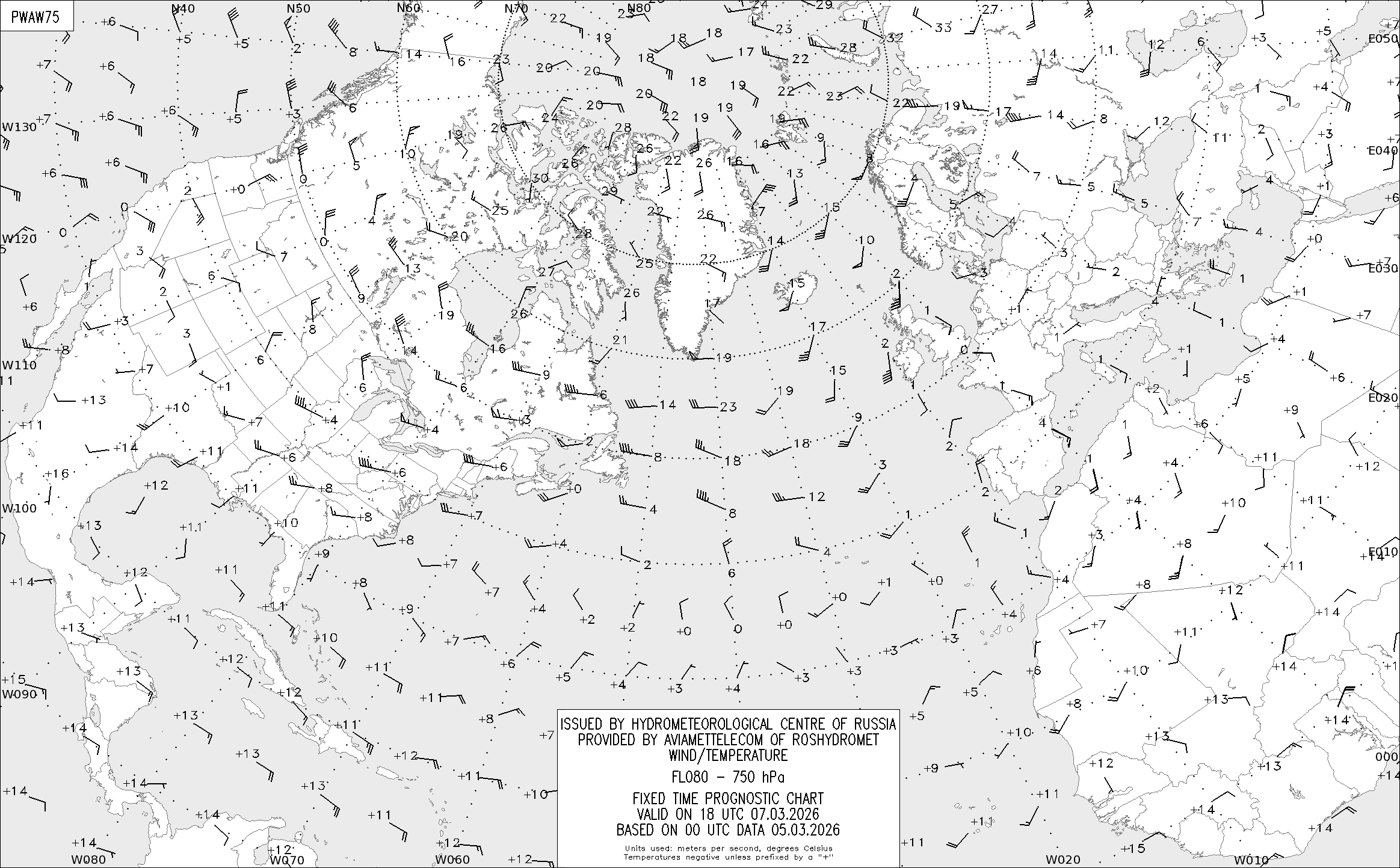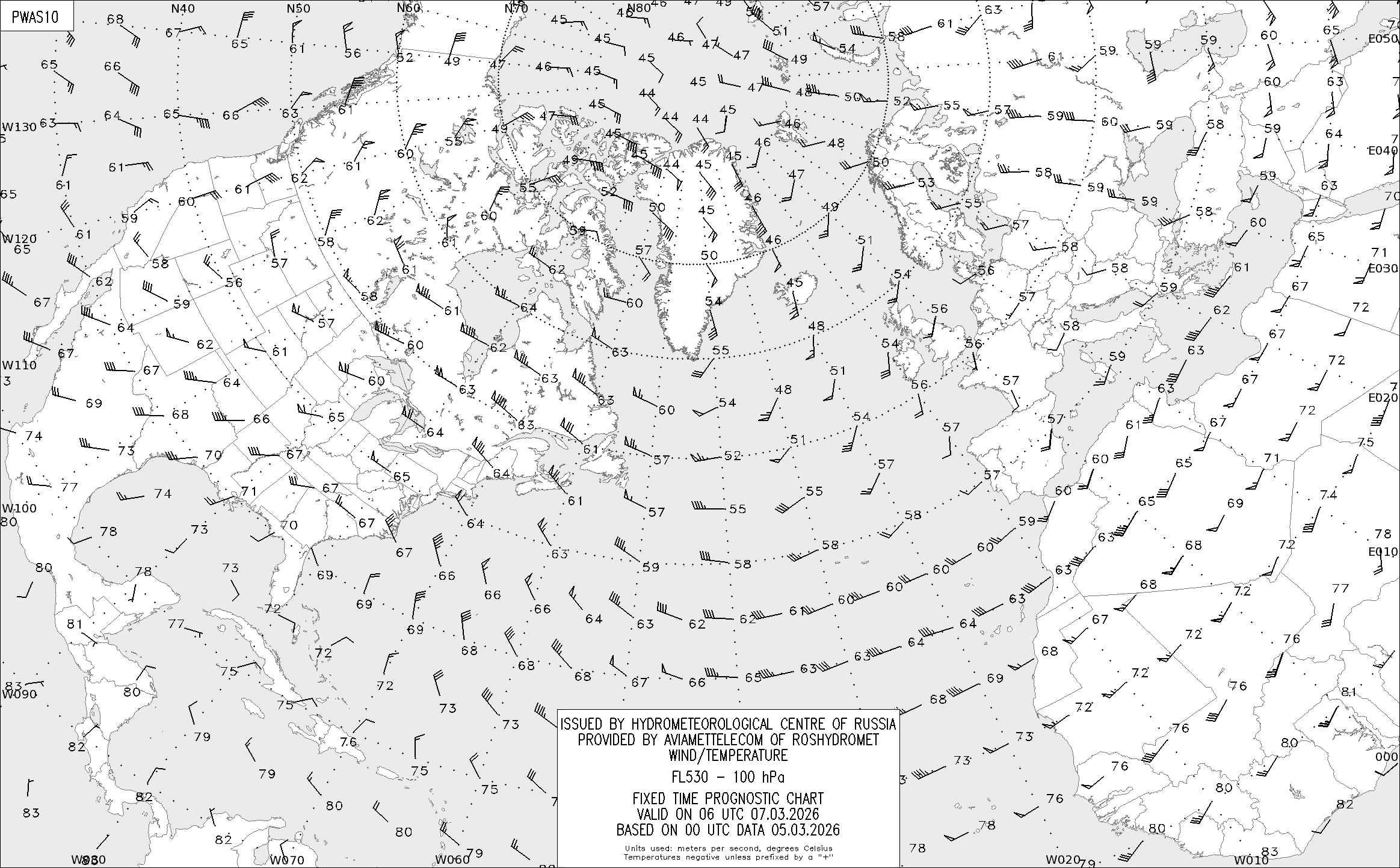 AREA A (Северная Америка и Европа) по данным за 00 UTC 05.03.2026