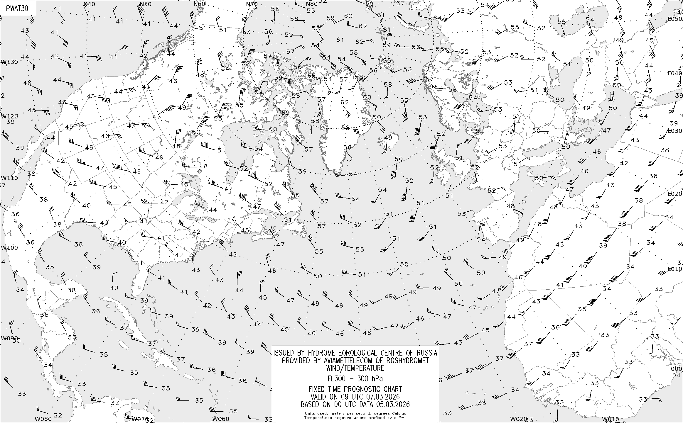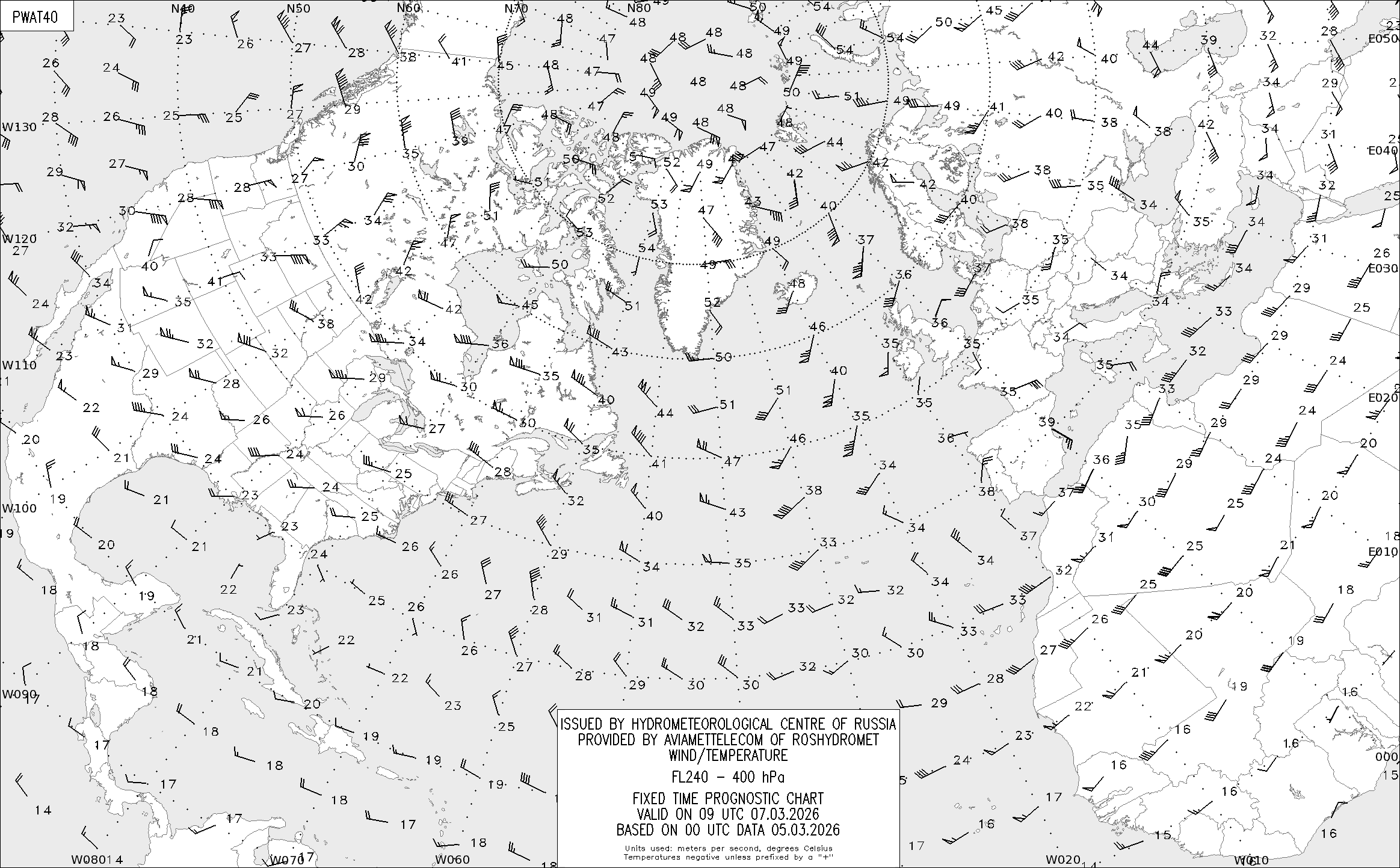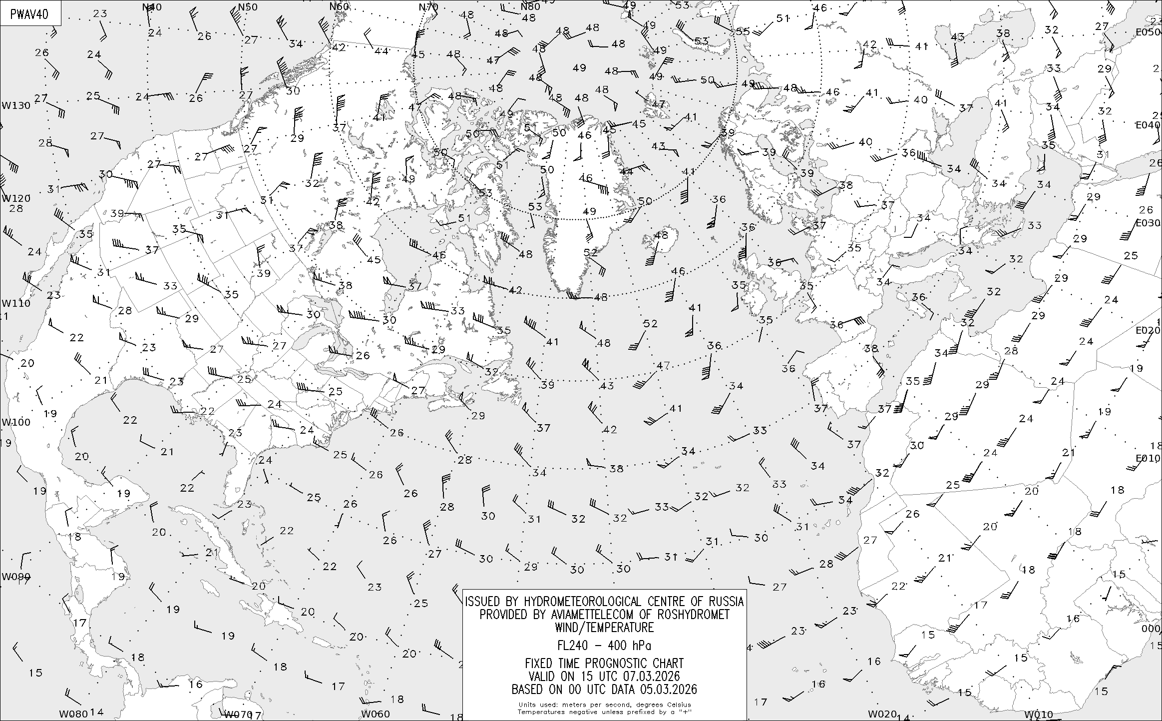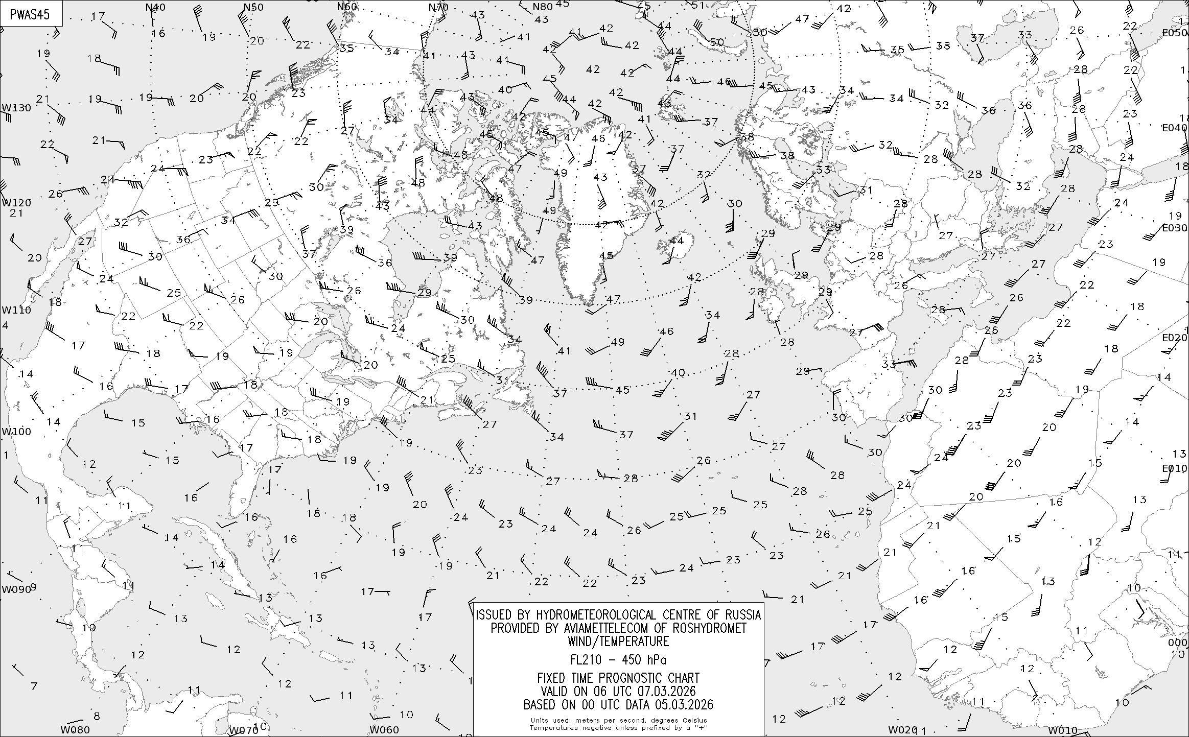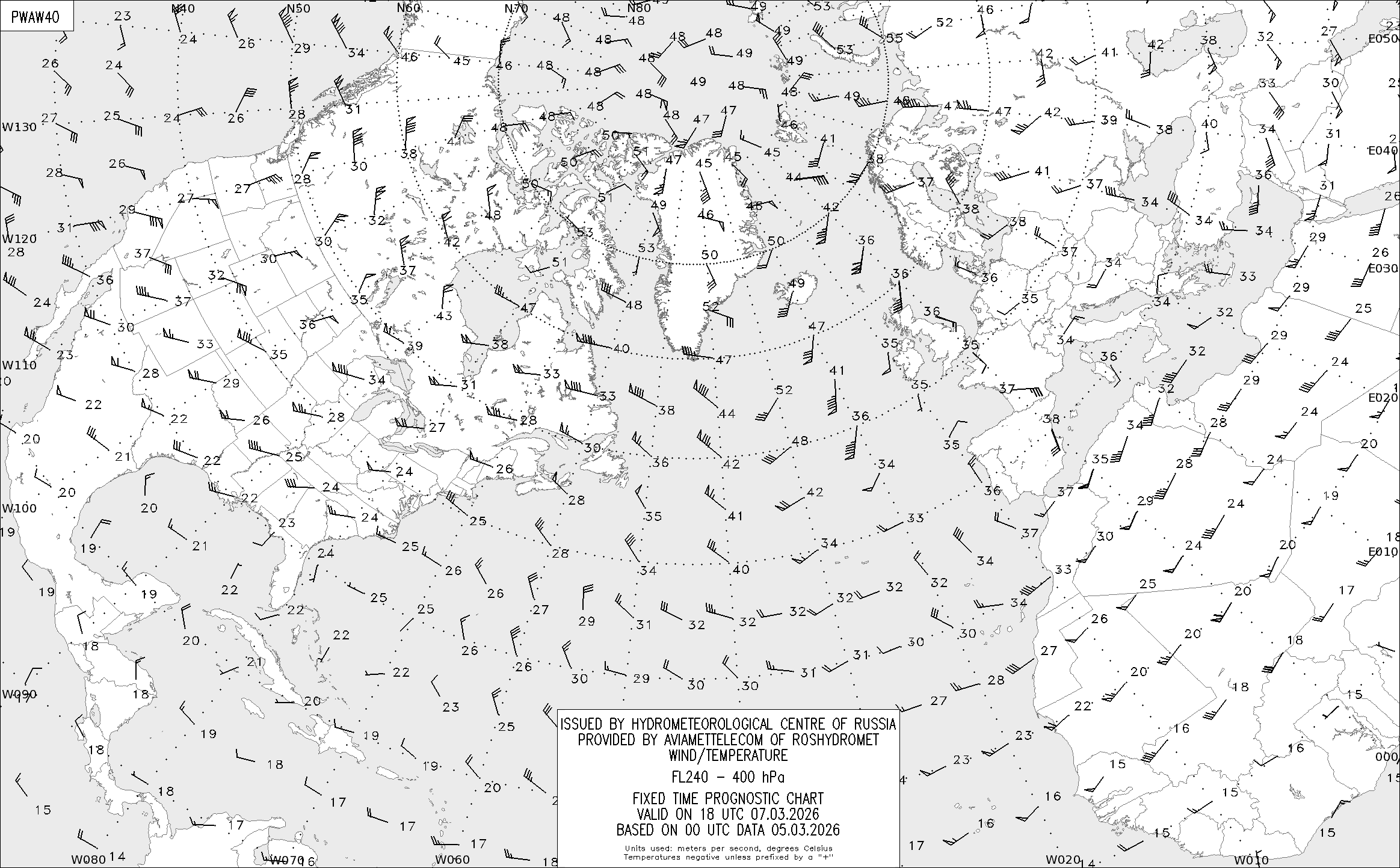AREA A (Северная Америка и Европа) по данным за 00 UTC 05.03.2026