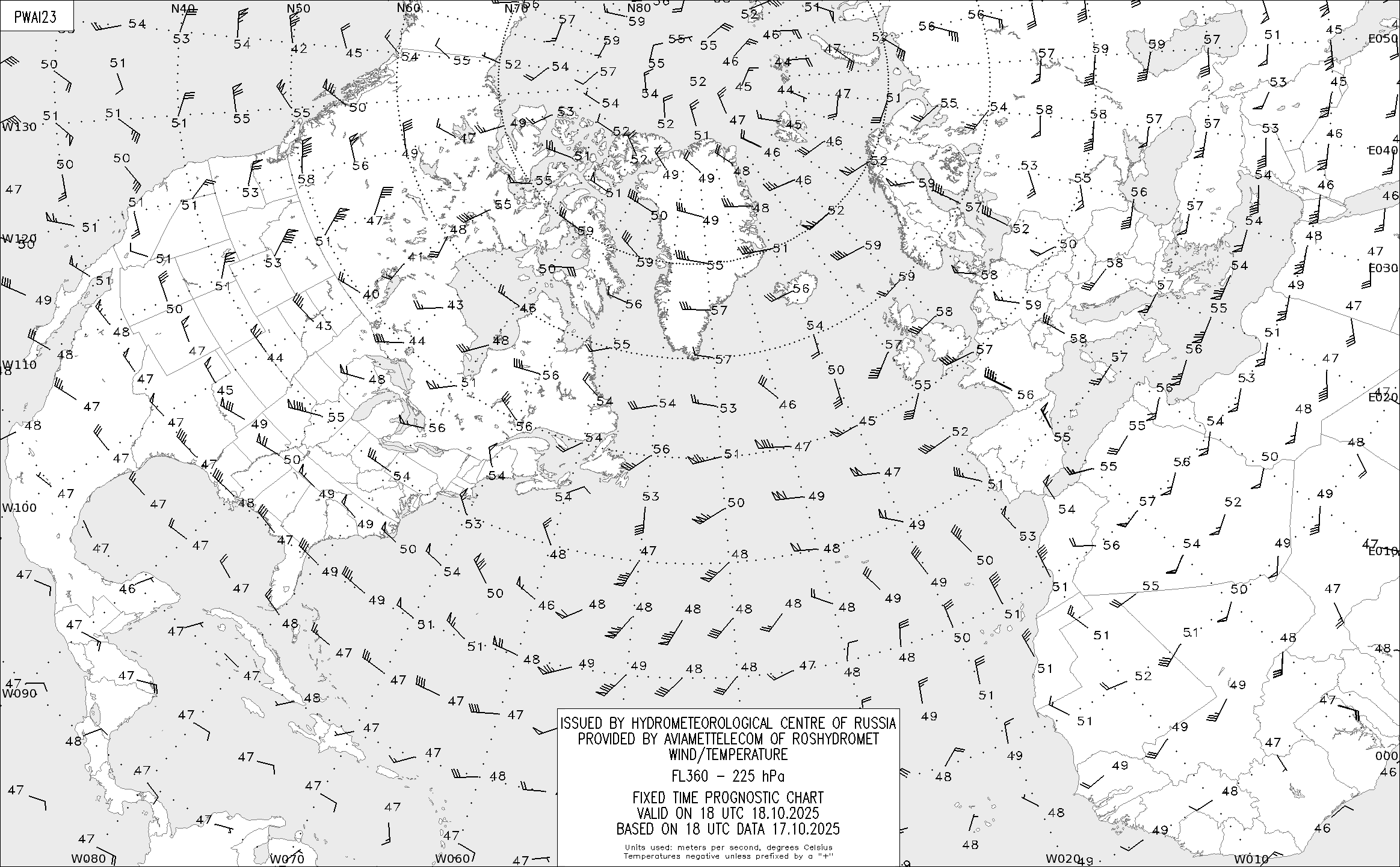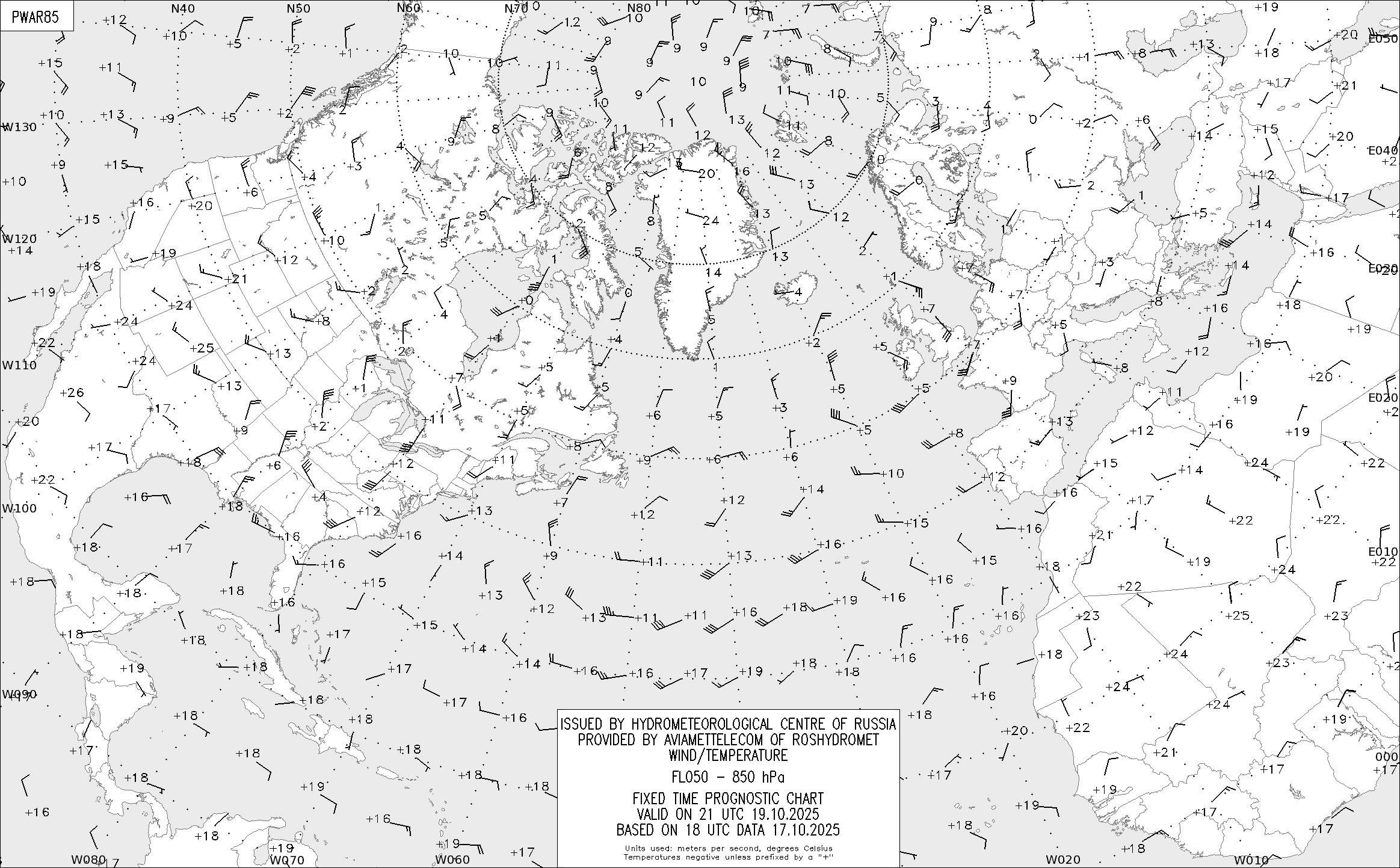 AREA A (Северная Америка и Европа) по данным за 18 UTC 17.10.2025