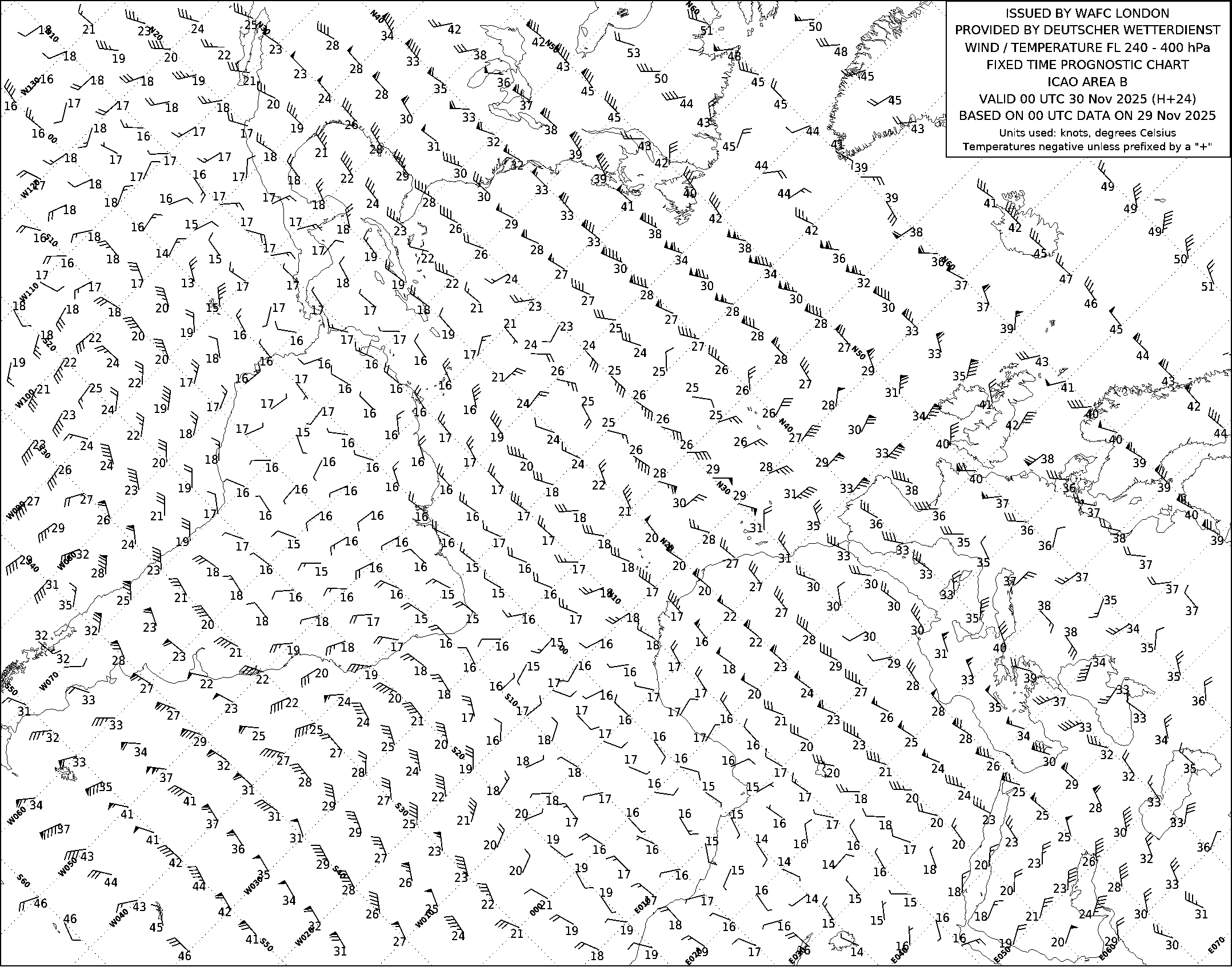 AREA B (Западная Европа и Атлантический океан) по данным за 00 UTC 29.11.2025