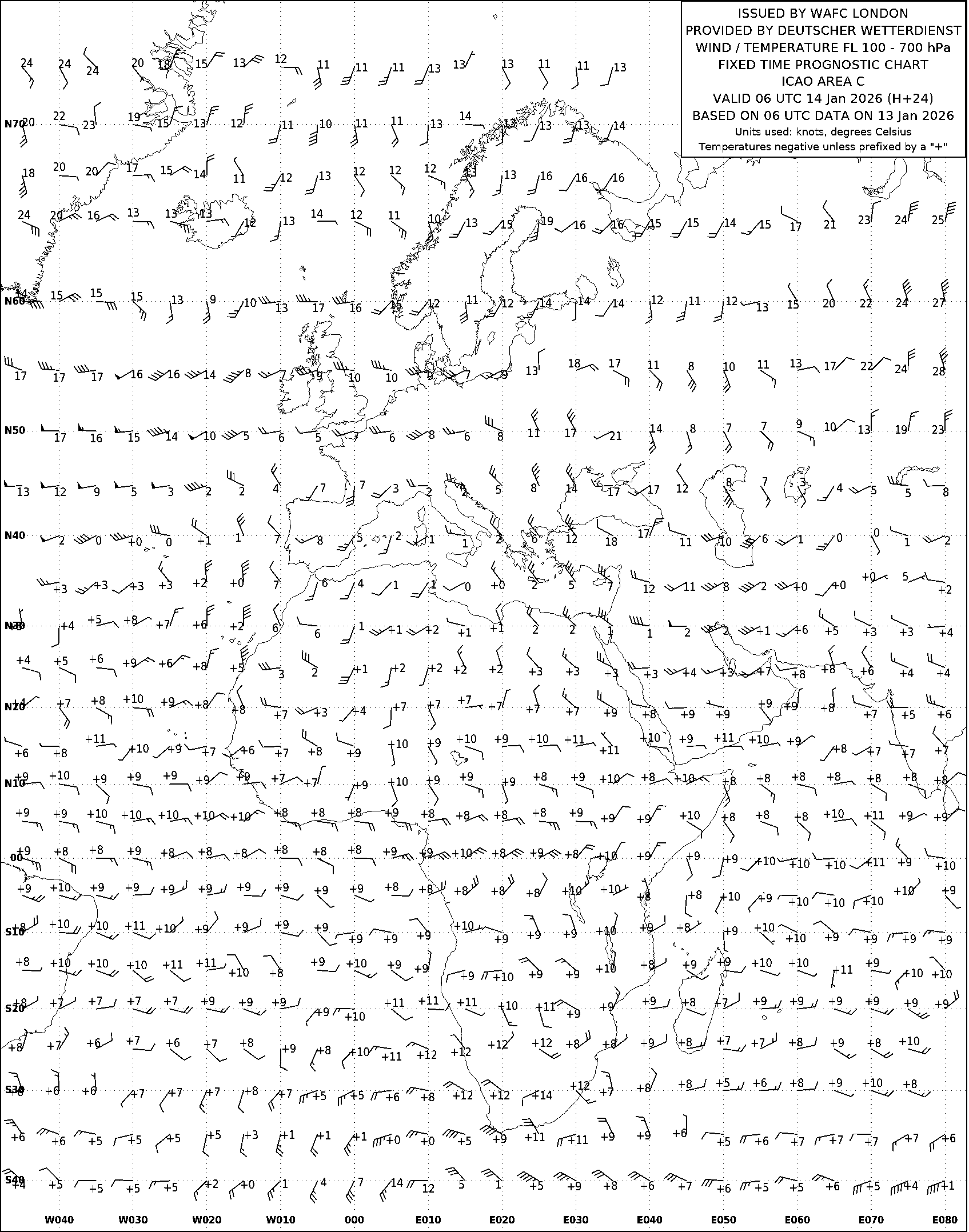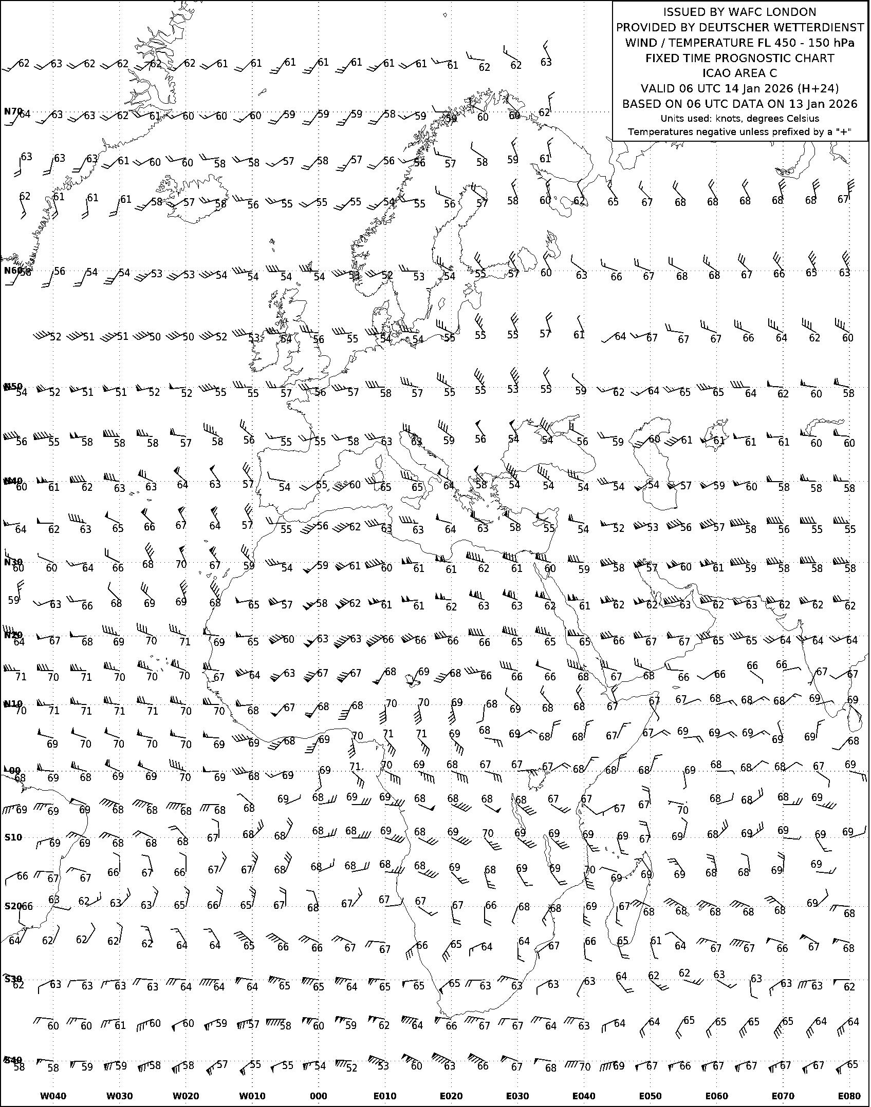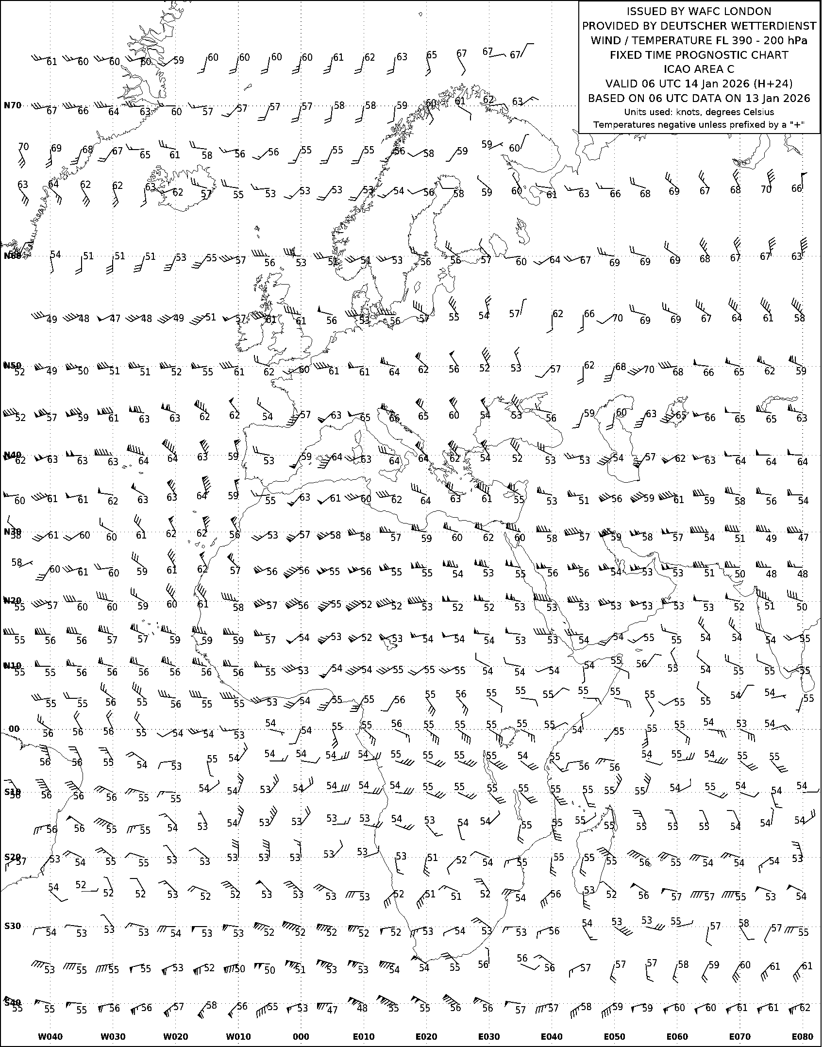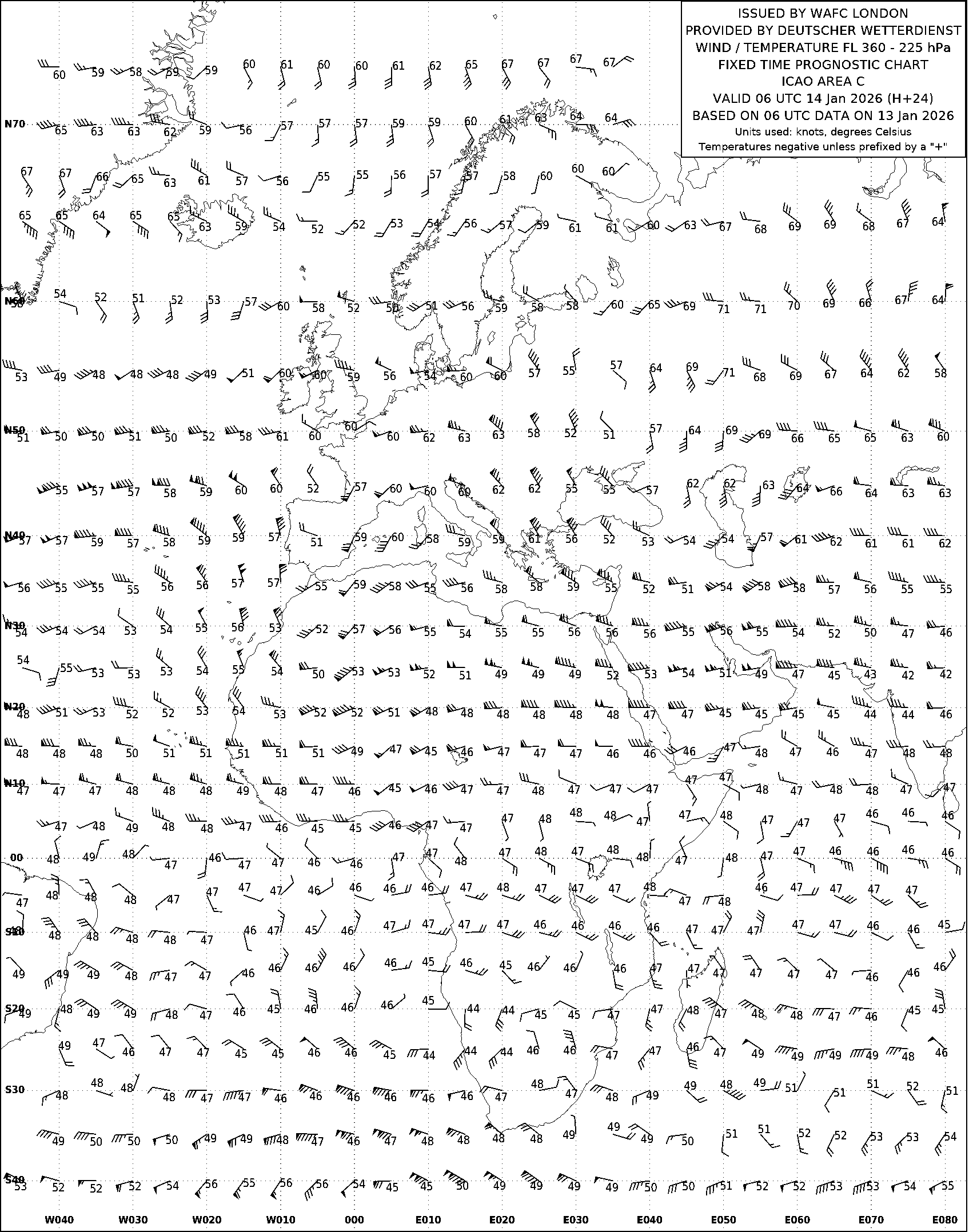 AREA C (Европа, Африка и Атлантический океан) по данным за 06 UTC 13.01.2026