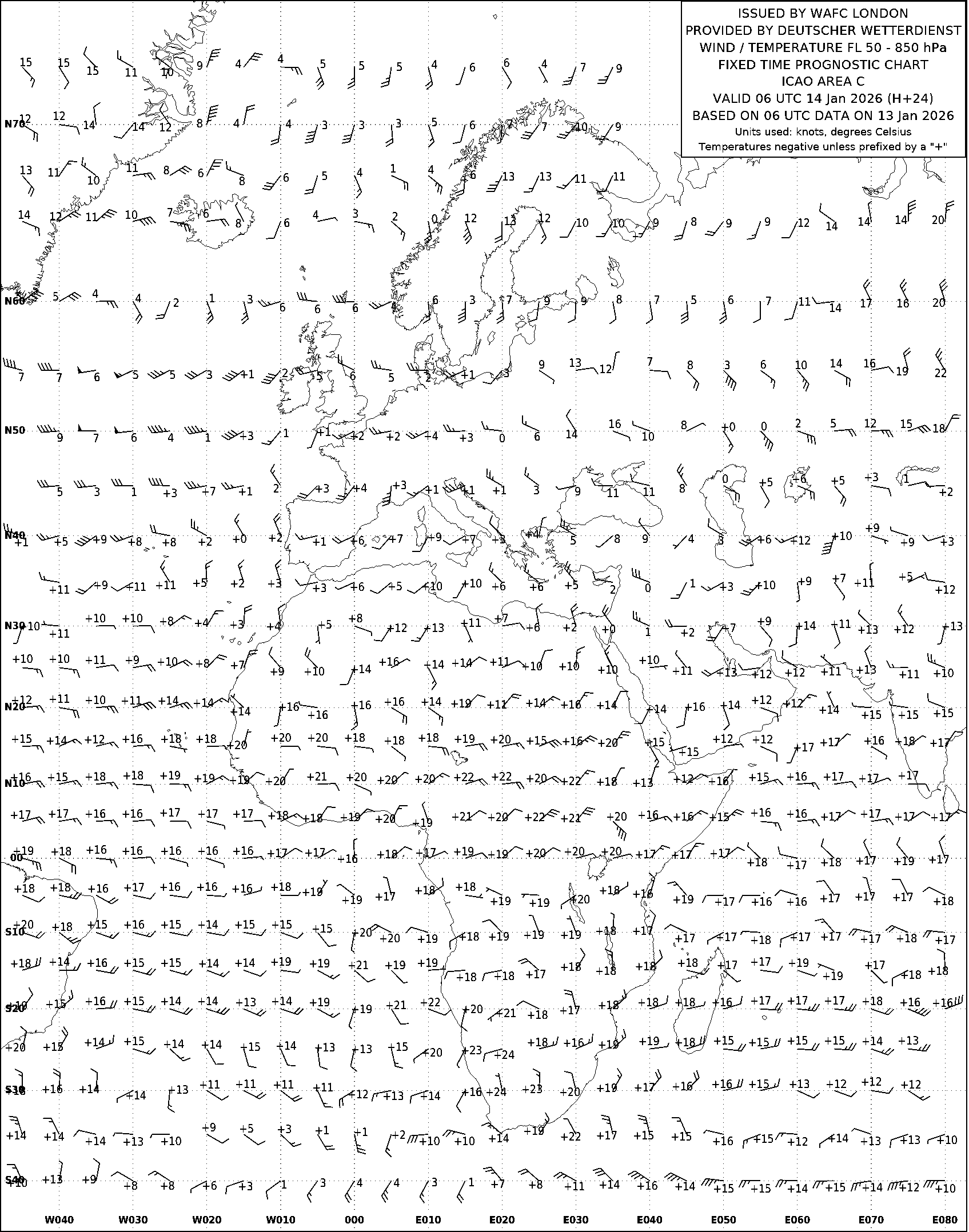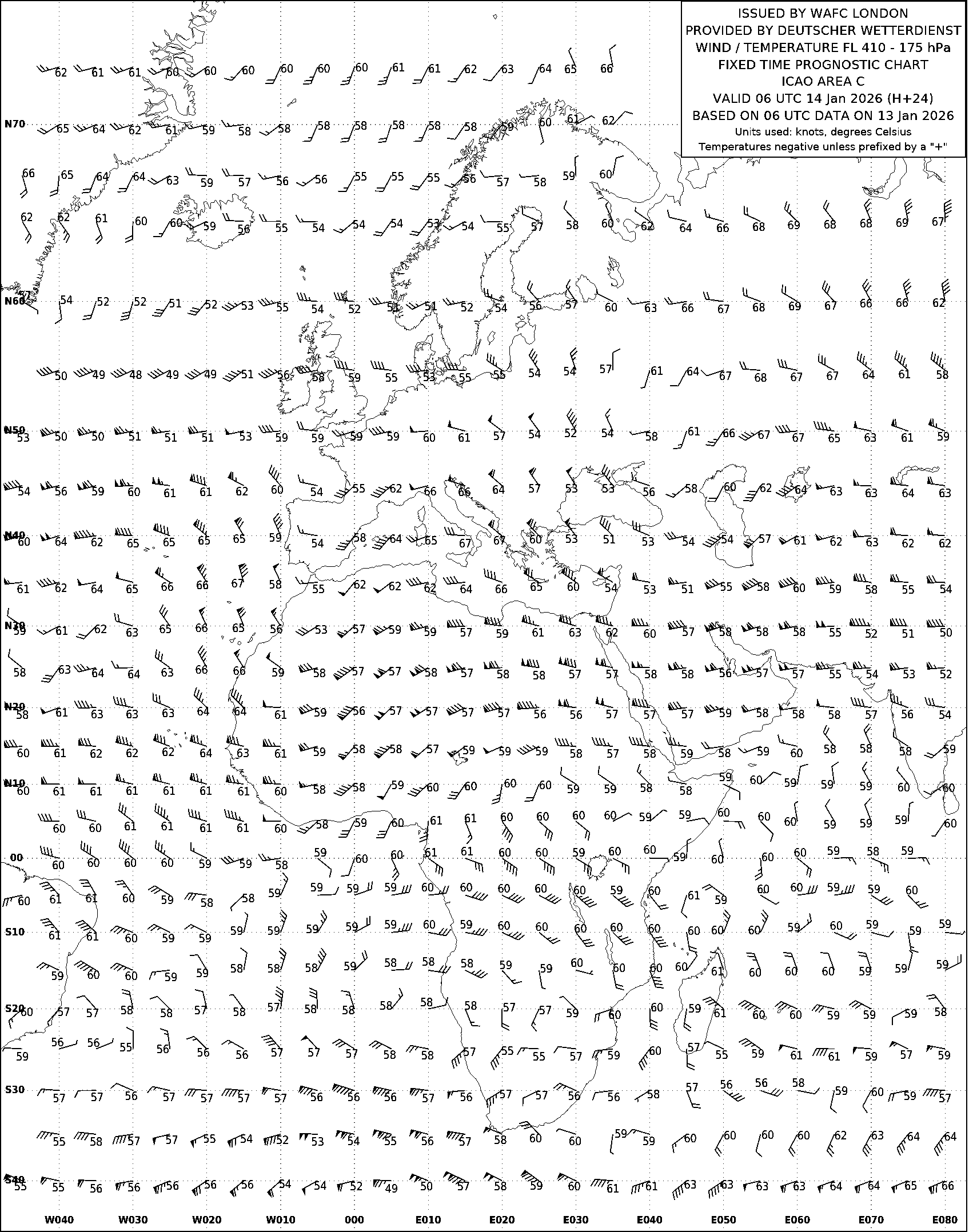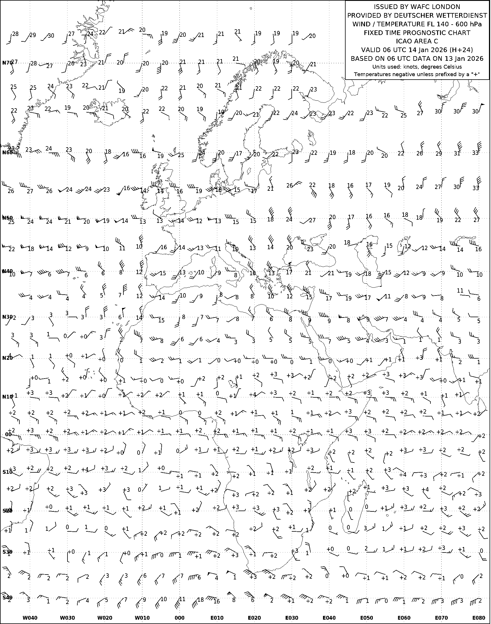 AREA C (Европа, Африка и Атлантический океан) по данным за 06 UTC 13.01.2026