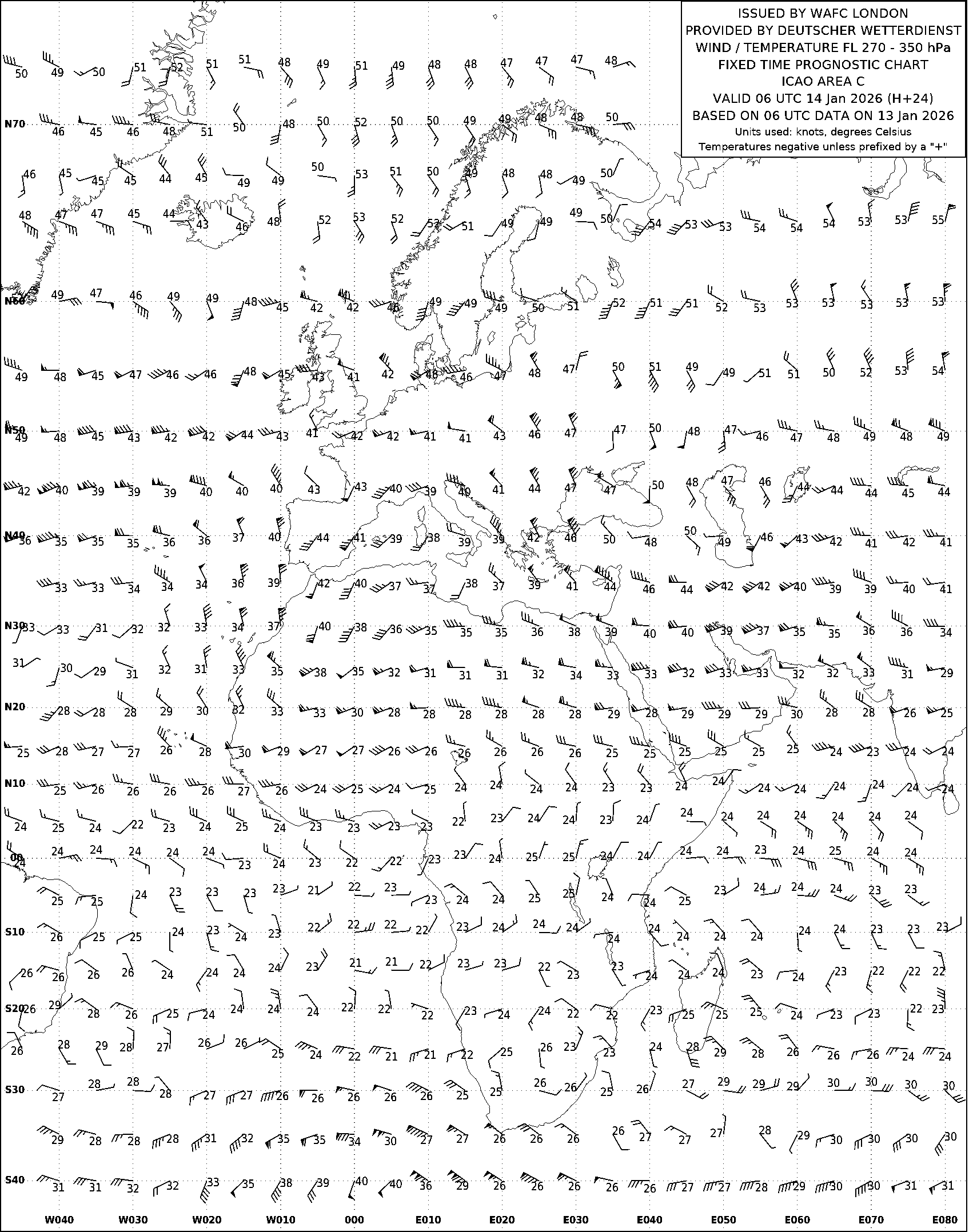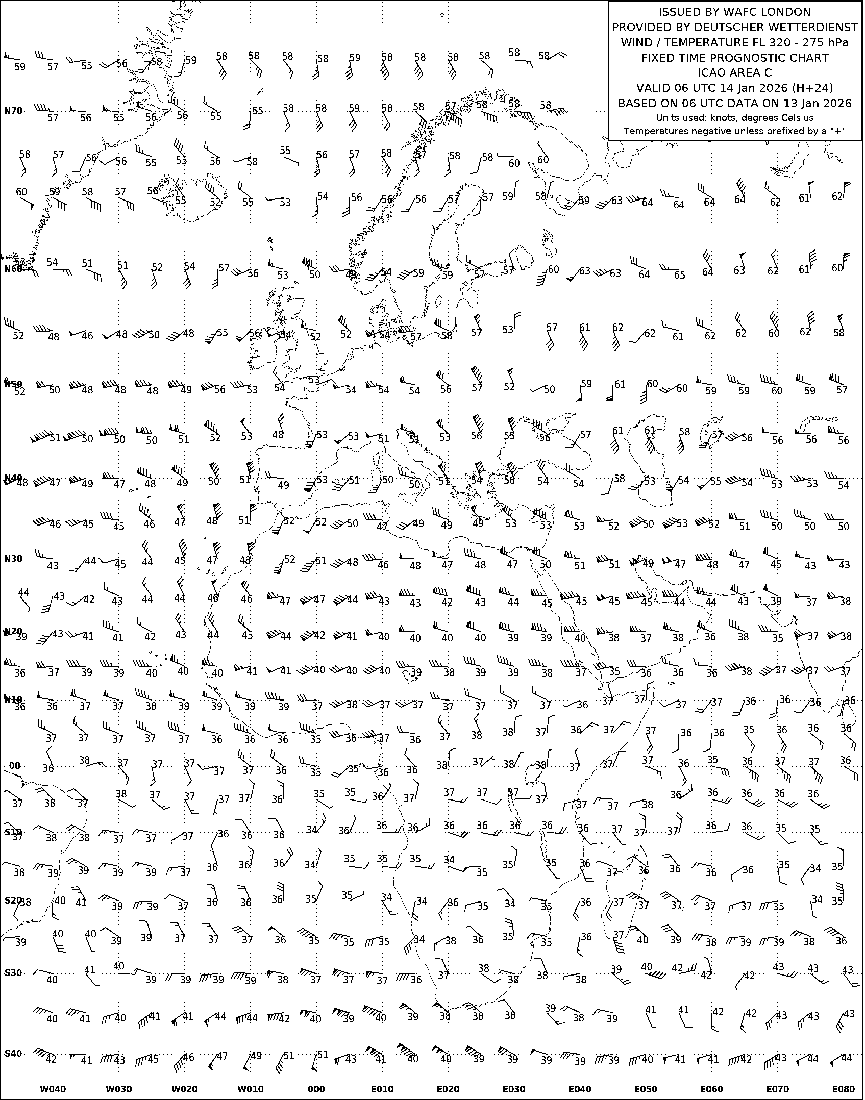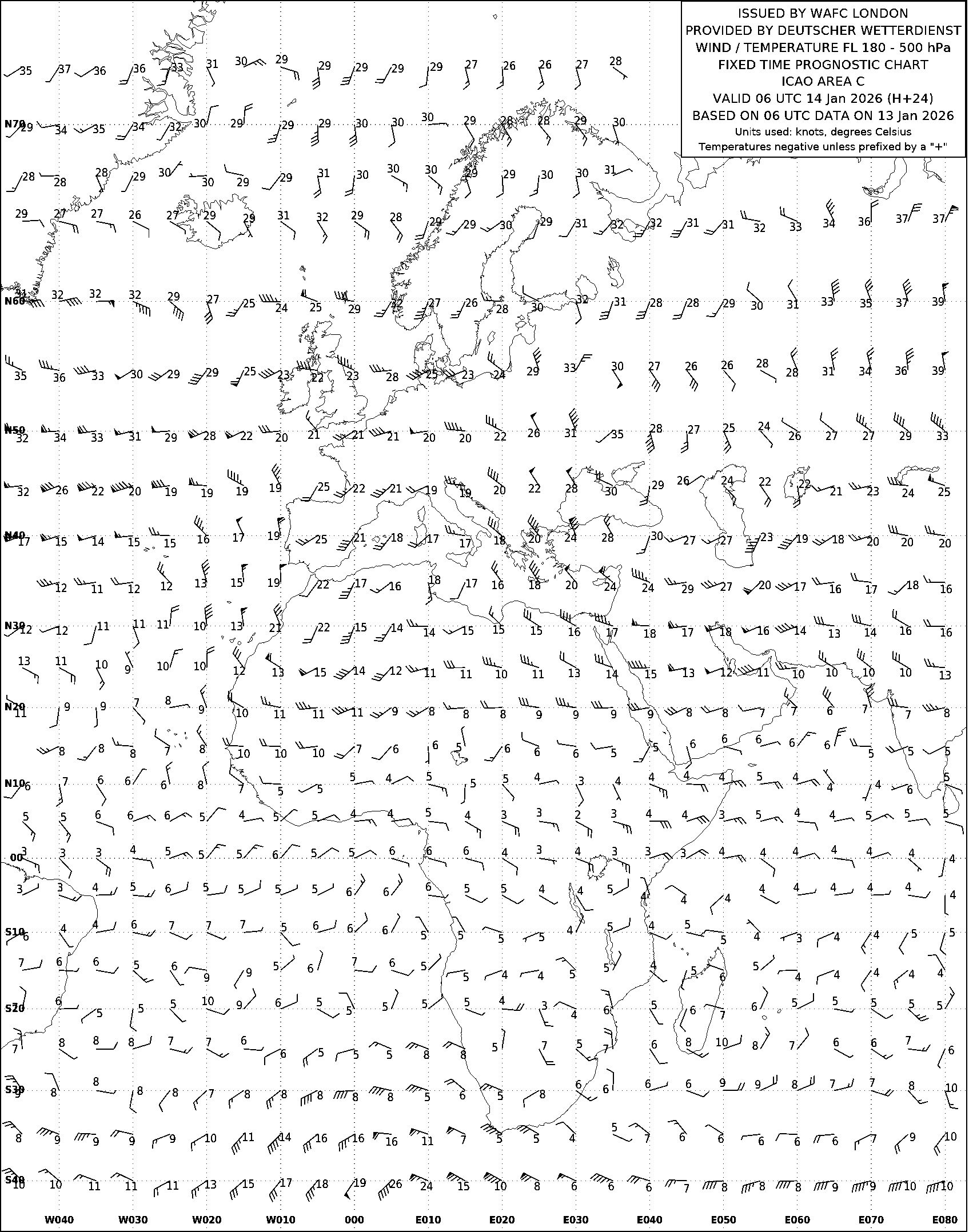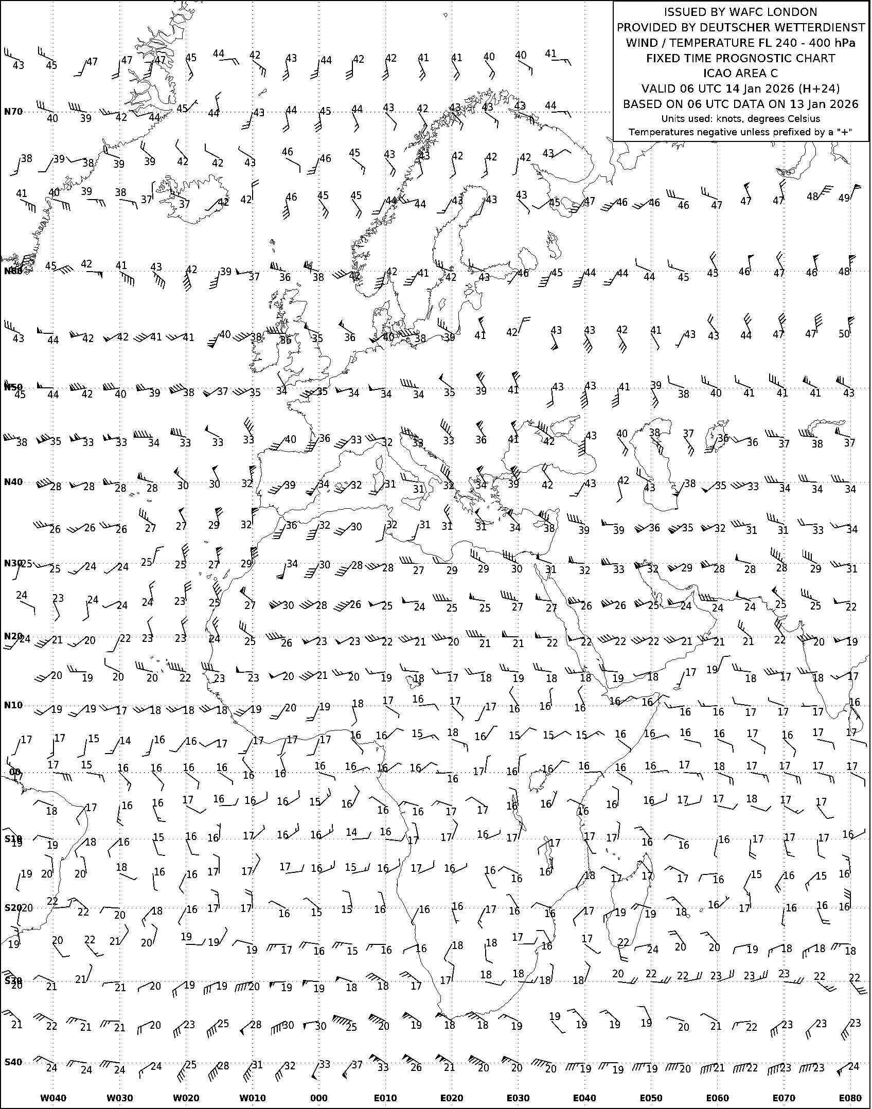 AREA C (Европа, Африка и Атлантический океан) по данным за 06 UTC 13.01.2026