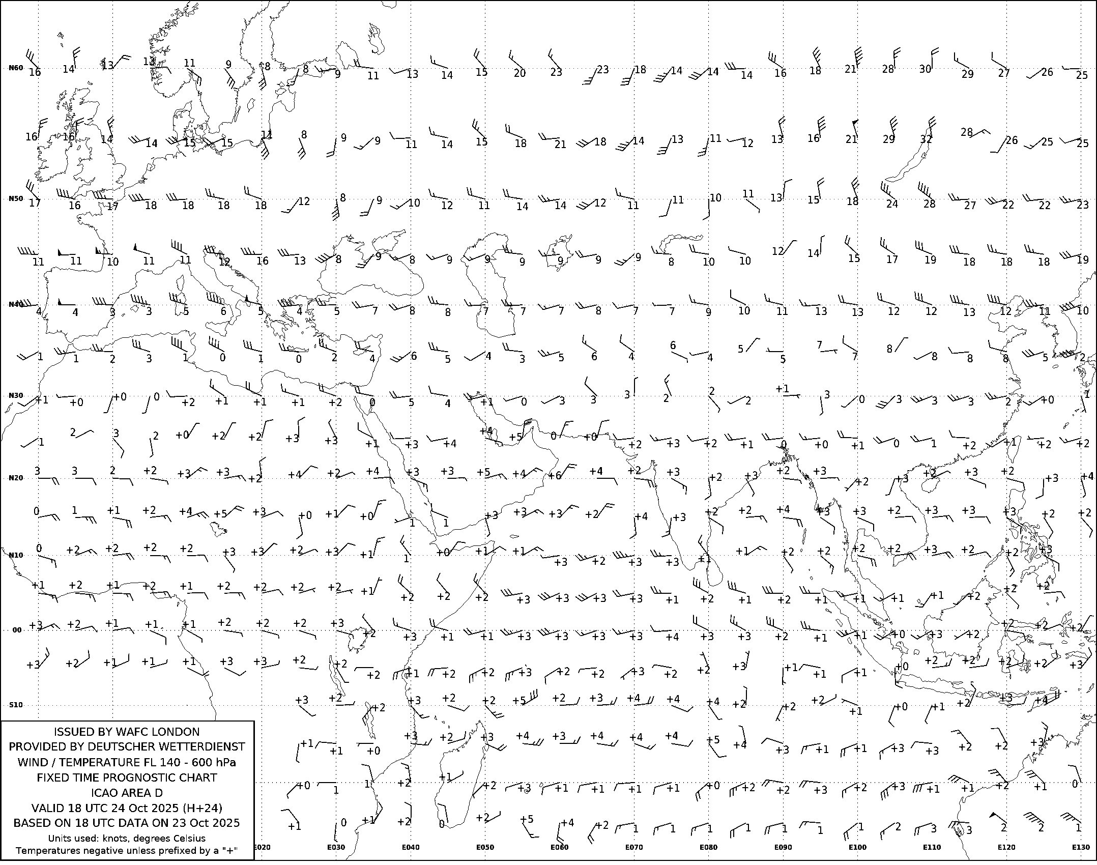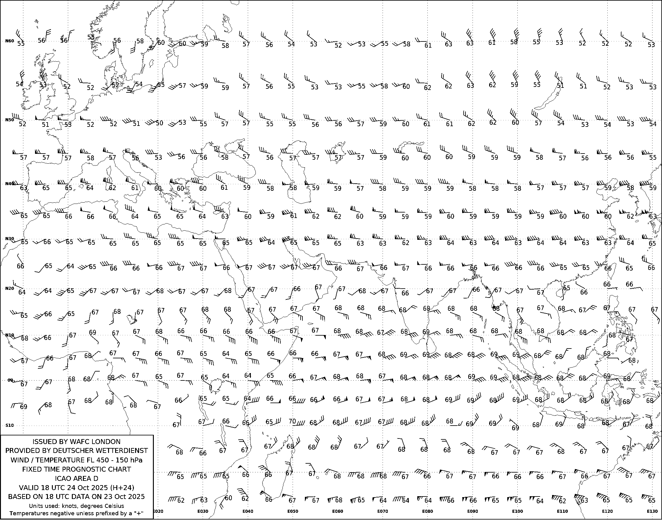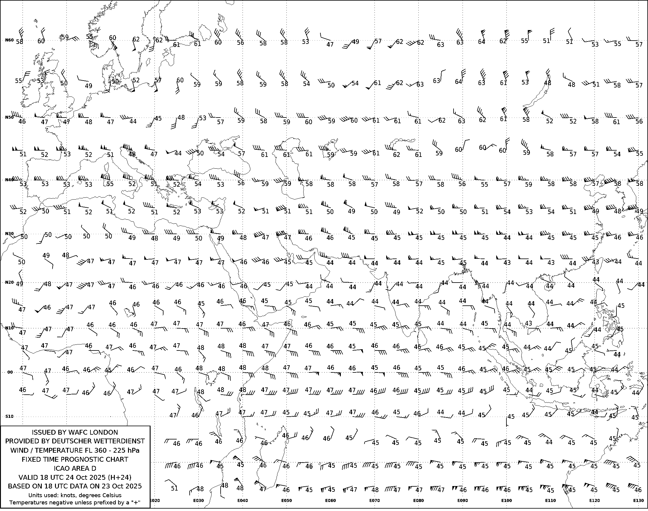 AREA D (Африка и Евразия) по данным за 18 UTC 23.10.2025