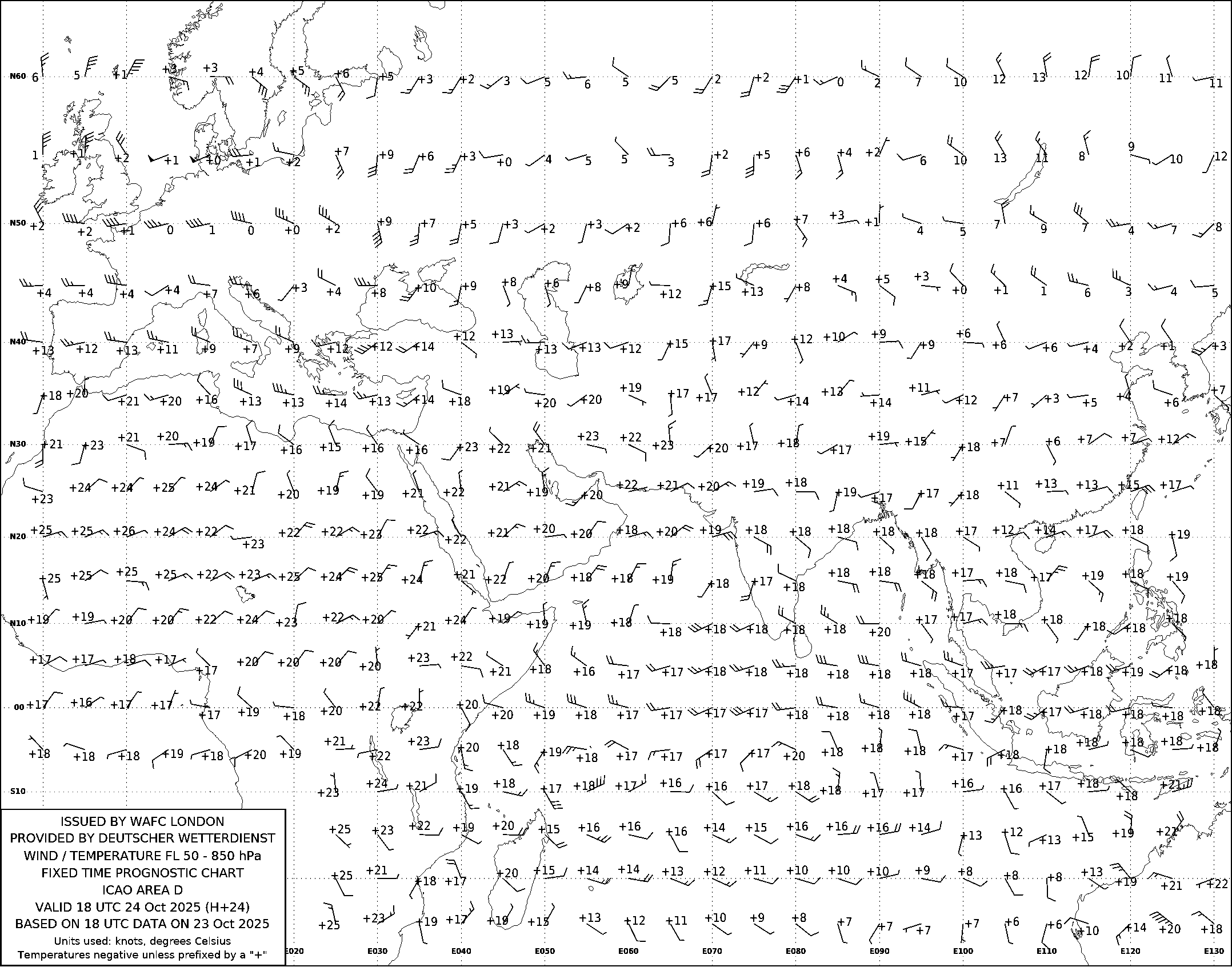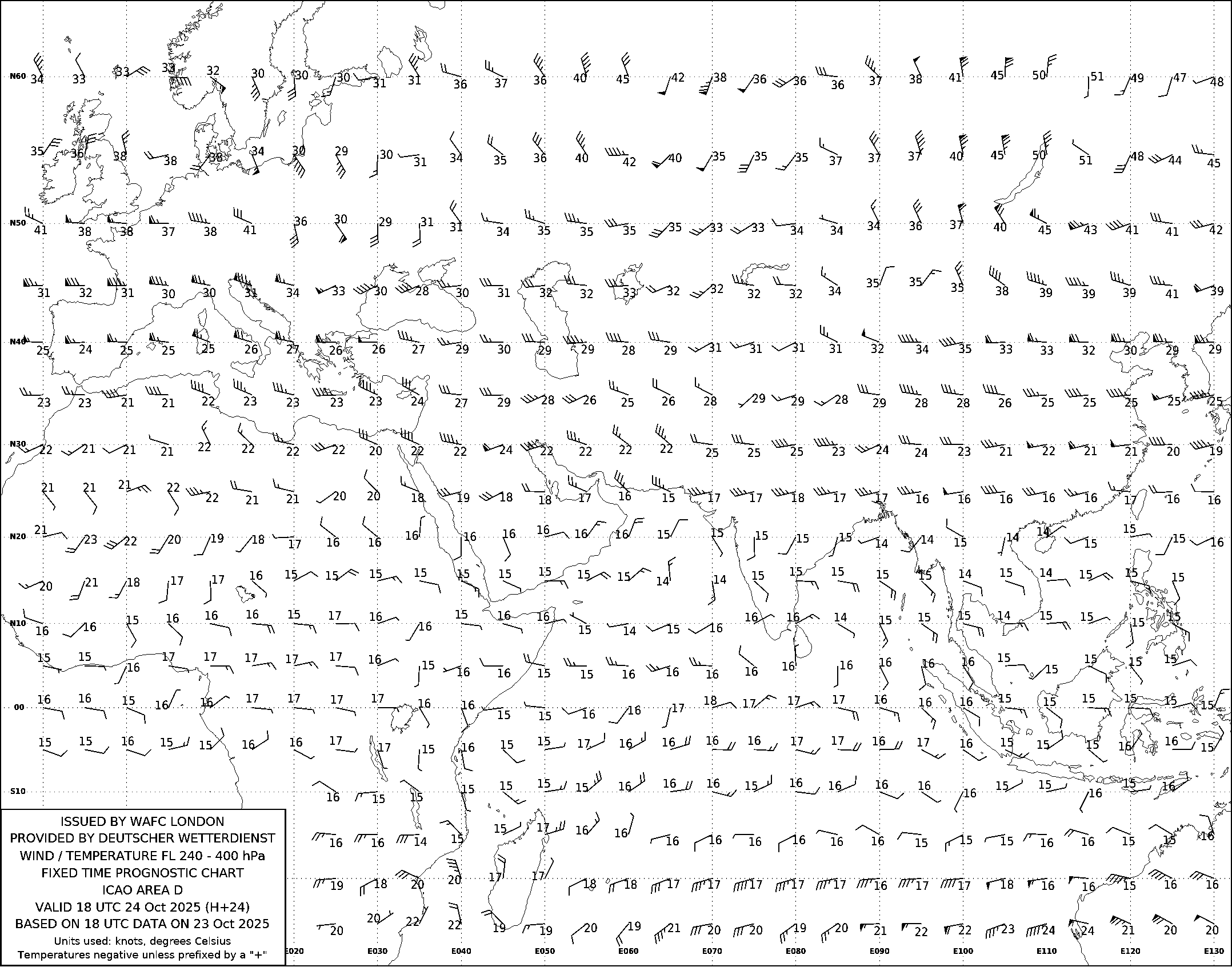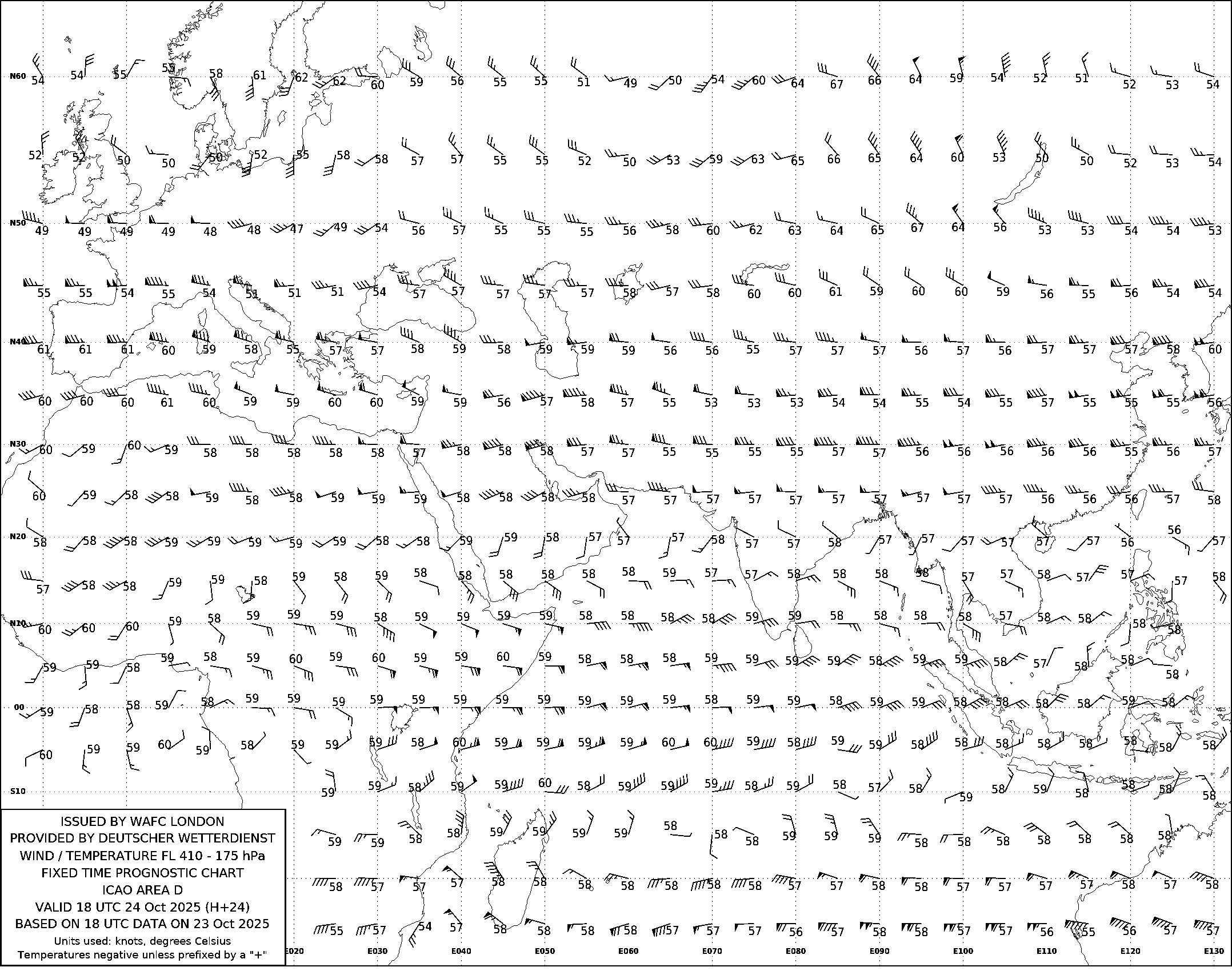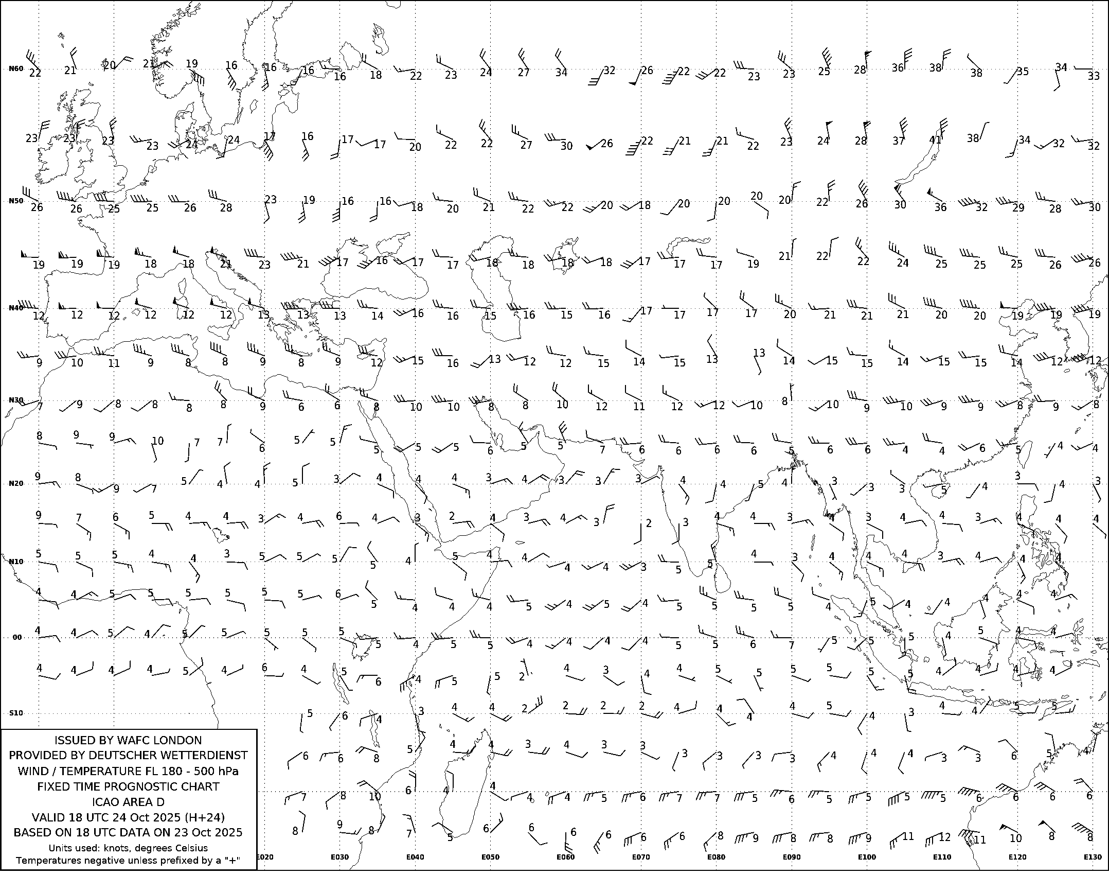 AREA D (Африка и Евразия) по данным за 18 UTC 23.10.2025