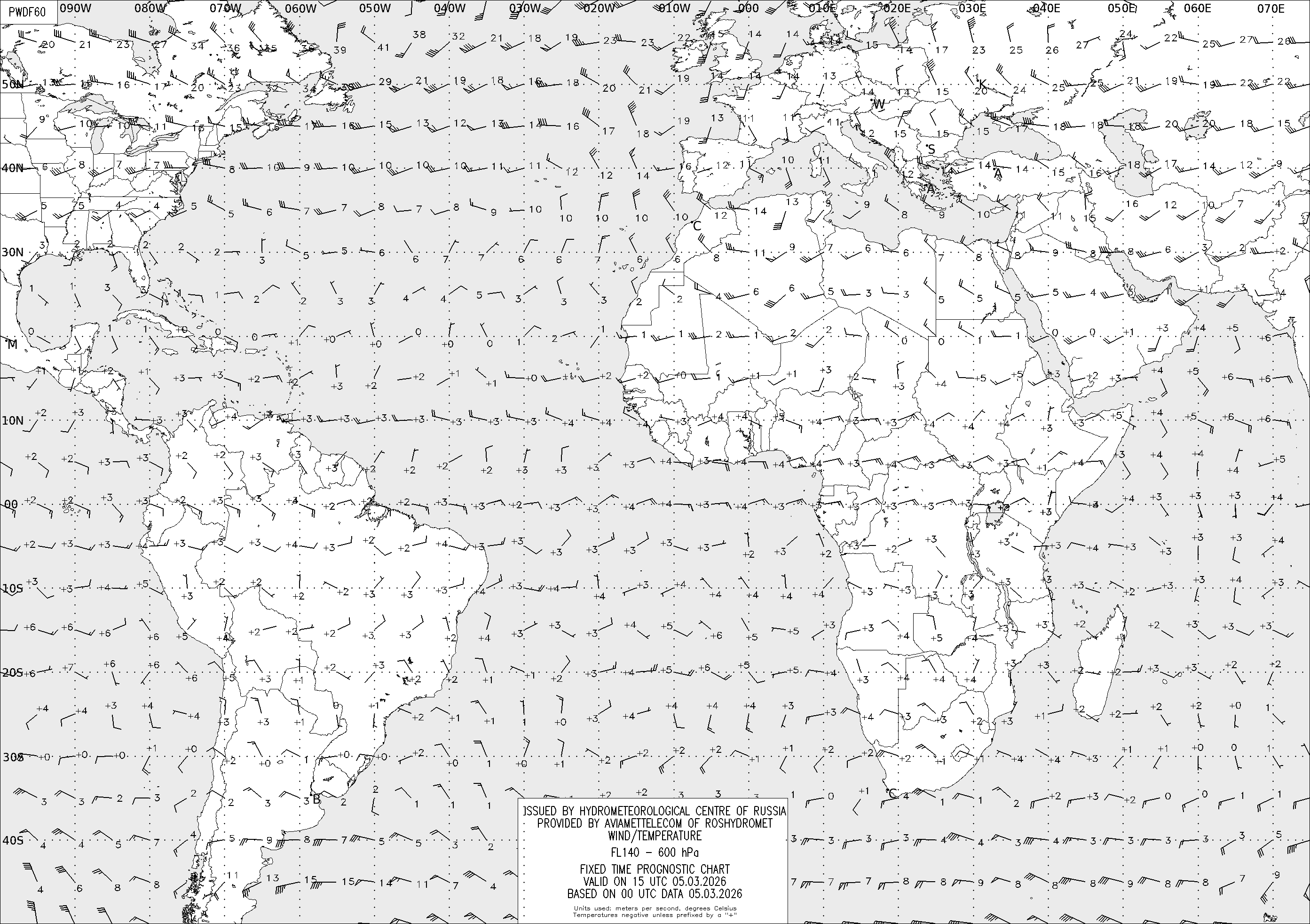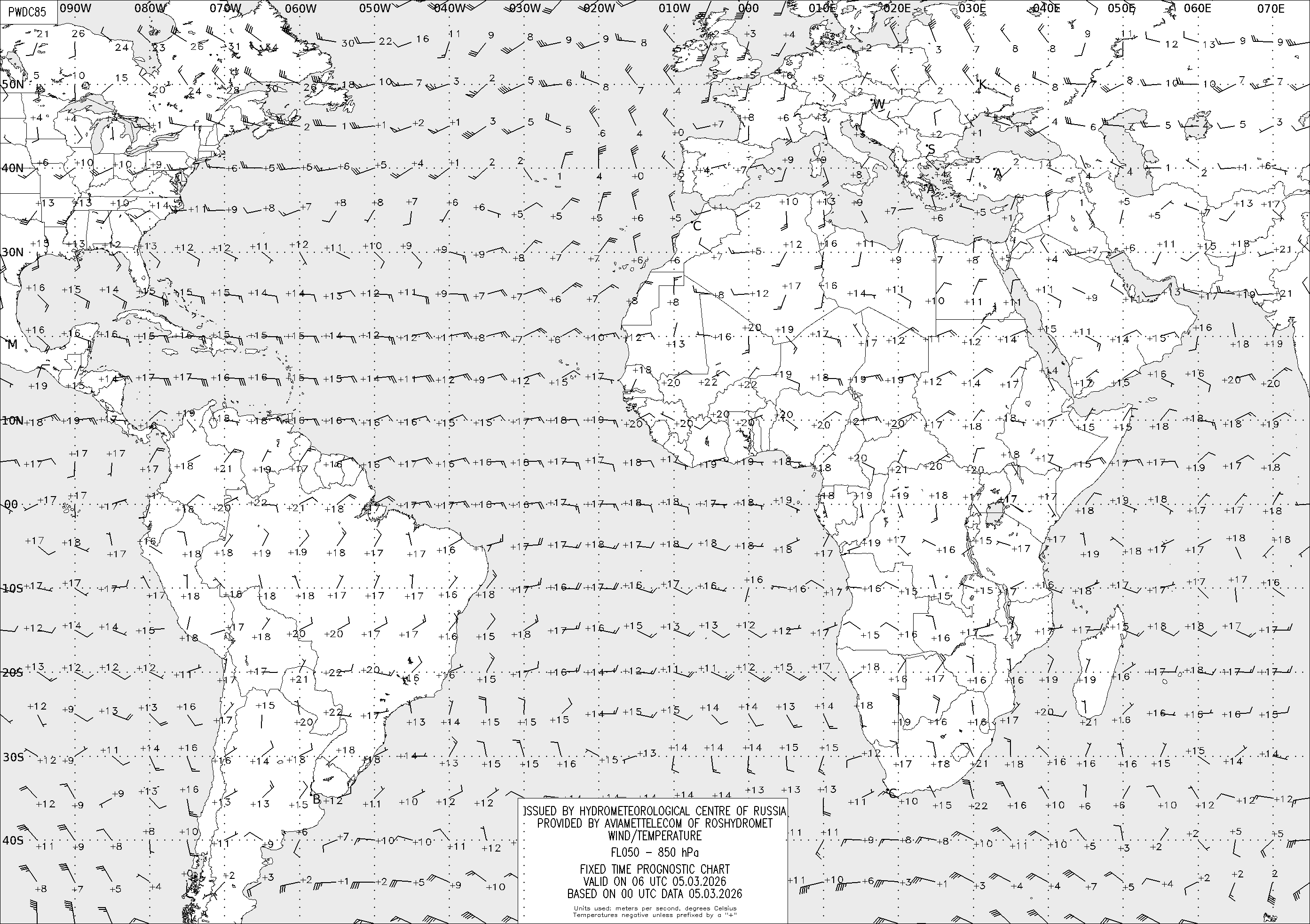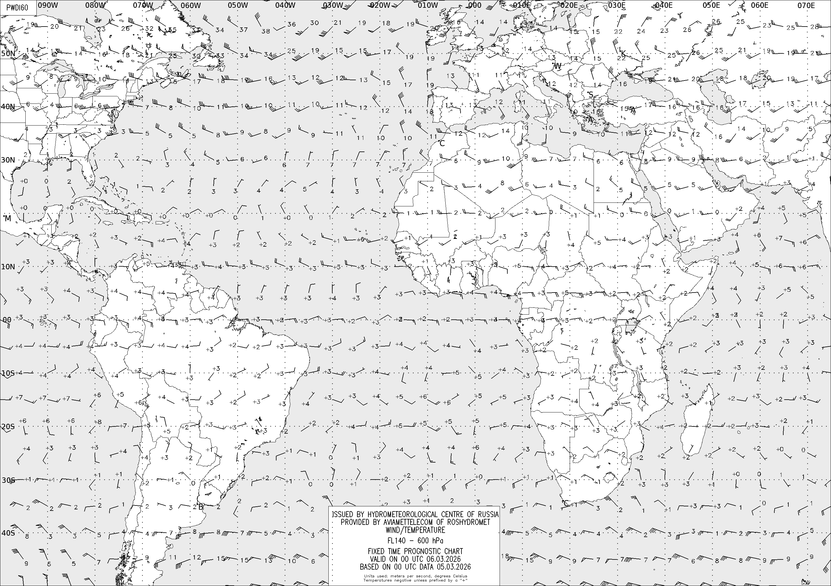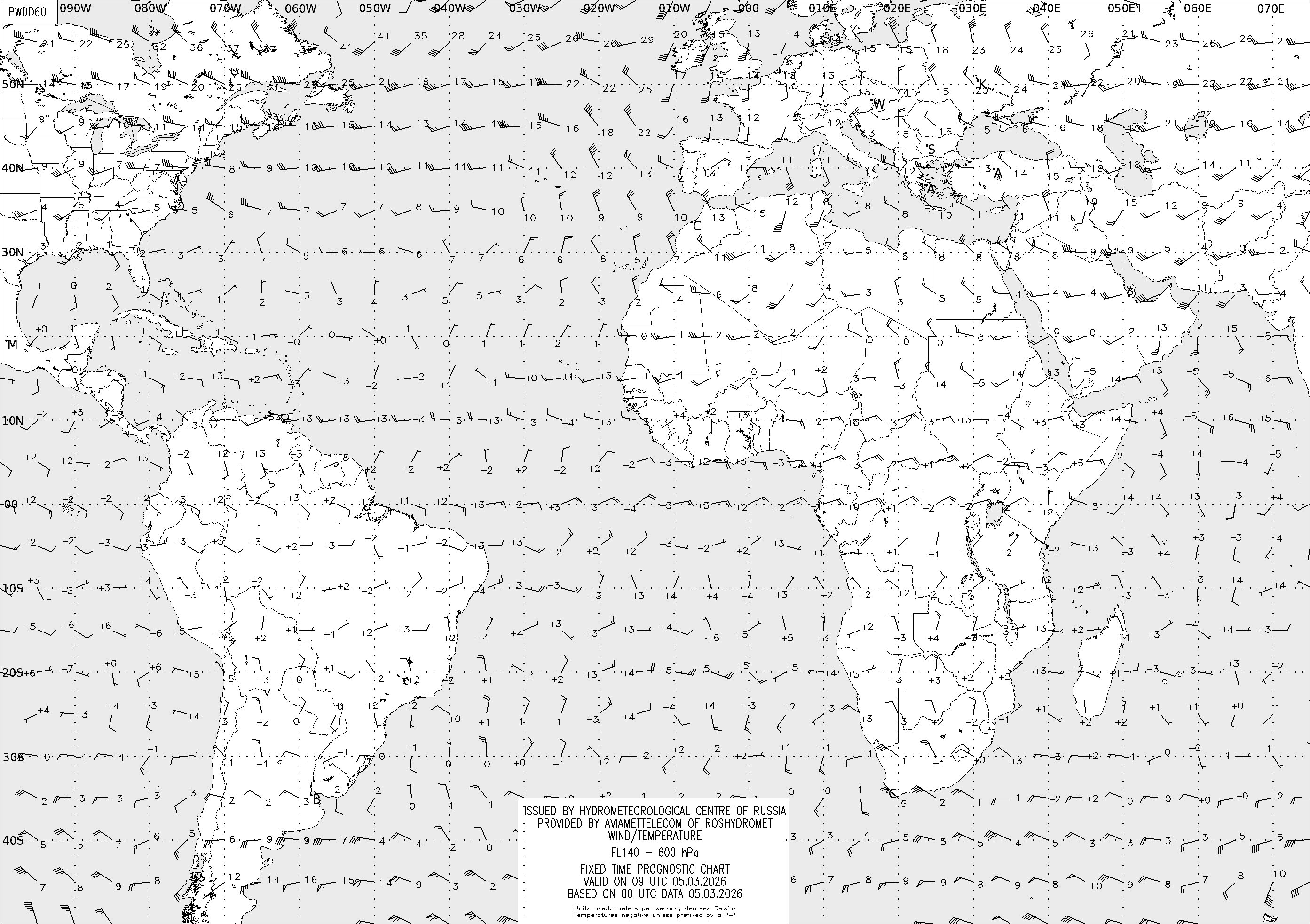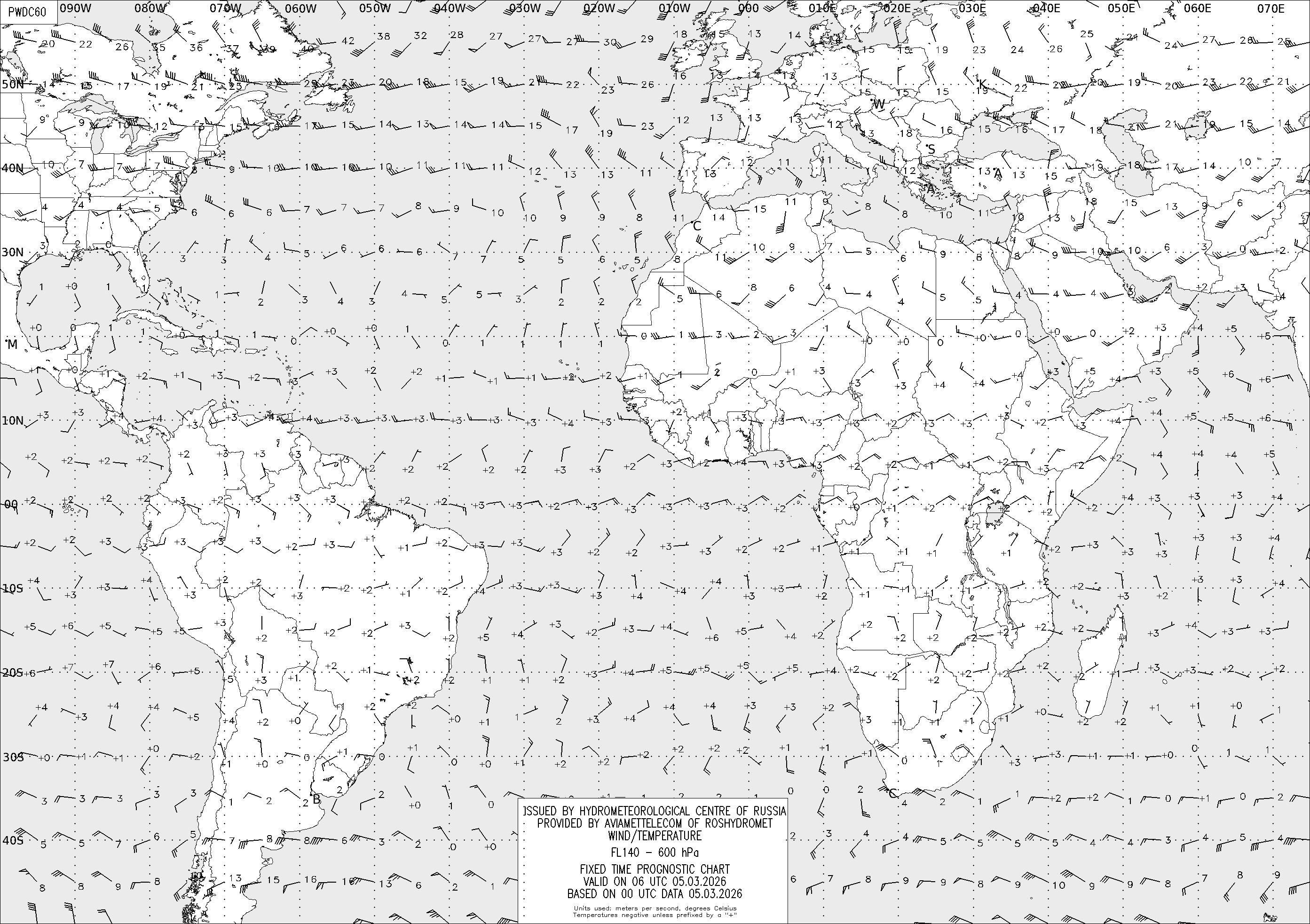 AREA D (Африка и Америка) по данным за 00 UTC 05.03.2026