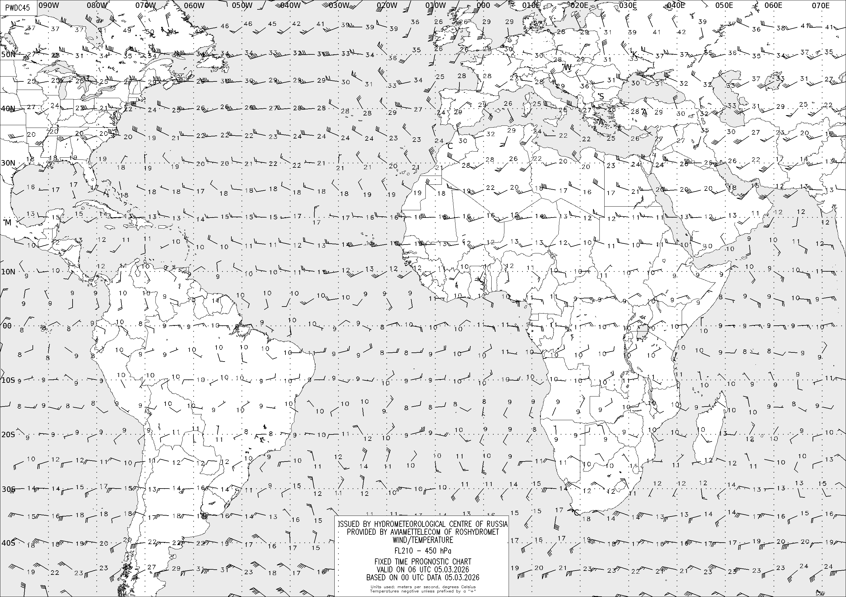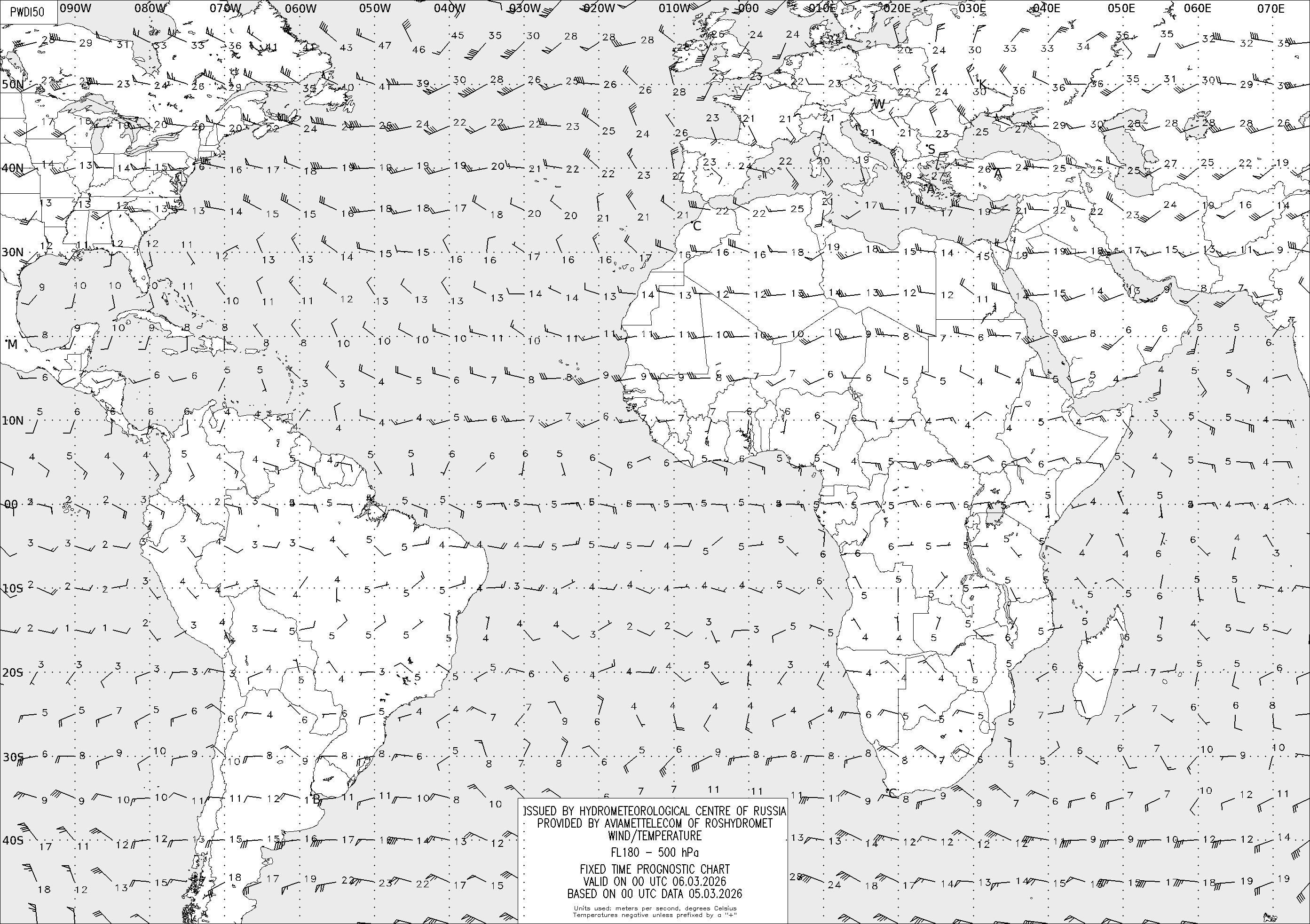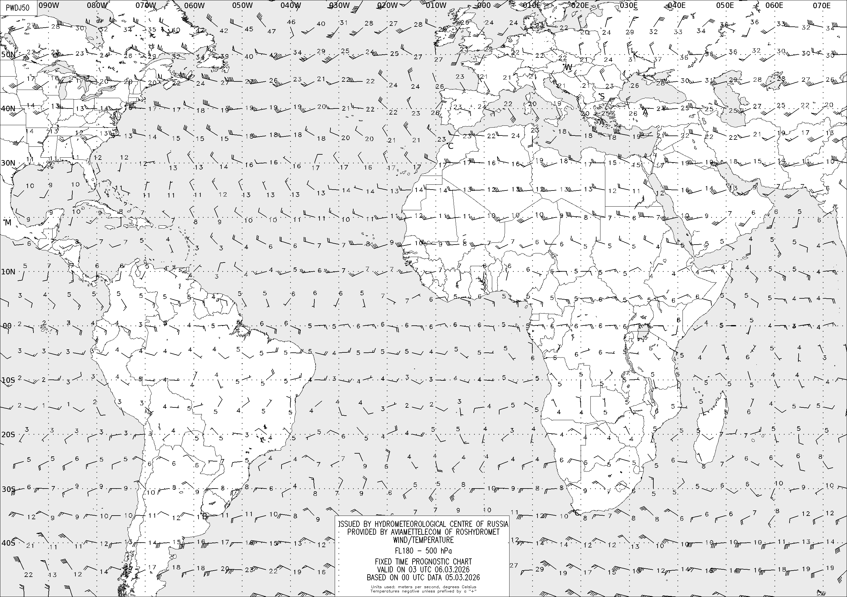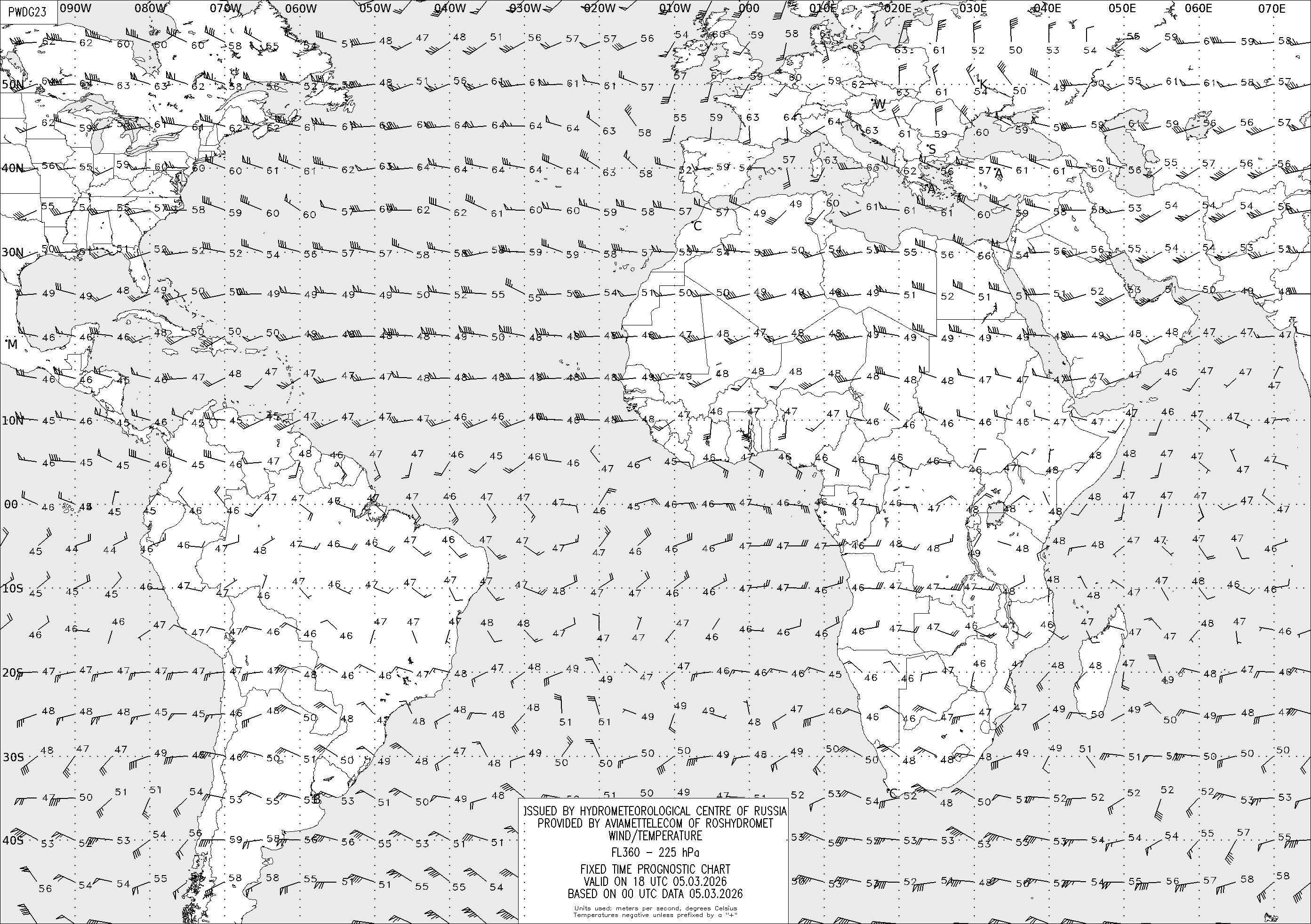 AREA D (Африка и Америка) по данным за 00 UTC 05.03.2026