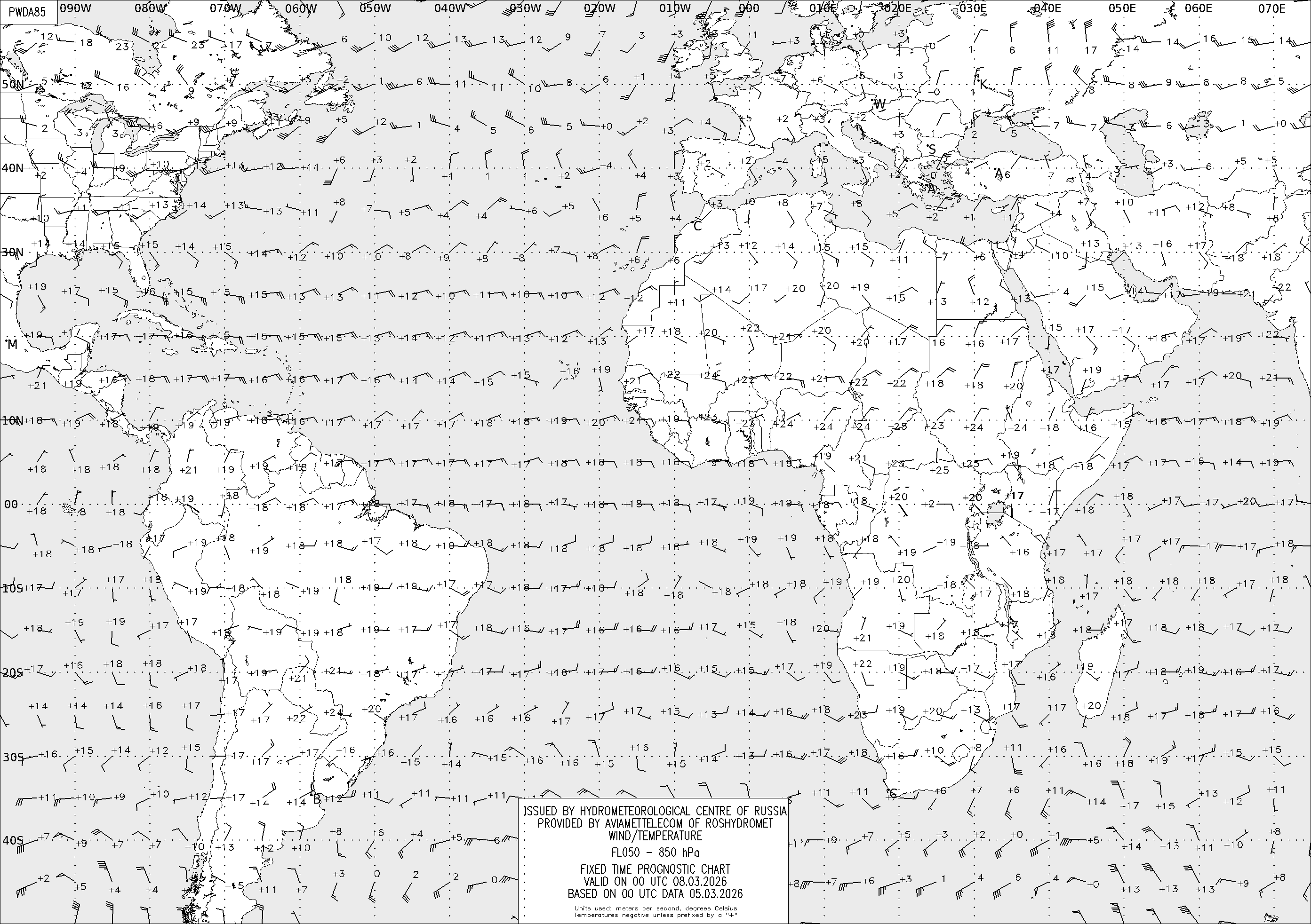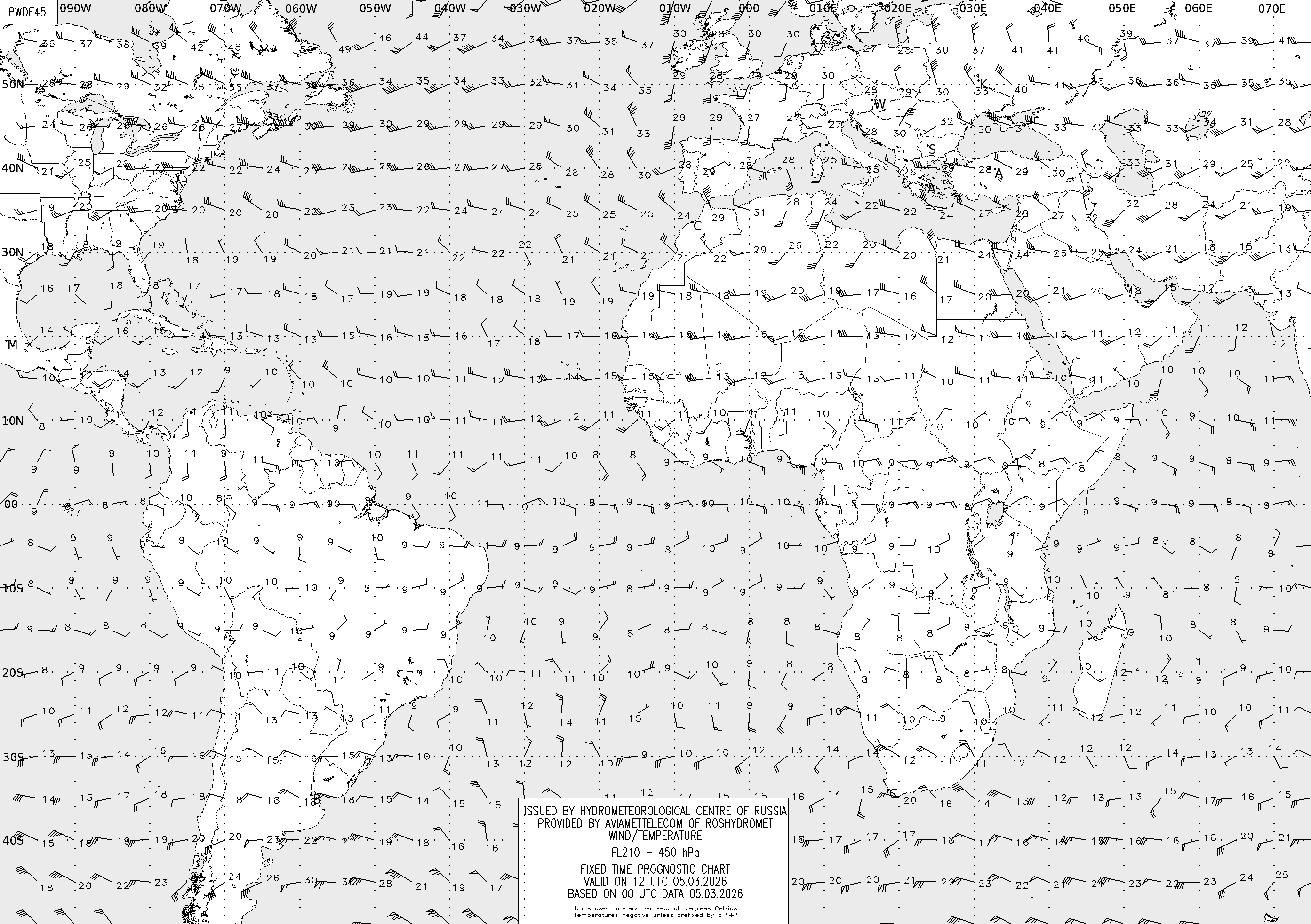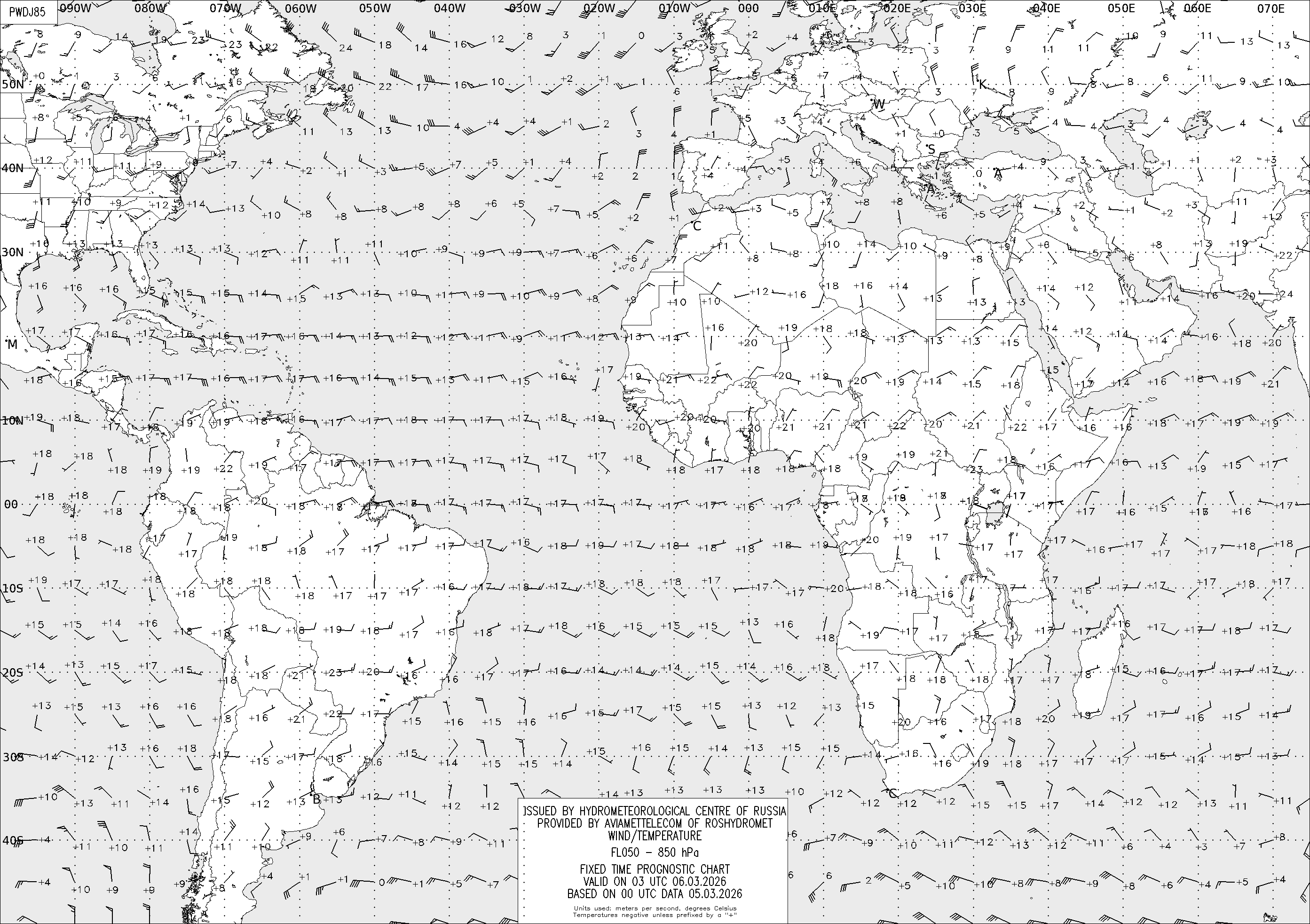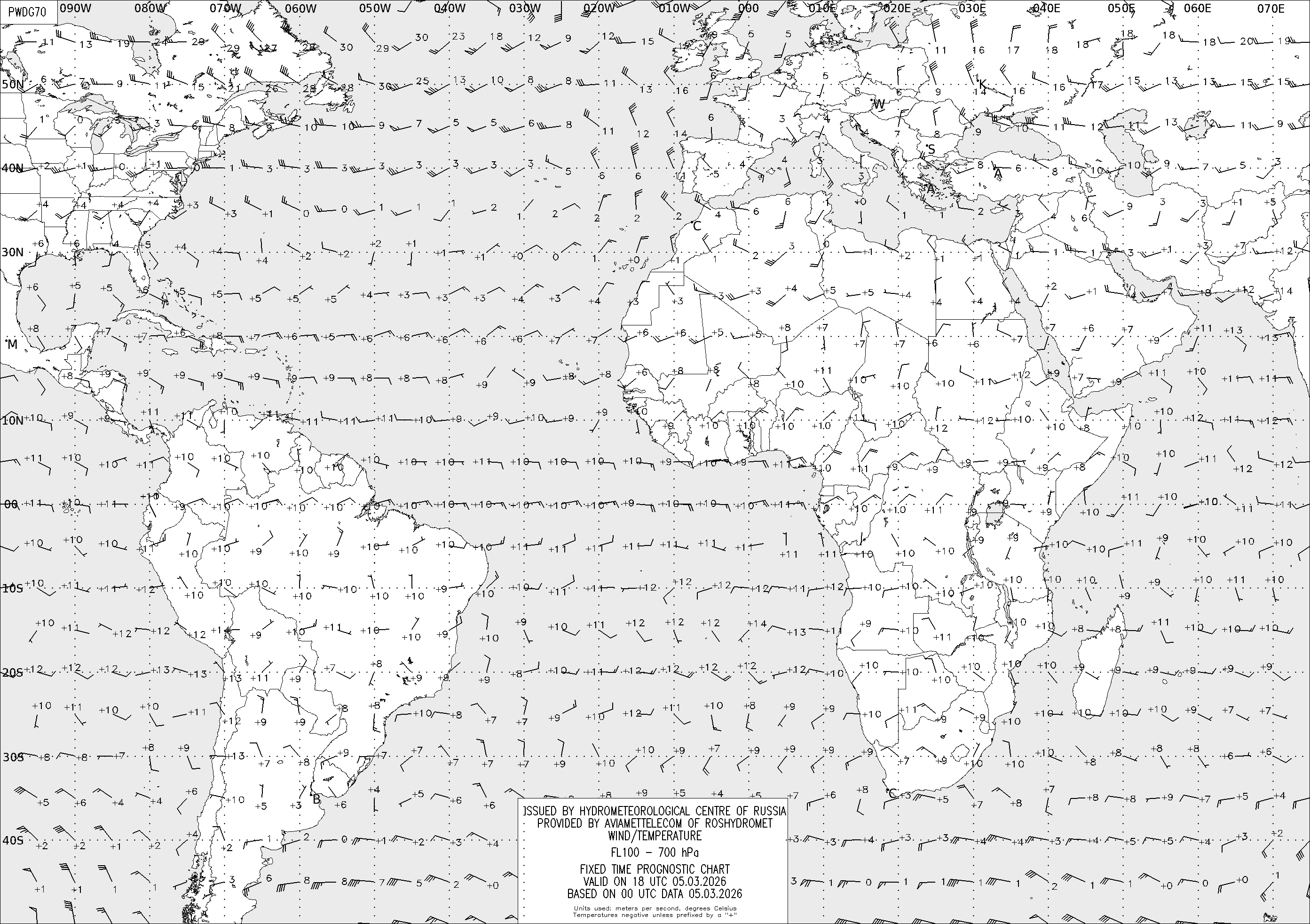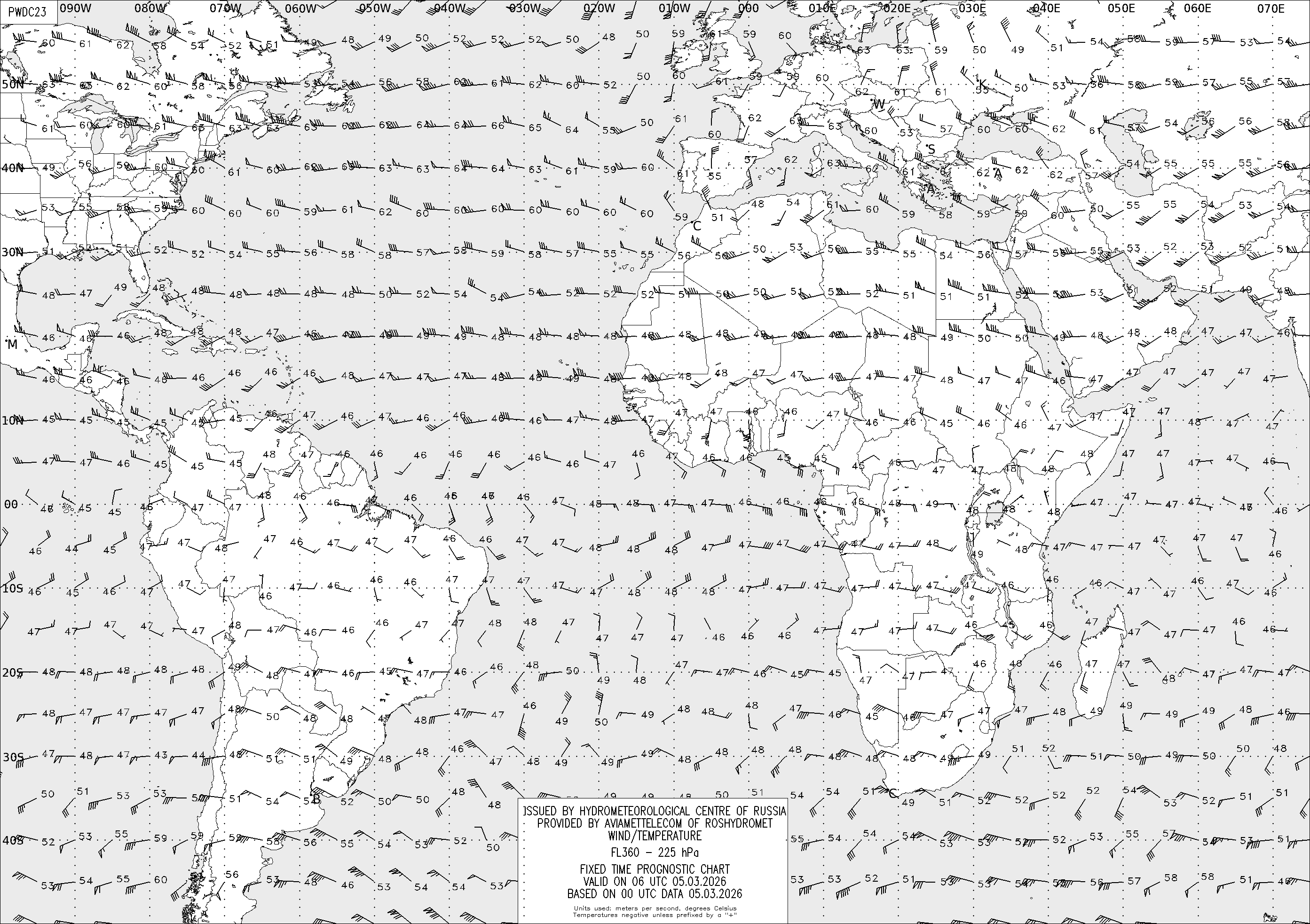 AREA D (Африка и Америка) по данным за 00 UTC 05.03.2026