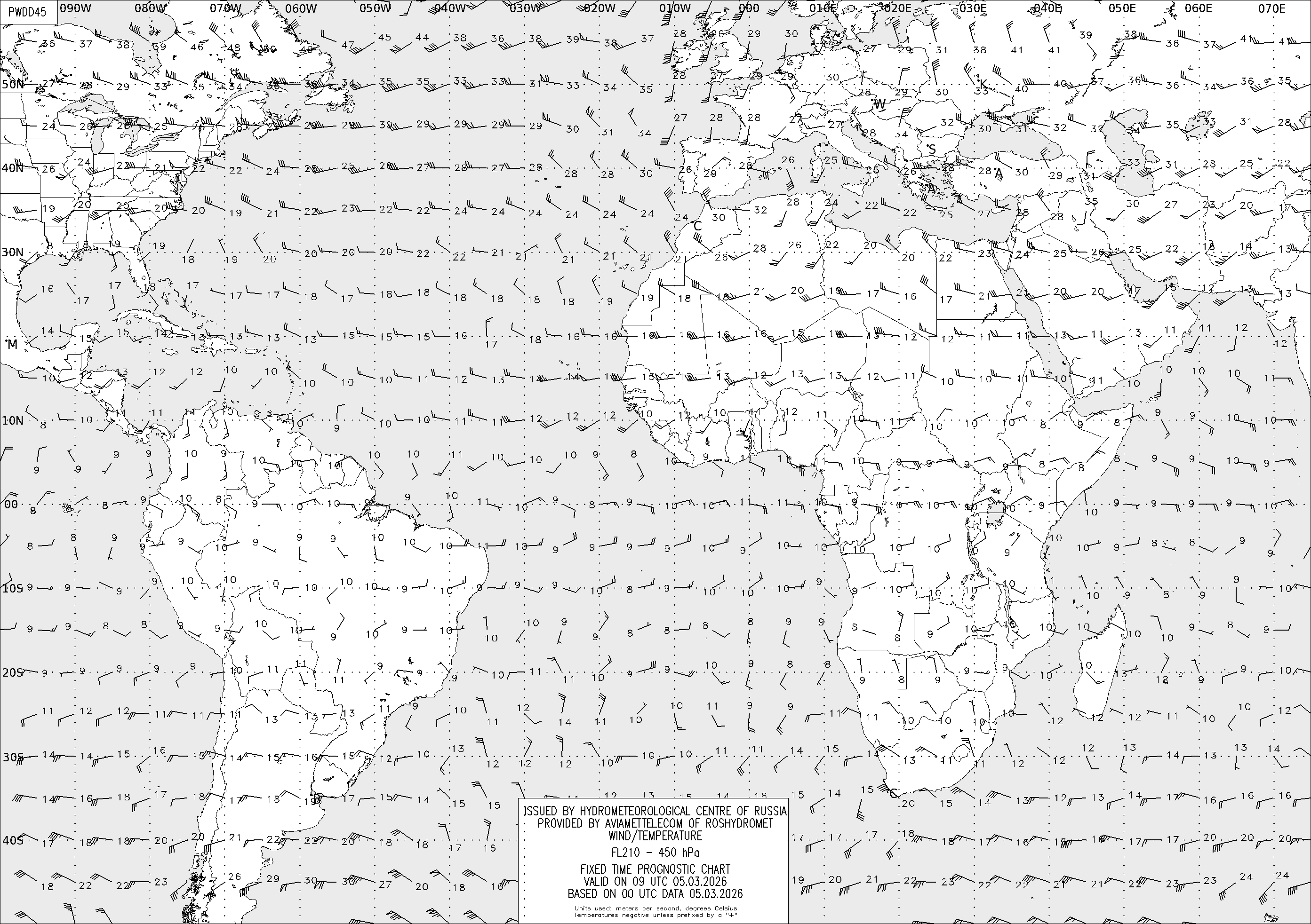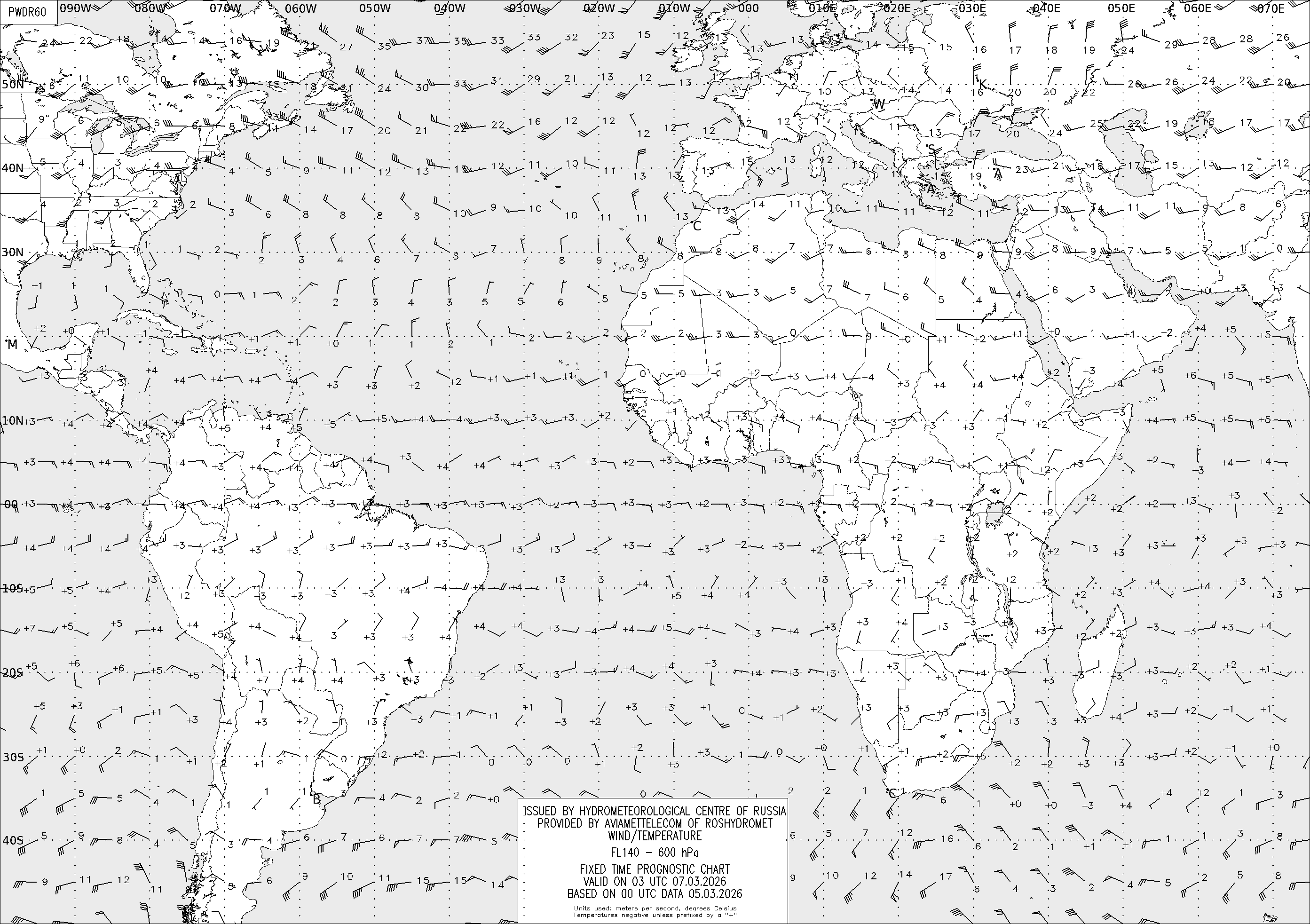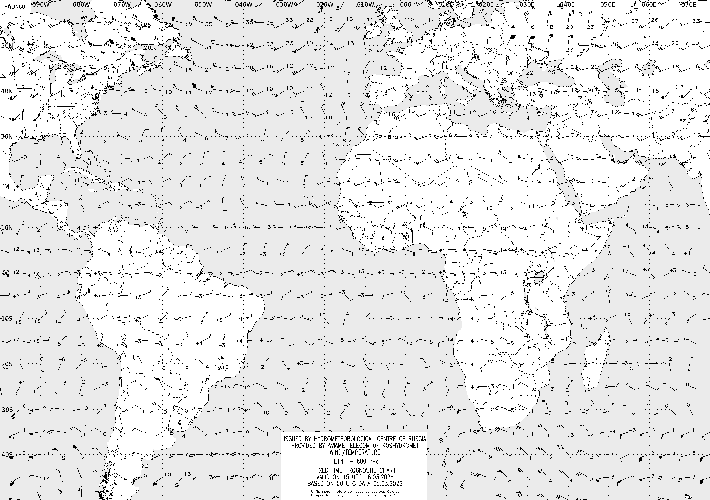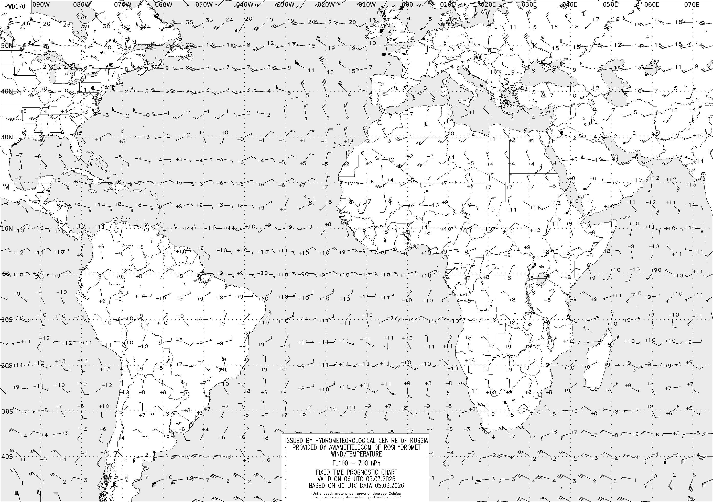AREA D (Африка и Америка) по данным за 00 UTC 05.03.2026