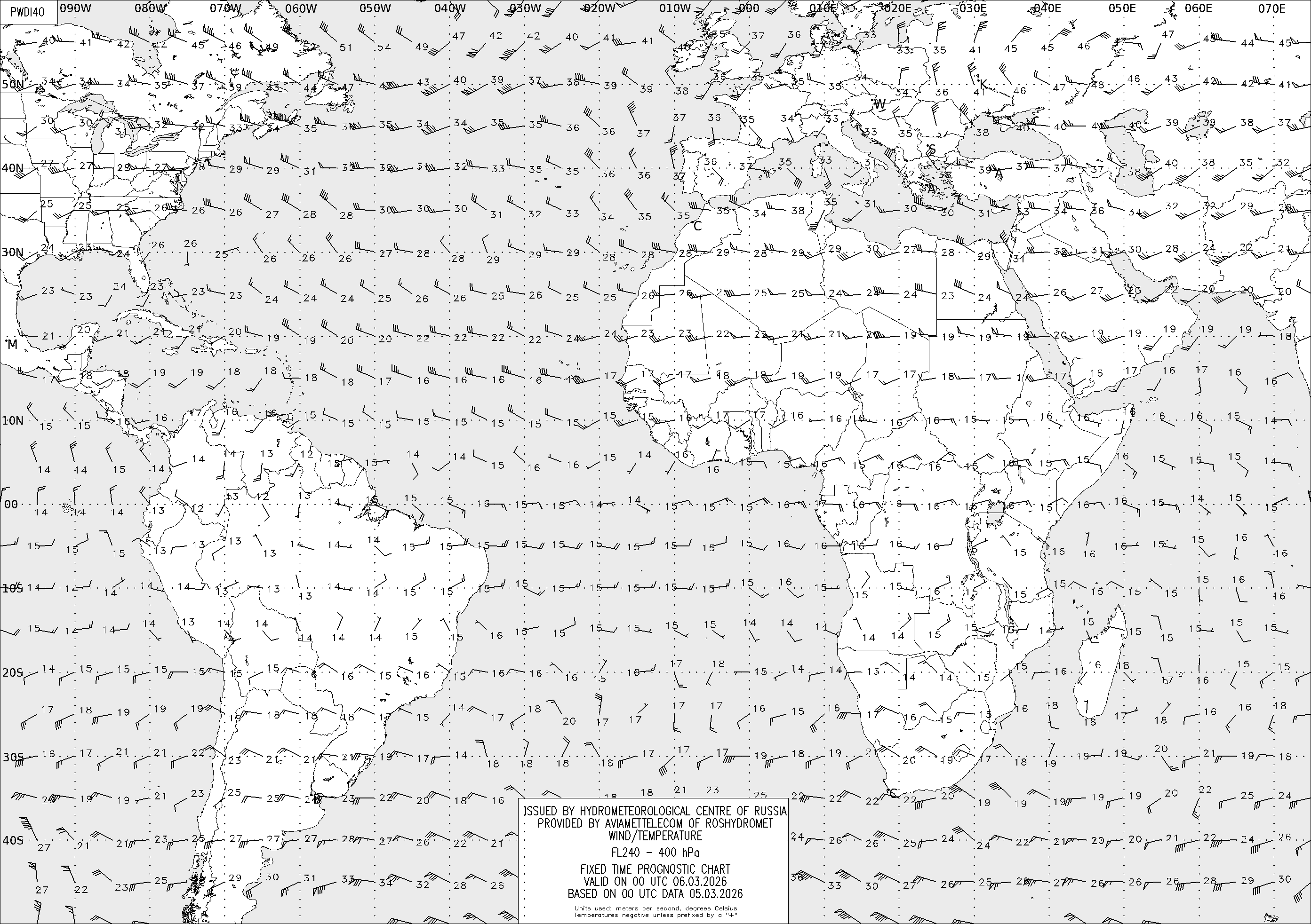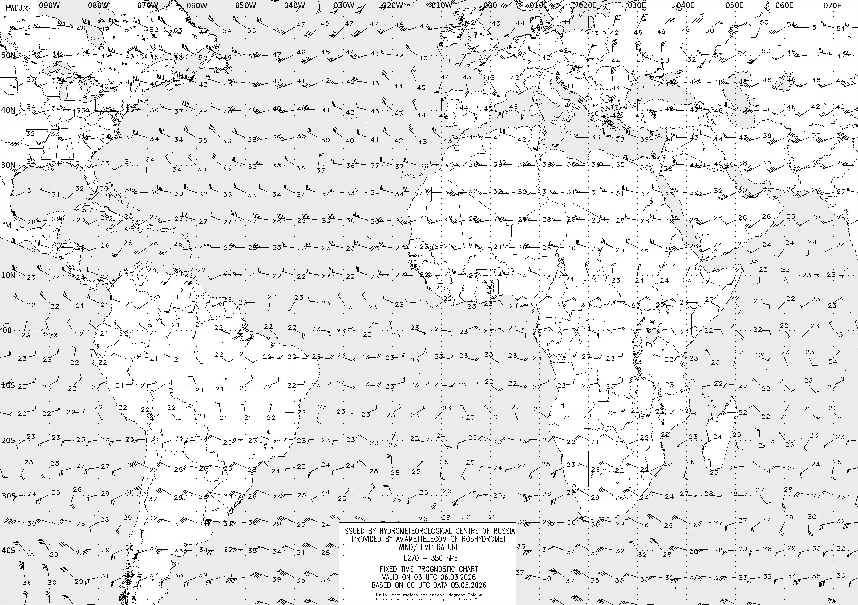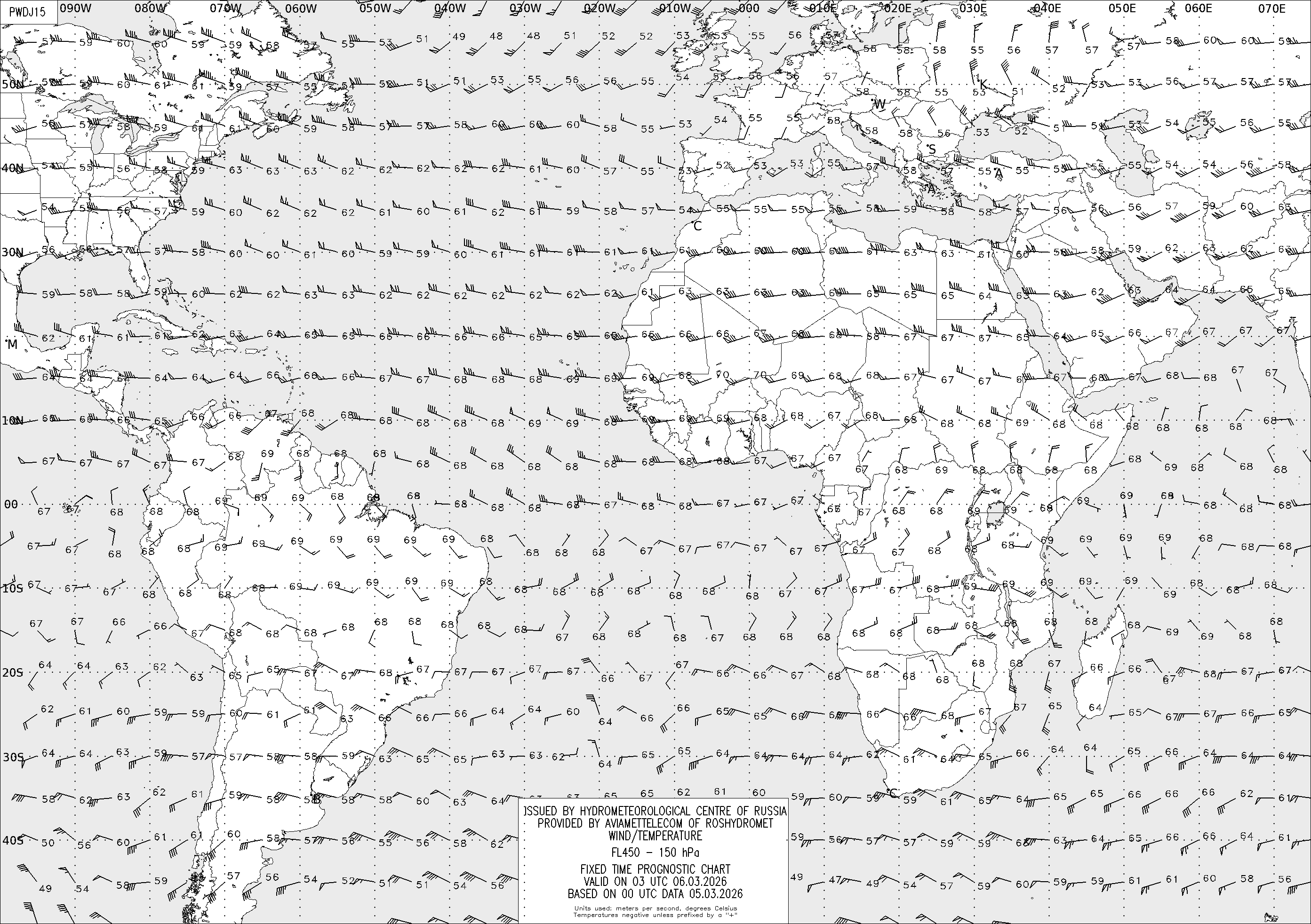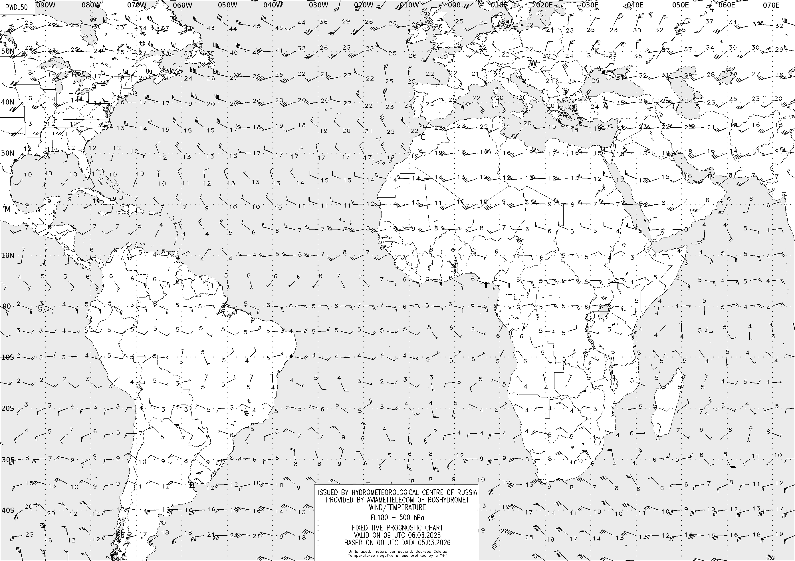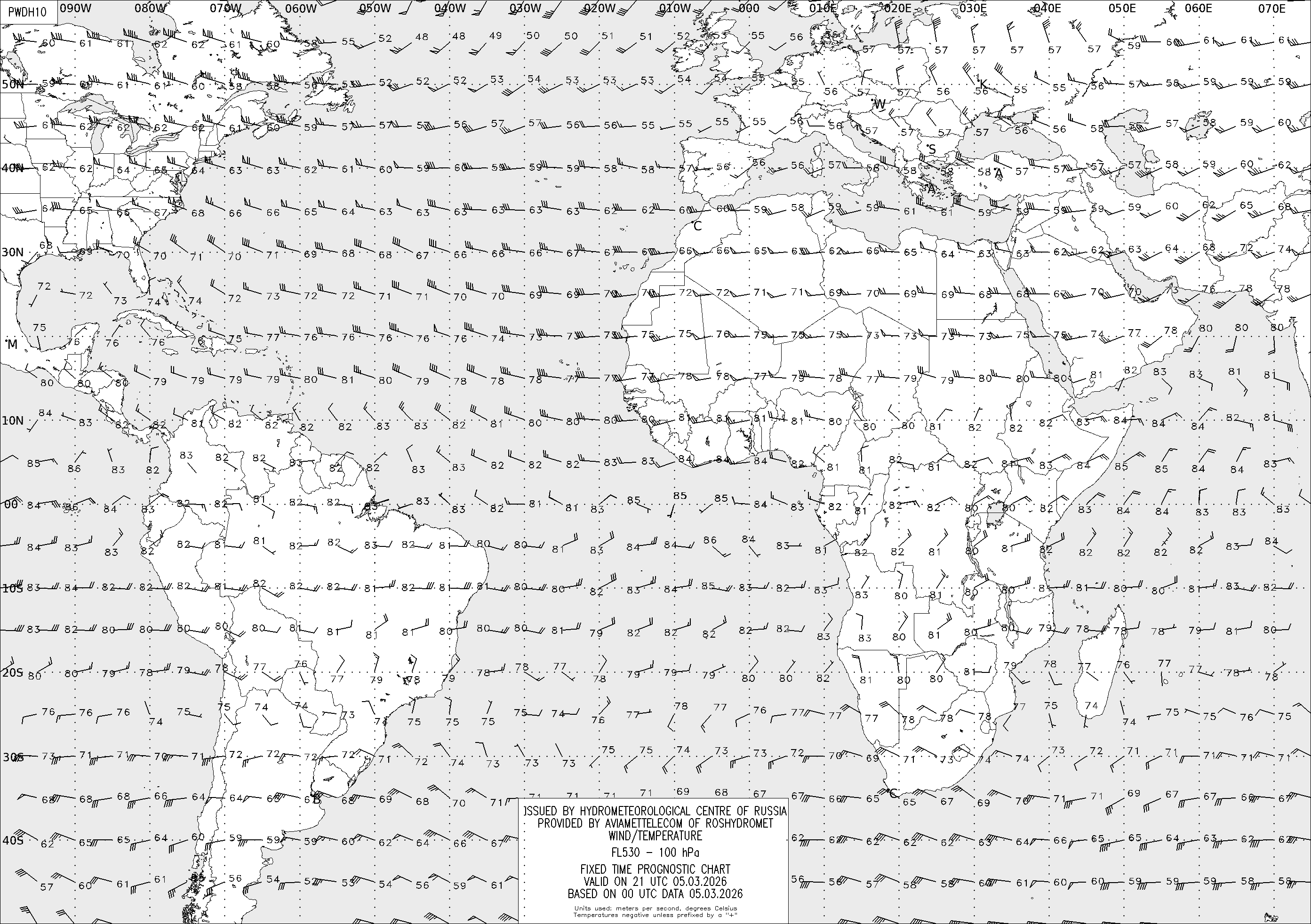 AREA D (Африка и Америка) по данным за 00 UTC 05.03.2026