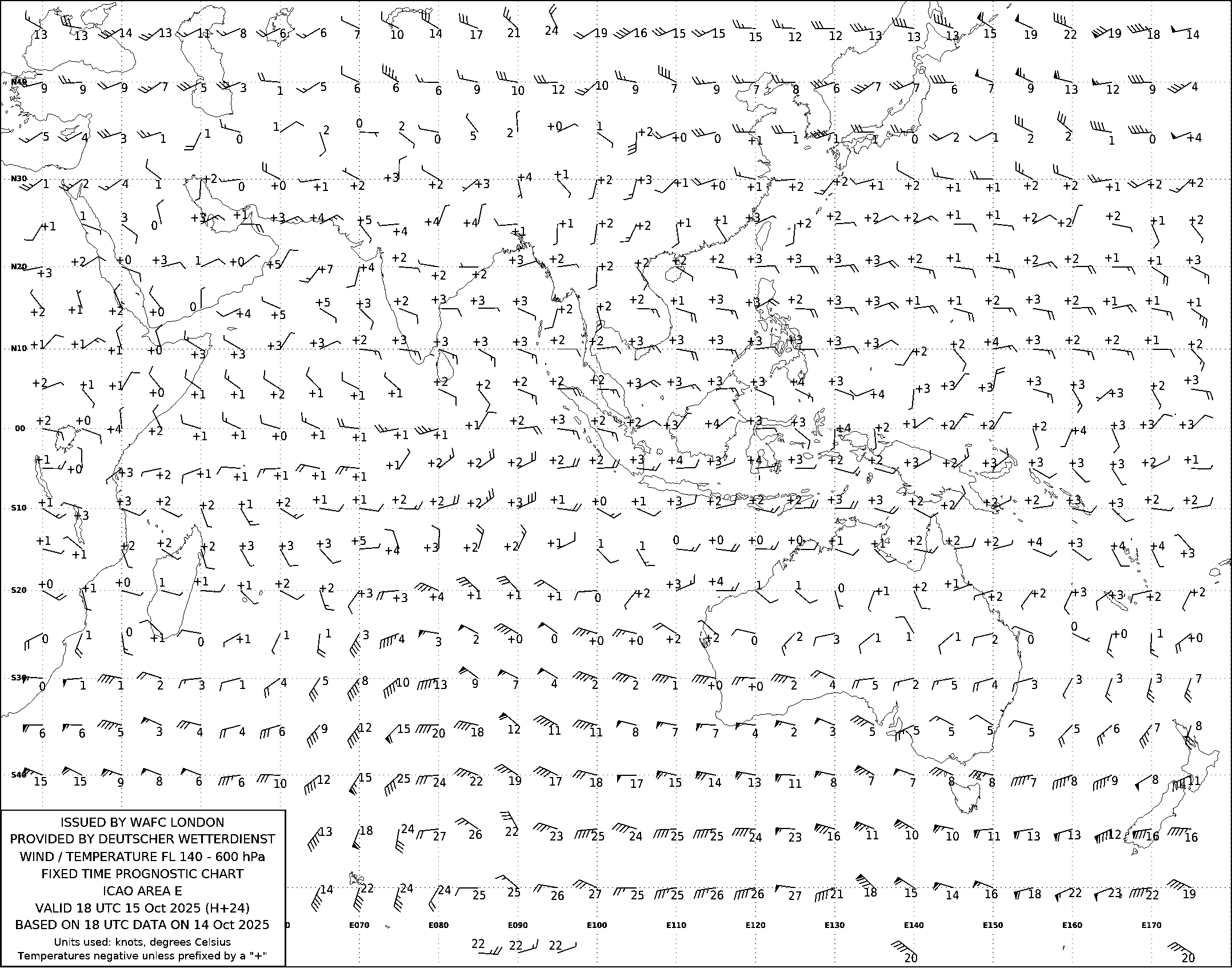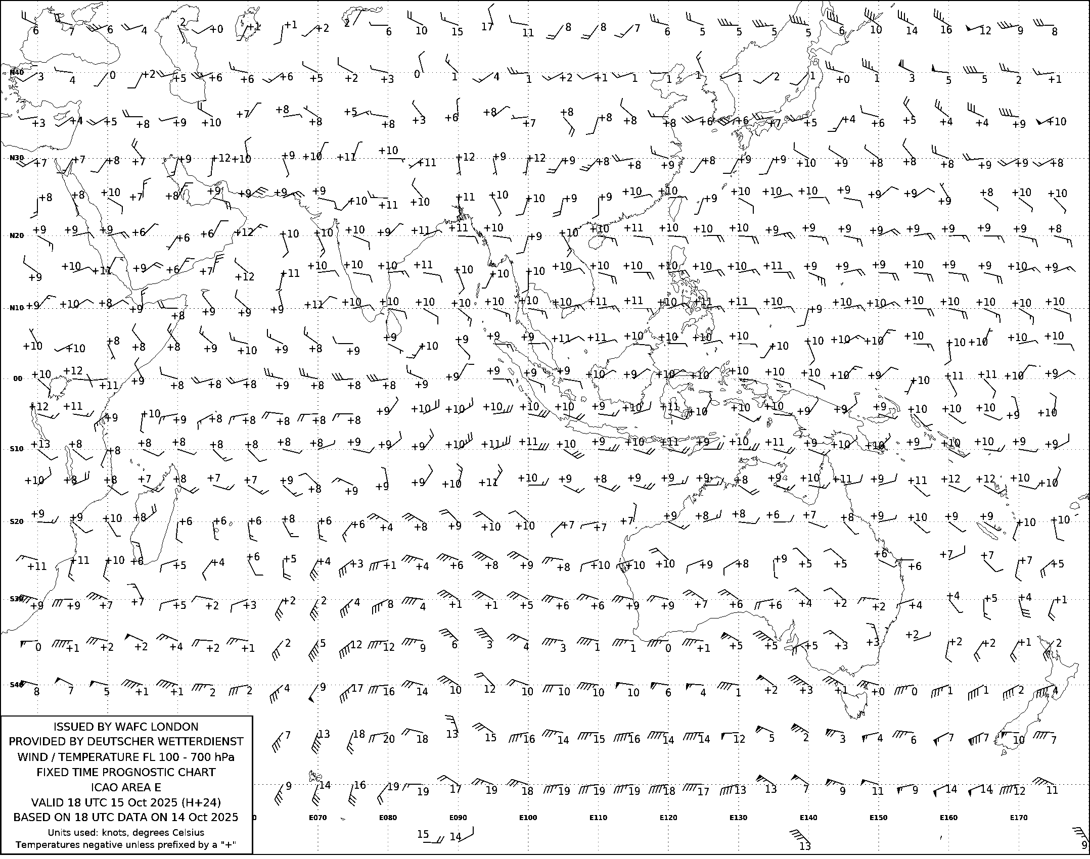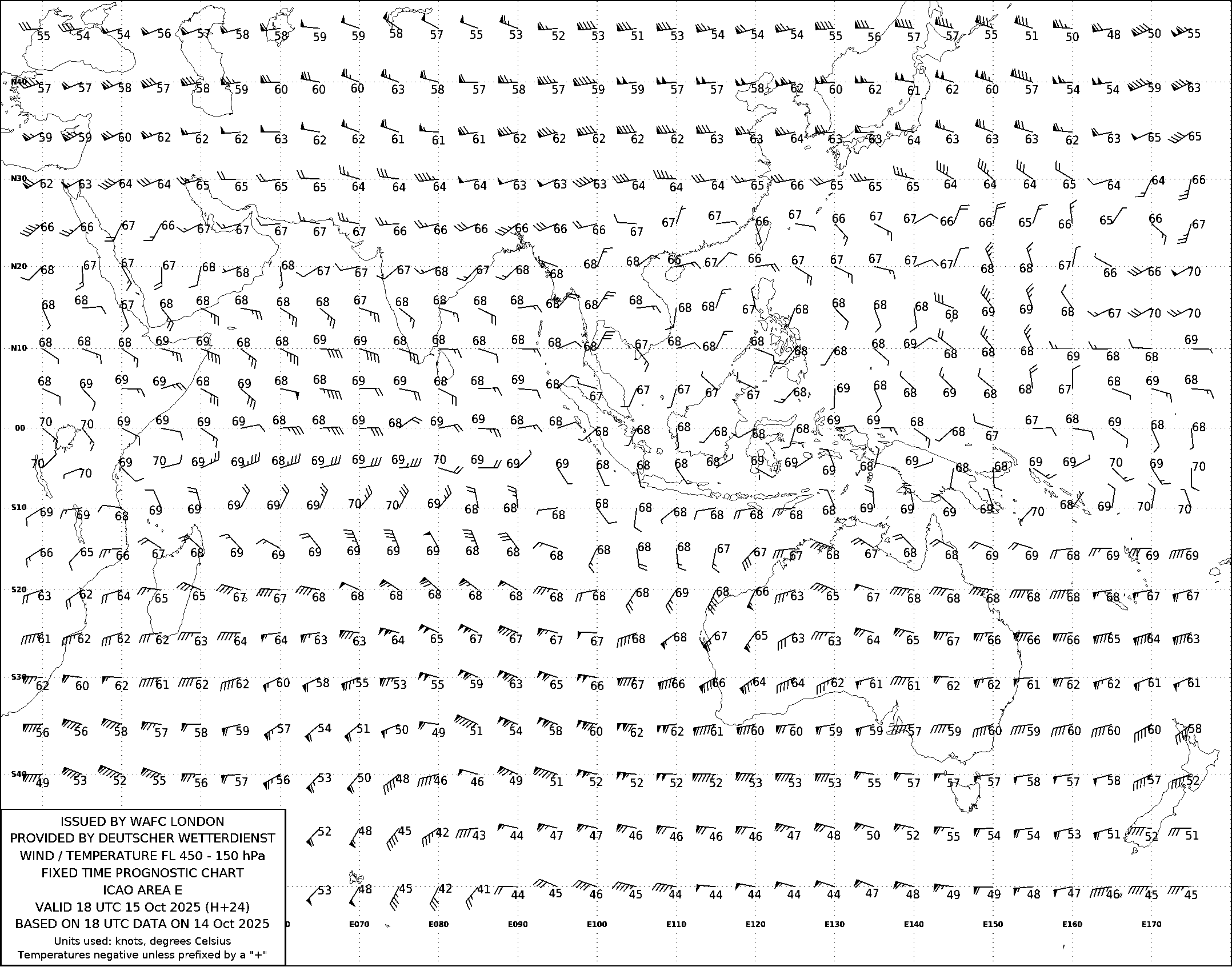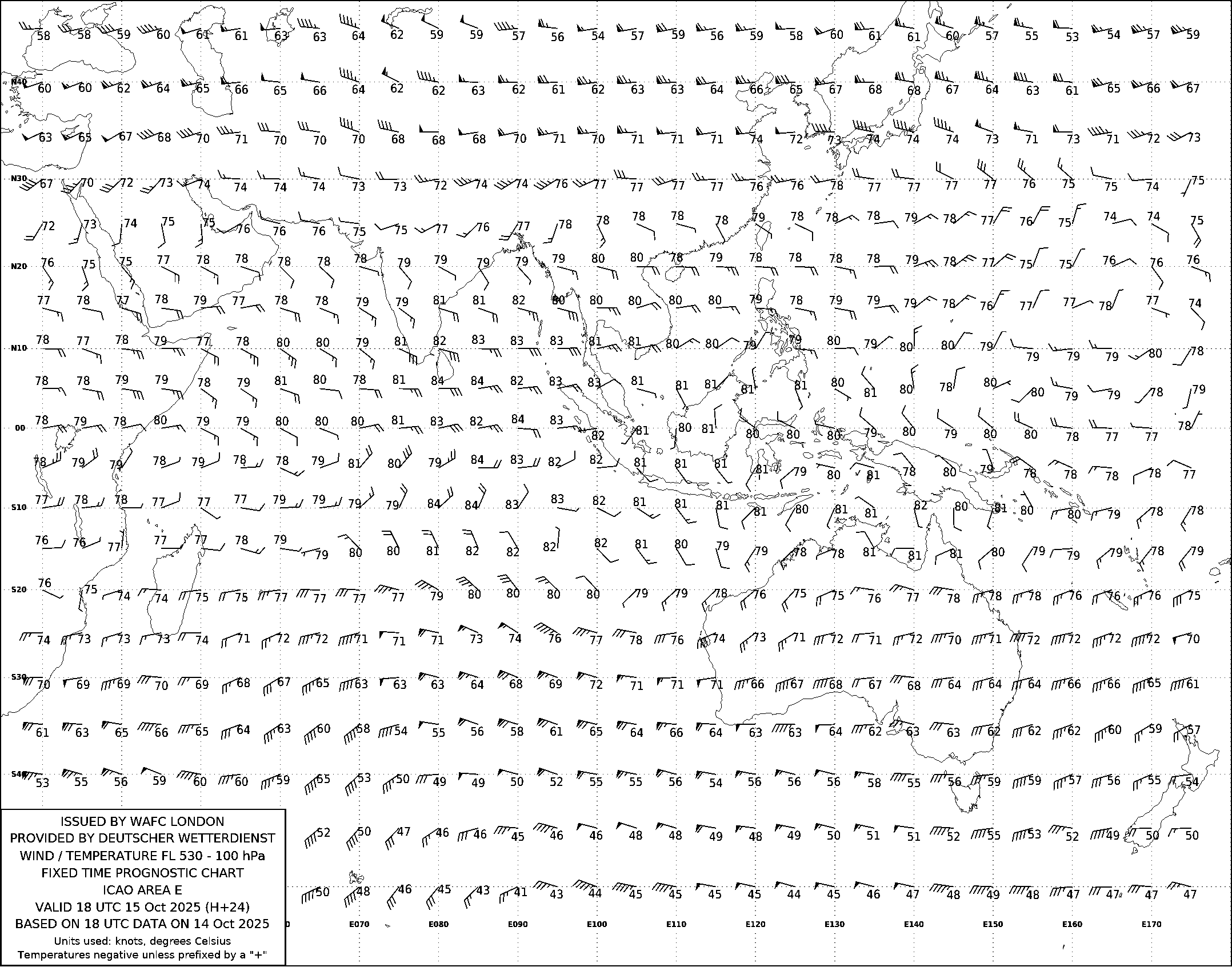 AREA E (Азия, Австралия и Индийский океан) по данным за 18 UTC 14.10.2025