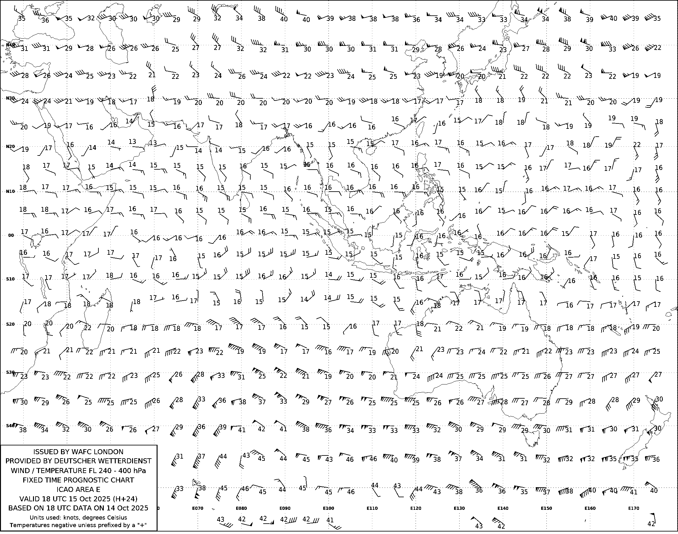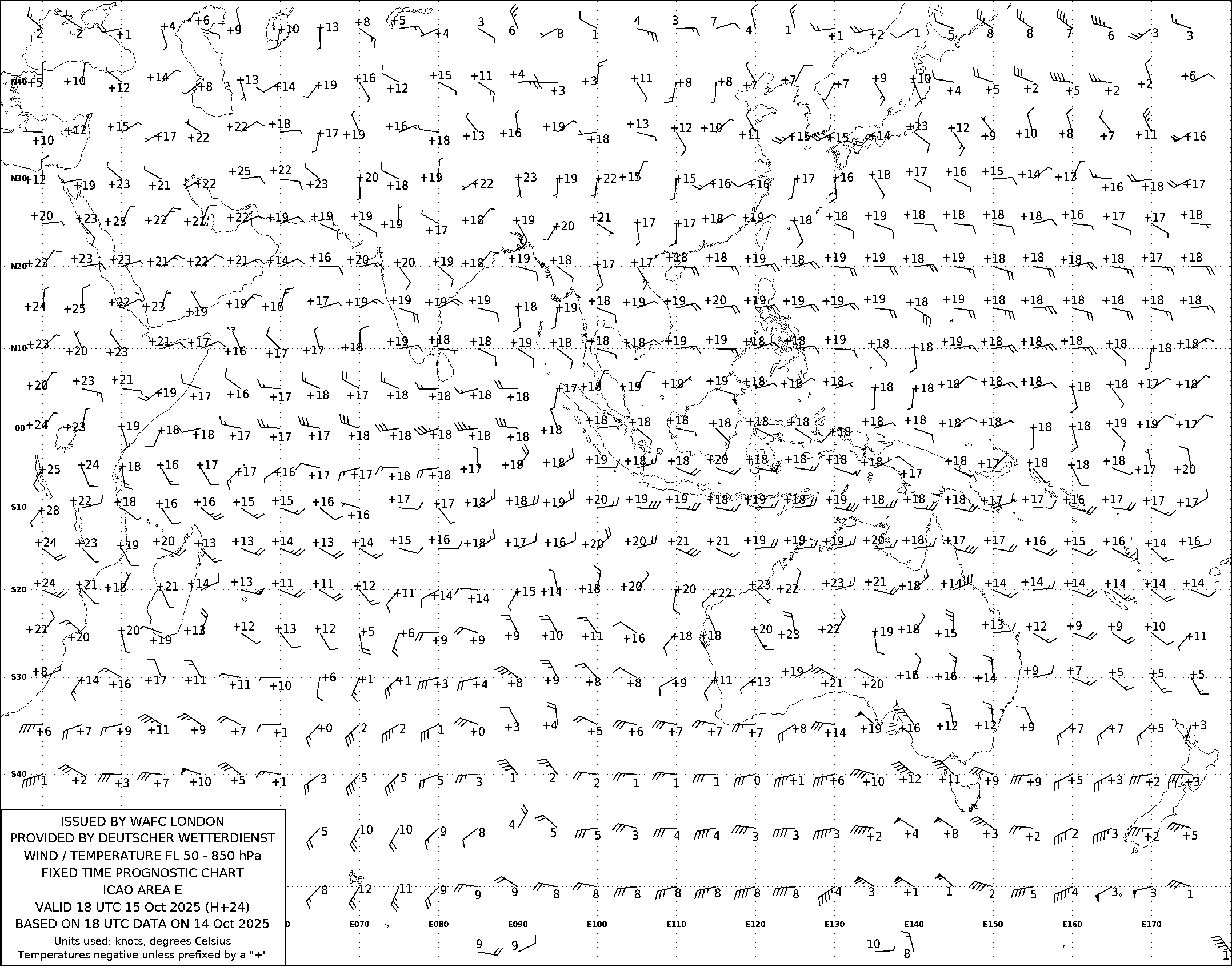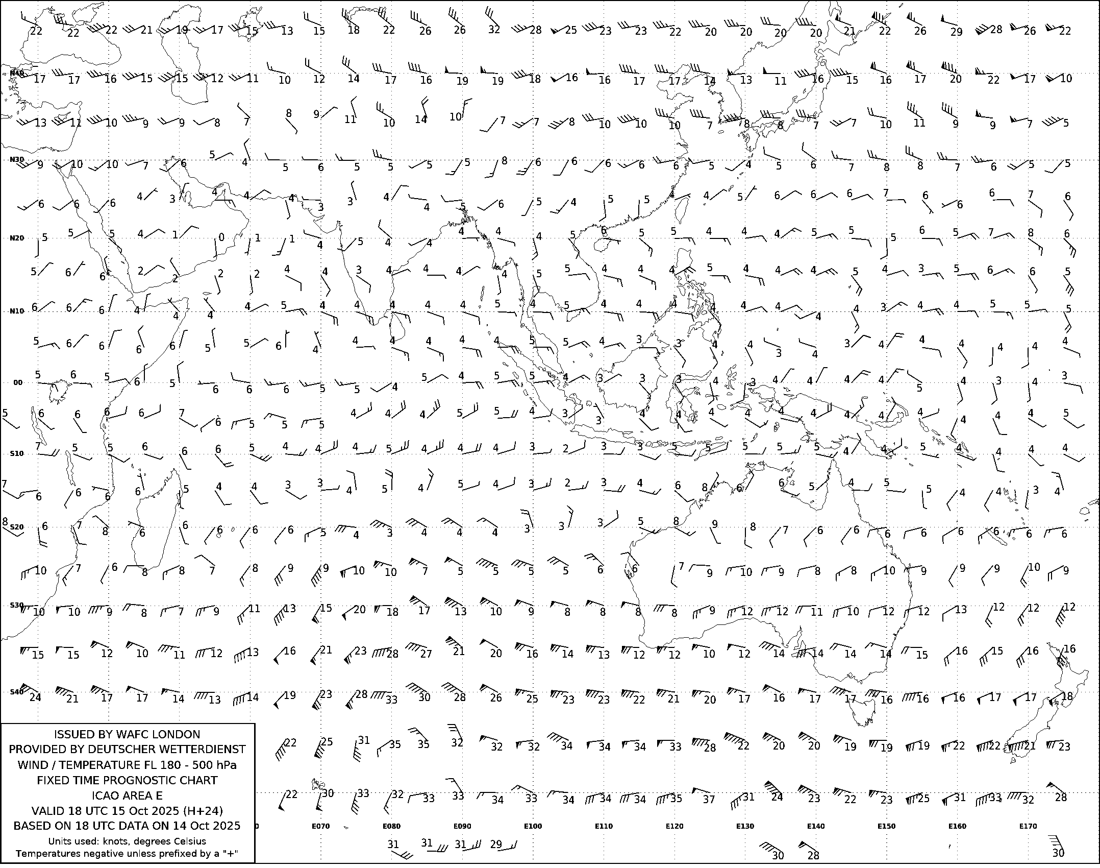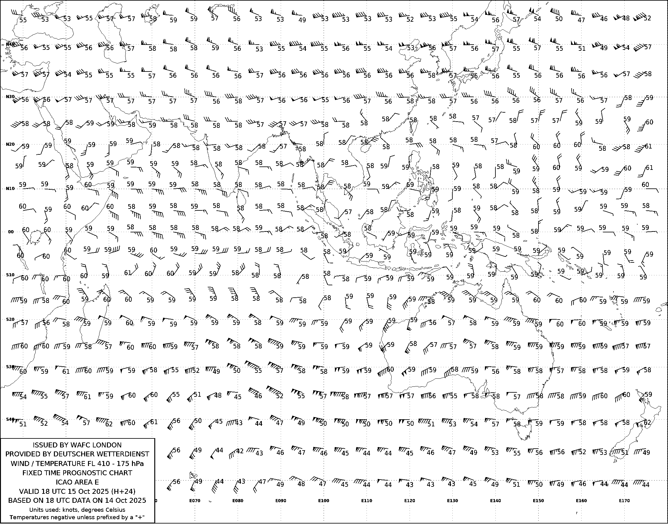 AREA E (Азия, Австралия и Индийский океан) по данным за 18 UTC 14.10.2025