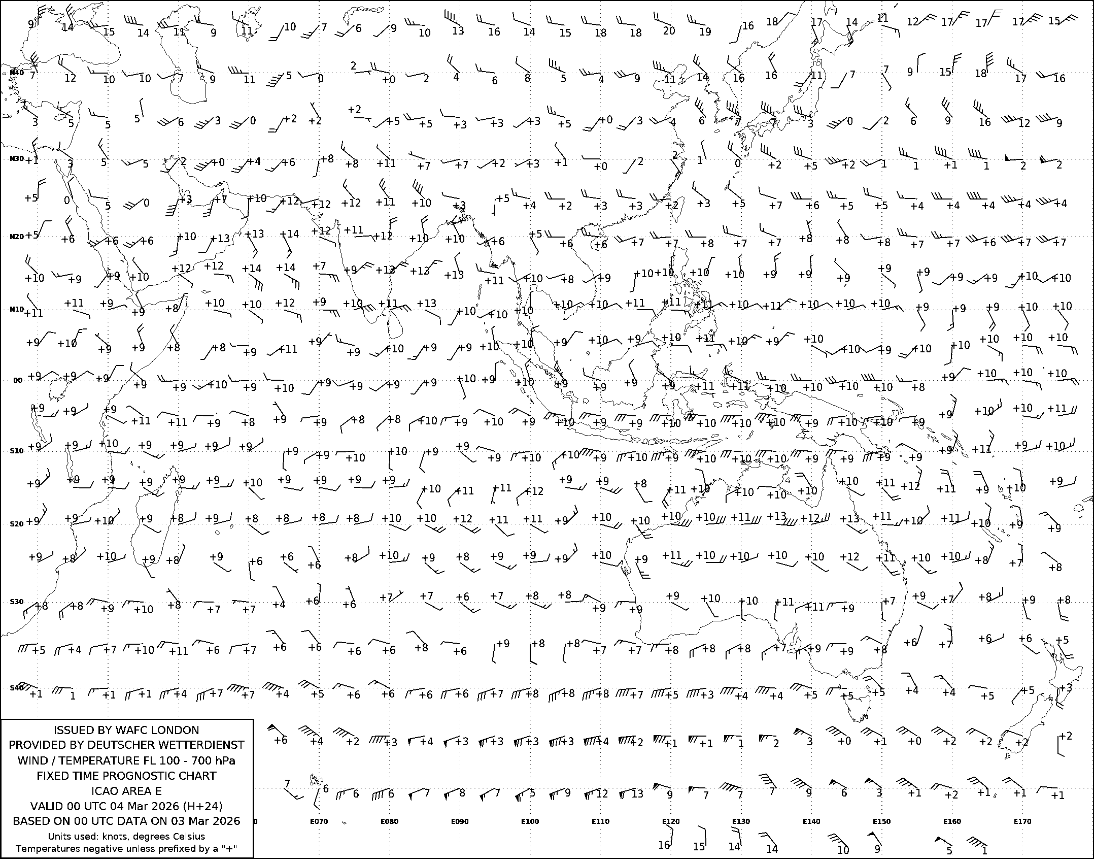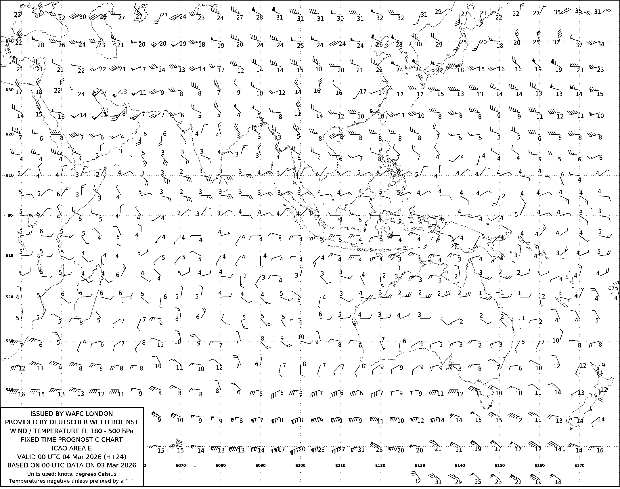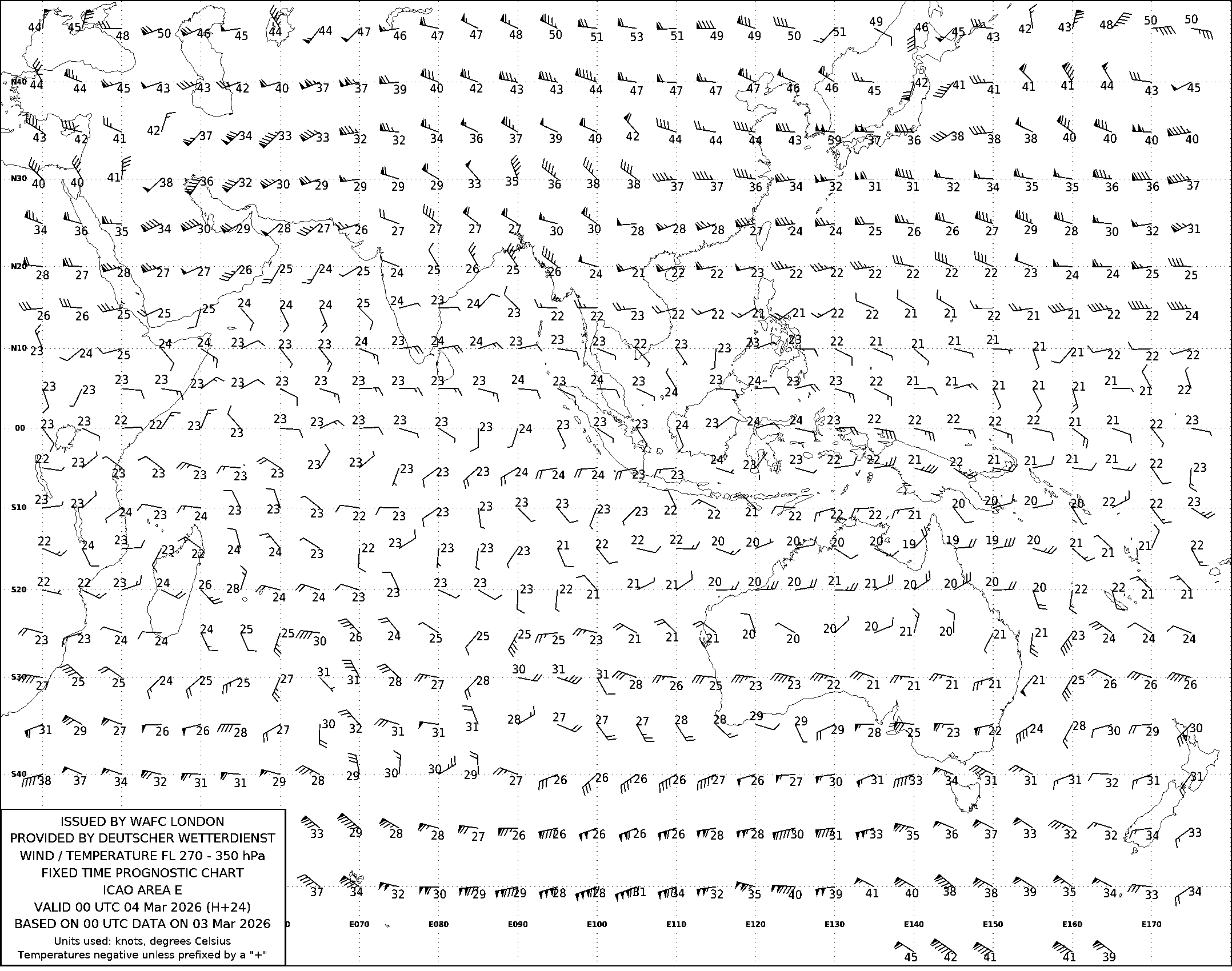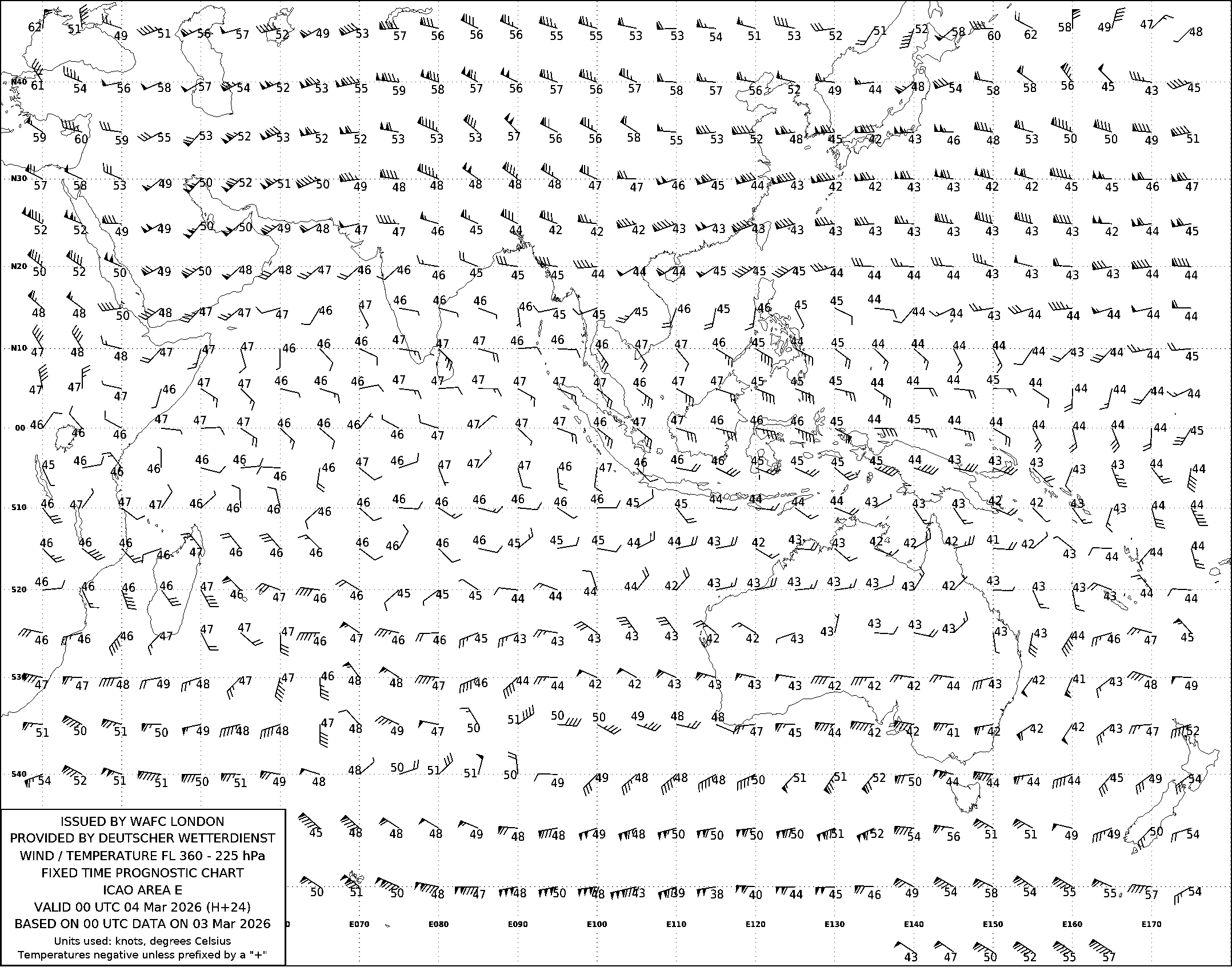 AREA E (Азия, Австралия и Индийский океан) по данным за 00 UTC 03.03.2026