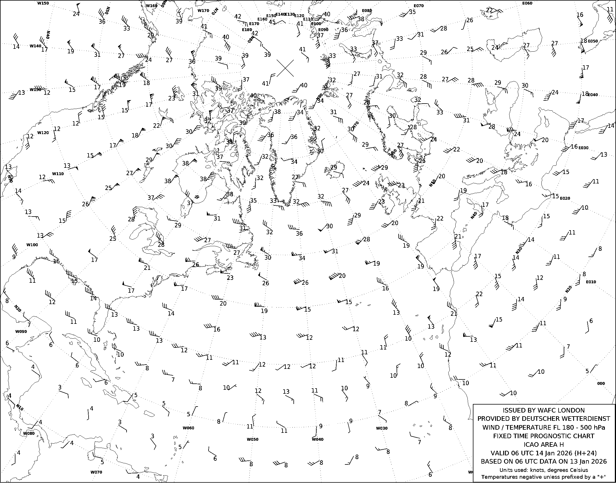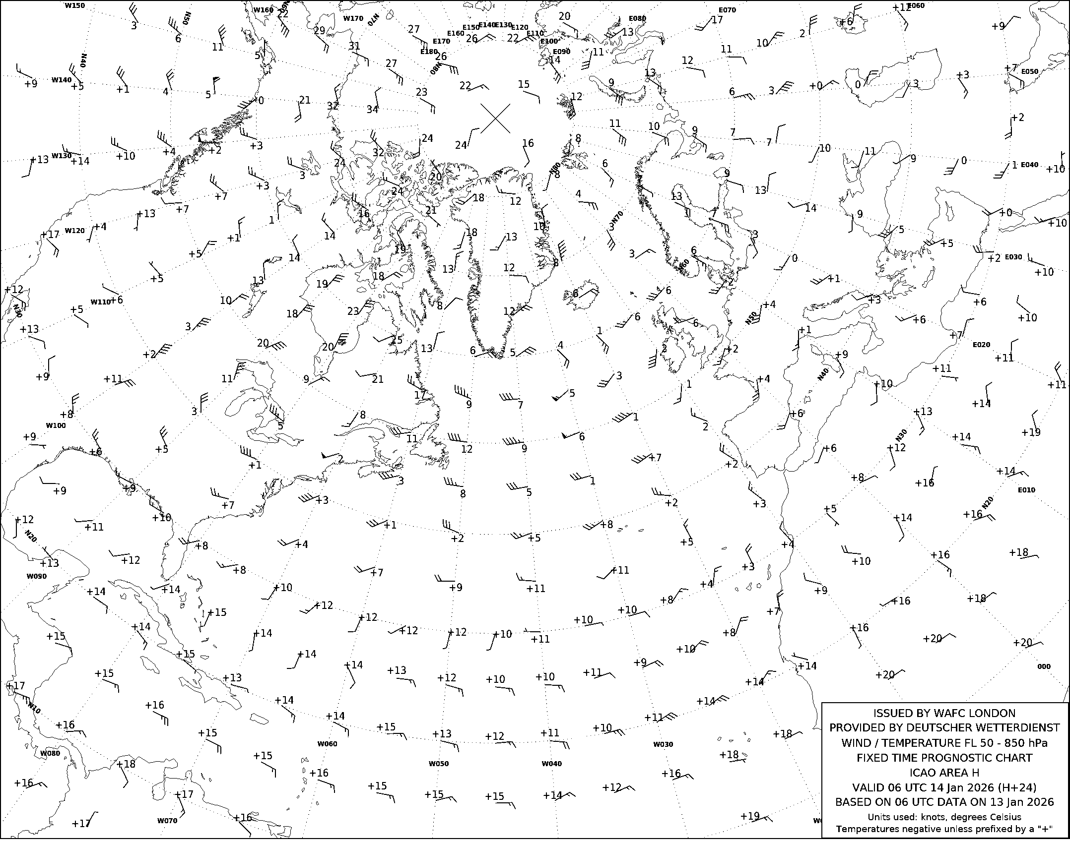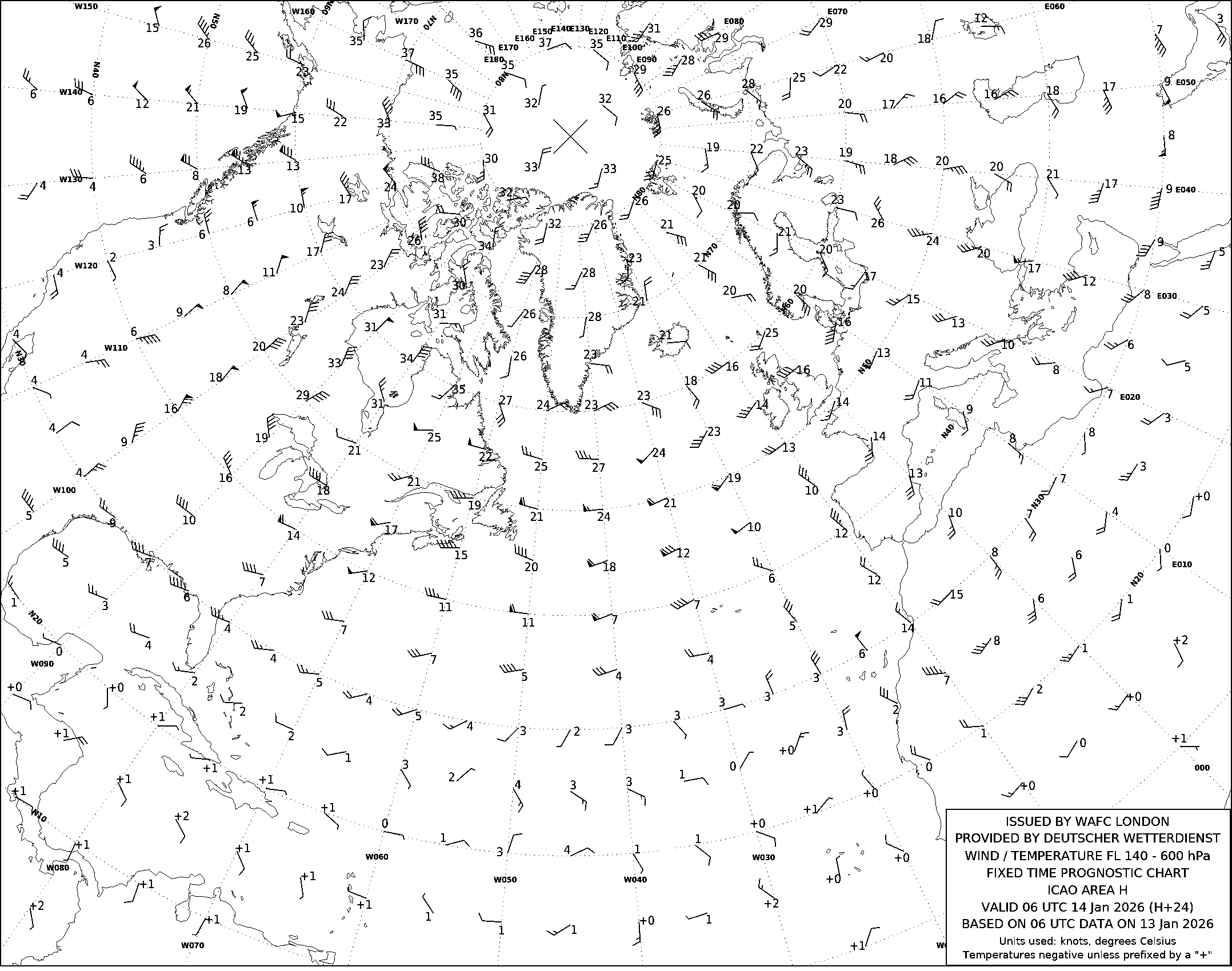 AREA H (Европа, Северная Африка и Северная Америка) по данным за 06 UTC 13.01.2026