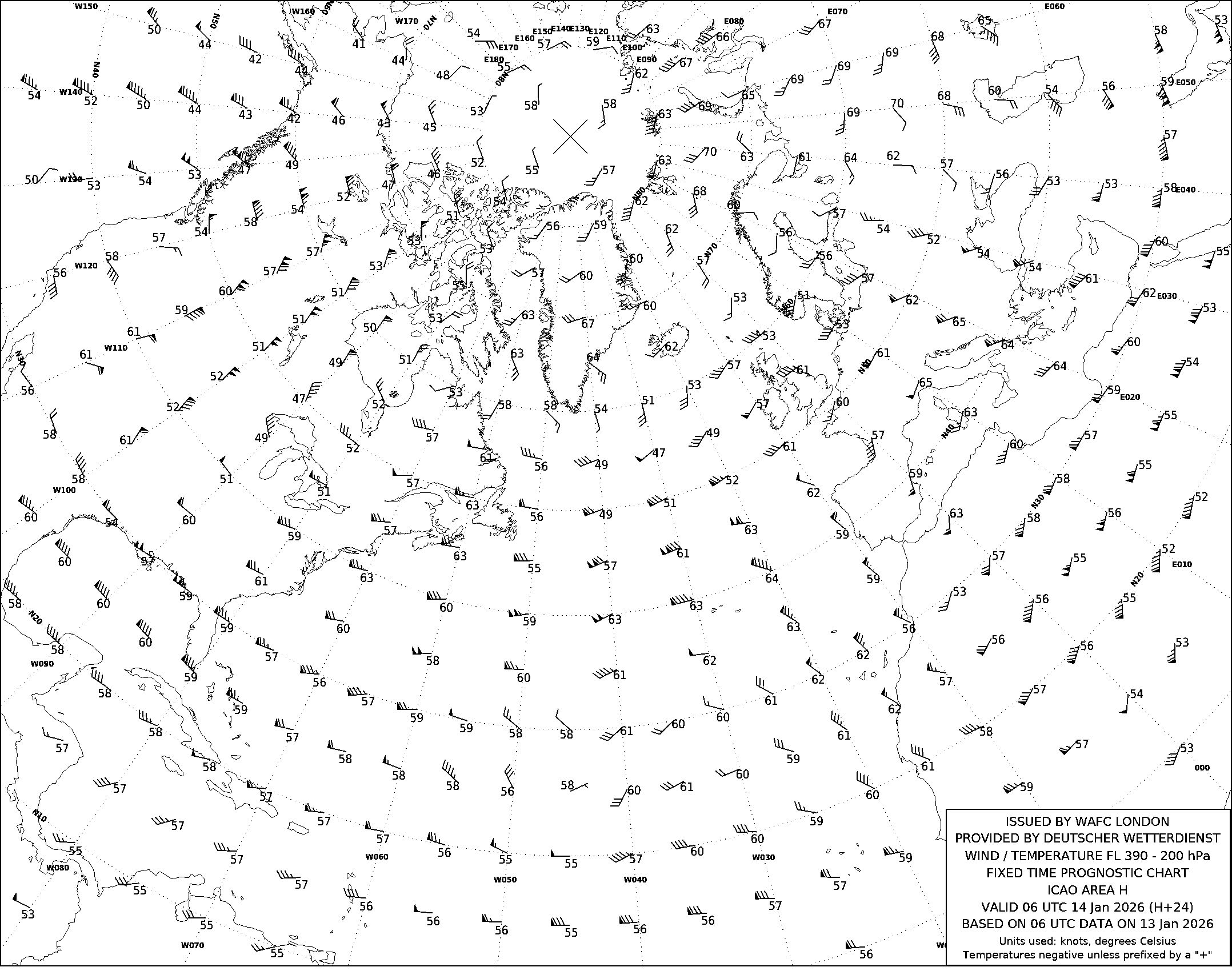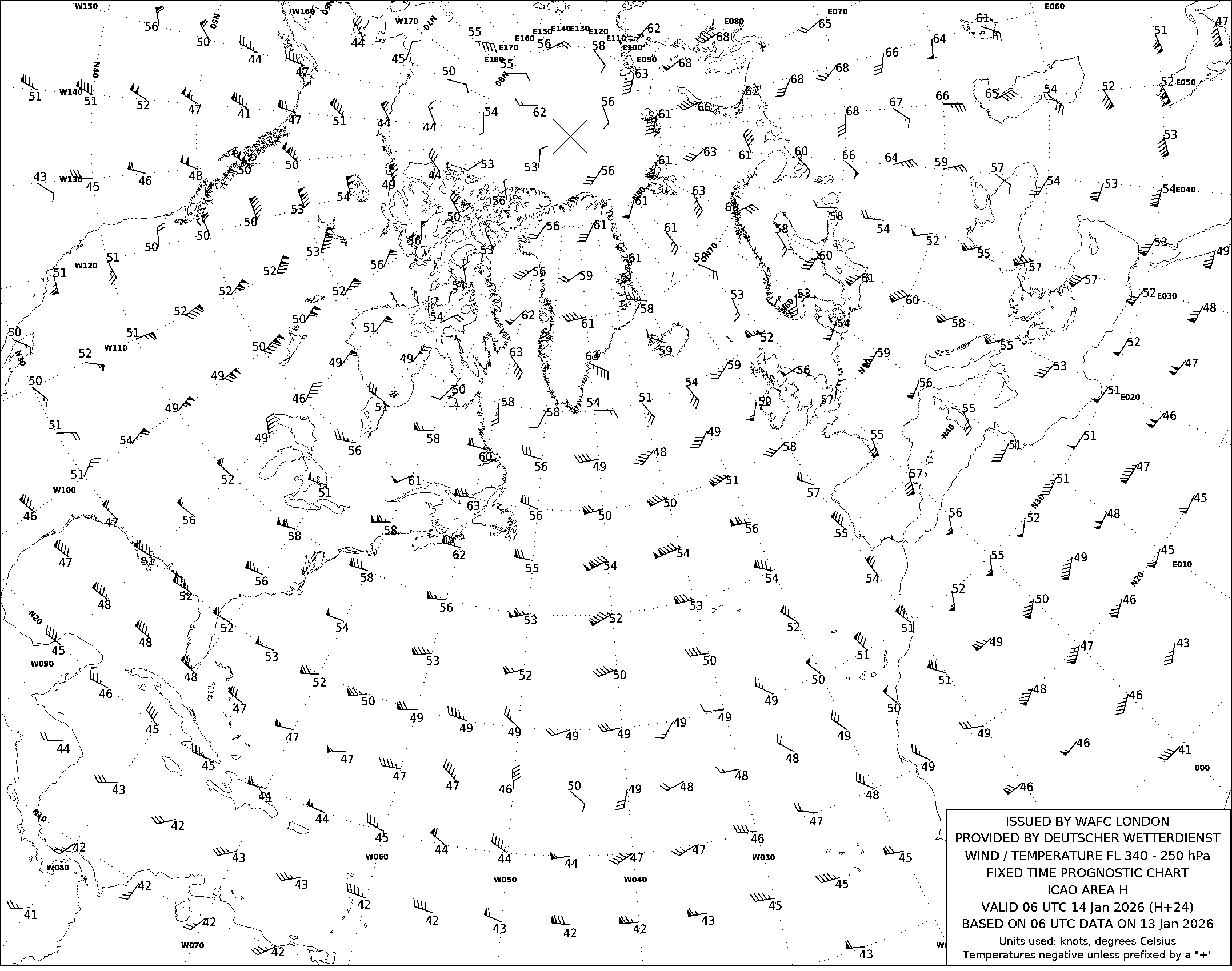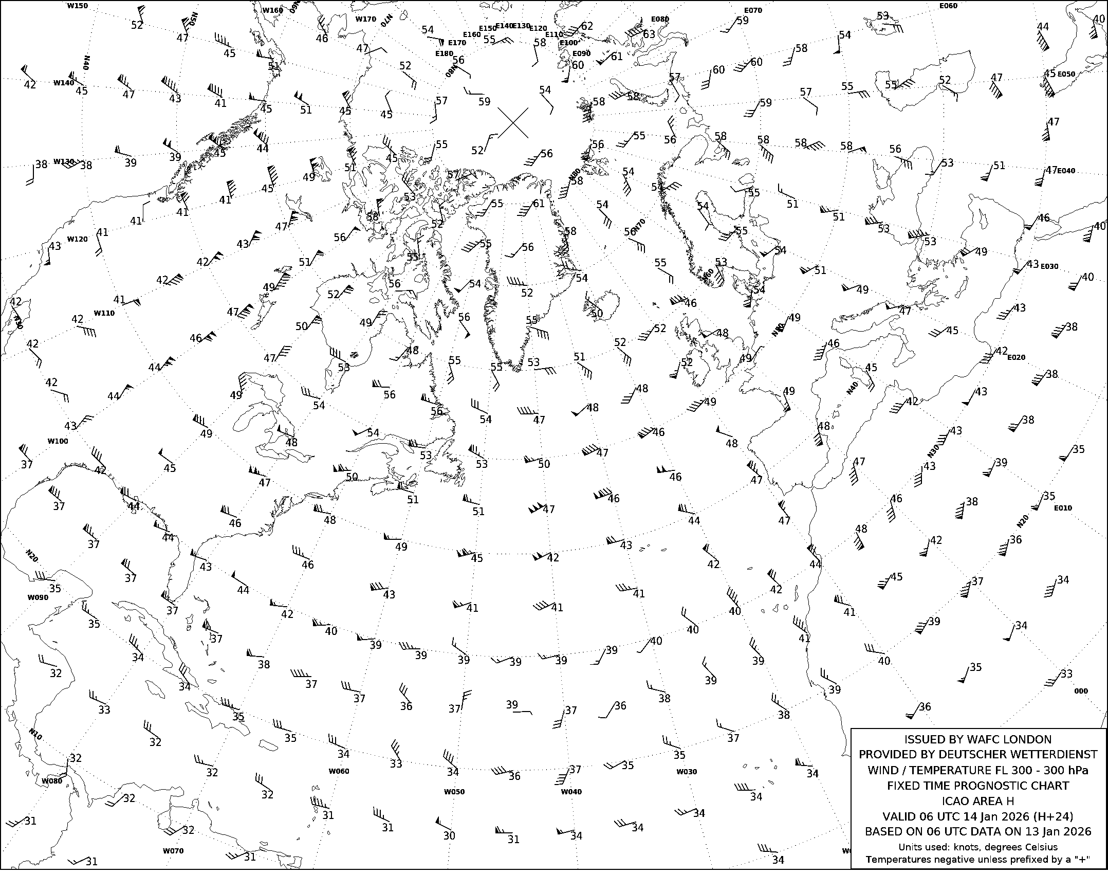 AREA H (Европа, Северная Африка и Северная Америка) по данным за 06 UTC 13.01.2026