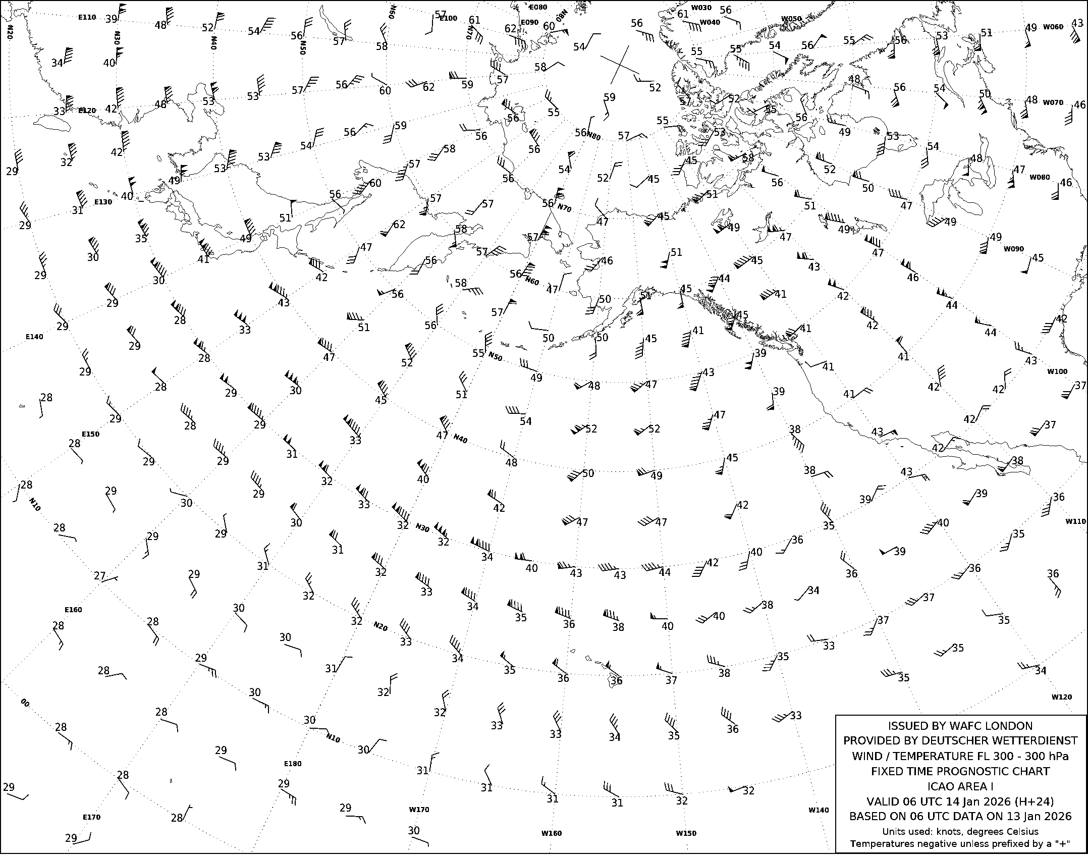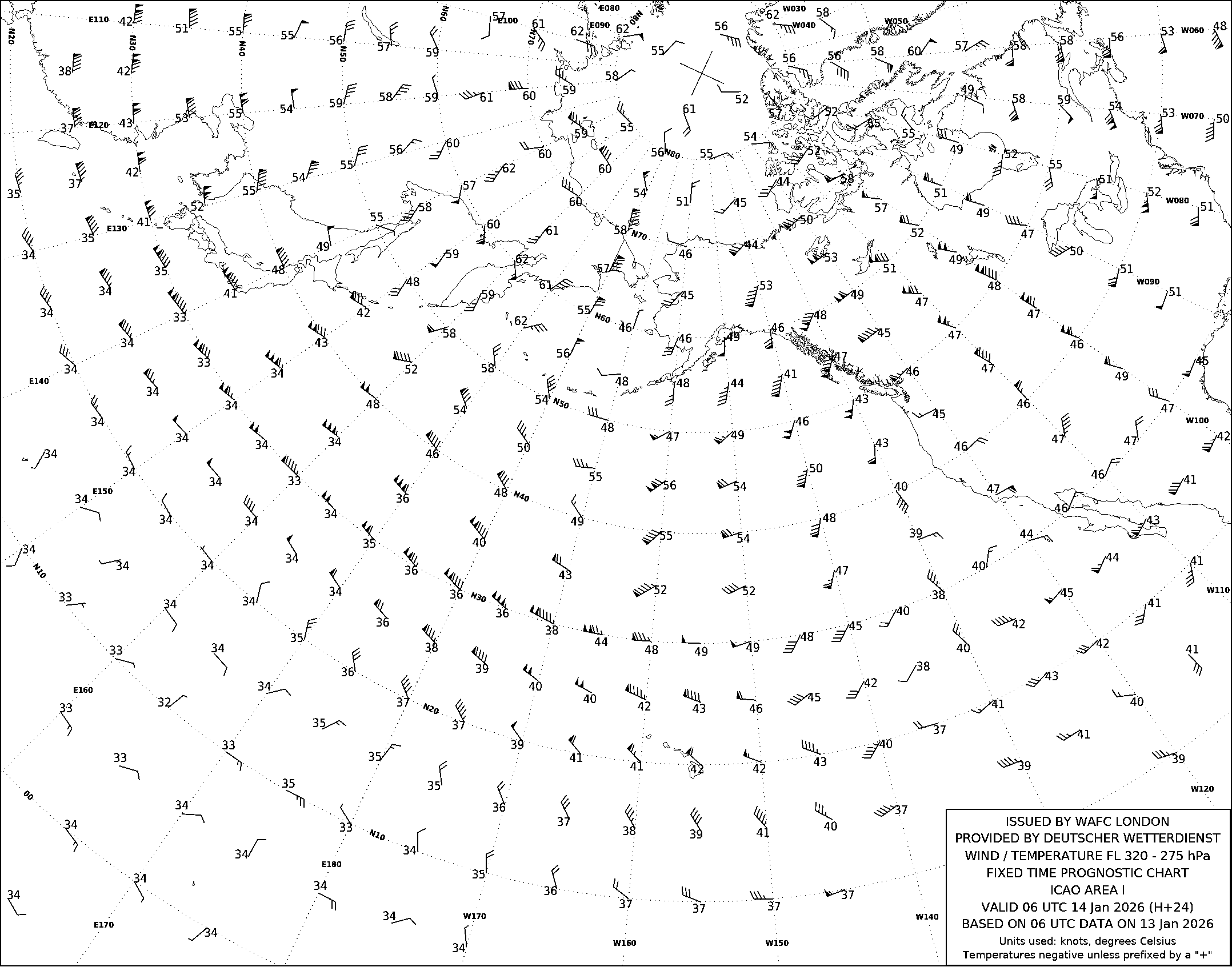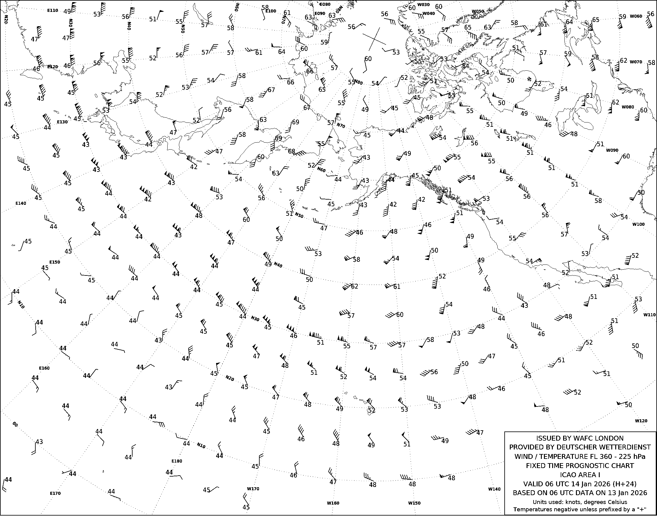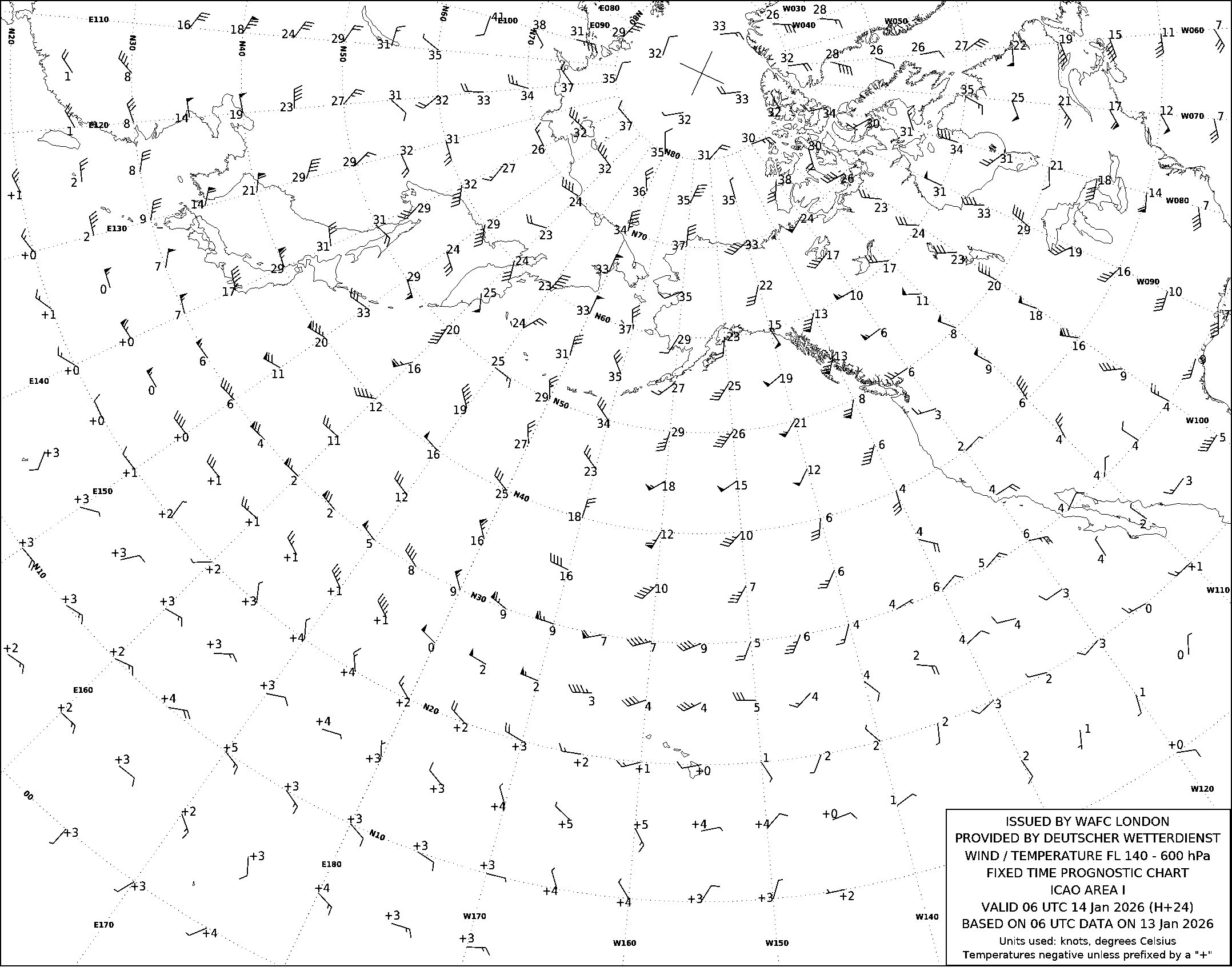 AREA I (Дальний Восток, Тихий океан и Северная Америка) по данным за 06 UTC 13.01.2026