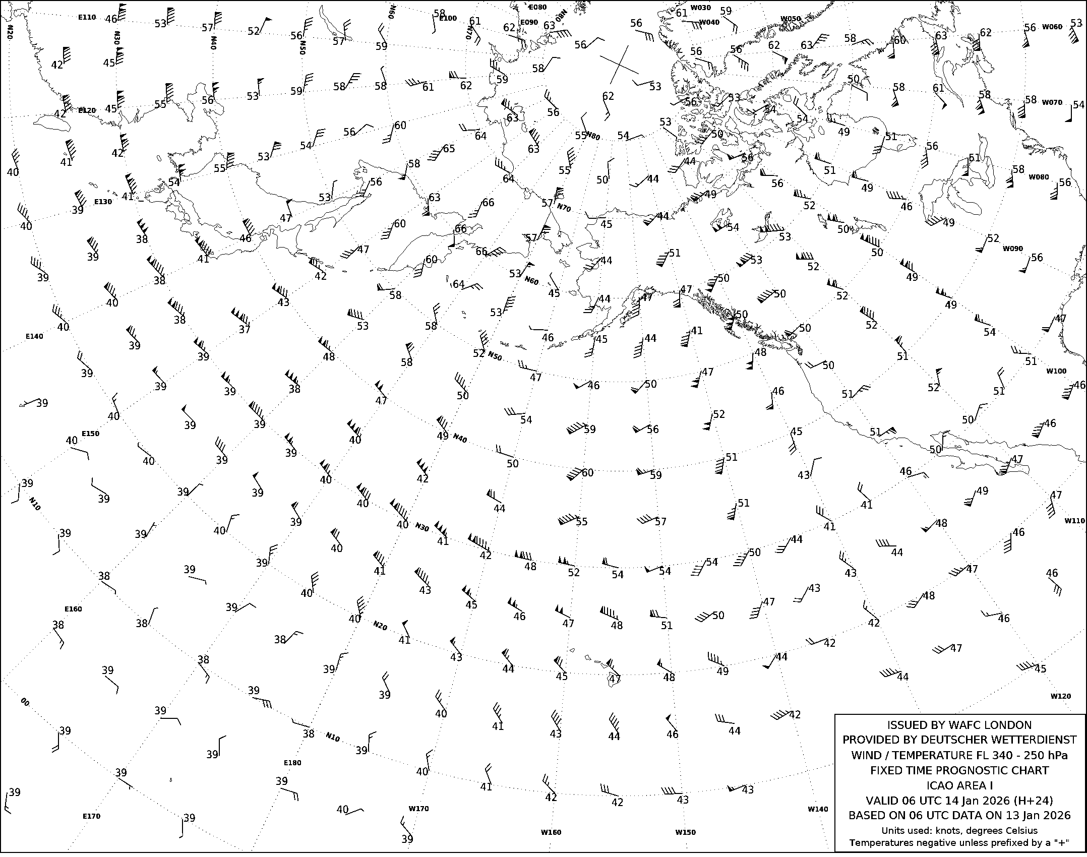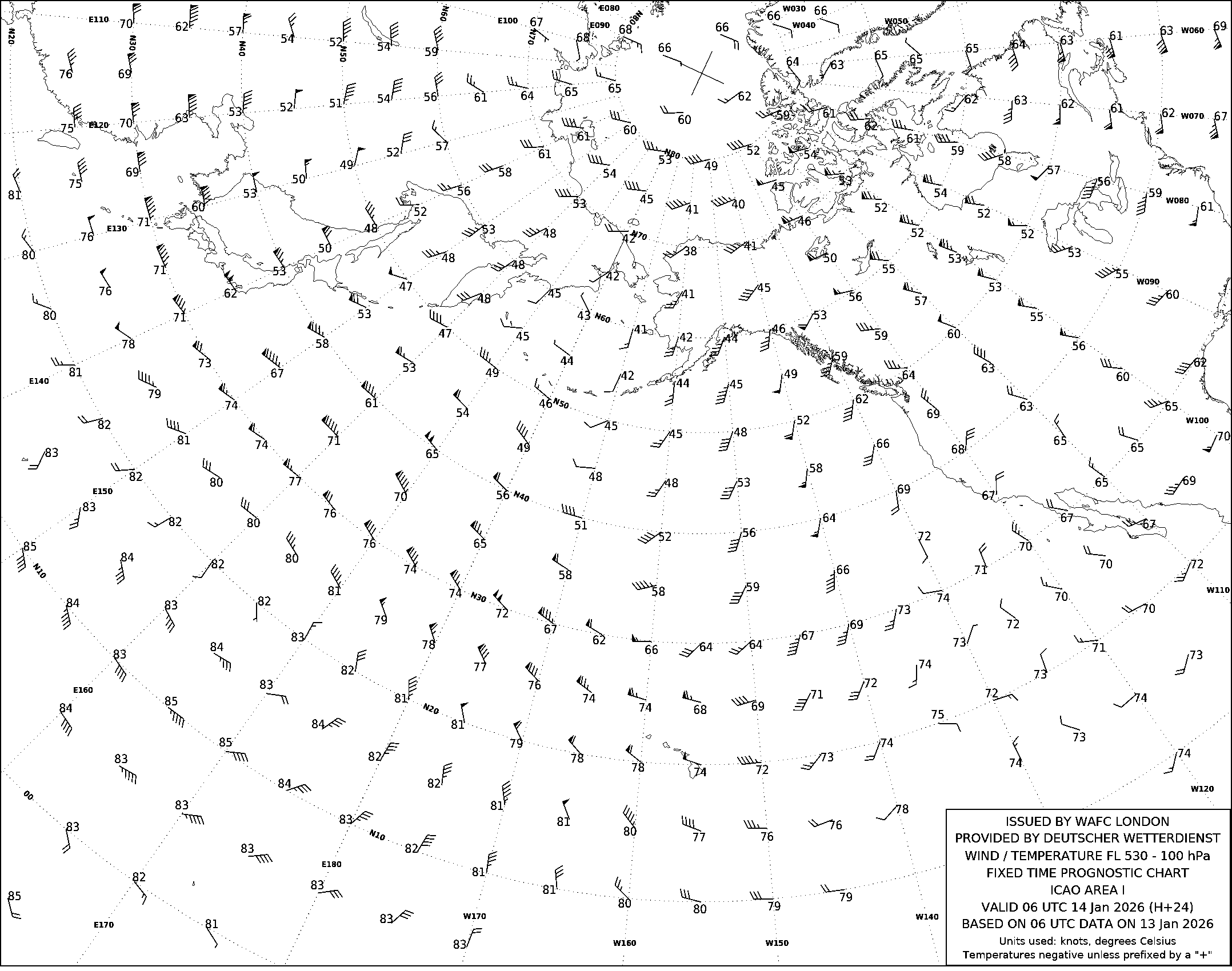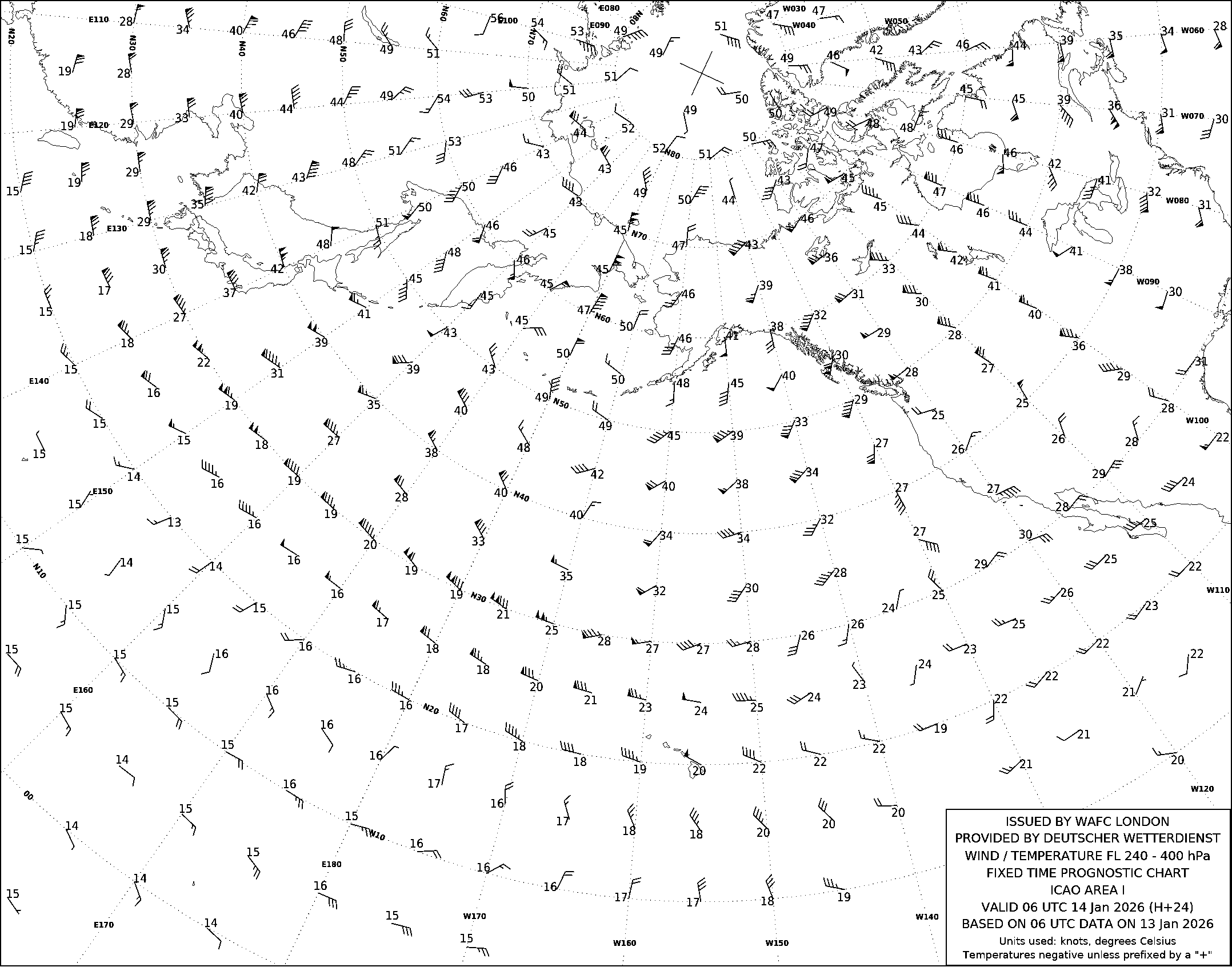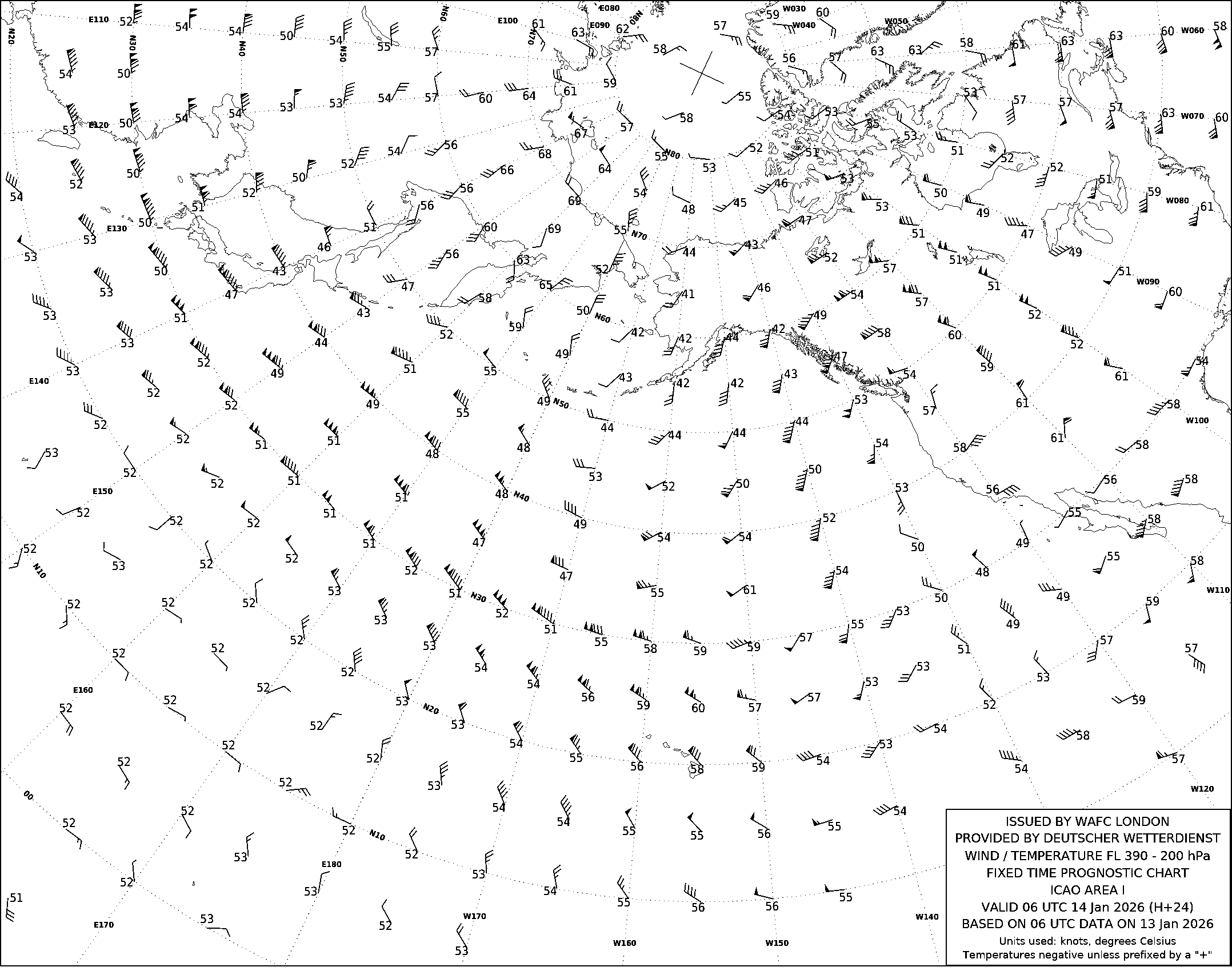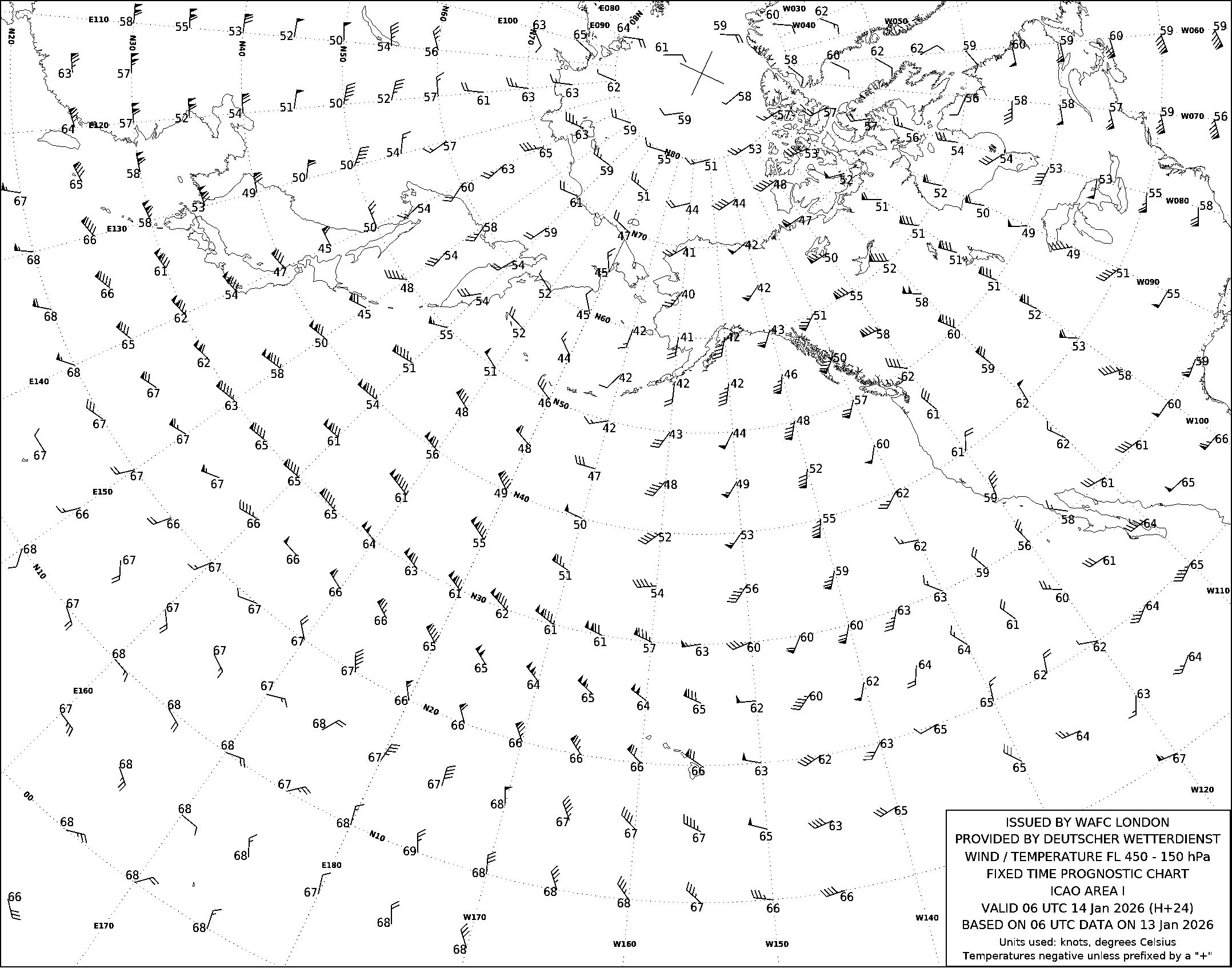 AREA I (Дальний Восток, Тихий океан и Северная Америка) по данным за 06 UTC 13.01.2026
