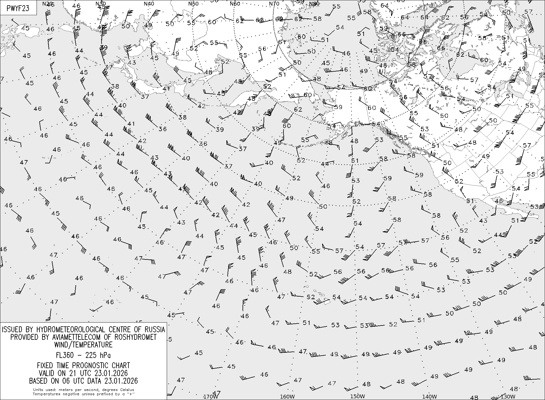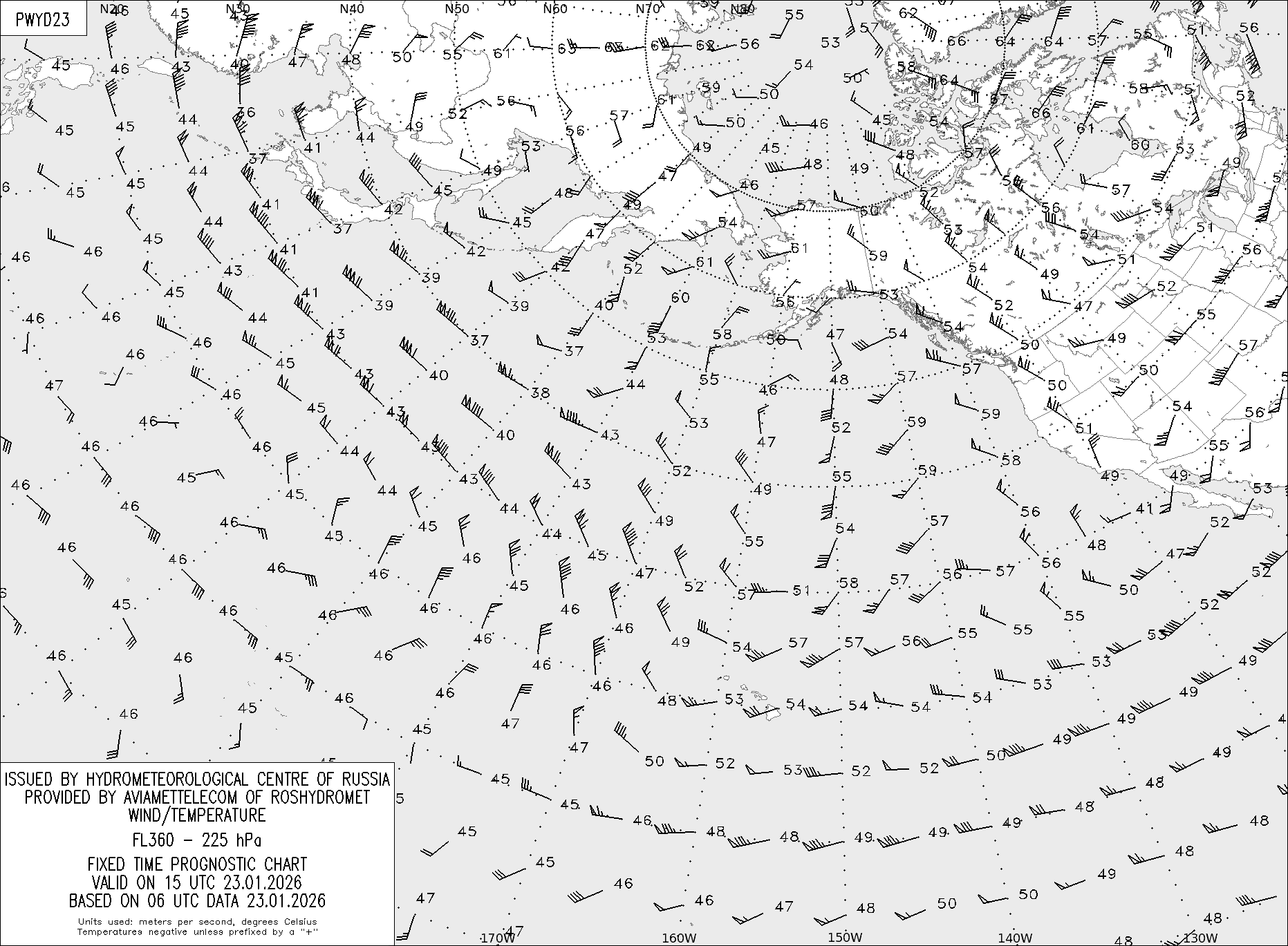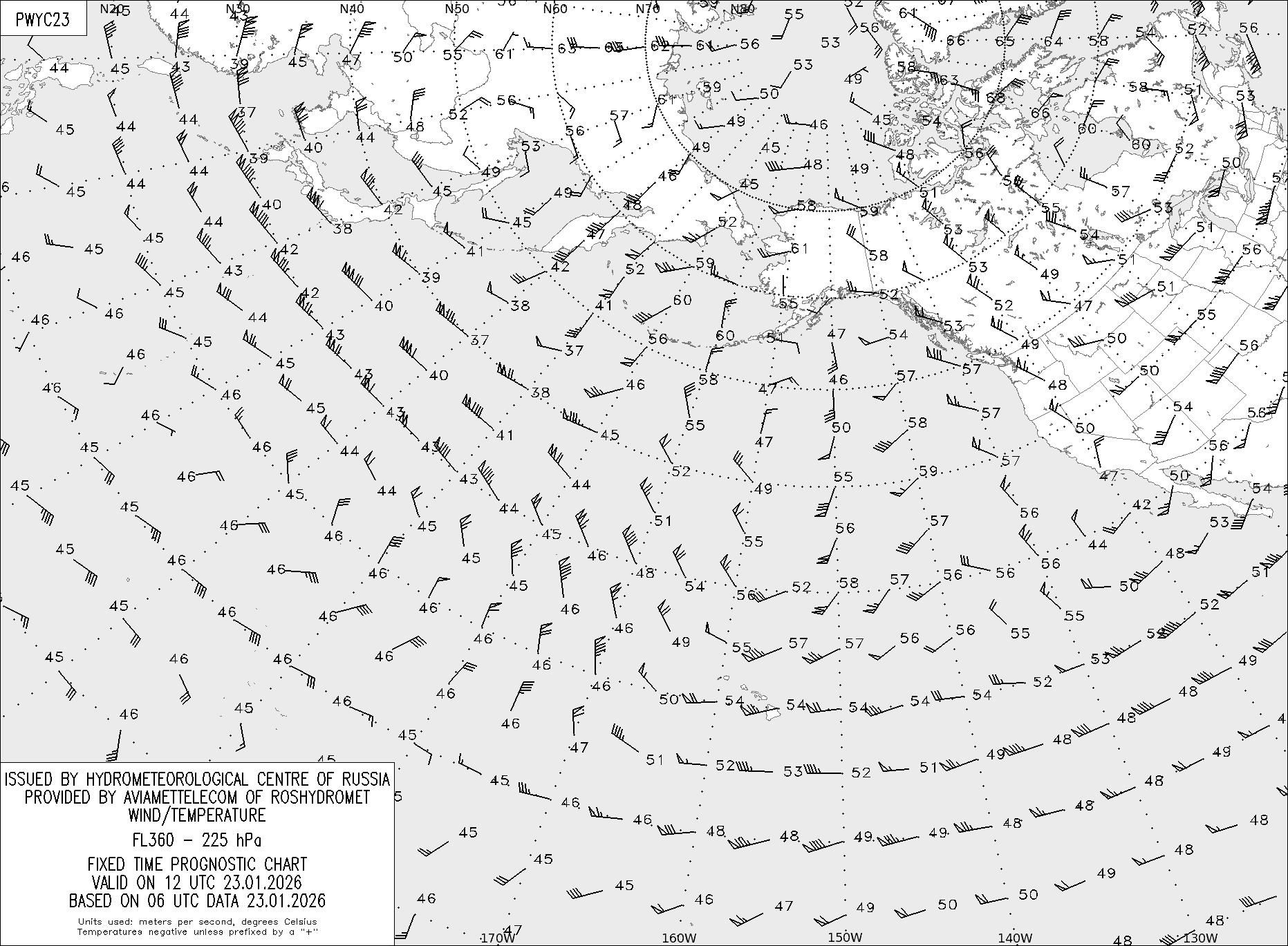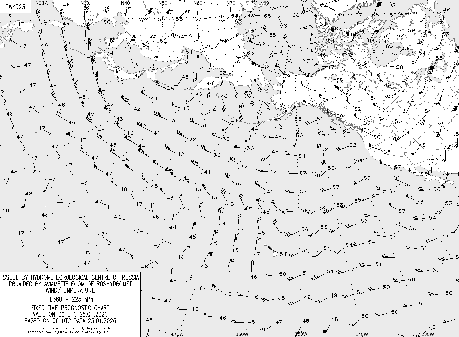 AREA Y (Восточная Евразия и Северная Америка) по данным за 06 UTC 23.01.2026