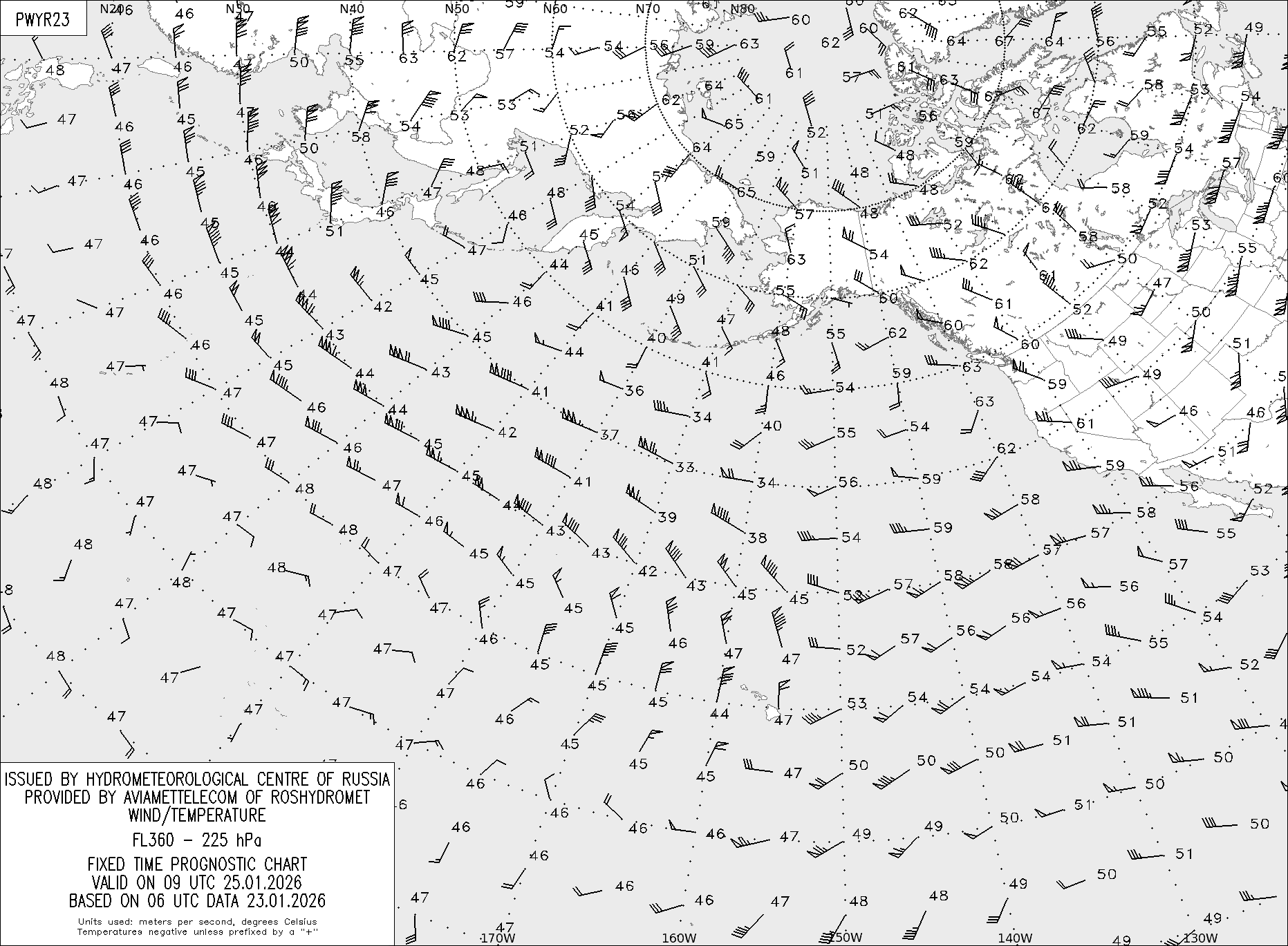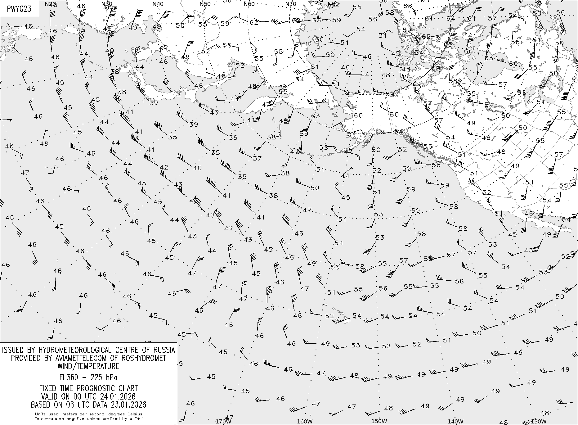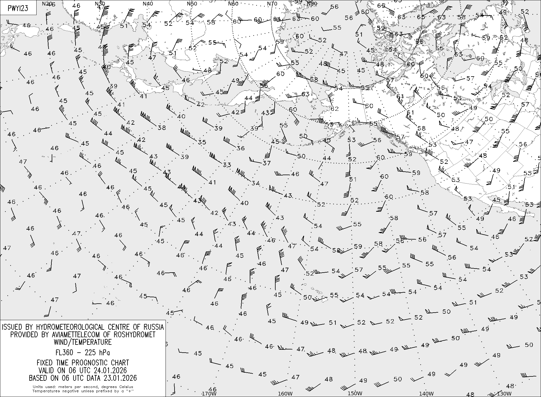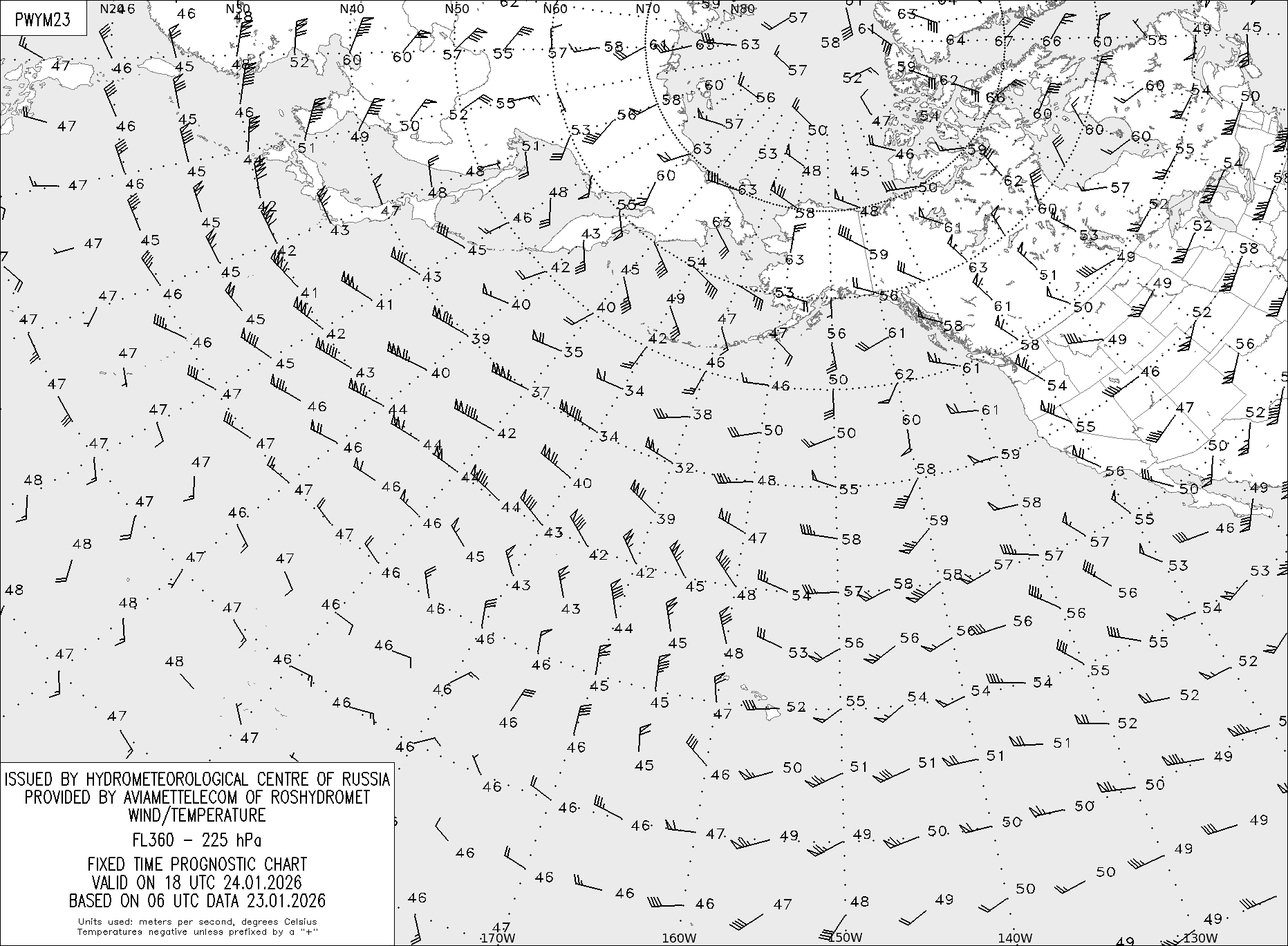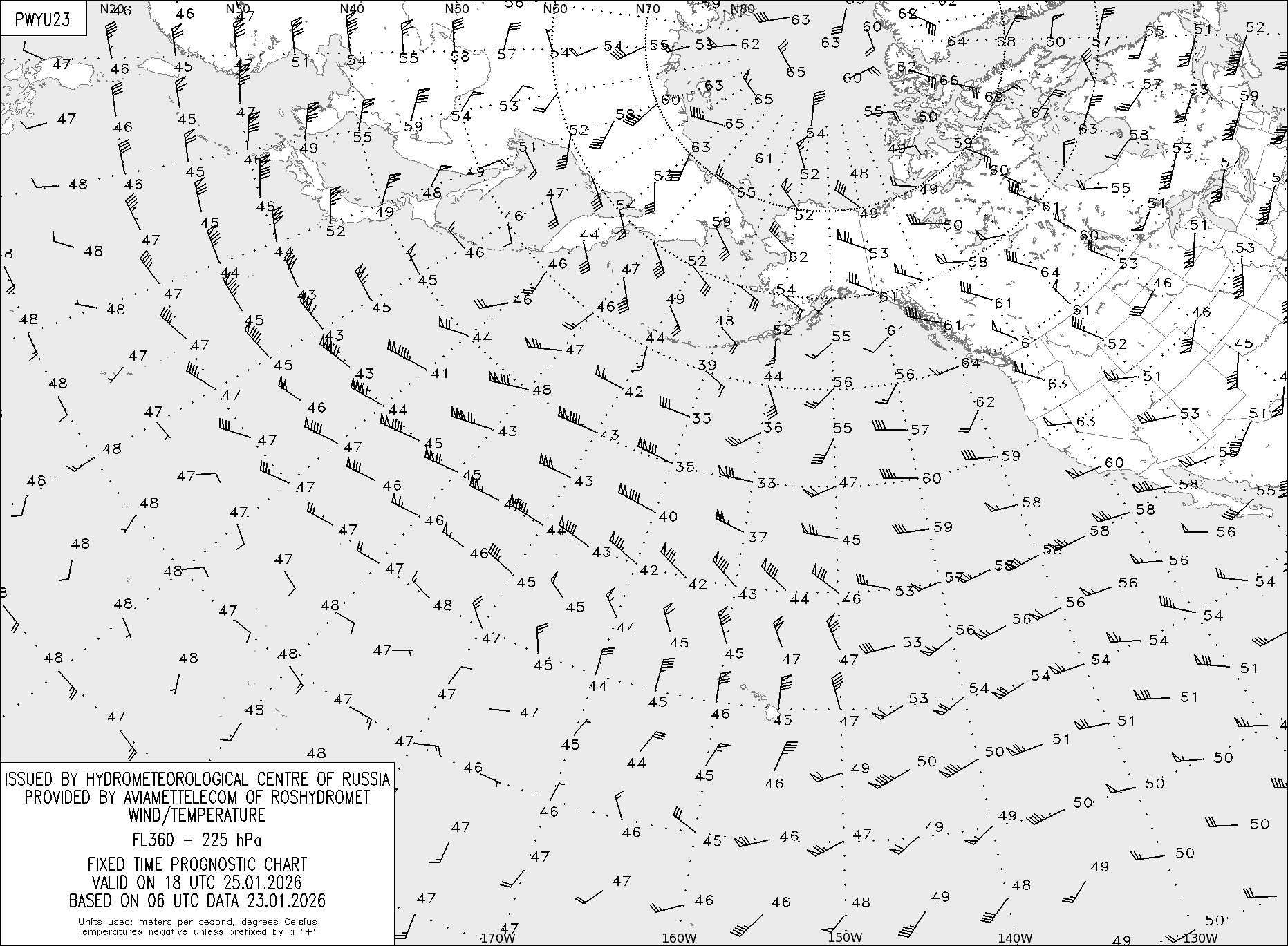 AREA Y (Восточная Евразия и Северная Америка) по данным за 06 UTC 23.01.2026