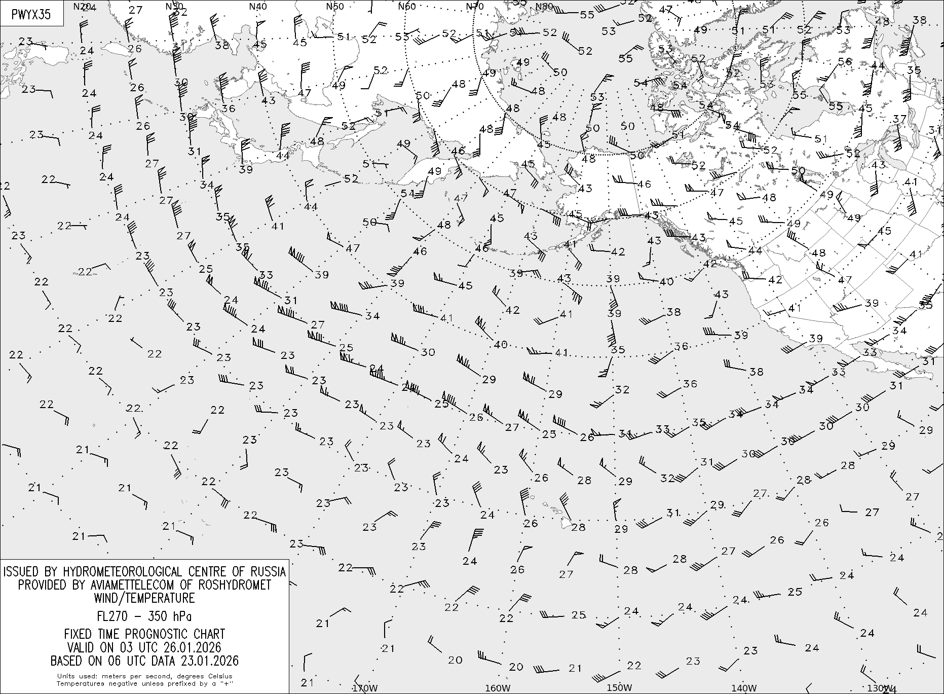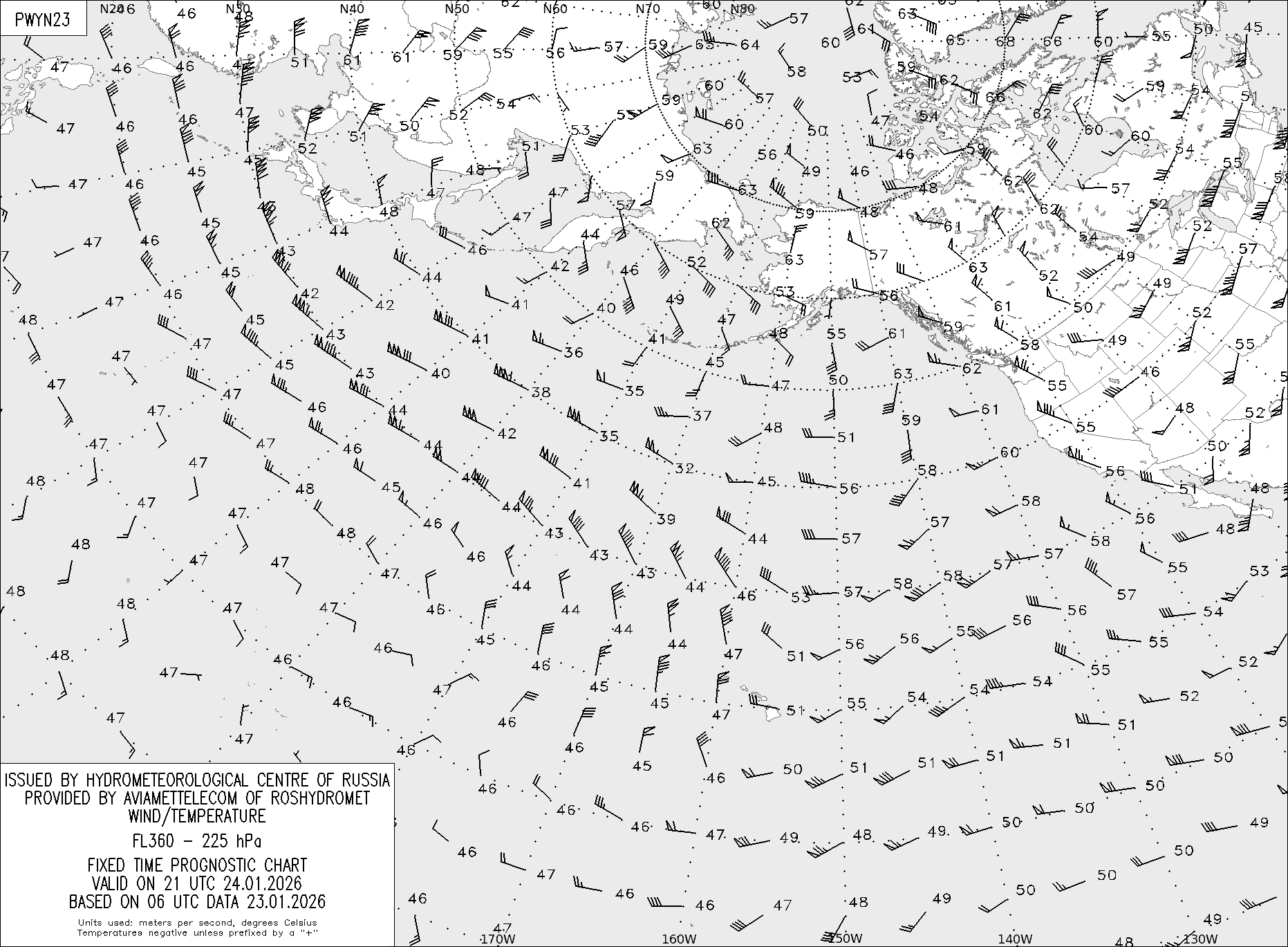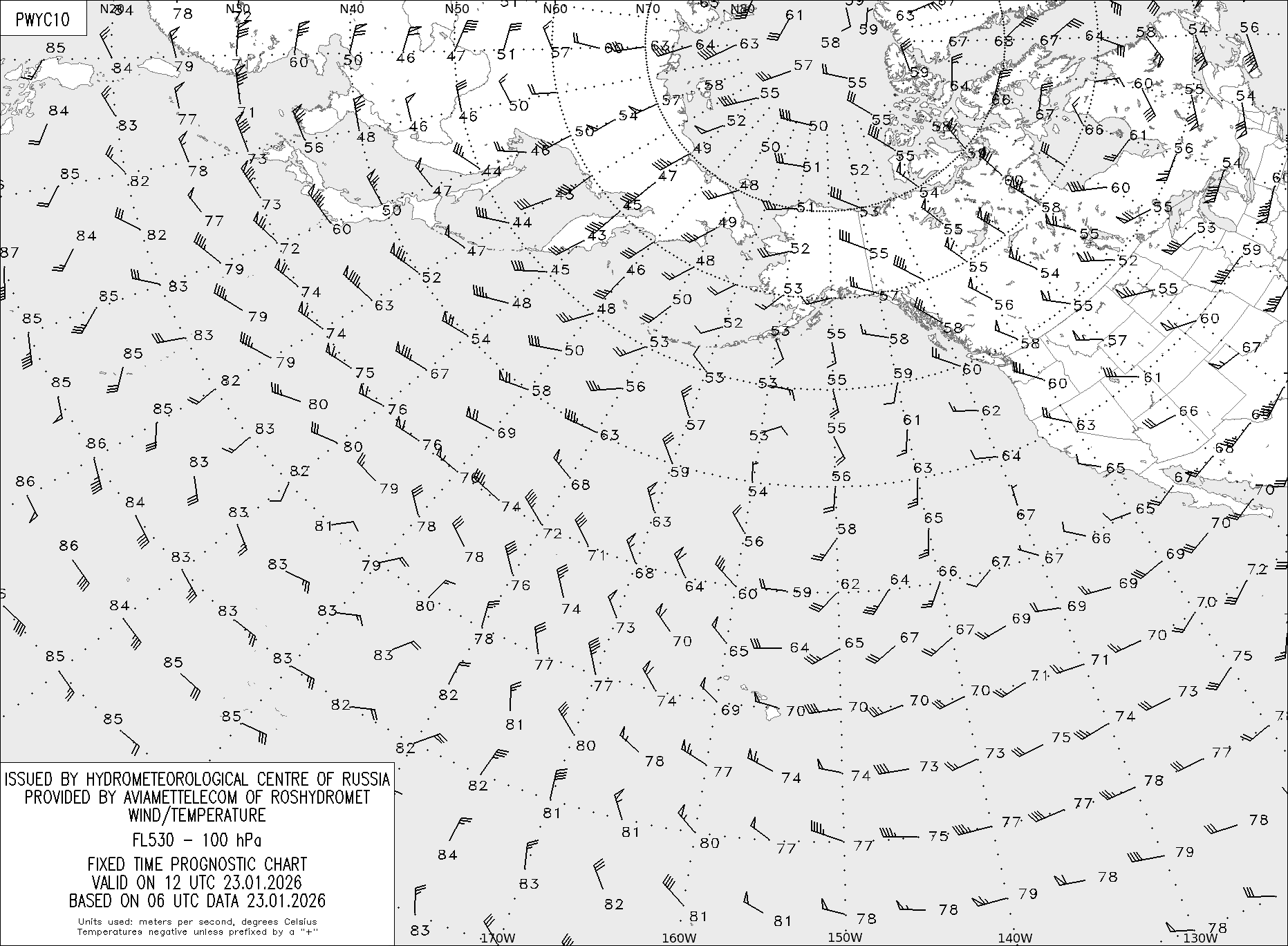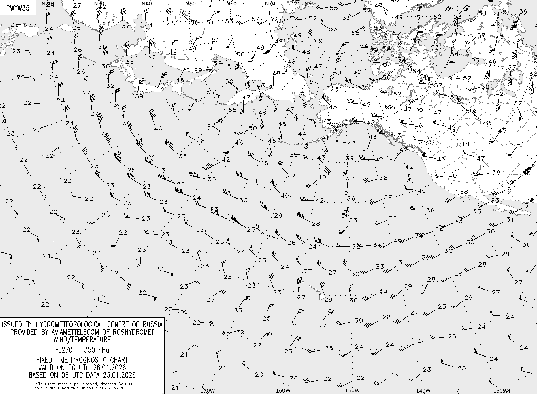 AREA Y (Восточная Евразия и Северная Америка) по данным за 06 UTC 23.01.2026