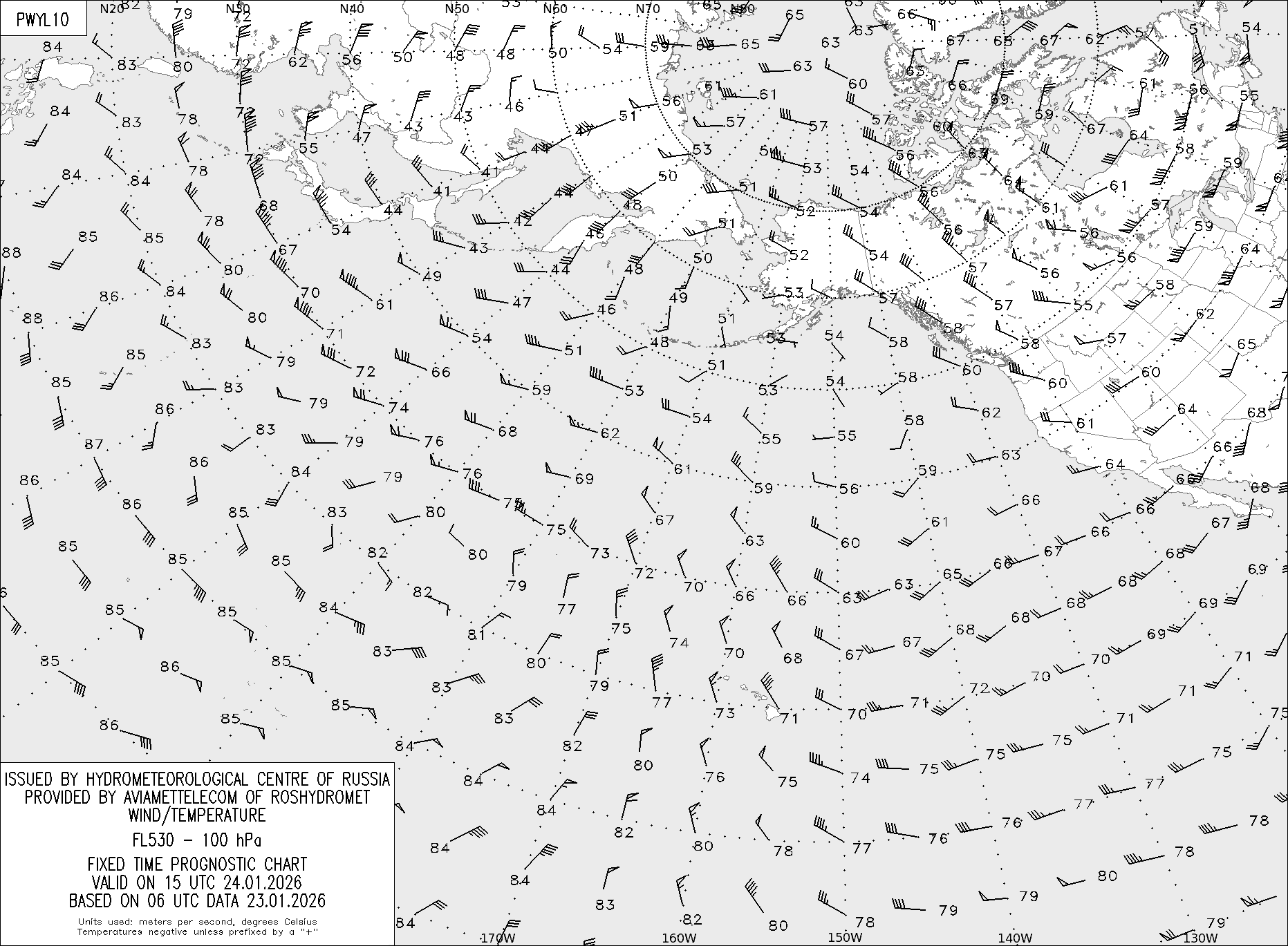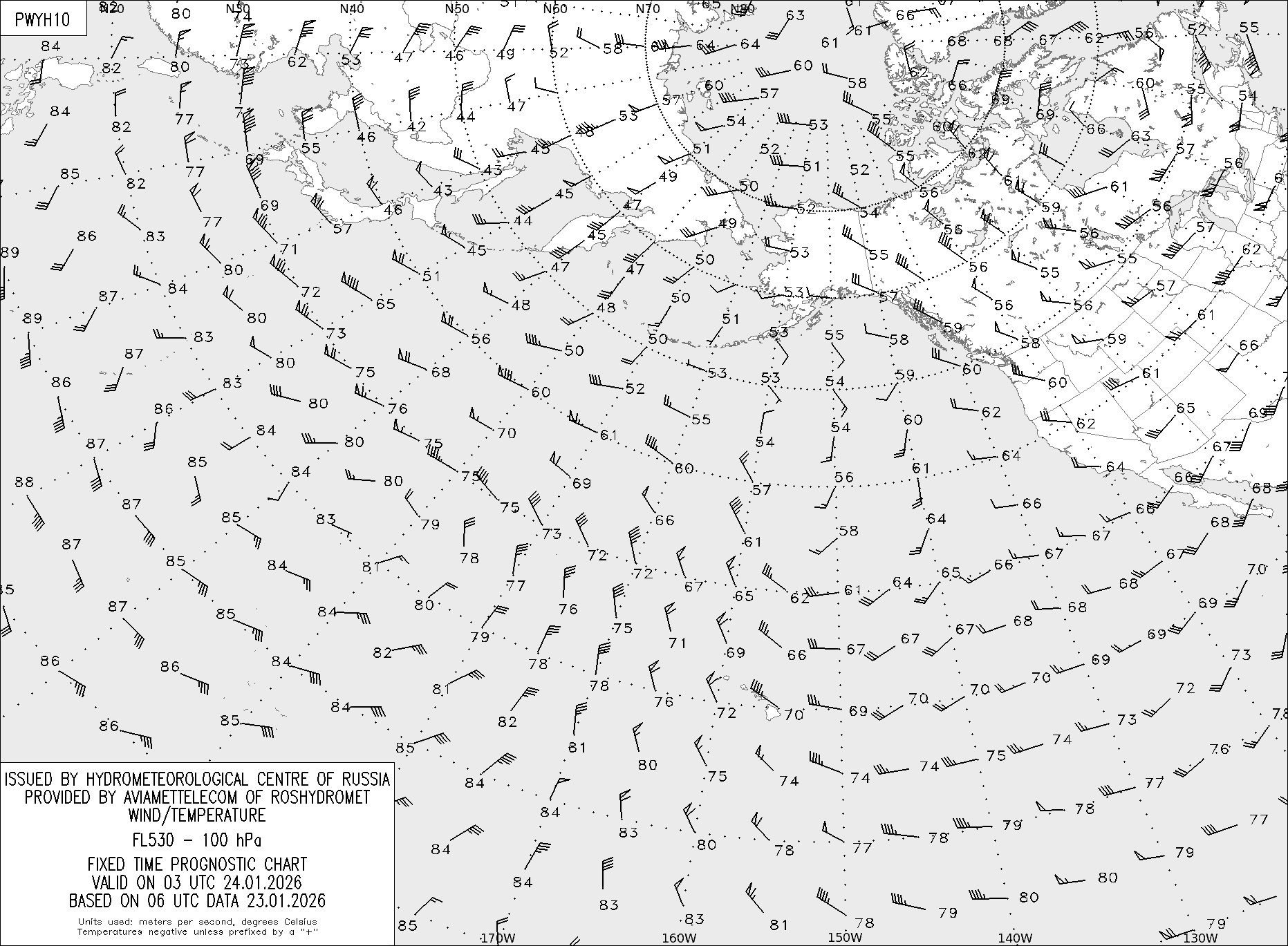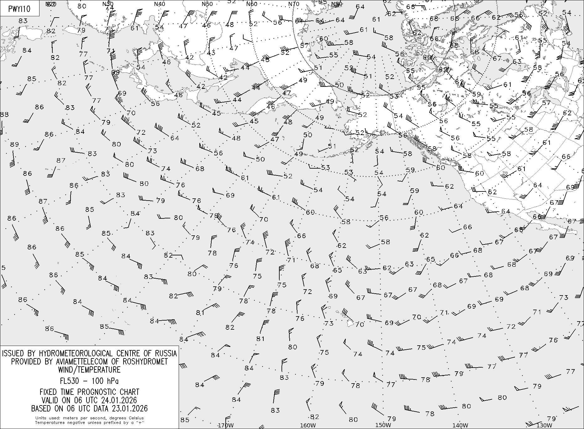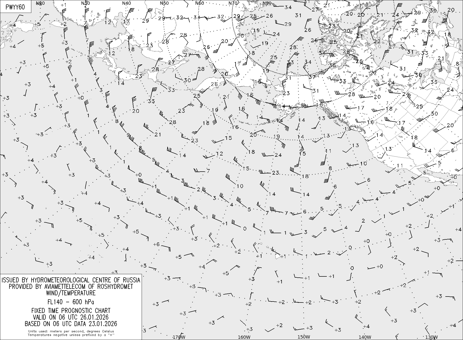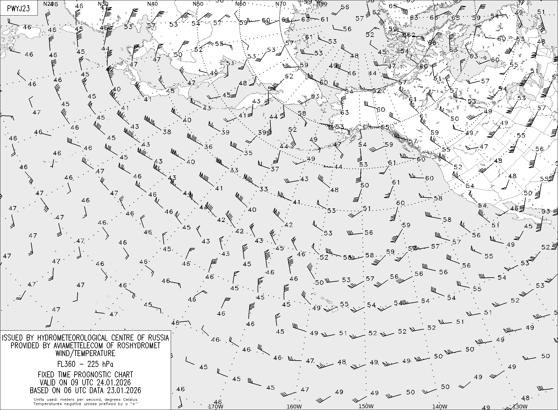 AREA Y (Восточная Евразия и Северная Америка) по данным за 06 UTC 23.01.2026