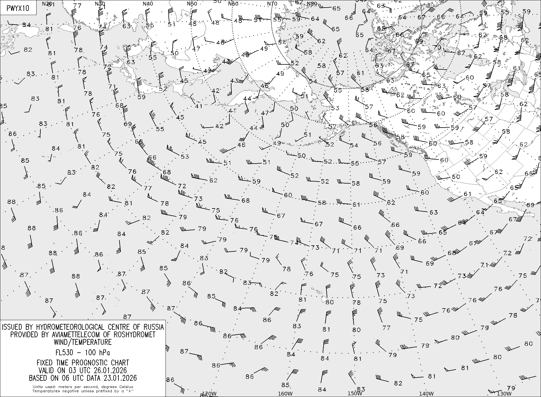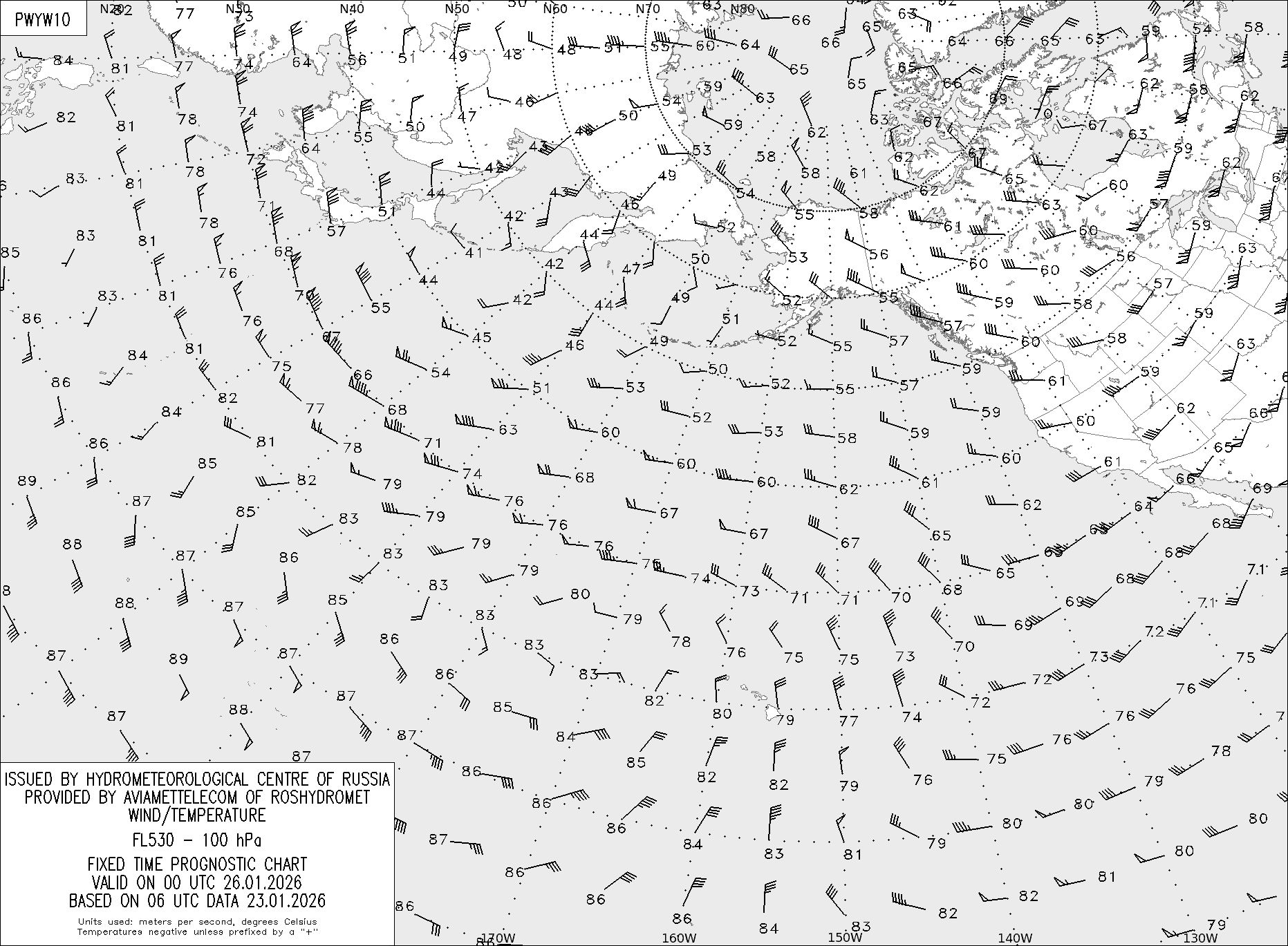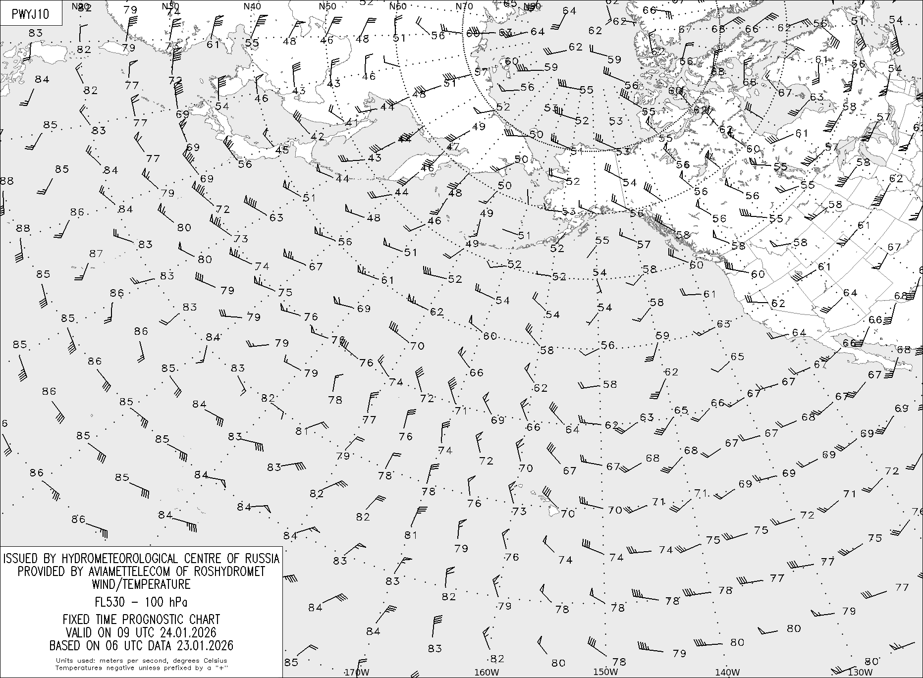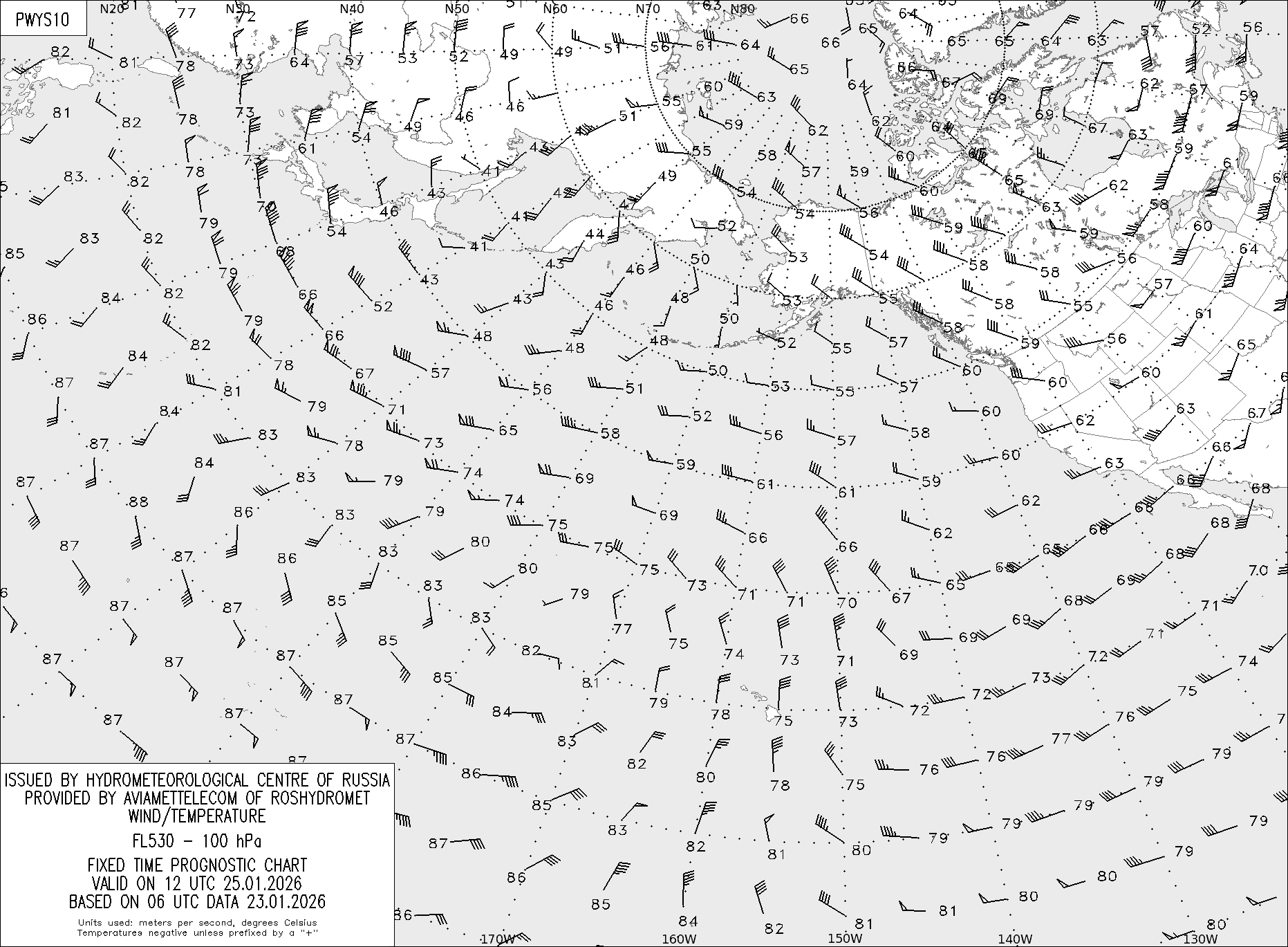 AREA Y (Восточная Евразия и Северная Америка) по данным за 06 UTC 23.01.2026