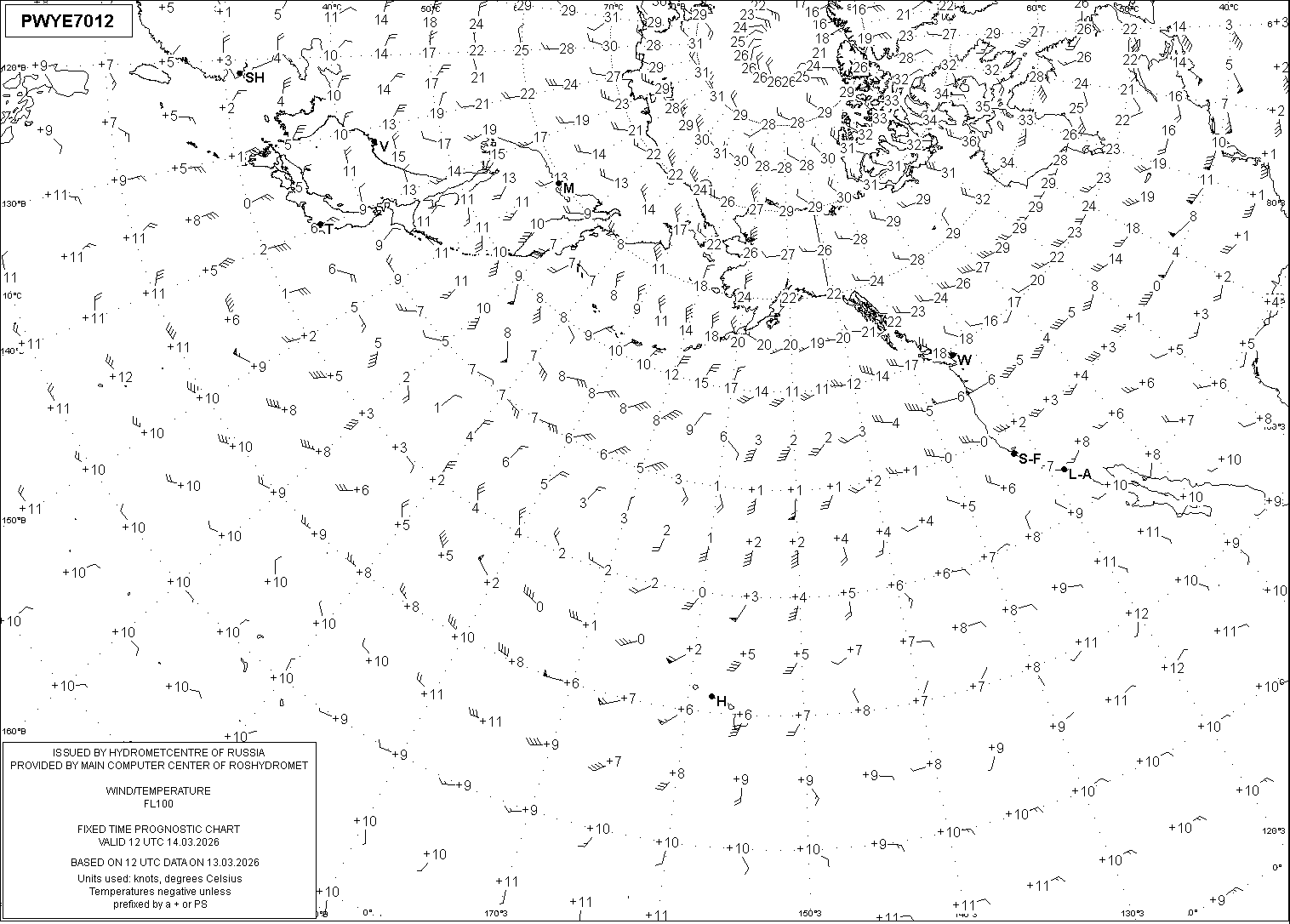 AREA Y (Восточная Евразия и Северная Америка) по данным за 12 UTC 13.03.2026