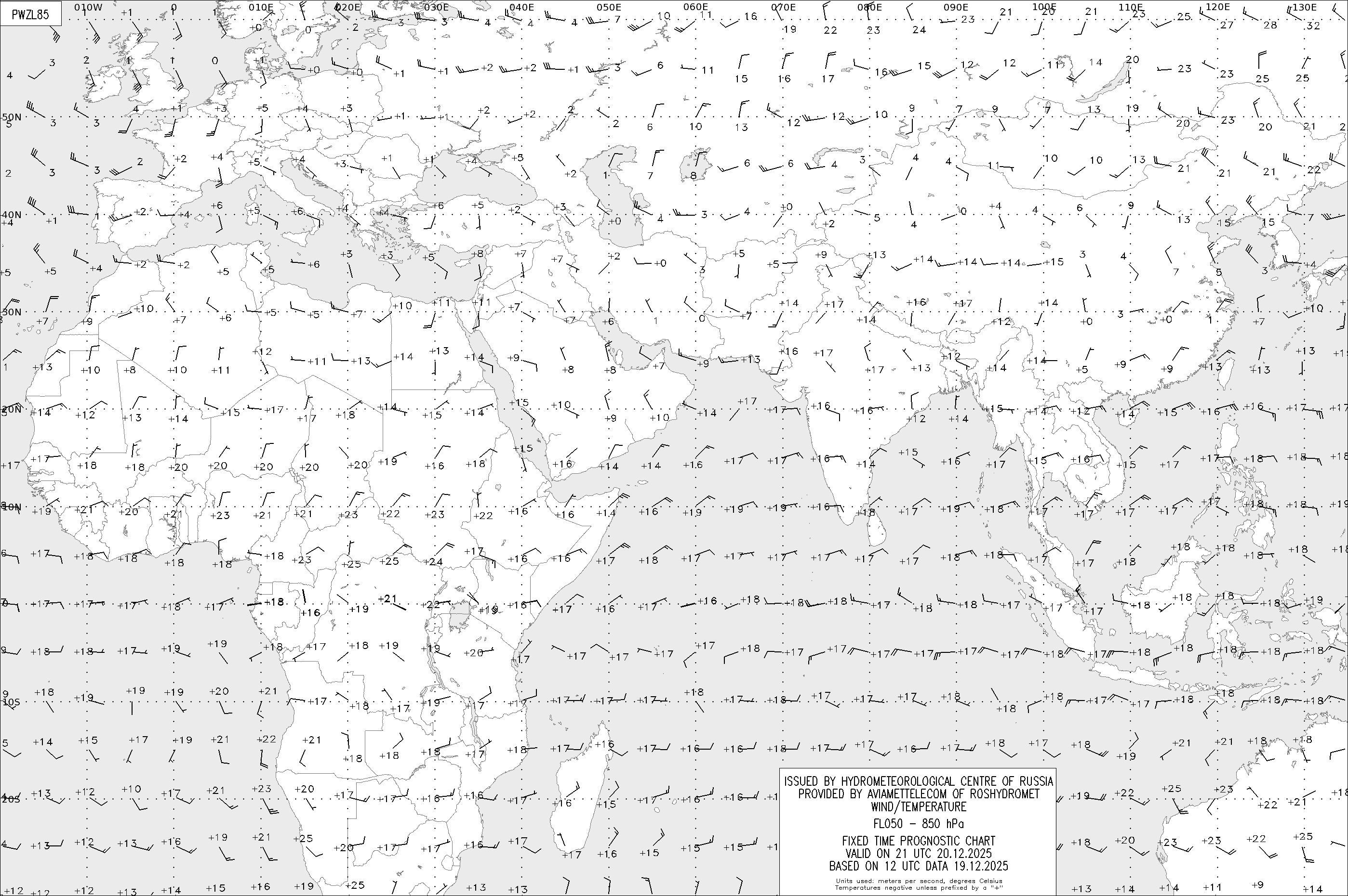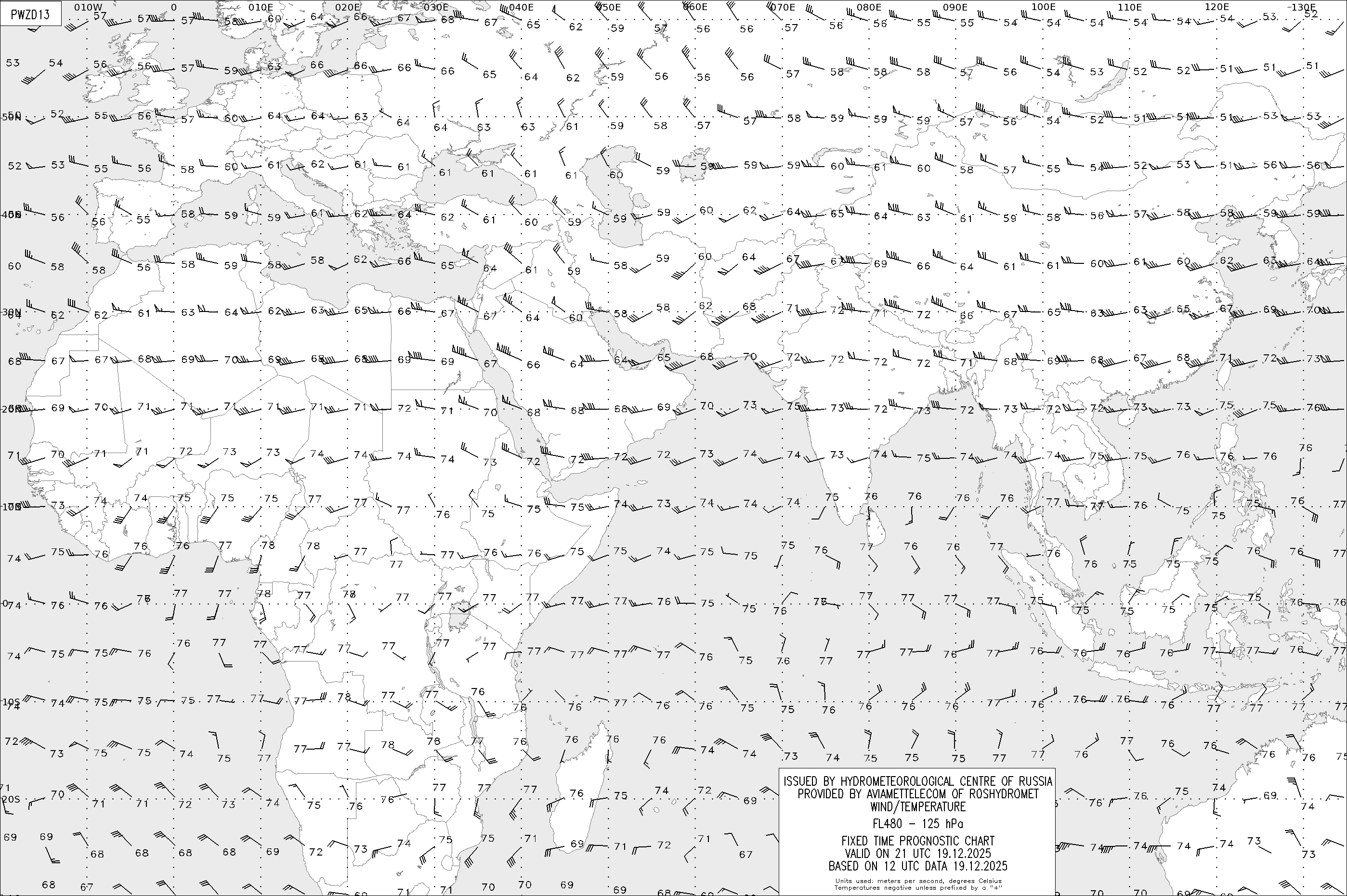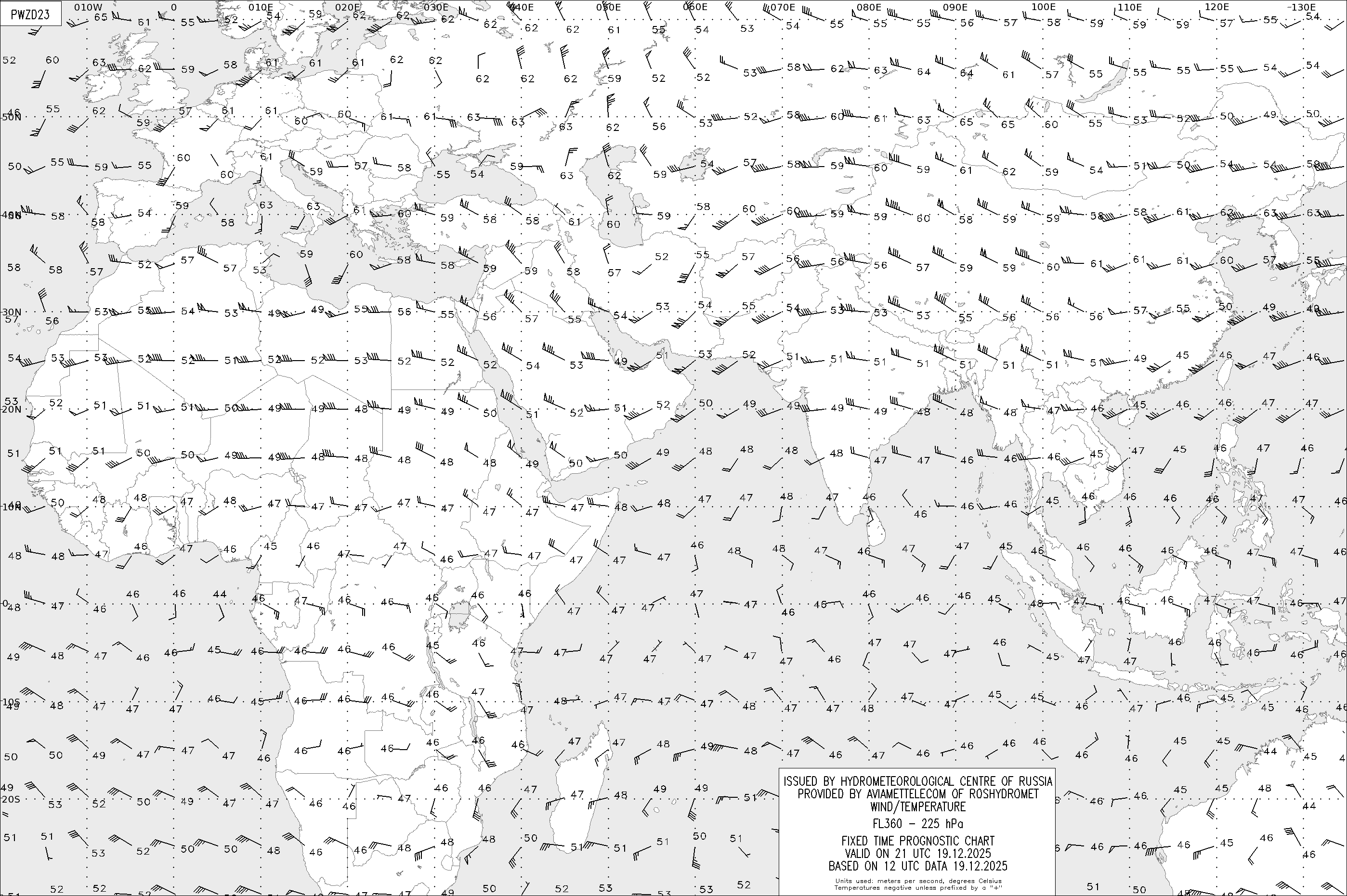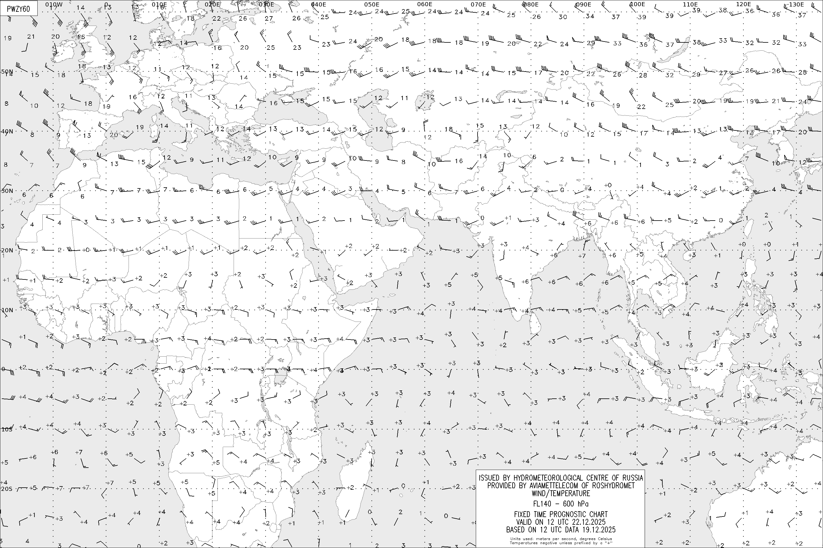 AREA Z (Евразия и Африка) по данным за 12 UTC 19.12.2025