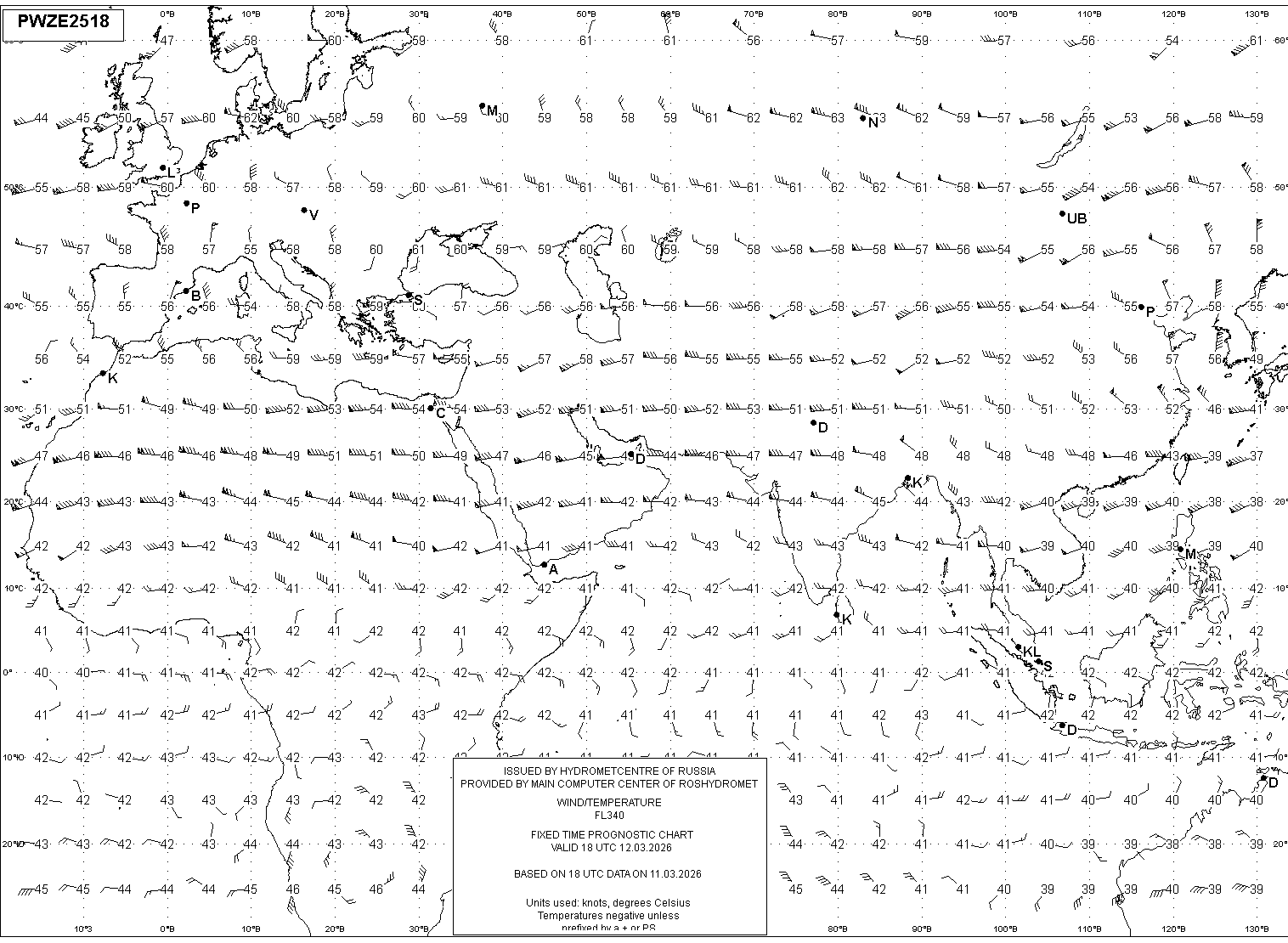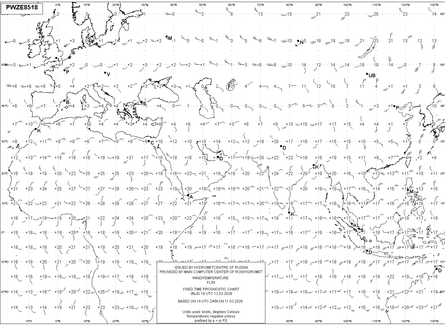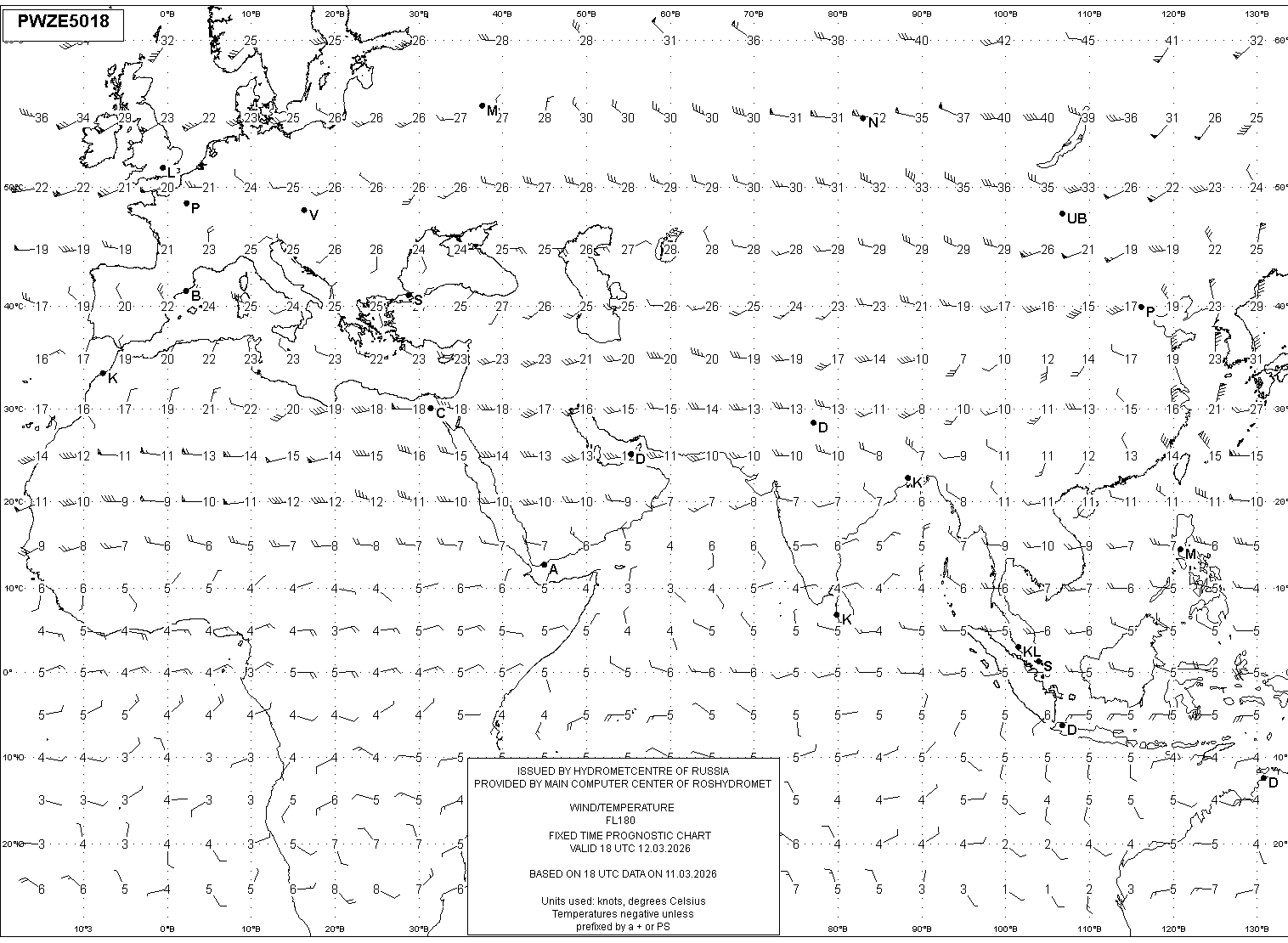 AREA Z (Евразия и Африка) по данным за 18 UTC 11.03.2026