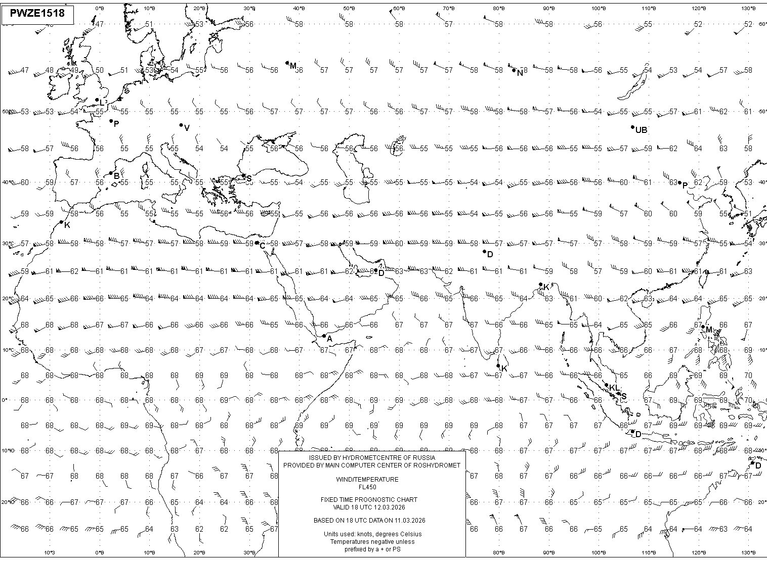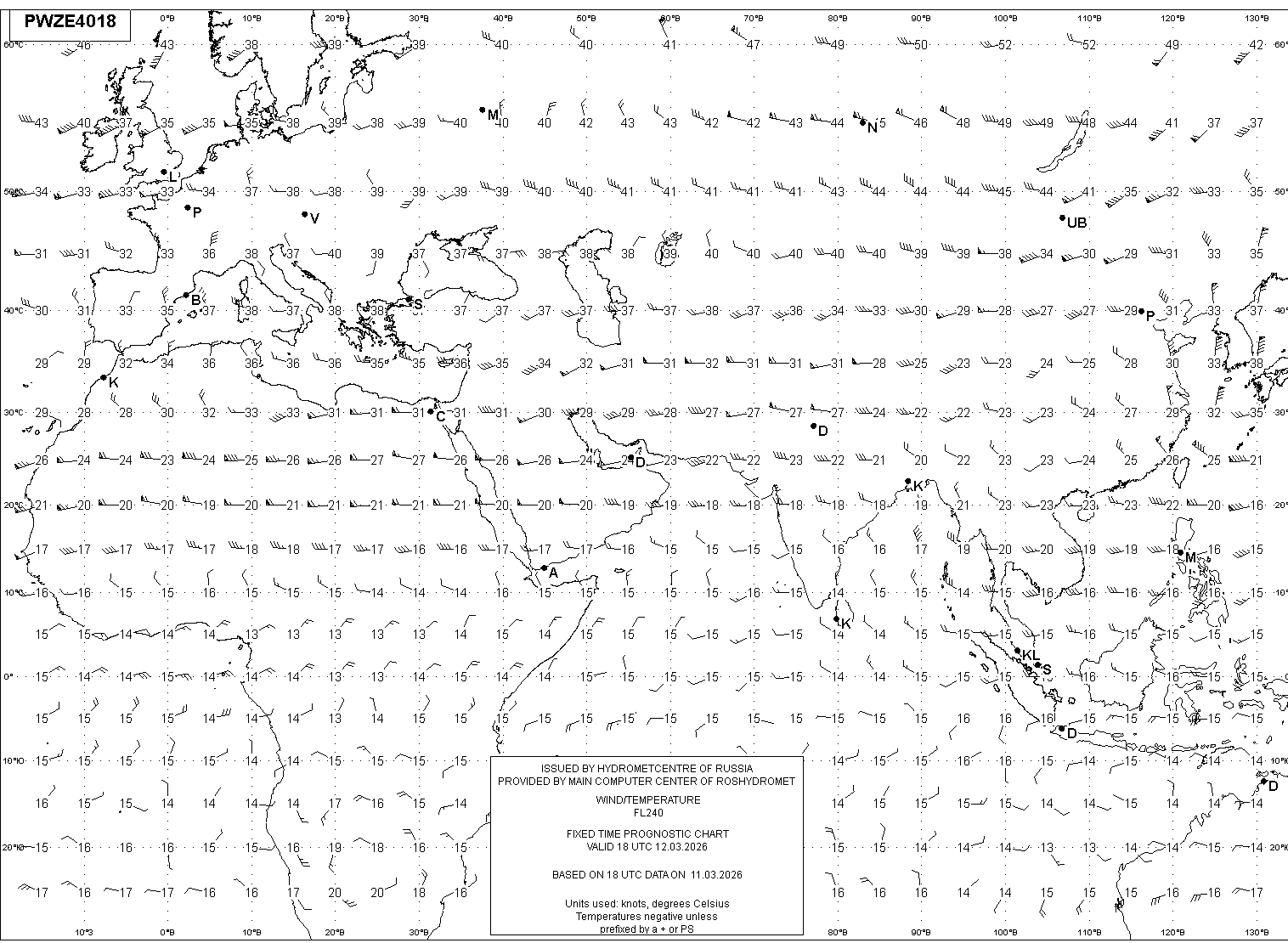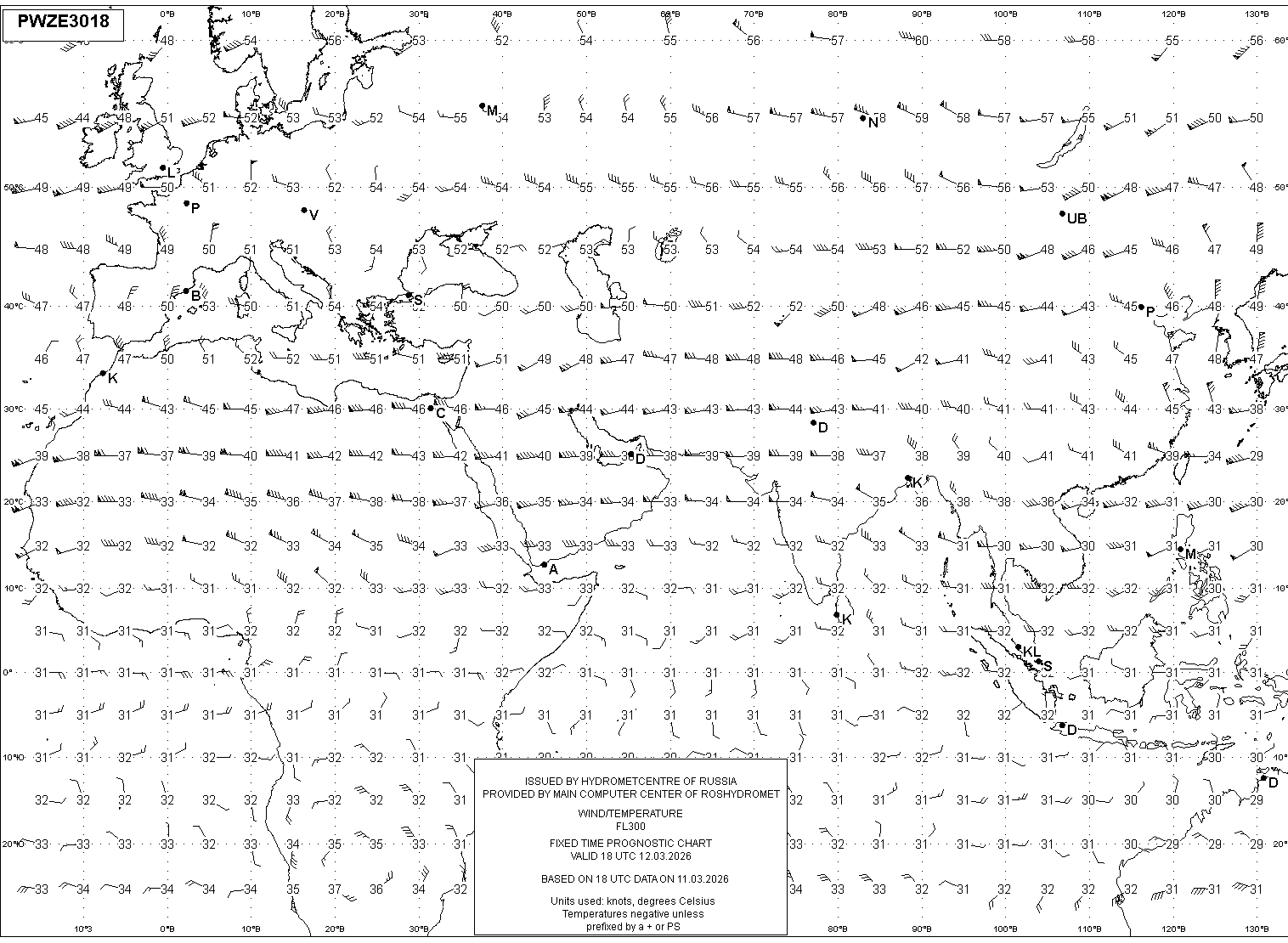AREA Z (Евразия и Африка) по данным за 18 UTC 11.03.2026