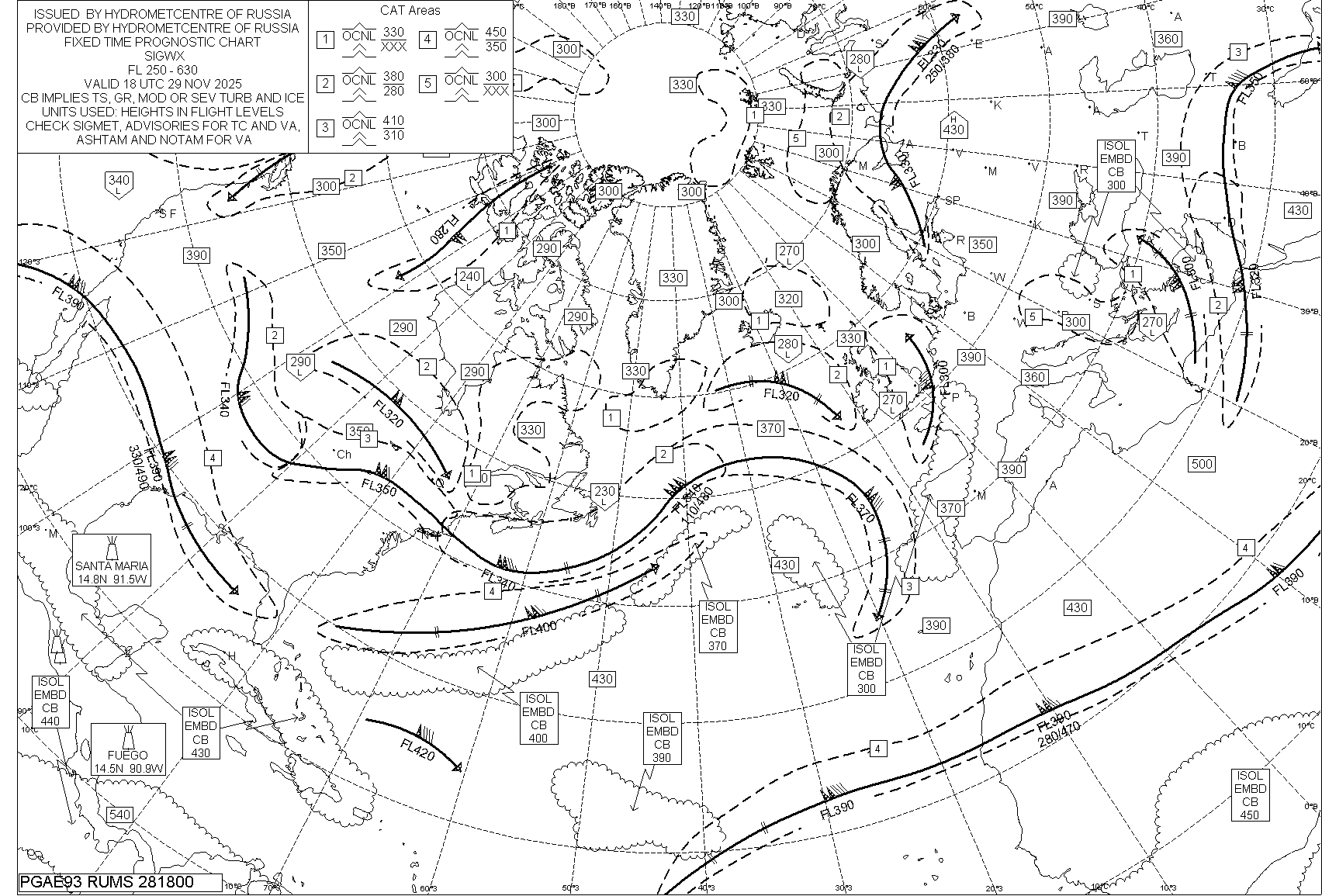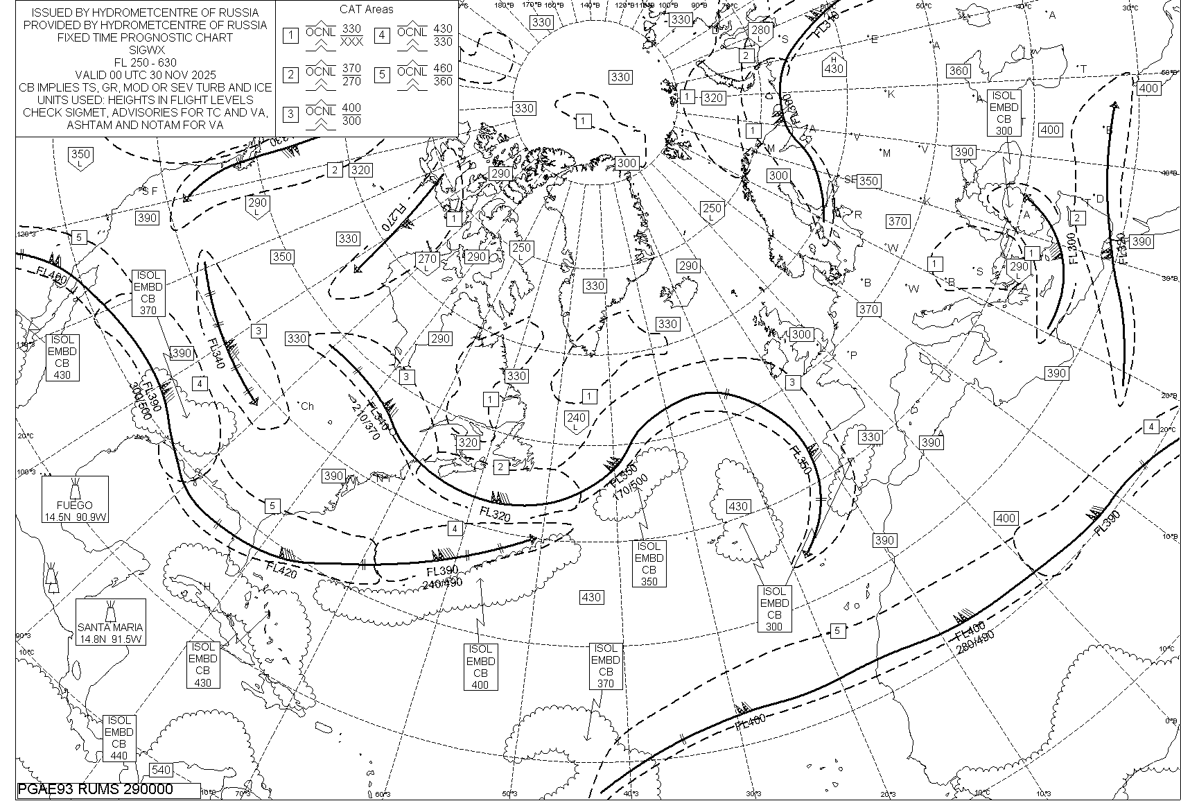 Прогнозы особых явлений погоды (SIGWX) ВЦЗП Лондон и ВЦЗП Вашингтон