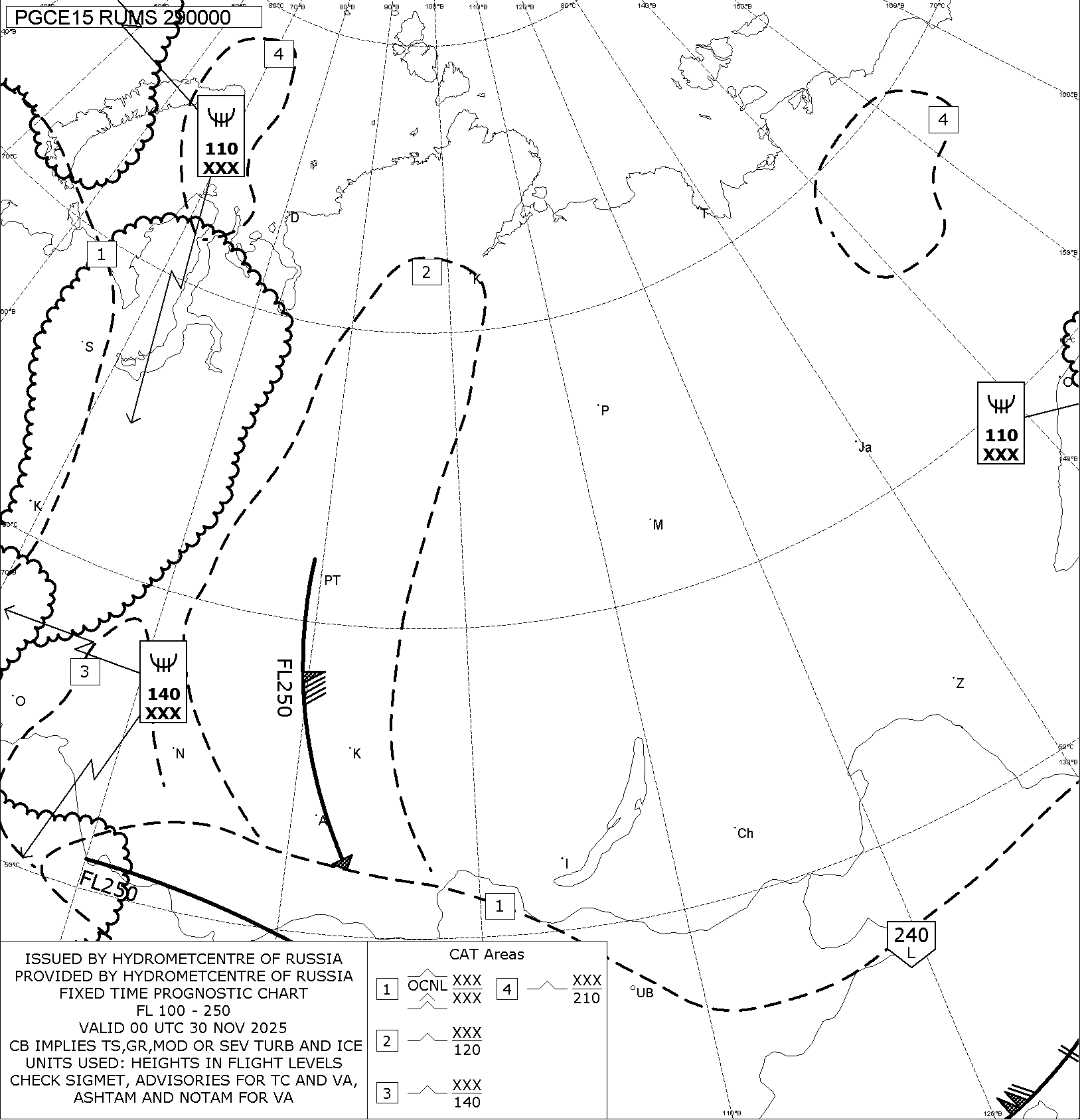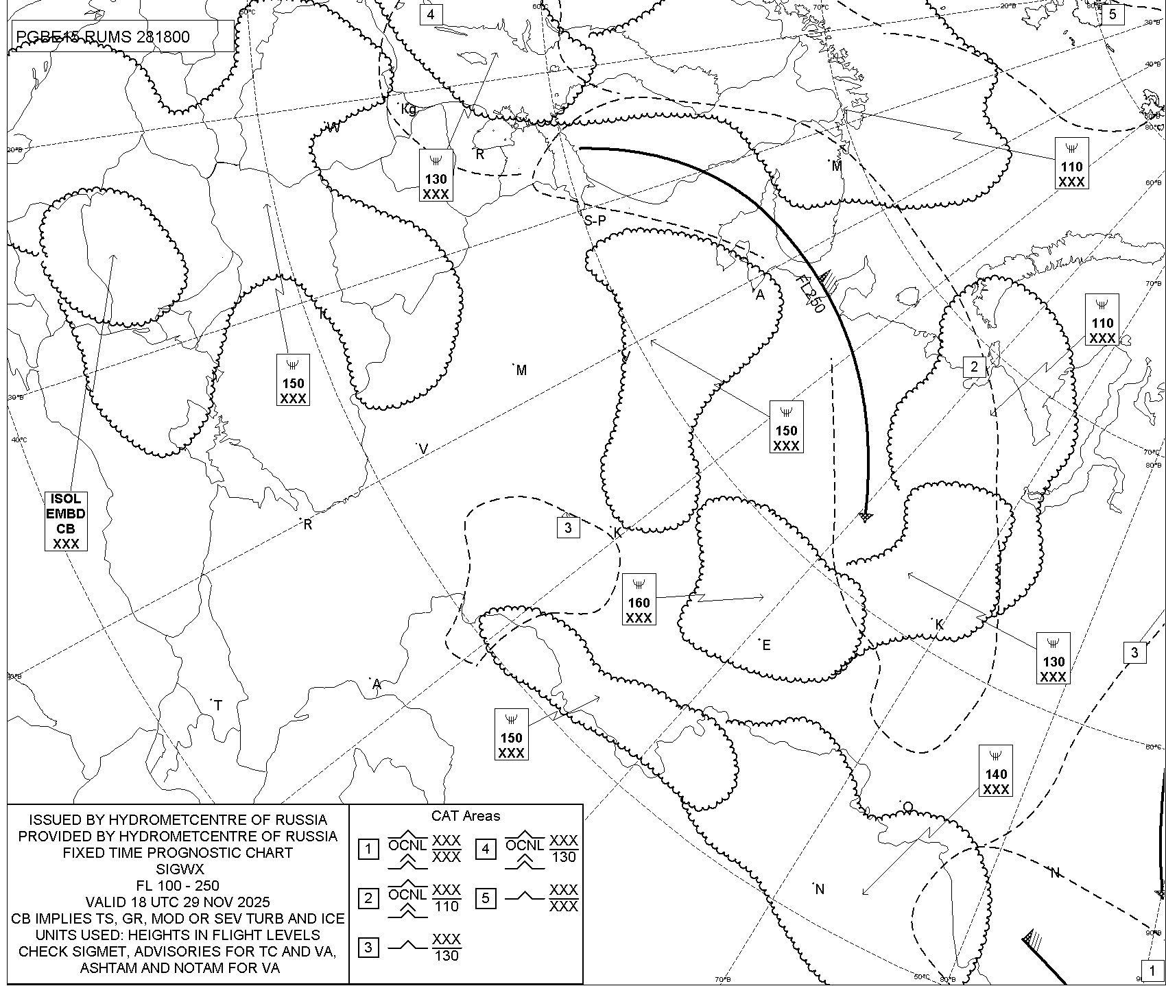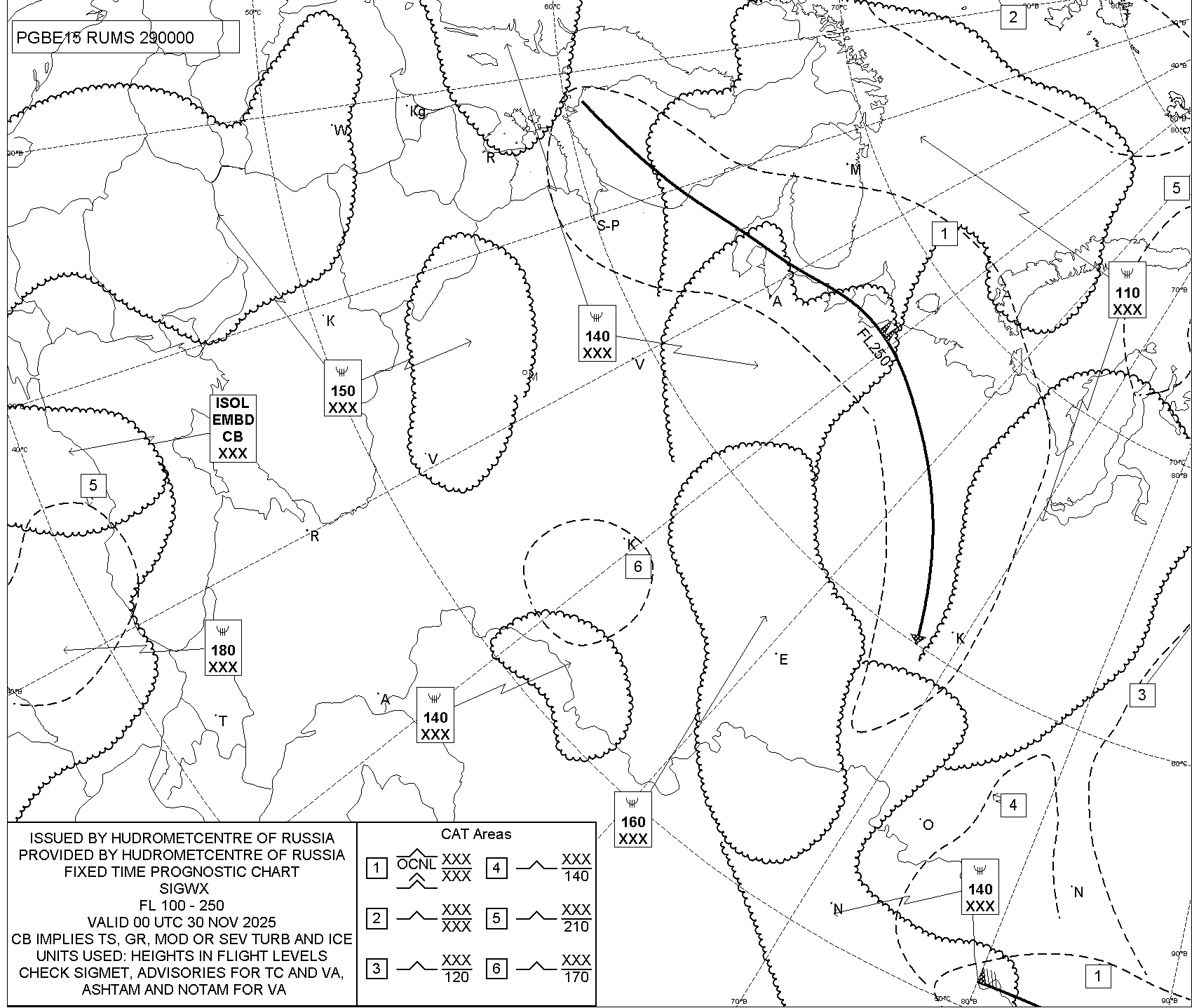1.2 Среднего уровня в виде карт SWM для слоя FL100-FL250 на трех бланках, охватывающих воздушное пространство Российской Федерации с разбивкой на три региона:
