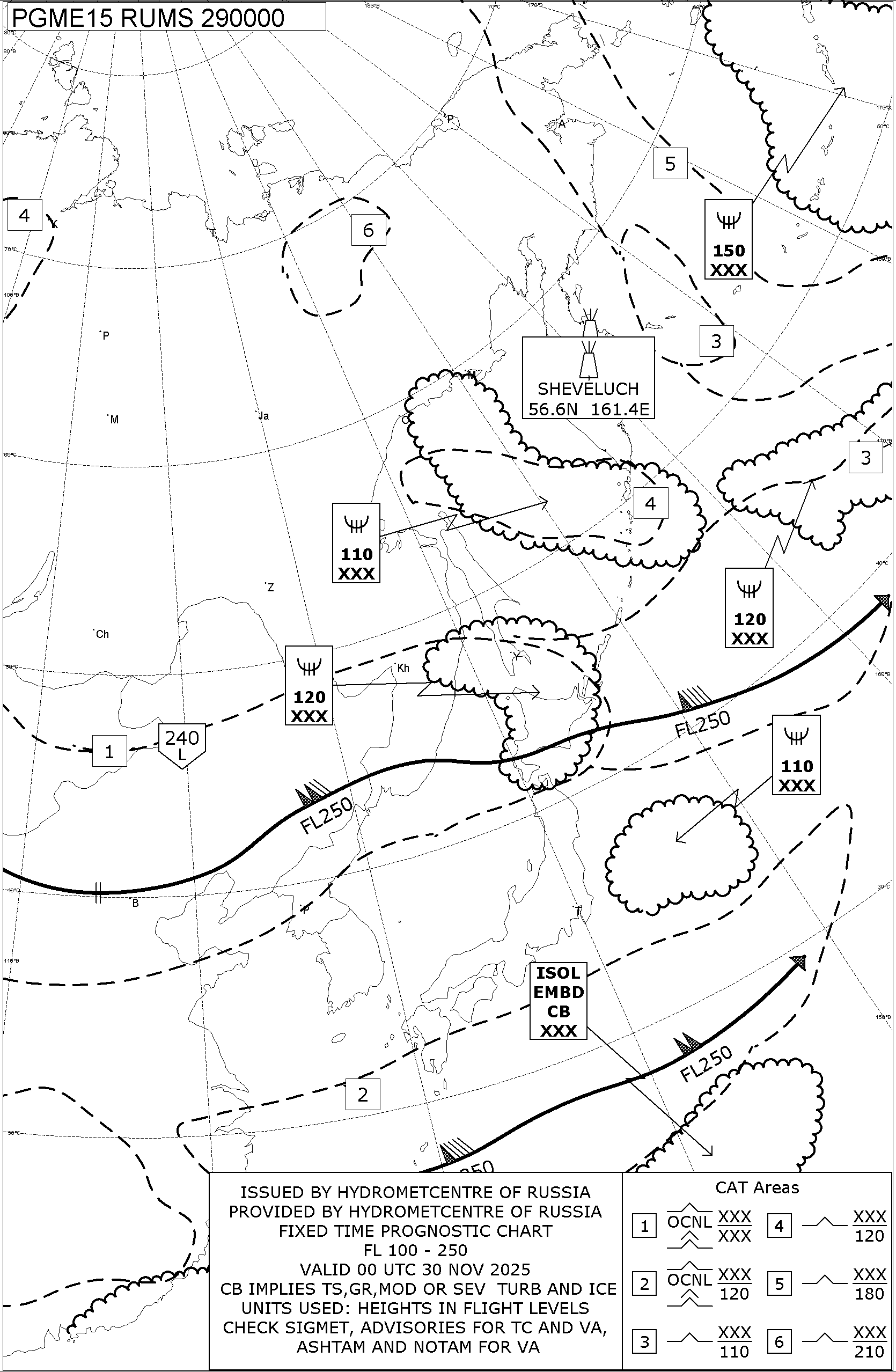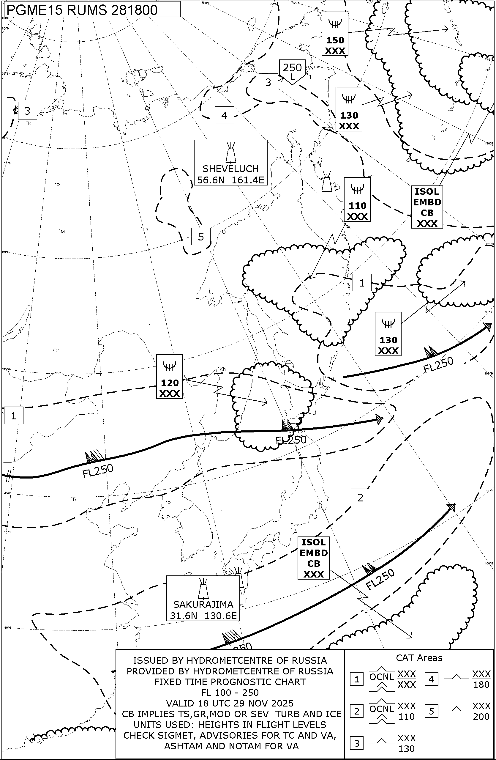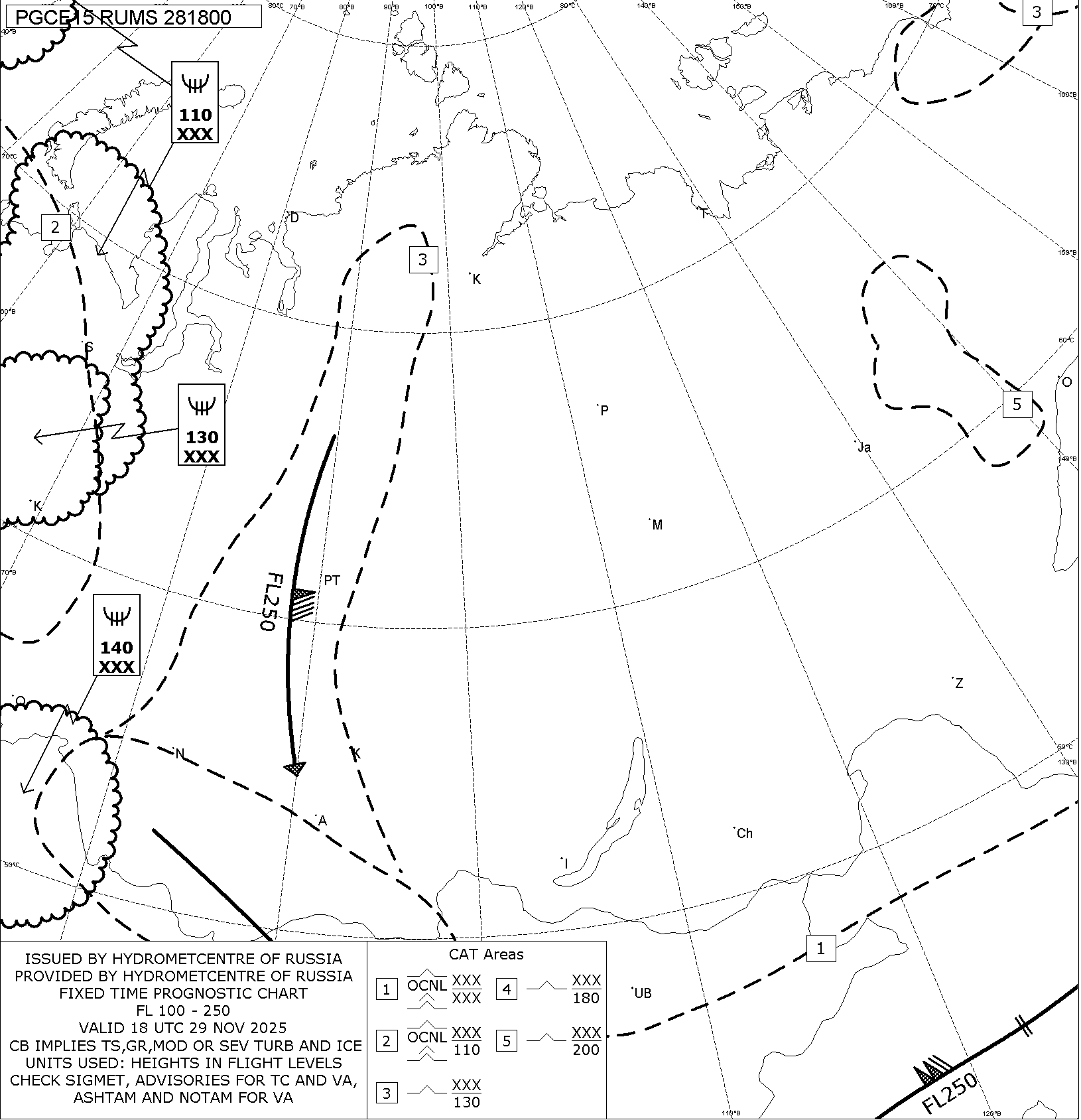 1.2 Среднего уровня в виде карт SWM для слоя FL100-FL250 на трех бланках, охватывающих воздушное пространство Российской Федерации с разбивкой на три региона: