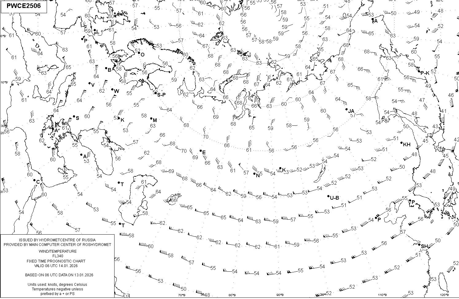 AREA C (Российская Федерация) по данным за 06 UTC 13.01.2026