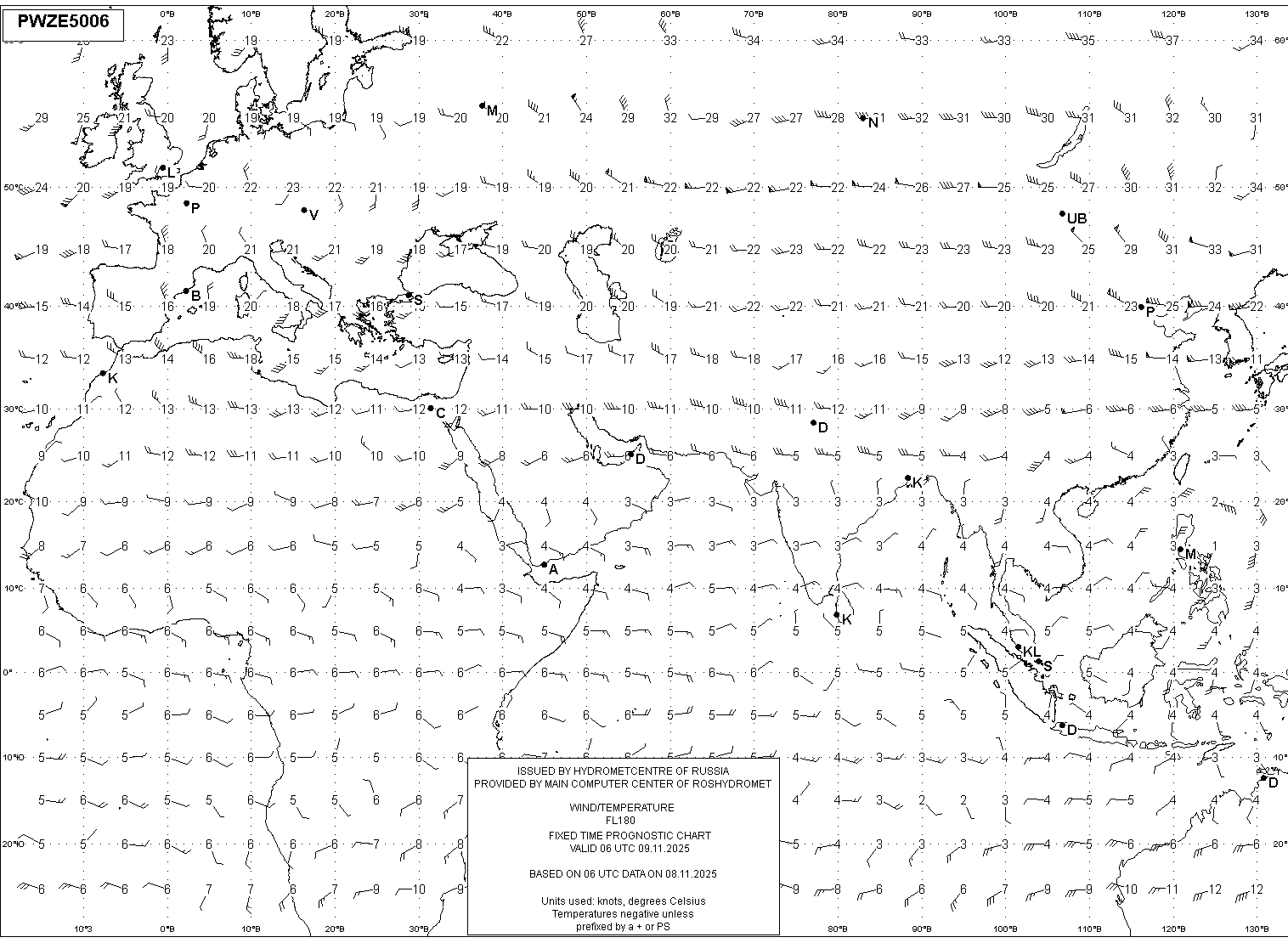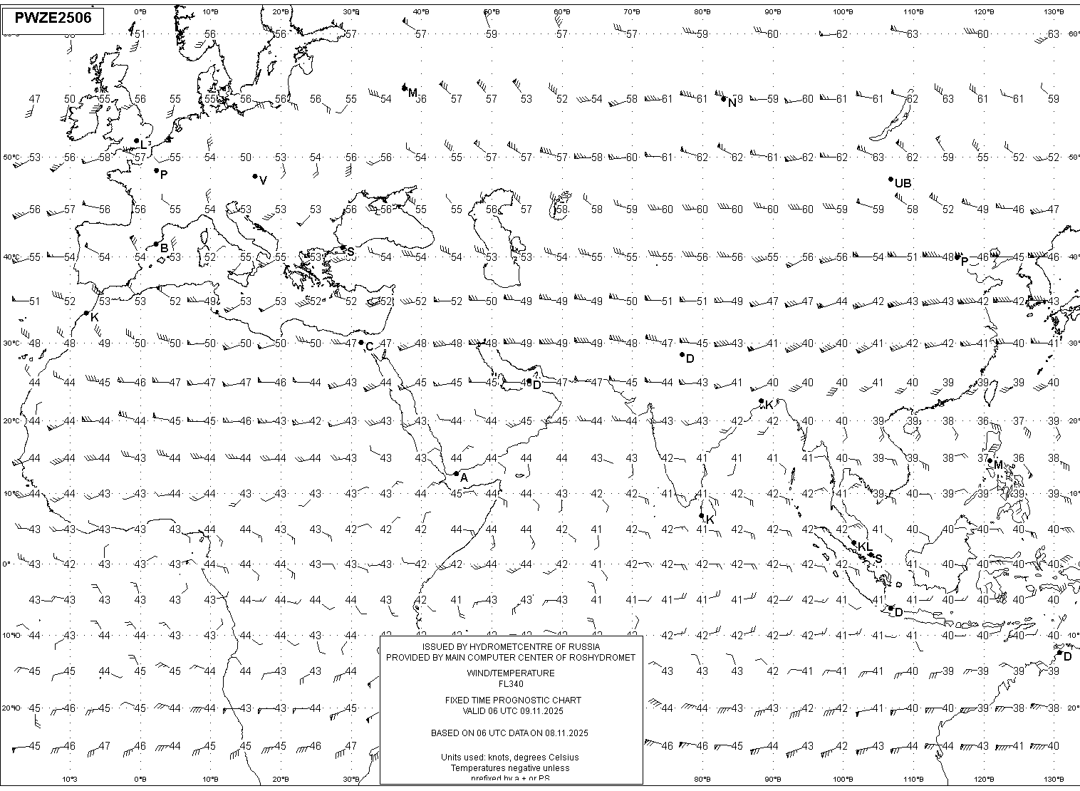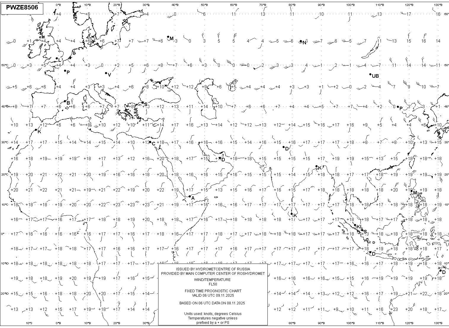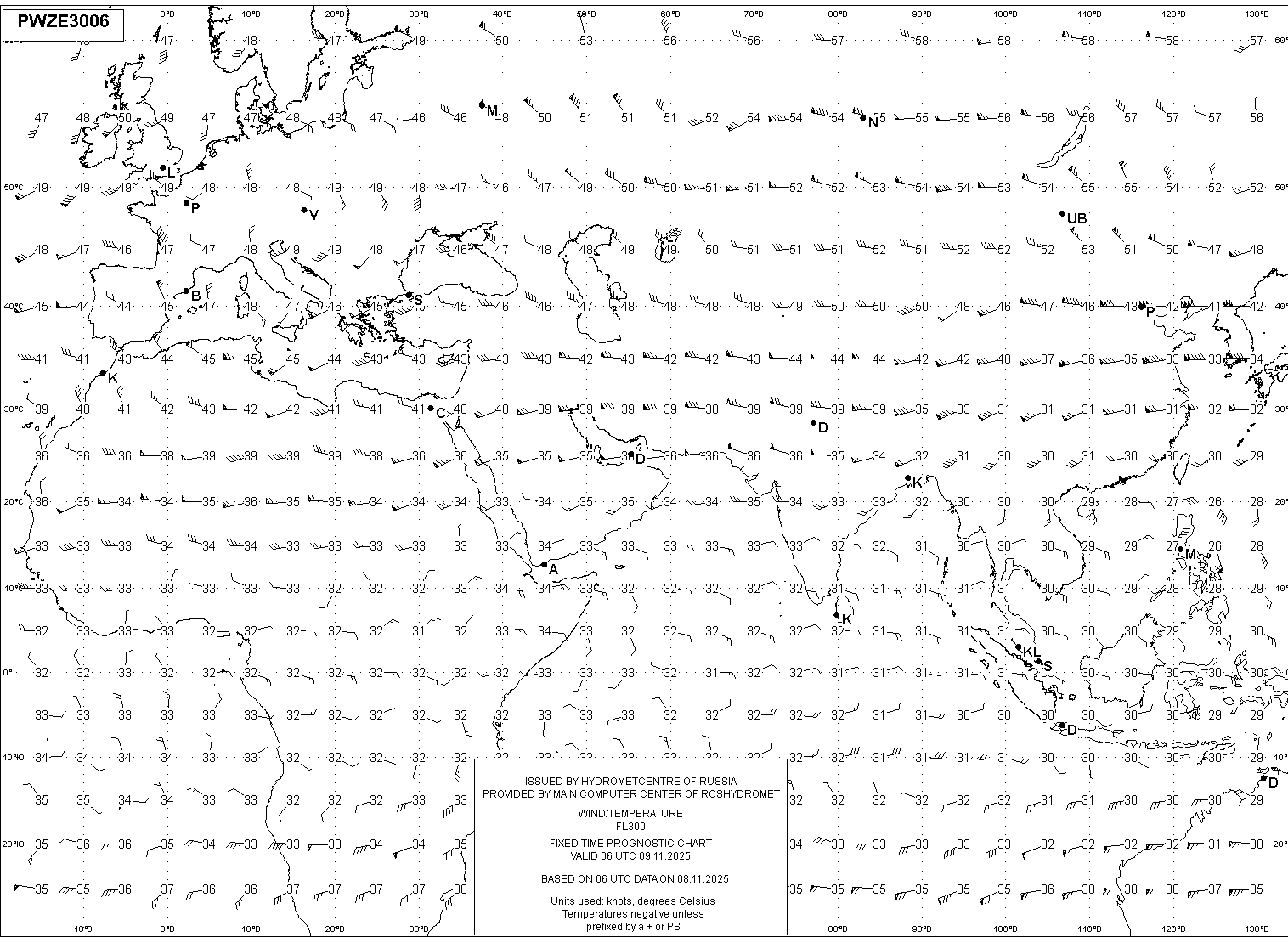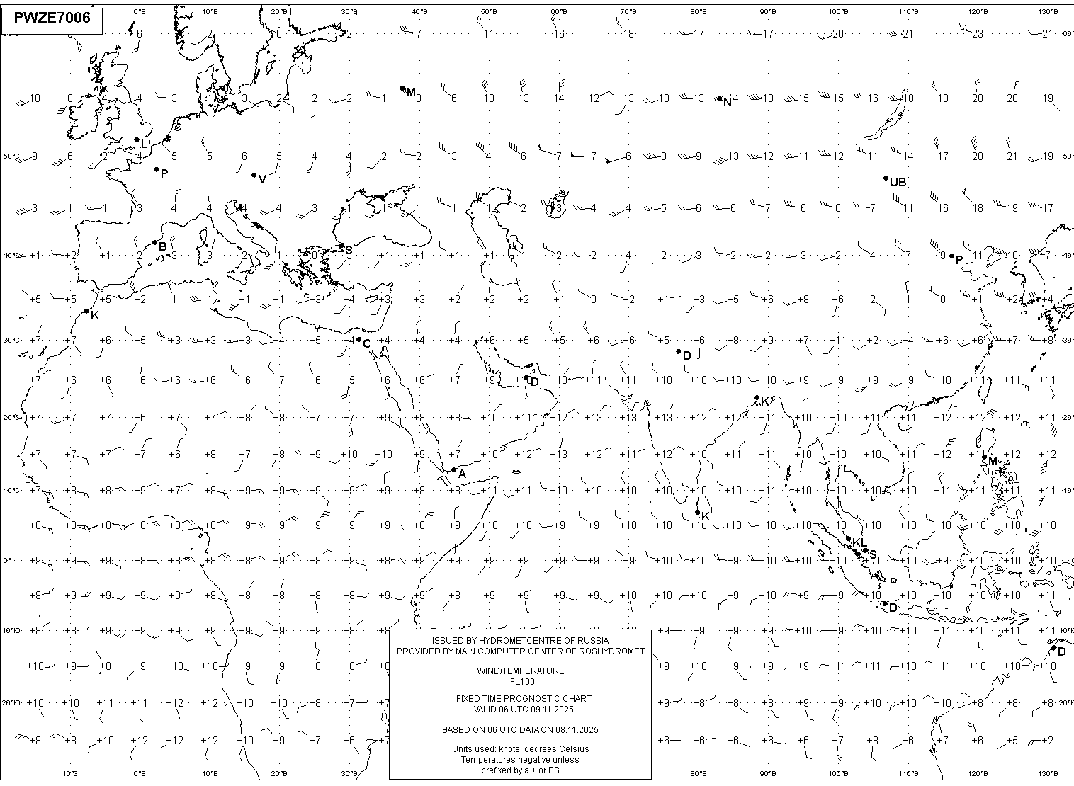AREA Z (Евразия и Африка) по данным за 06 UTC 08.11.2025