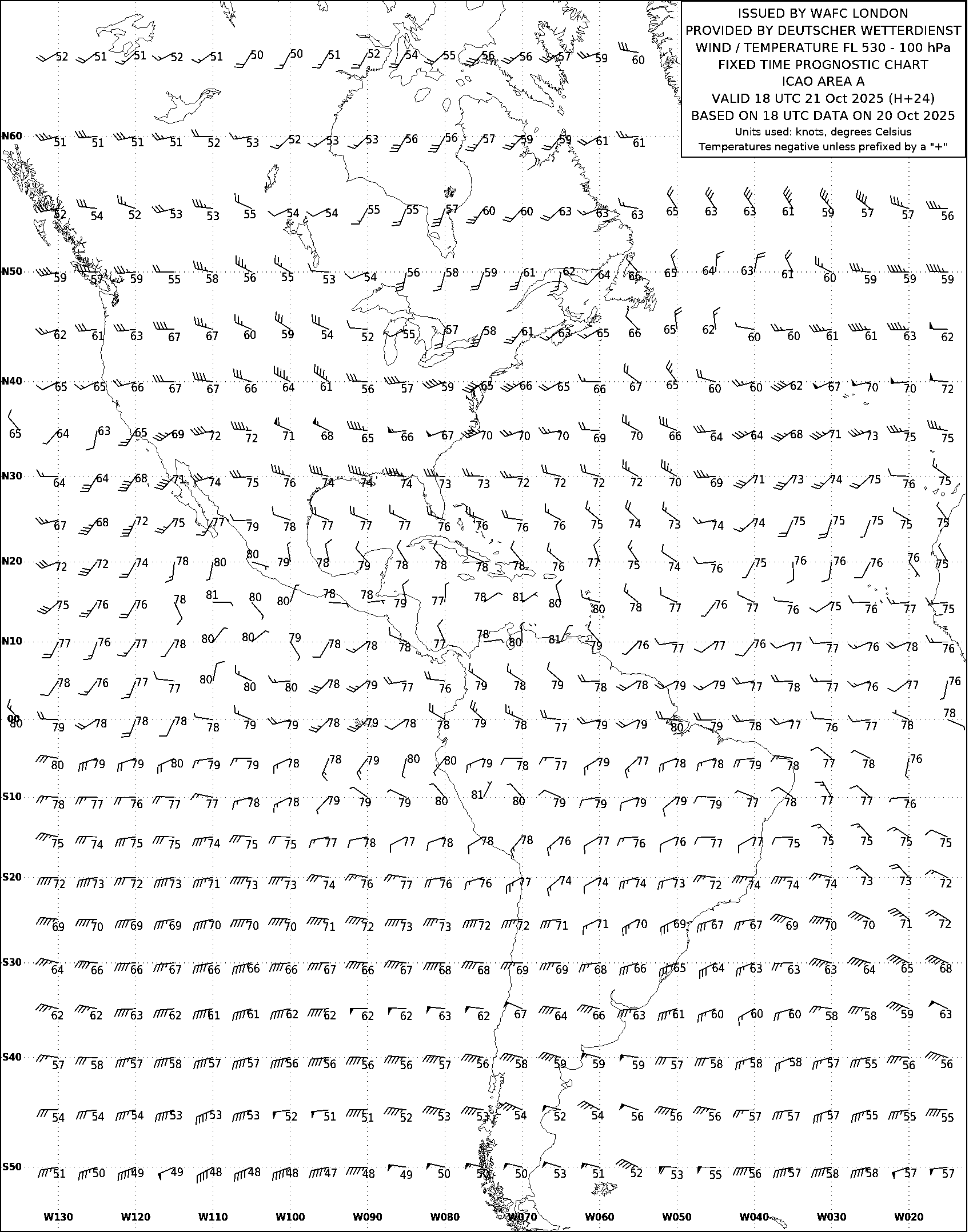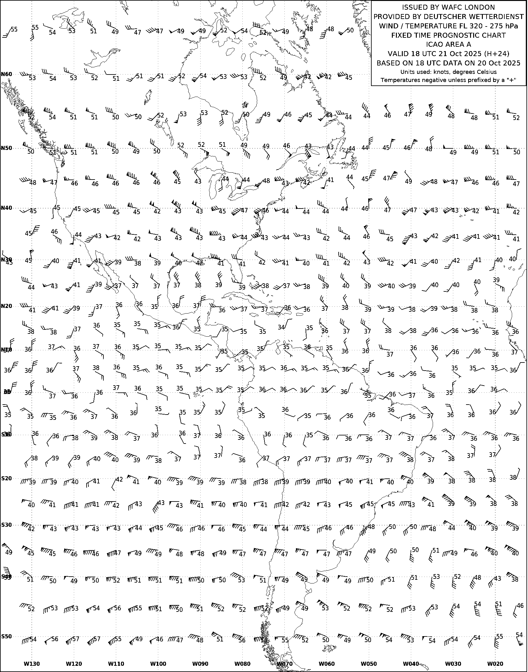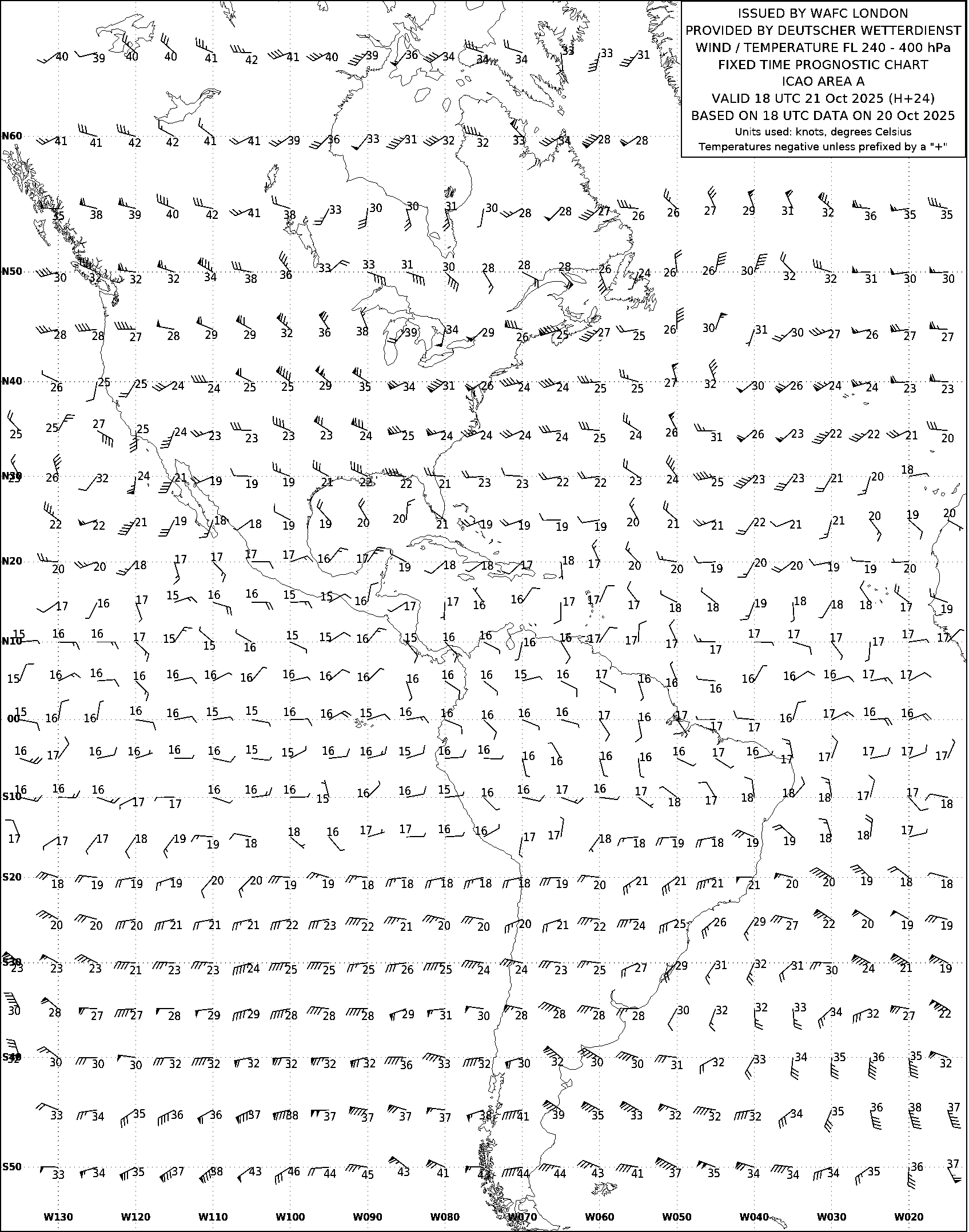 AREA A (Северная и Южная Америка) по данным за 18 UTC 20.10.2025