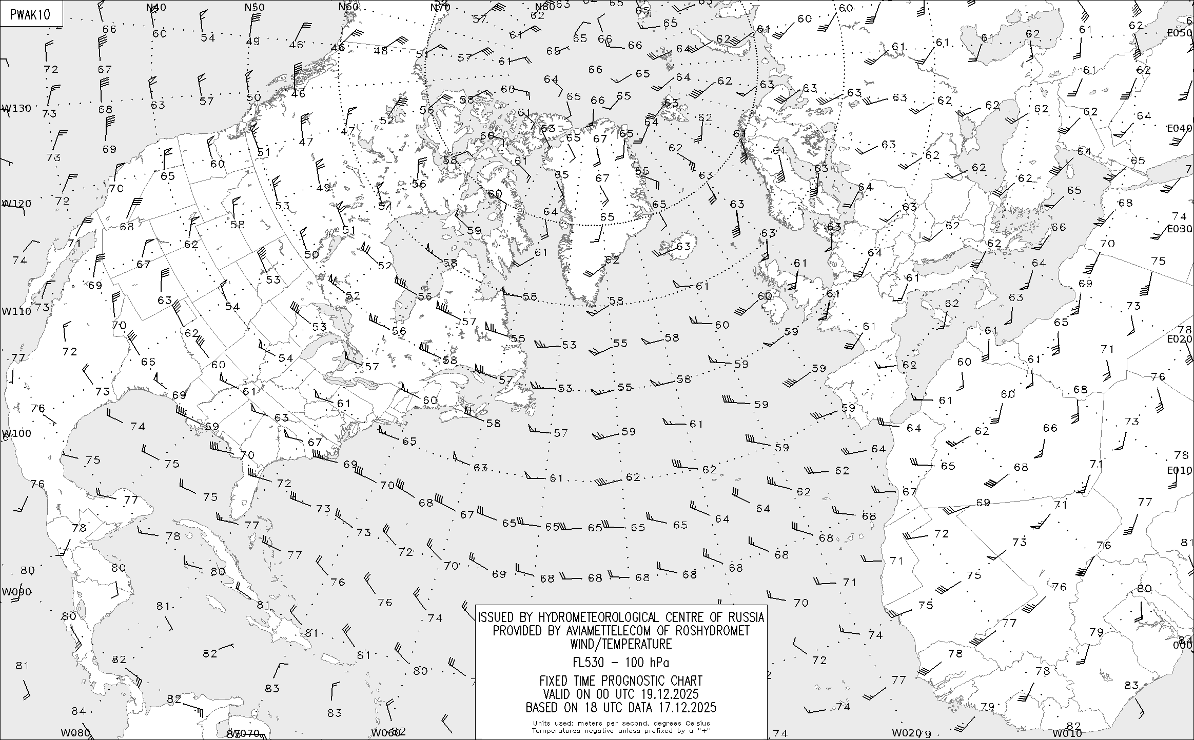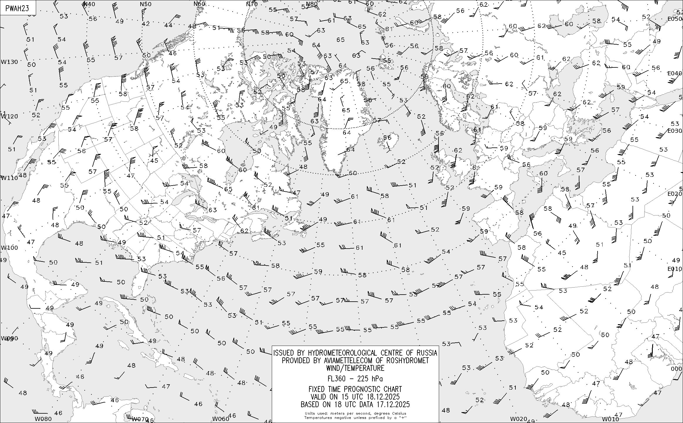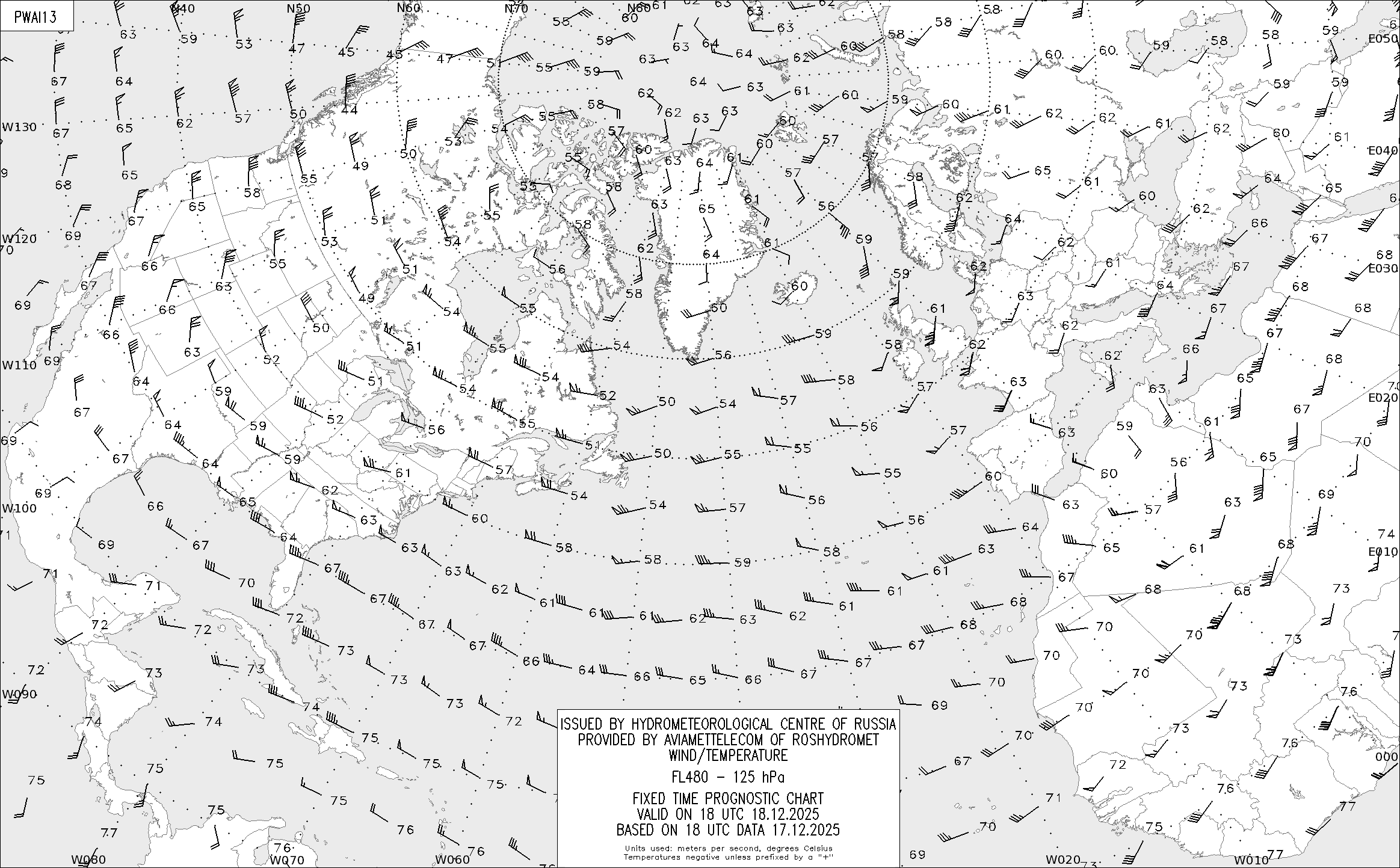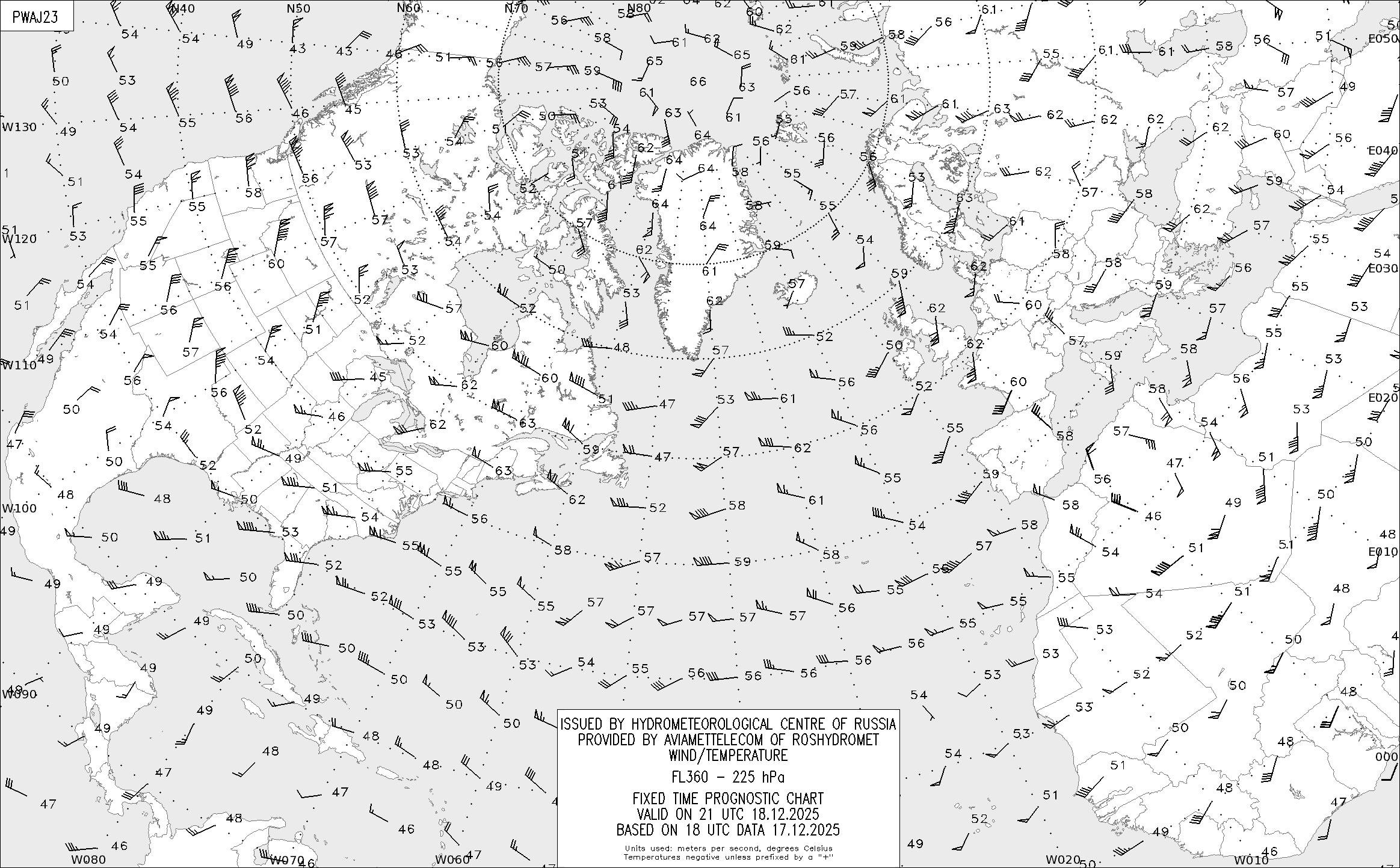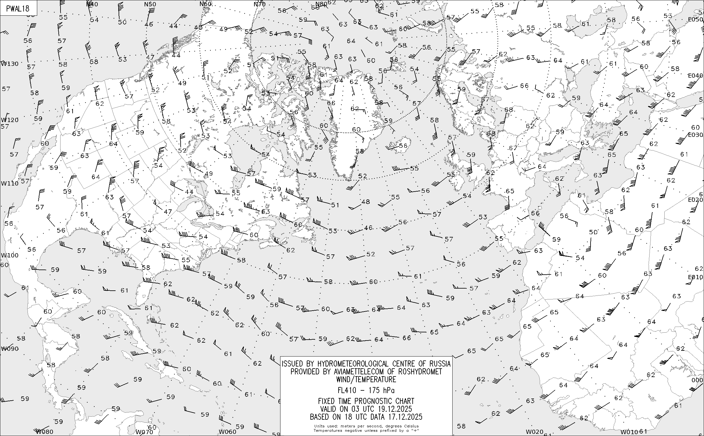 AREA A (Северная Америка и Европа) по данным за 18 UTC 17.12.2025