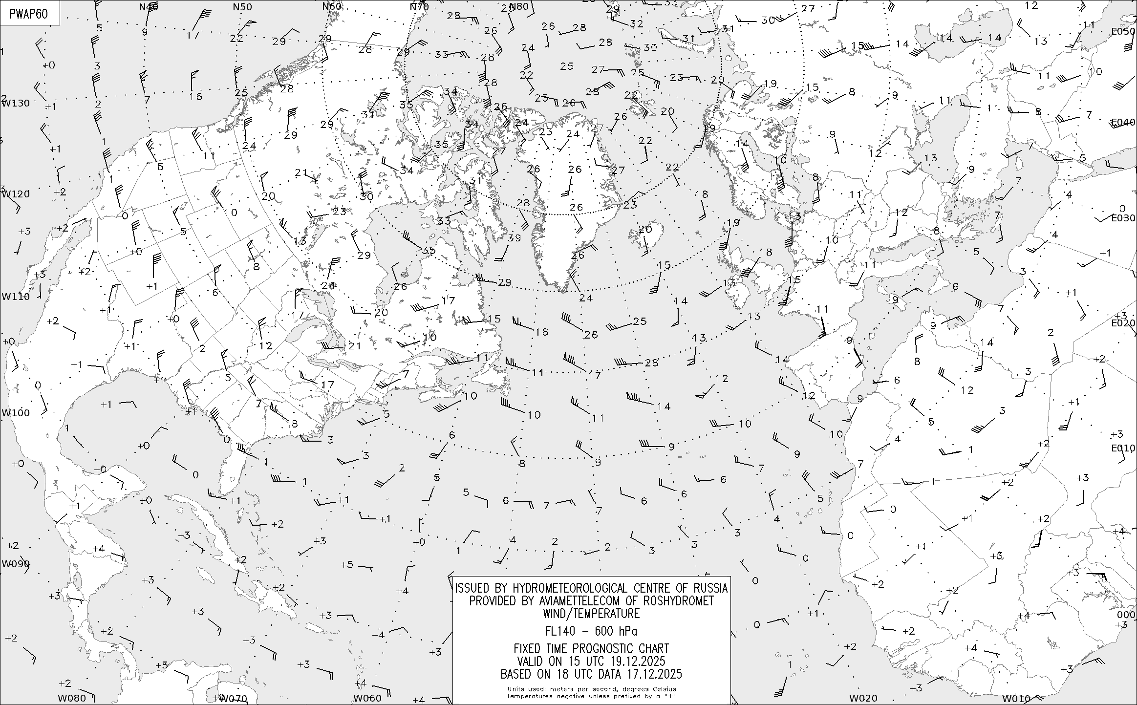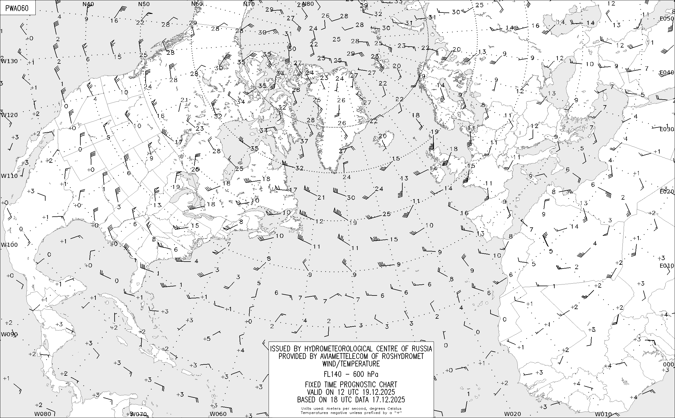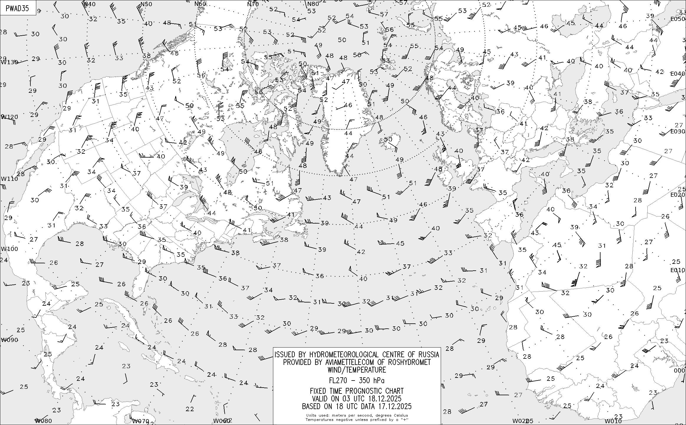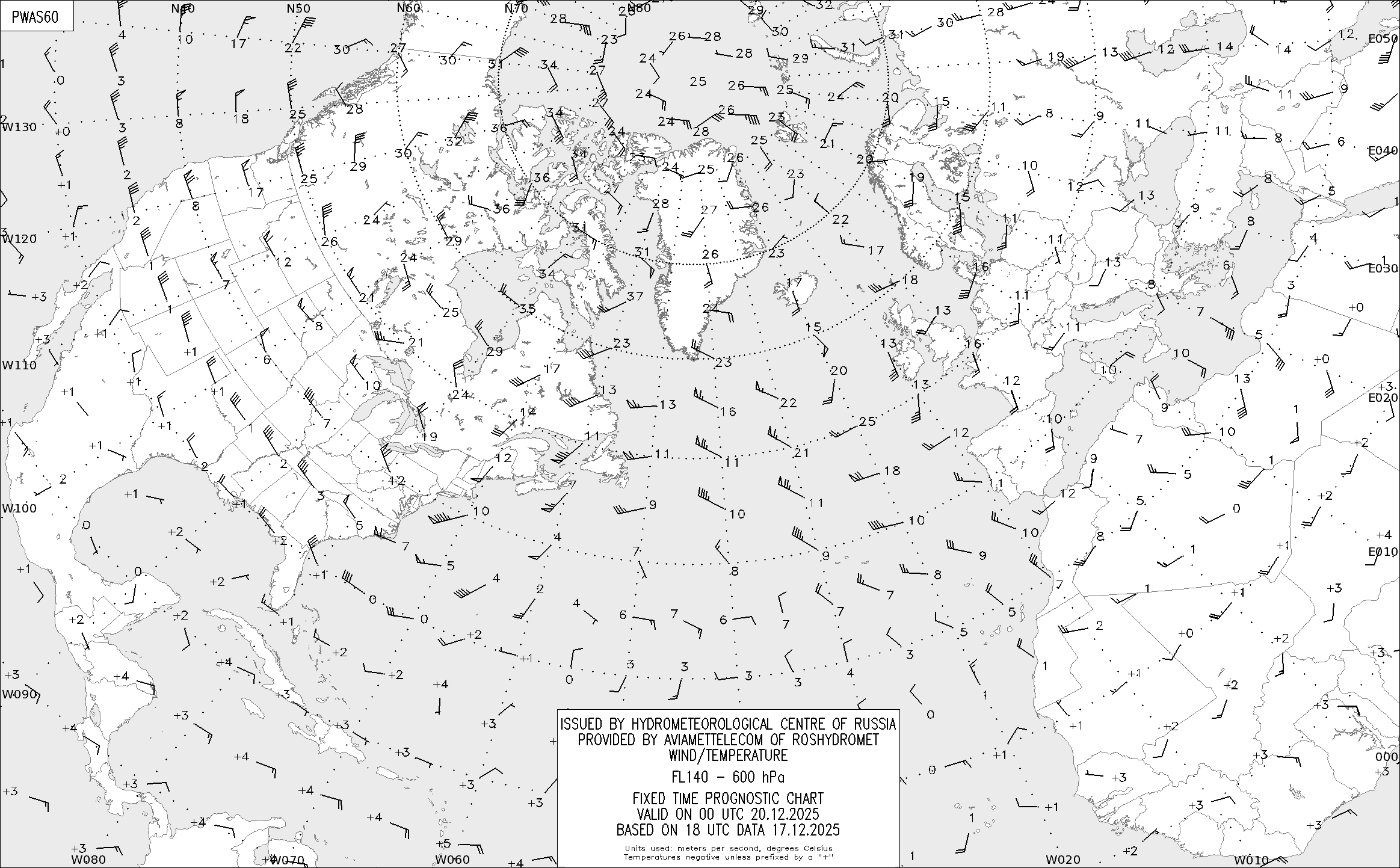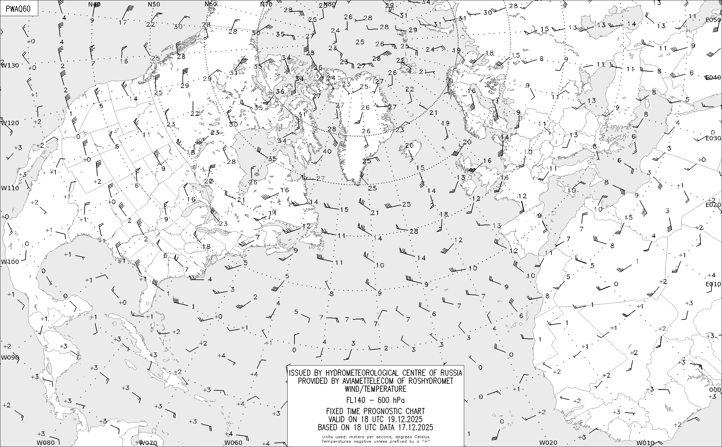 AREA A (Северная Америка и Европа) по данным за 18 UTC 17.12.2025
