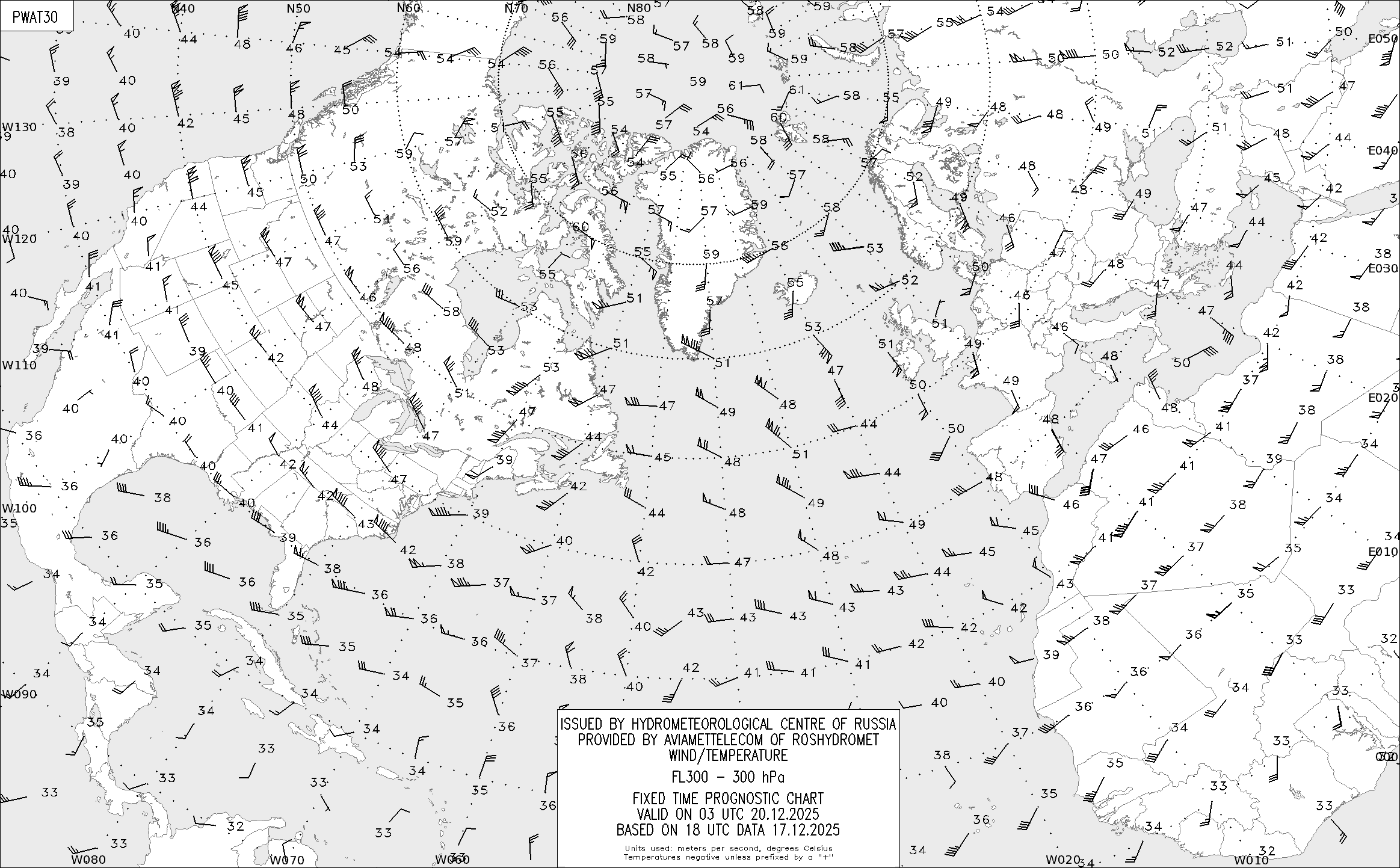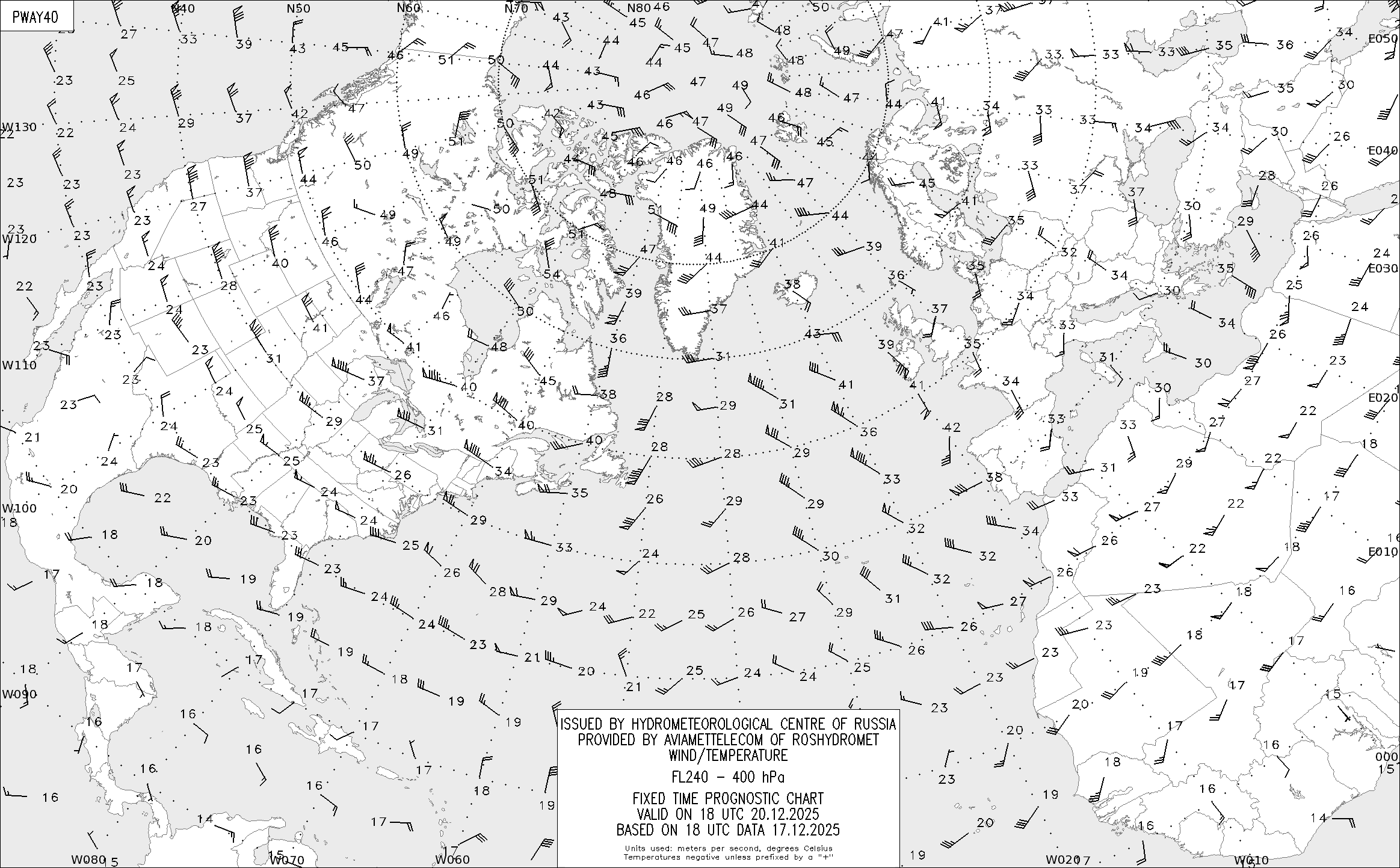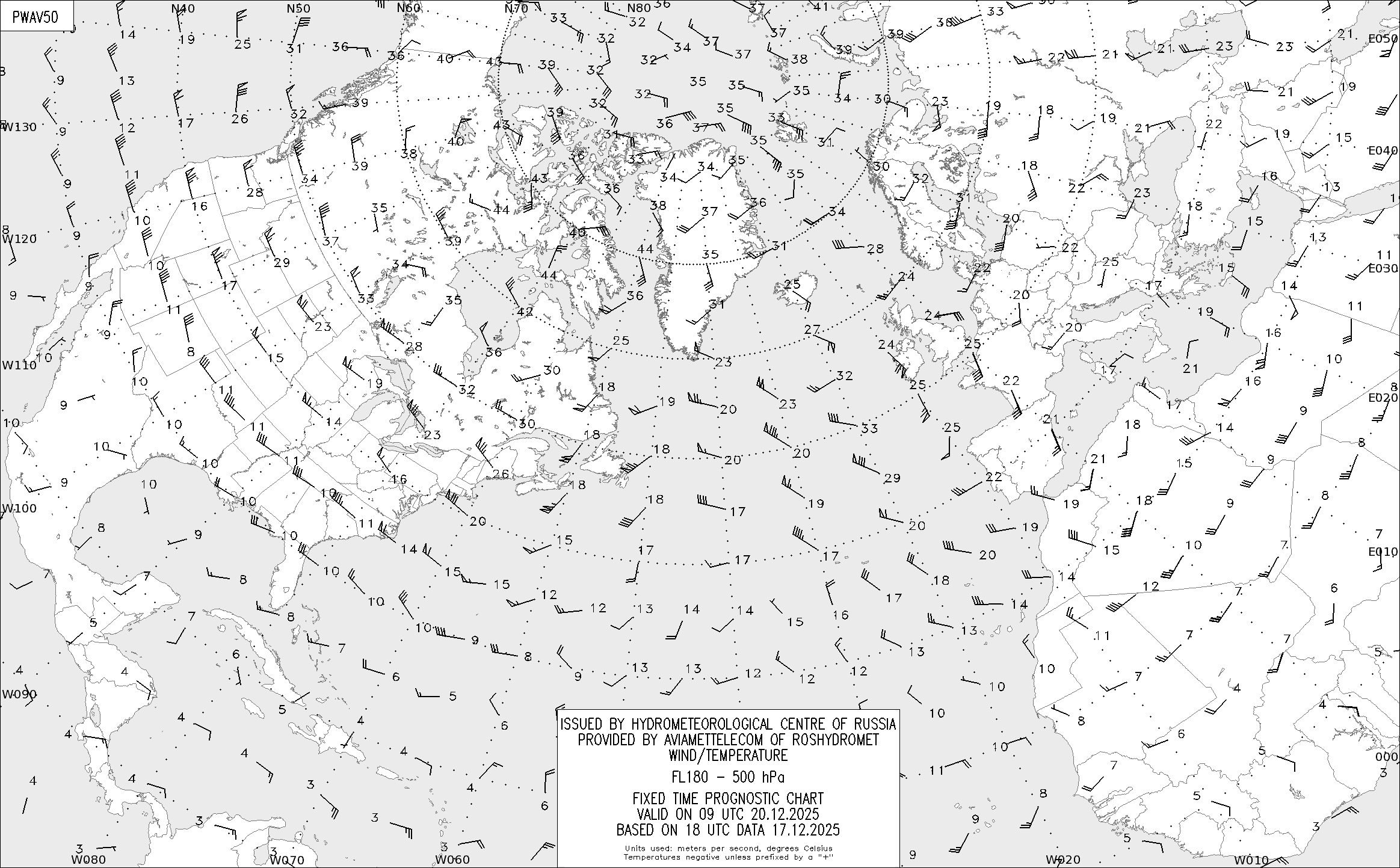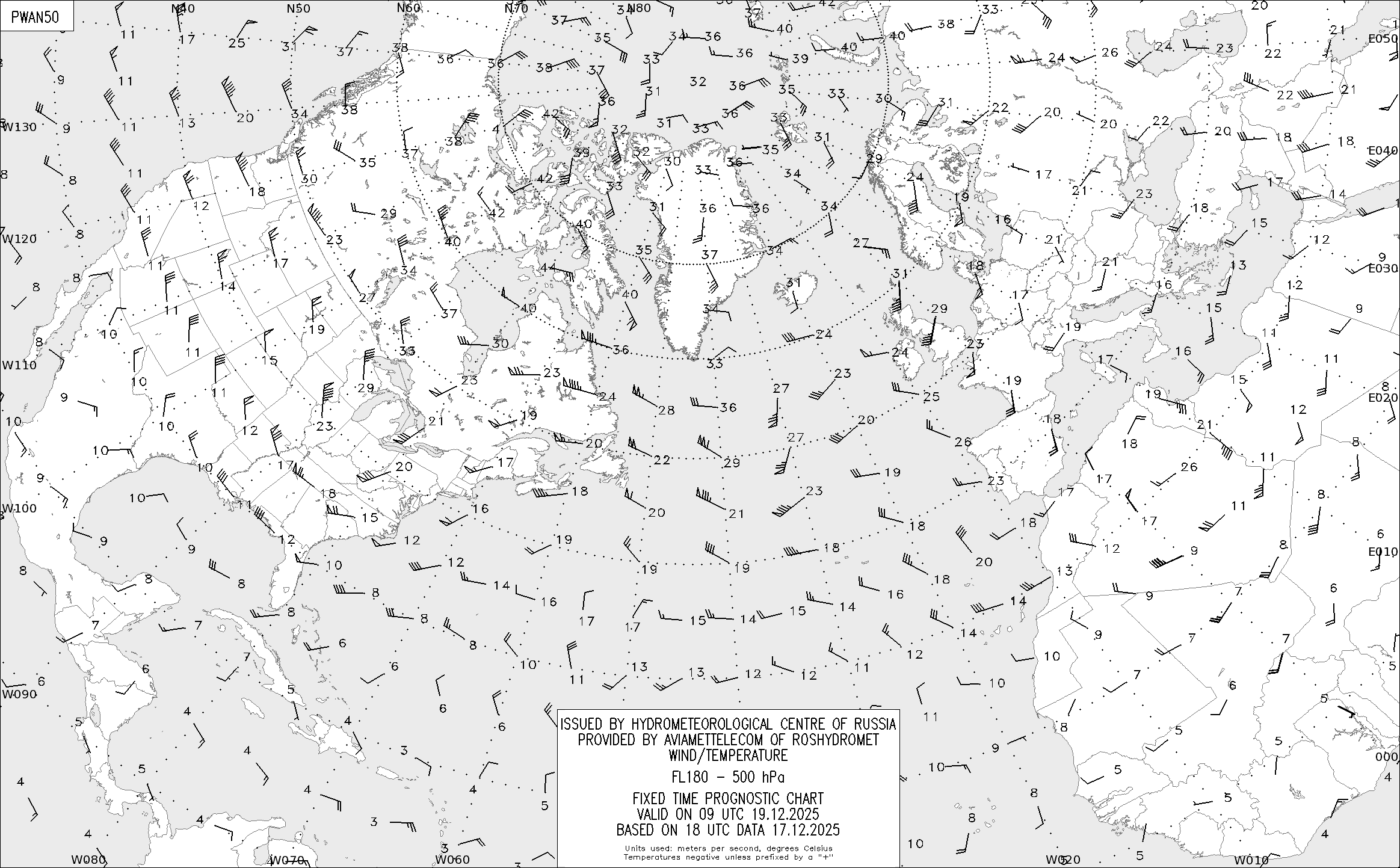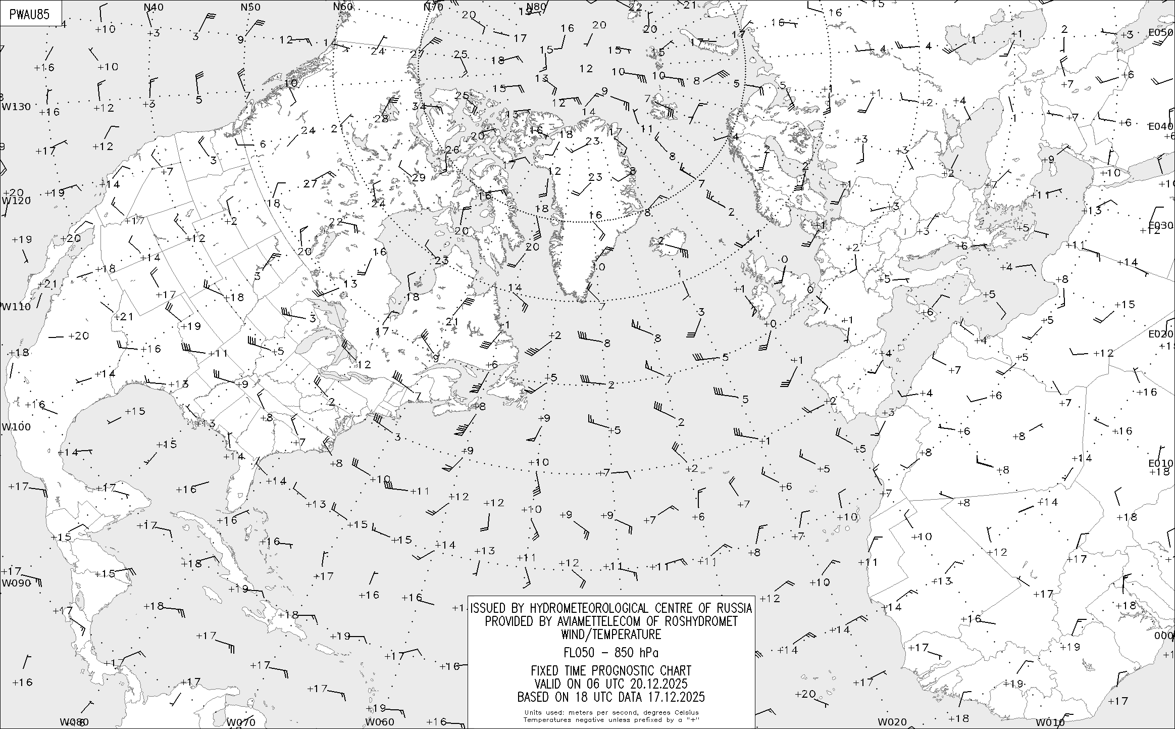 AREA A (Северная Америка и Европа) по данным за 18 UTC 17.12.2025