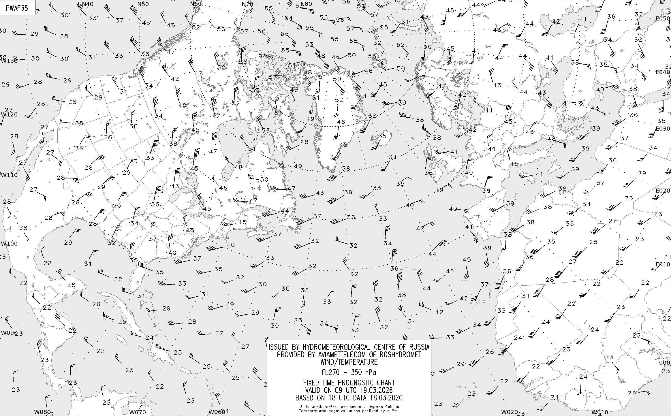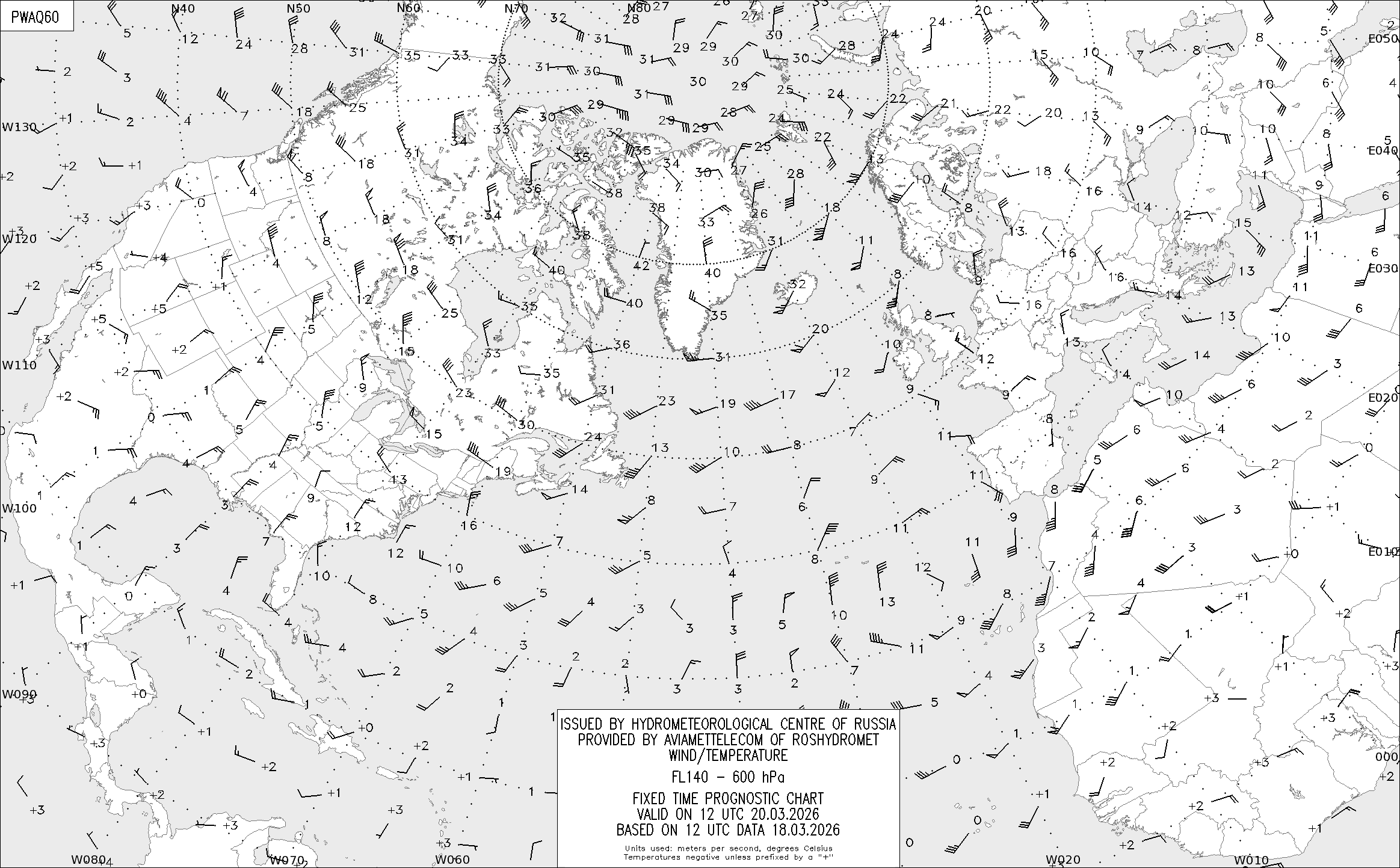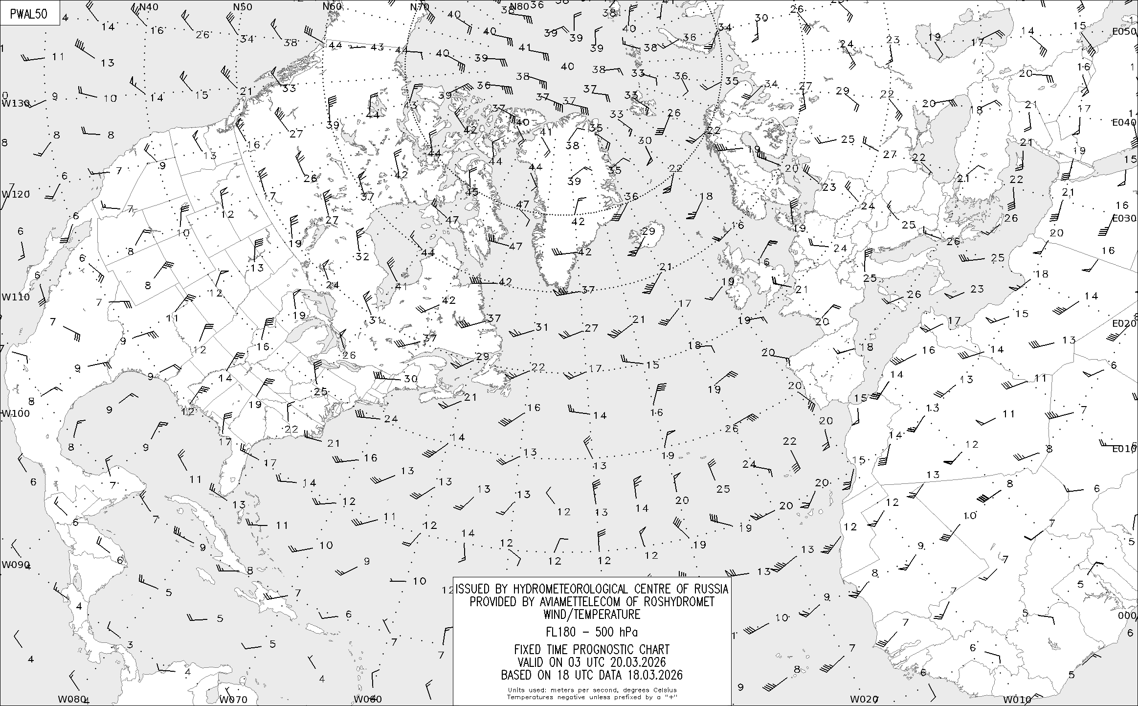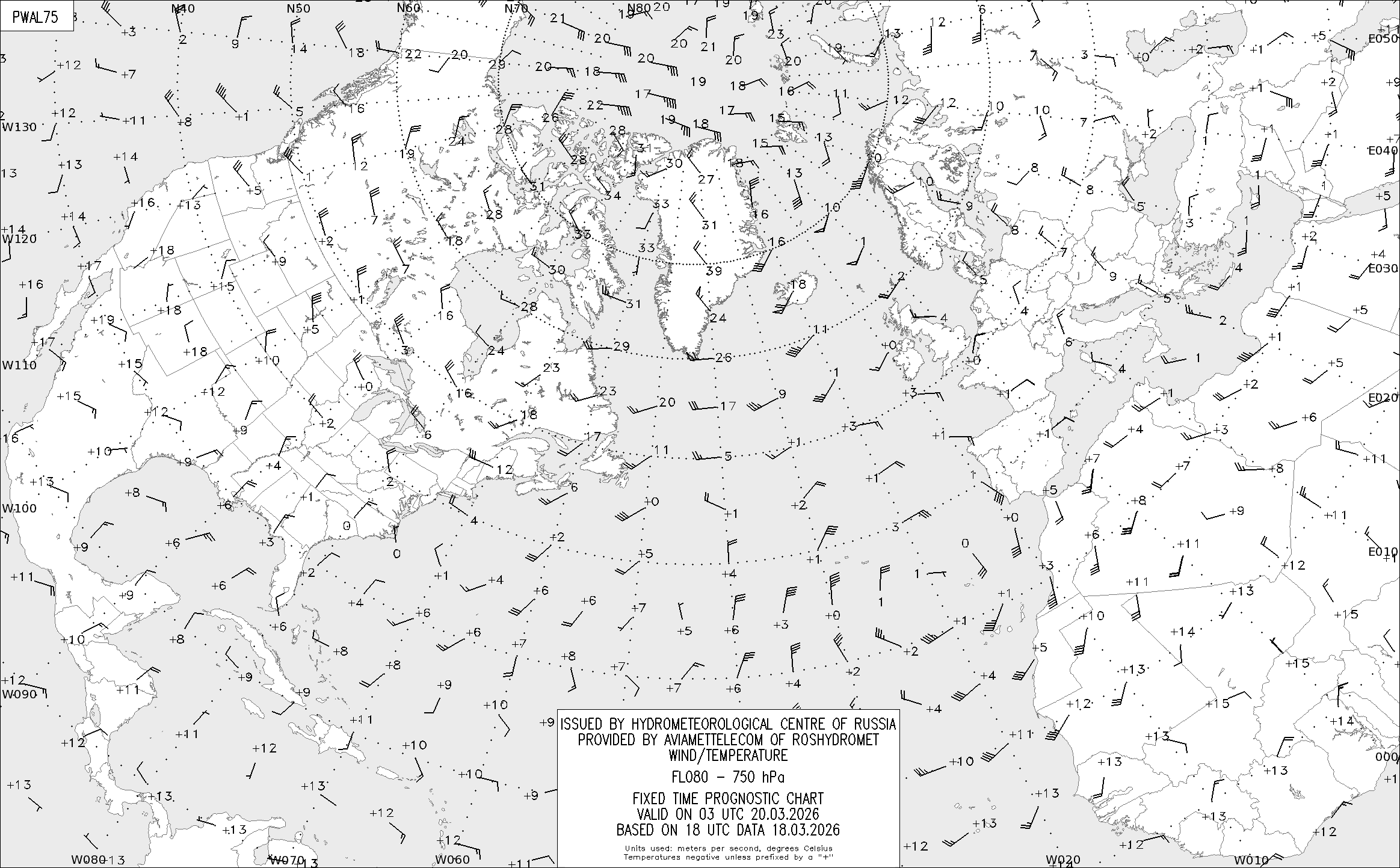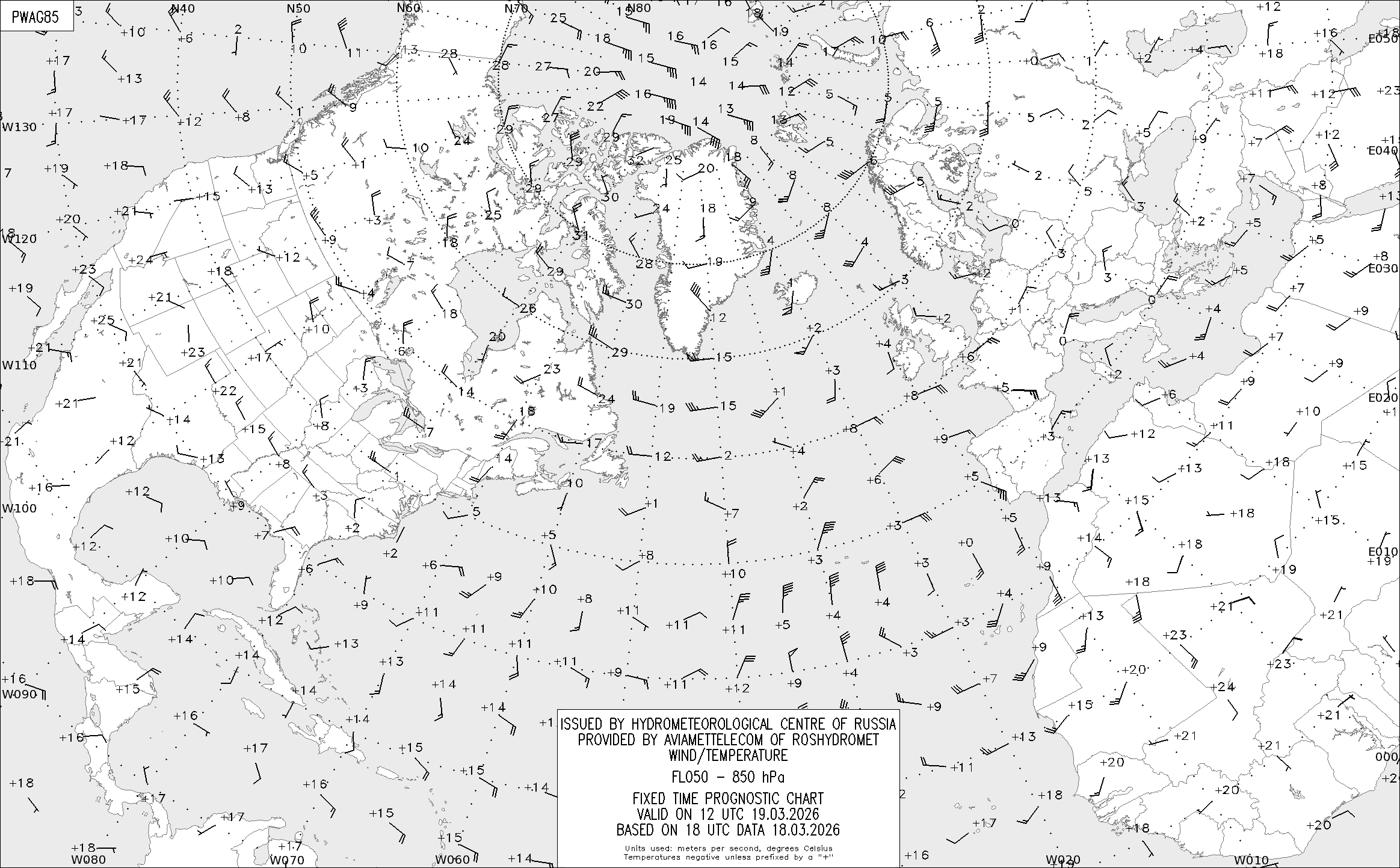 AREA A (Северная Америка и Европа) по данным за 12 UTC 18.03.2026