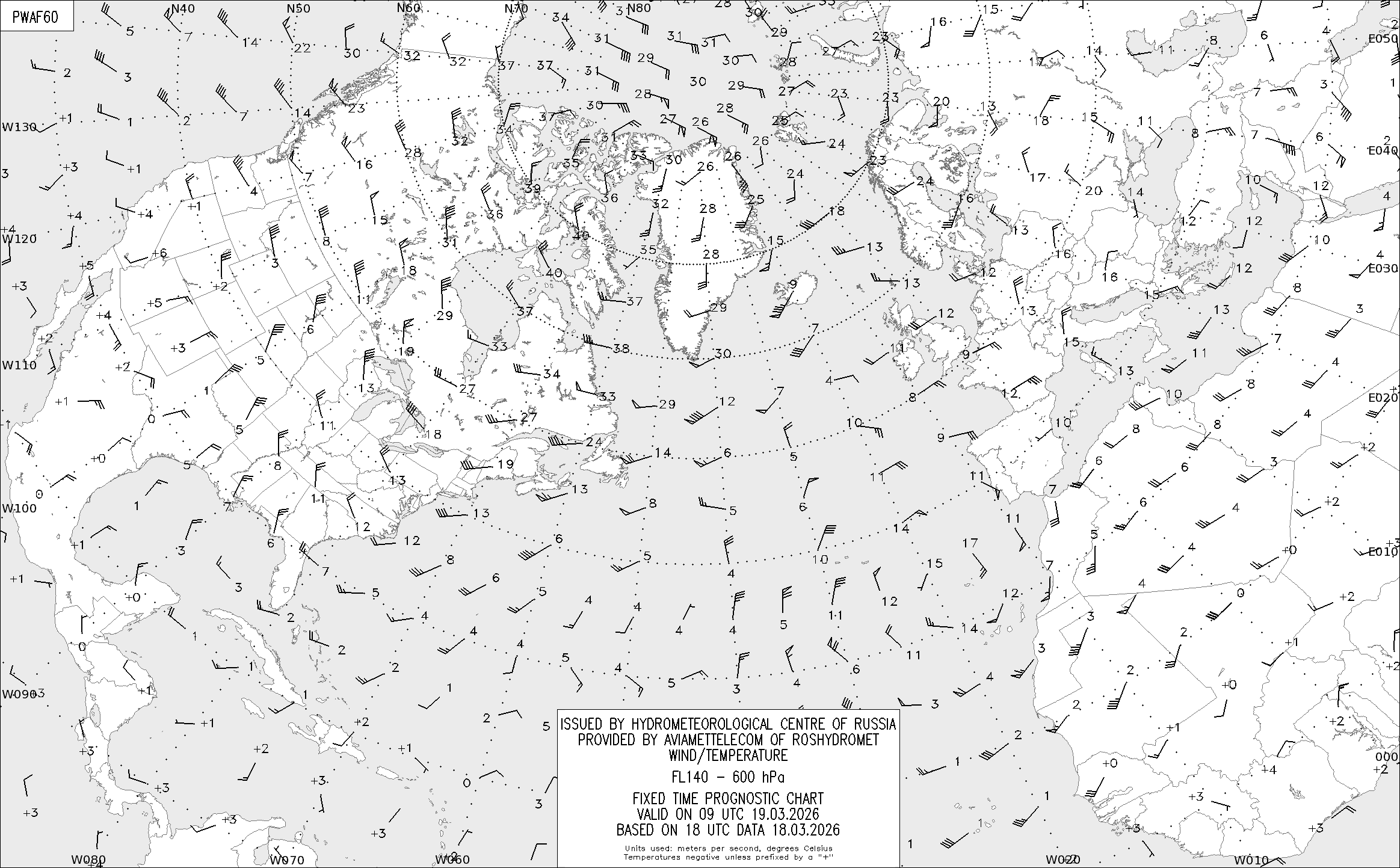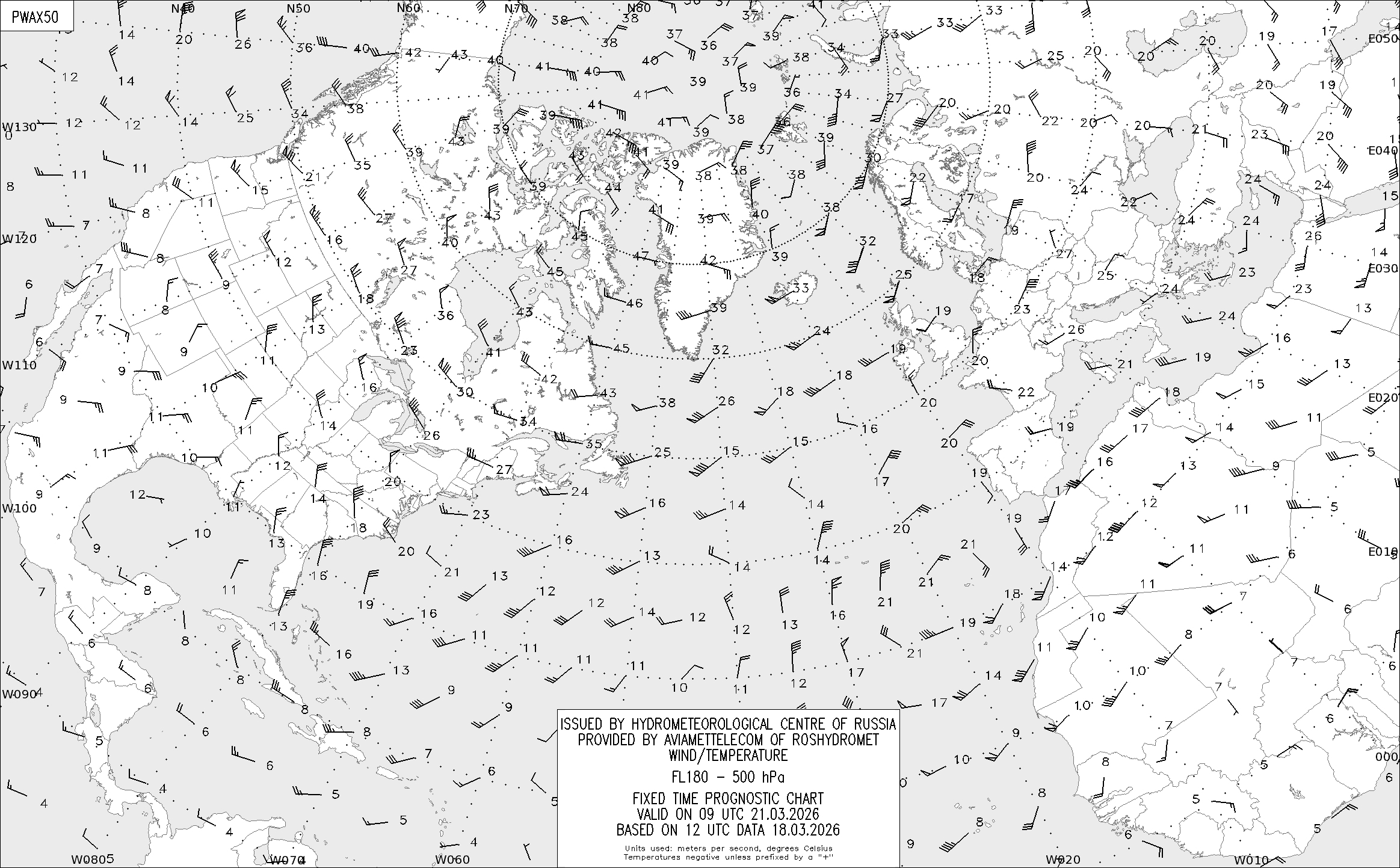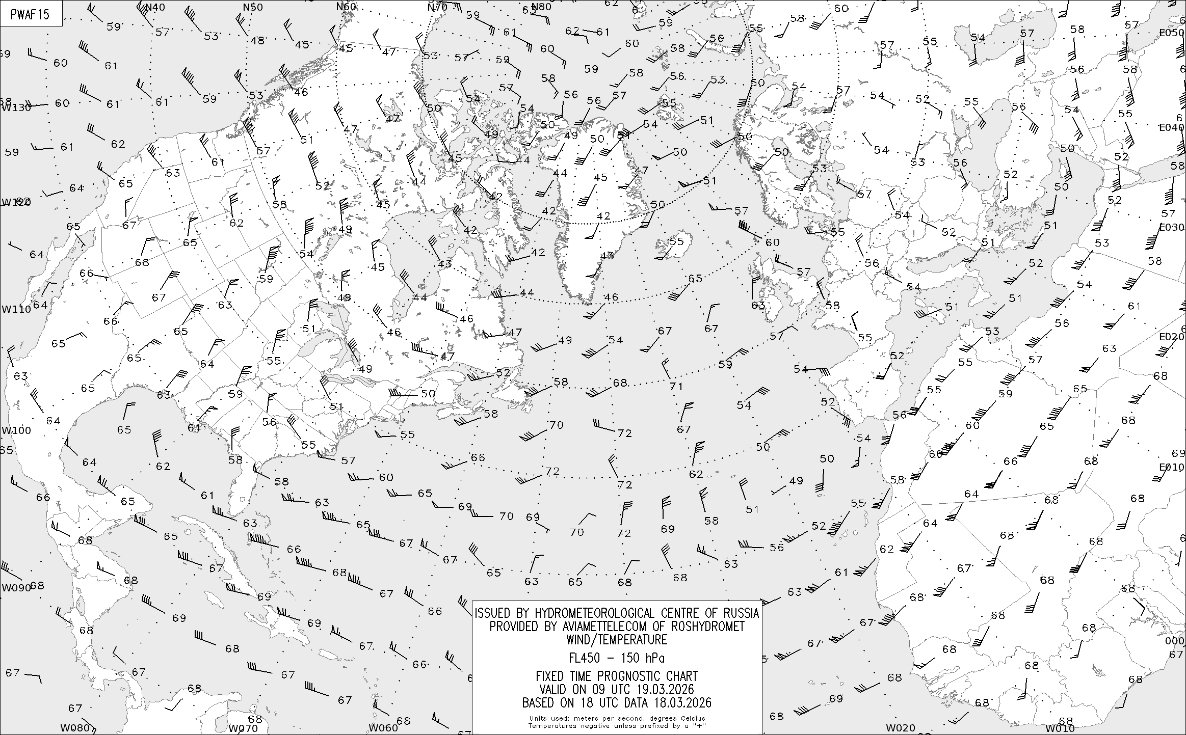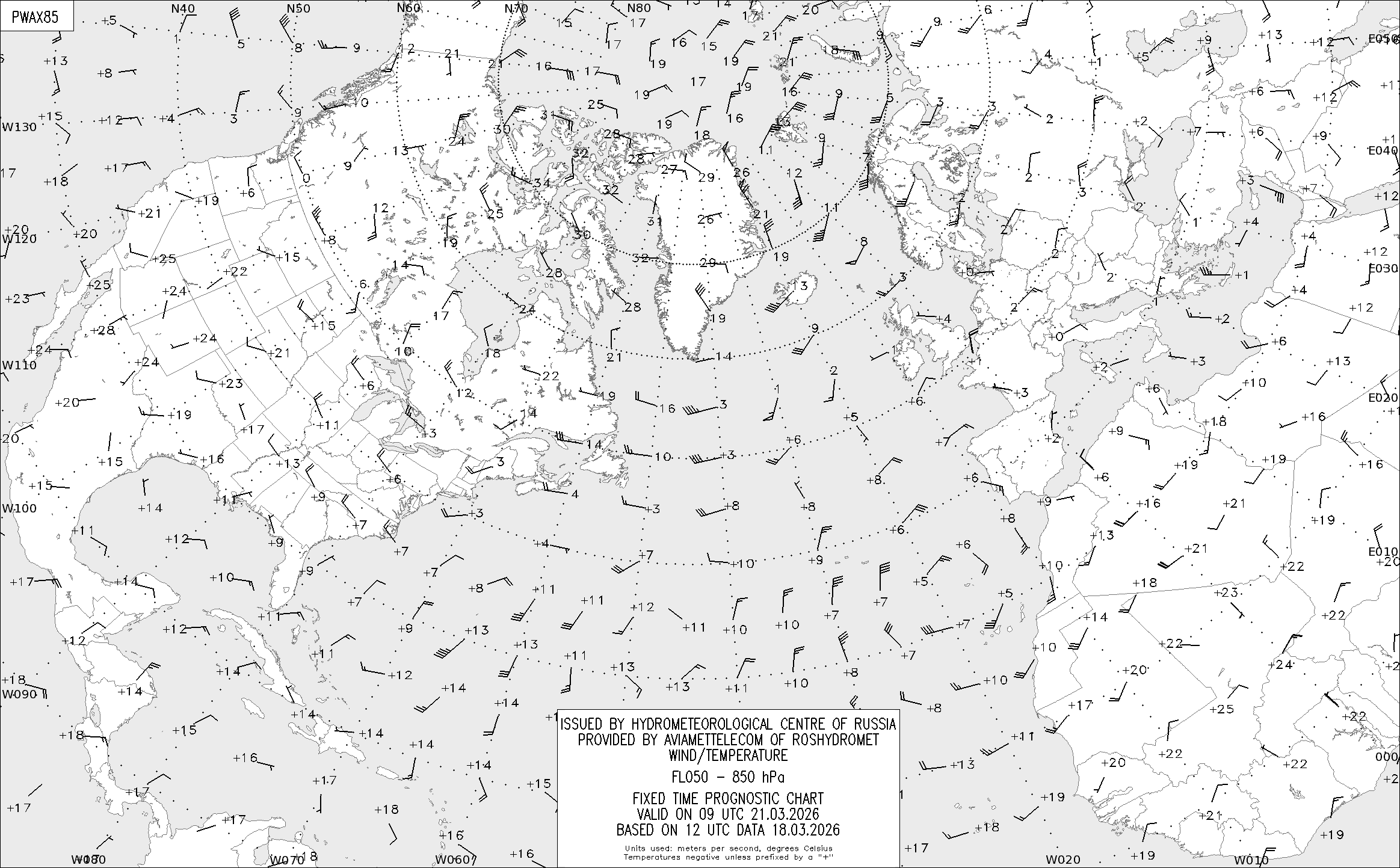 AREA A (Северная Америка и Европа) по данным за 12 UTC 18.03.2026