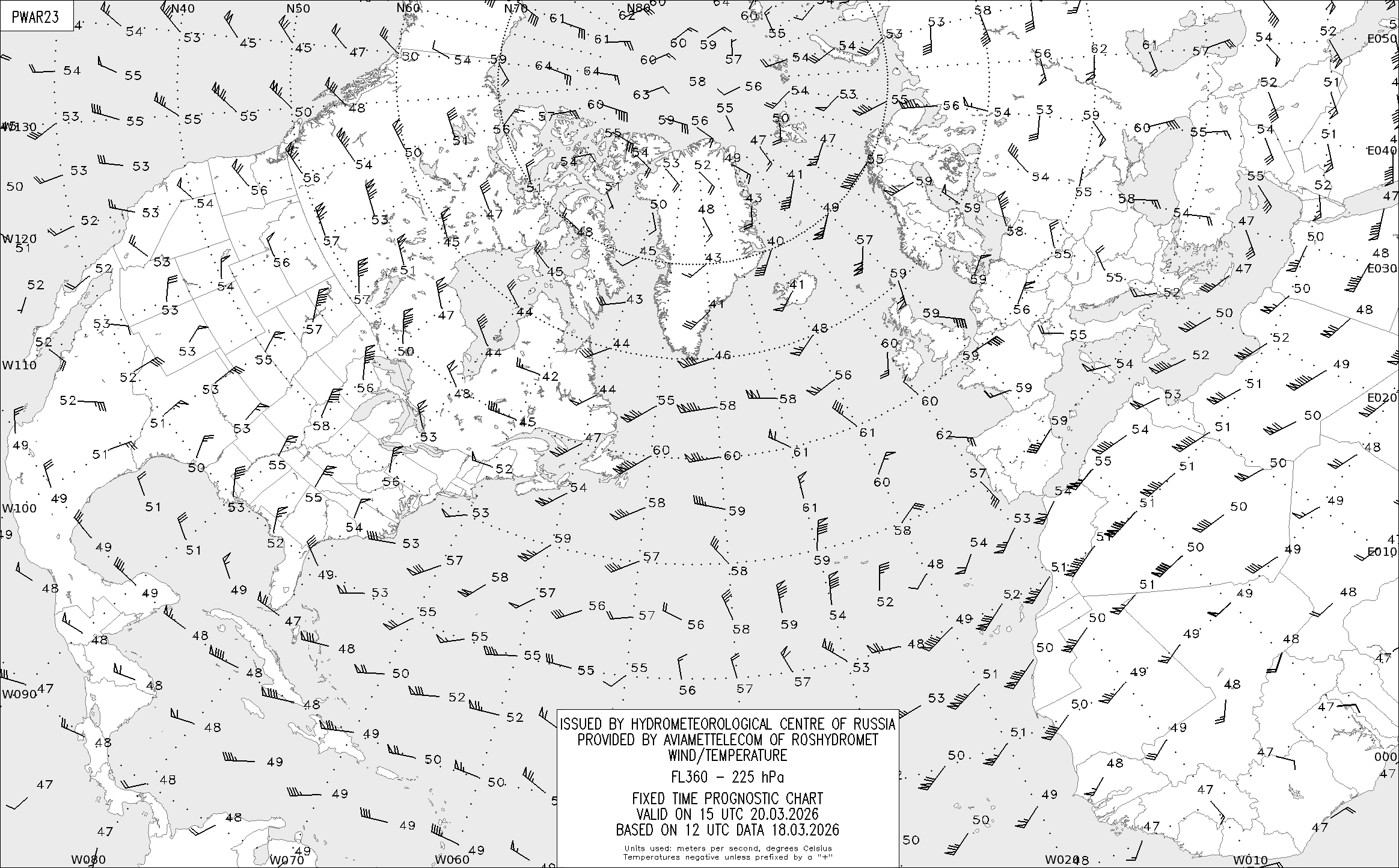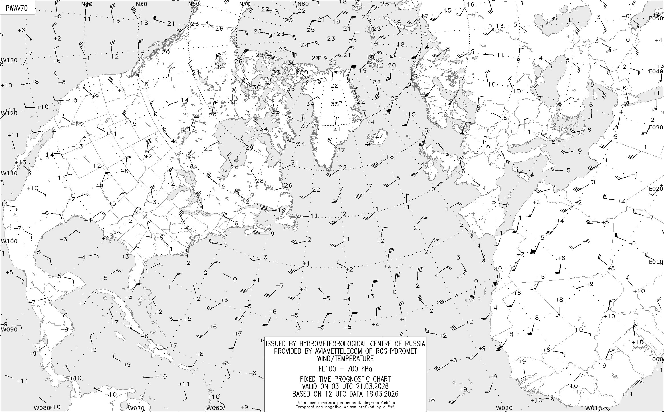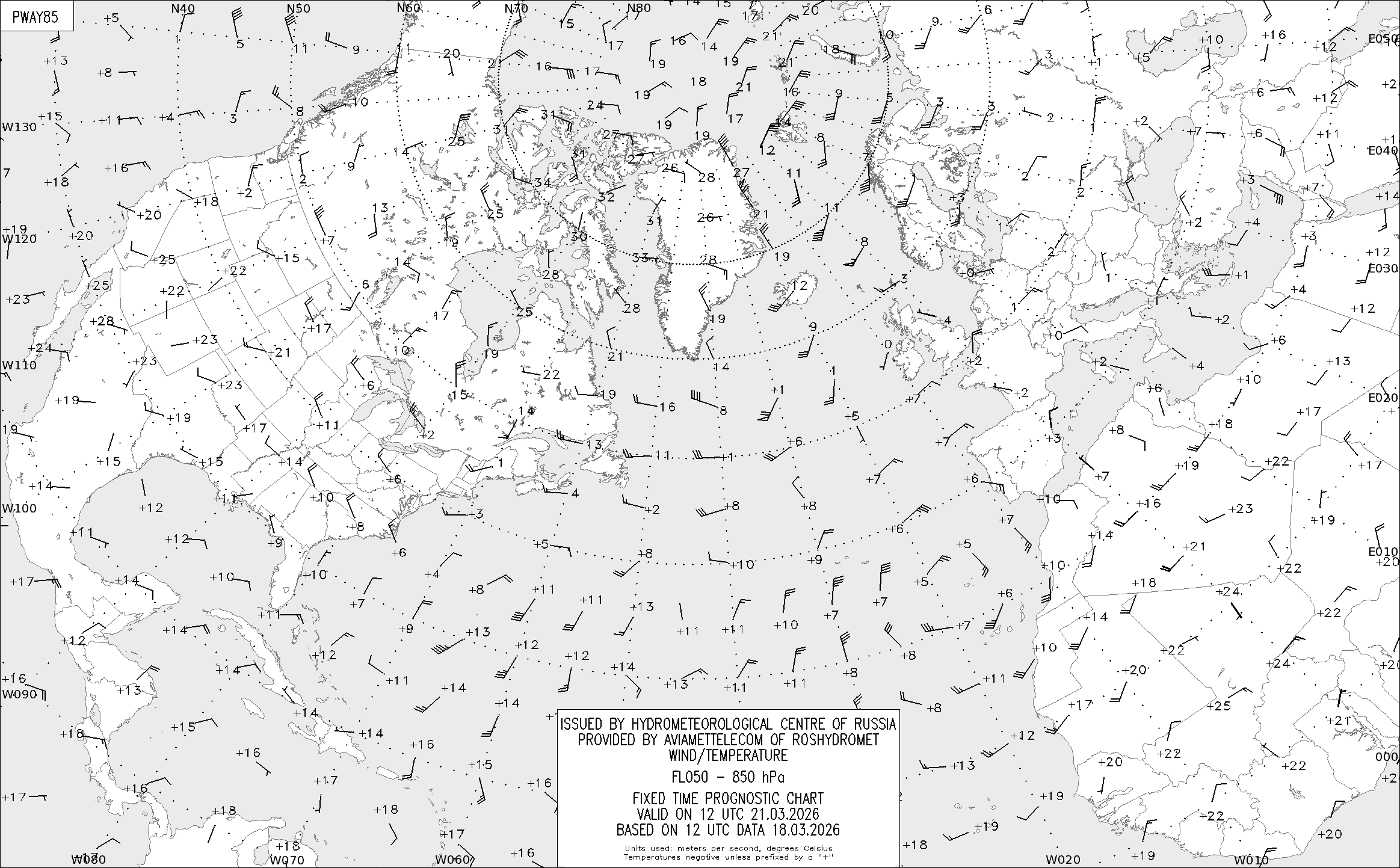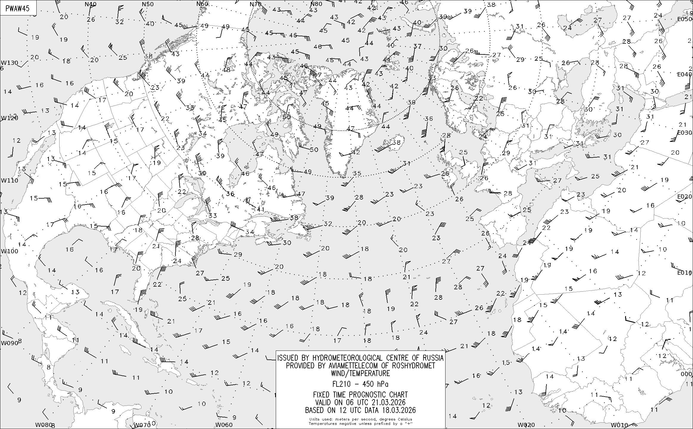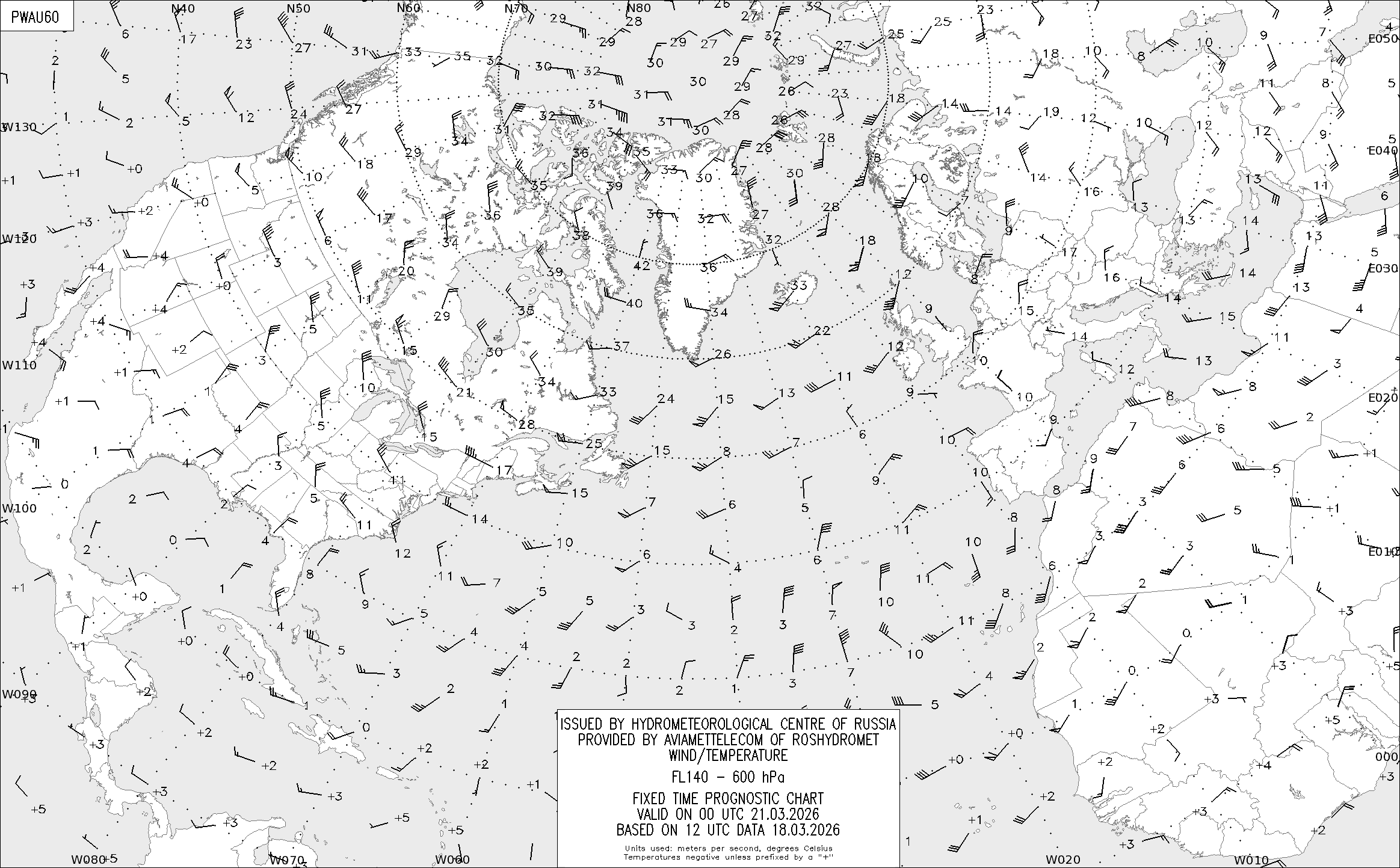 AREA A (Северная Америка и Европа) по данным за 12 UTC 18.03.2026
