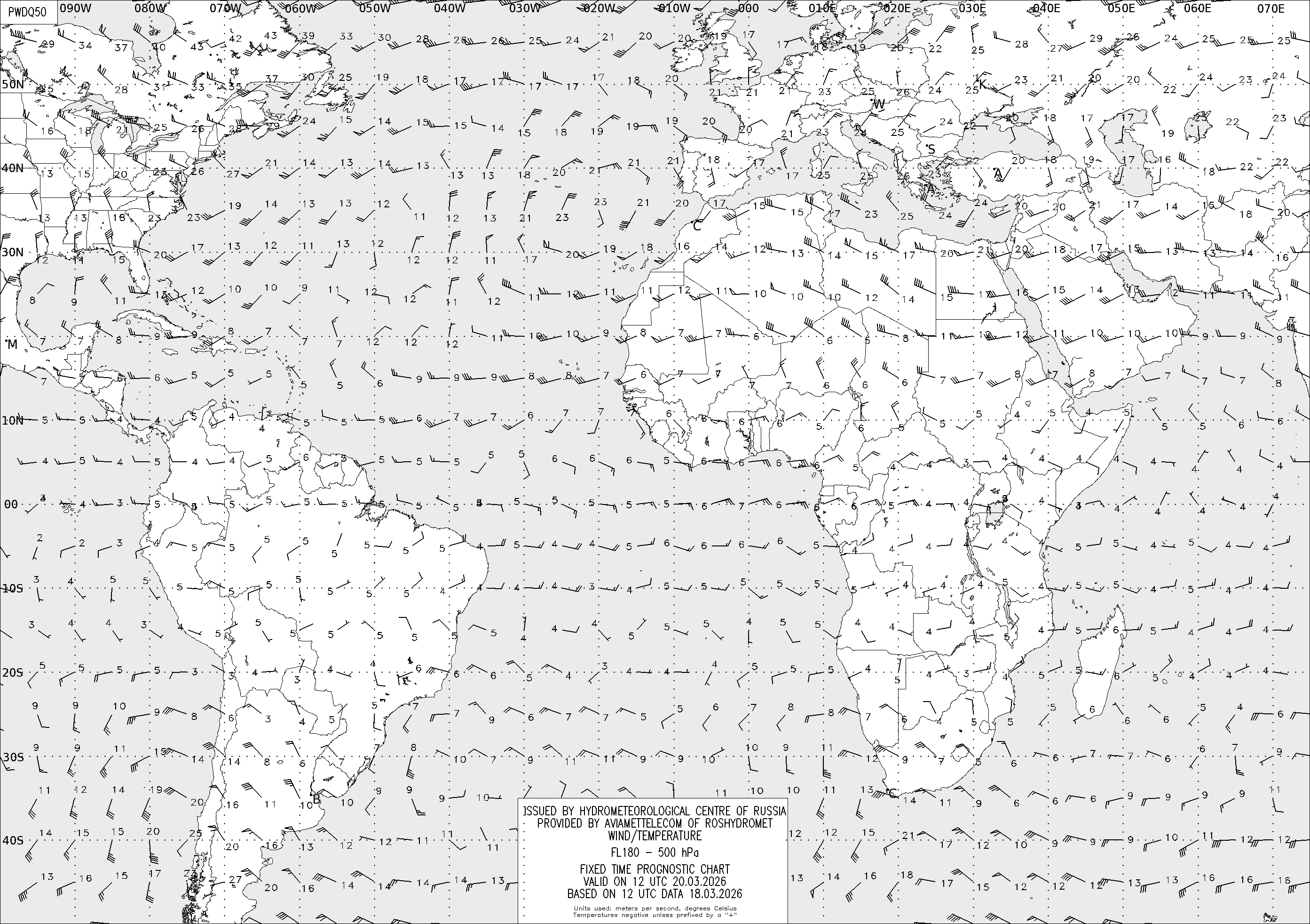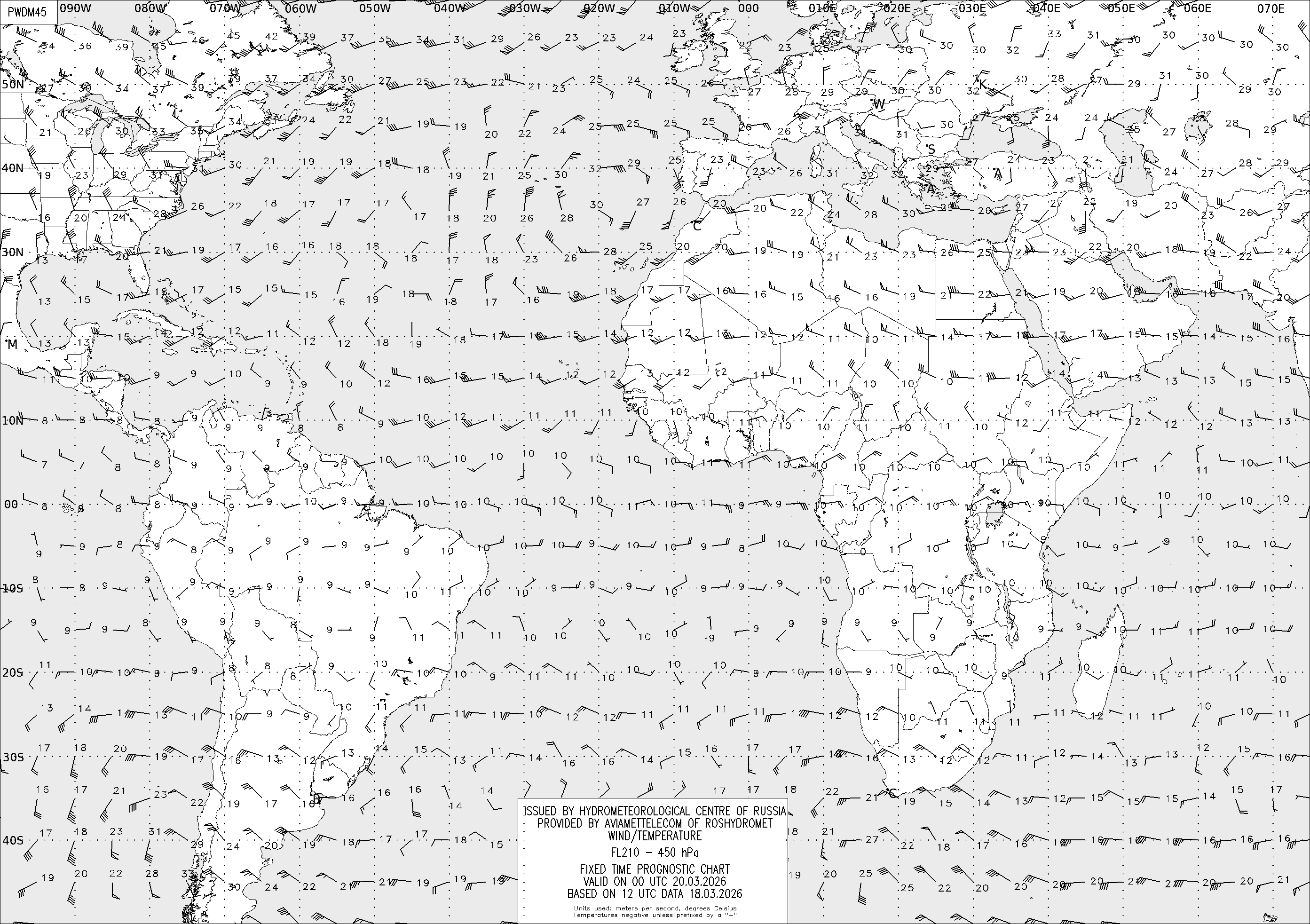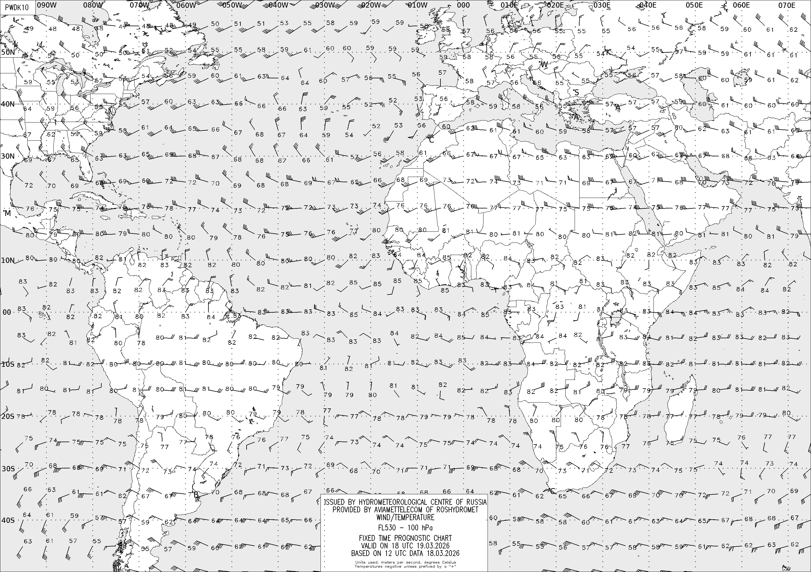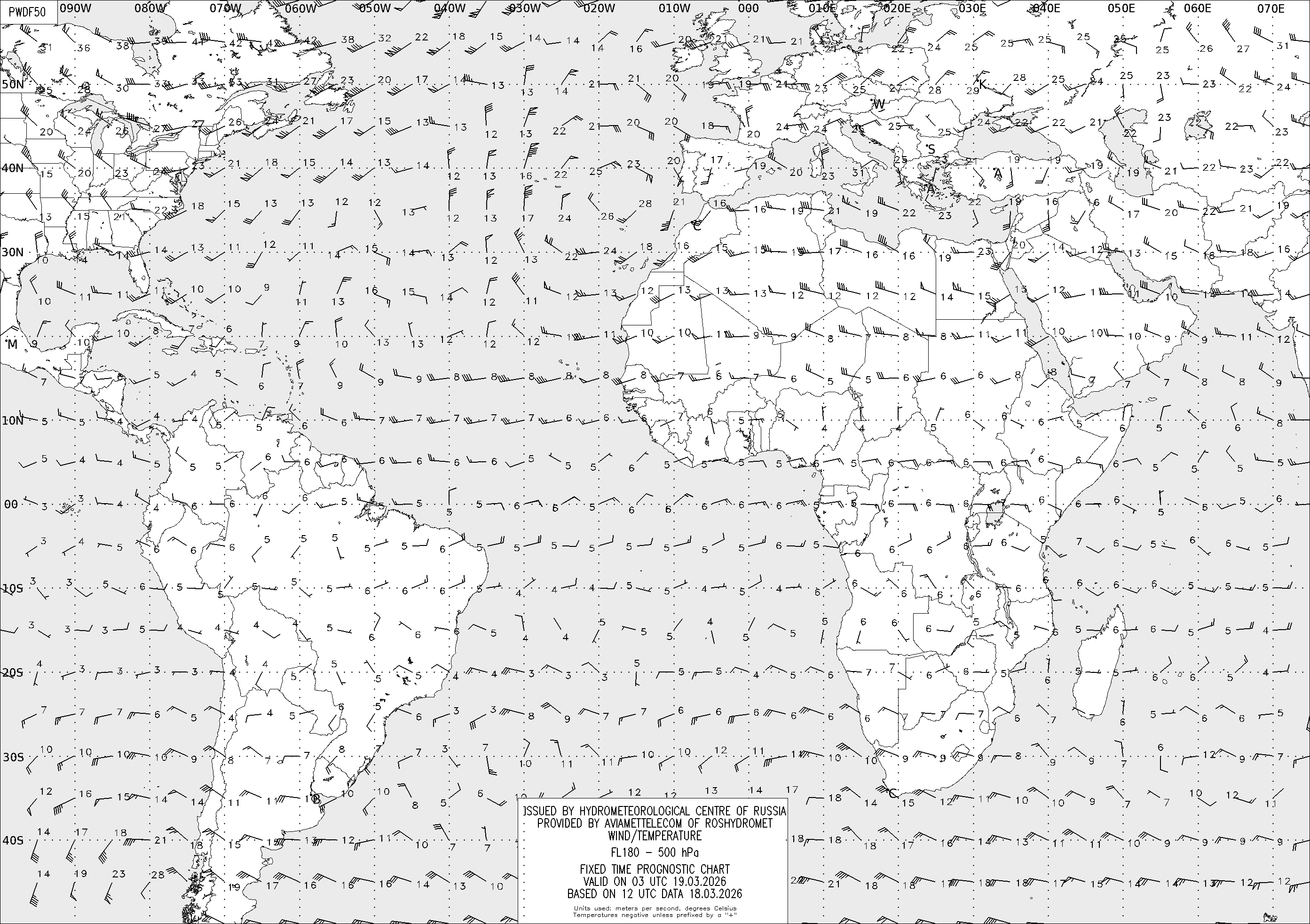 AREA D (Африка и Америка) по данным за 12 UTC 18.03.2026