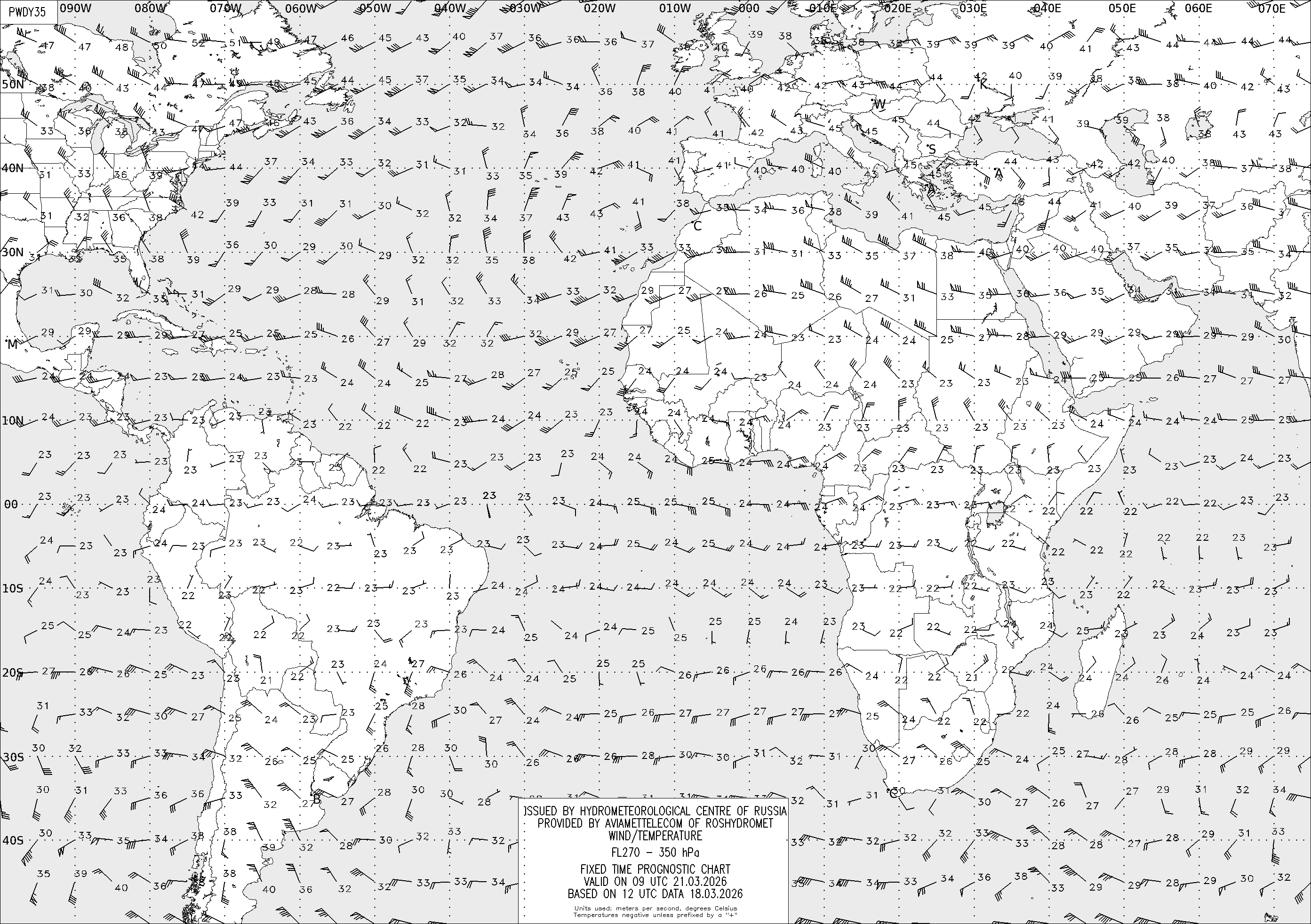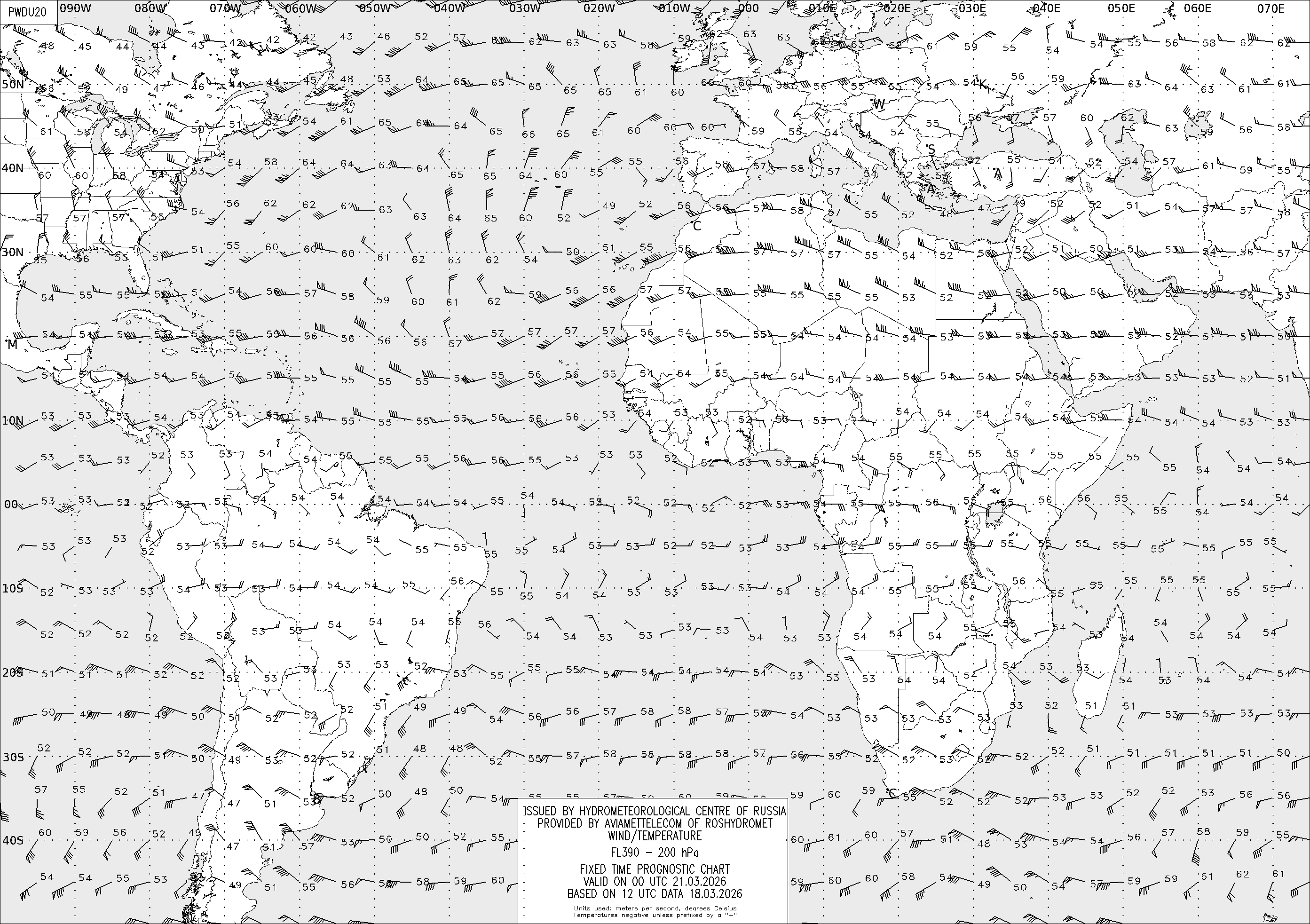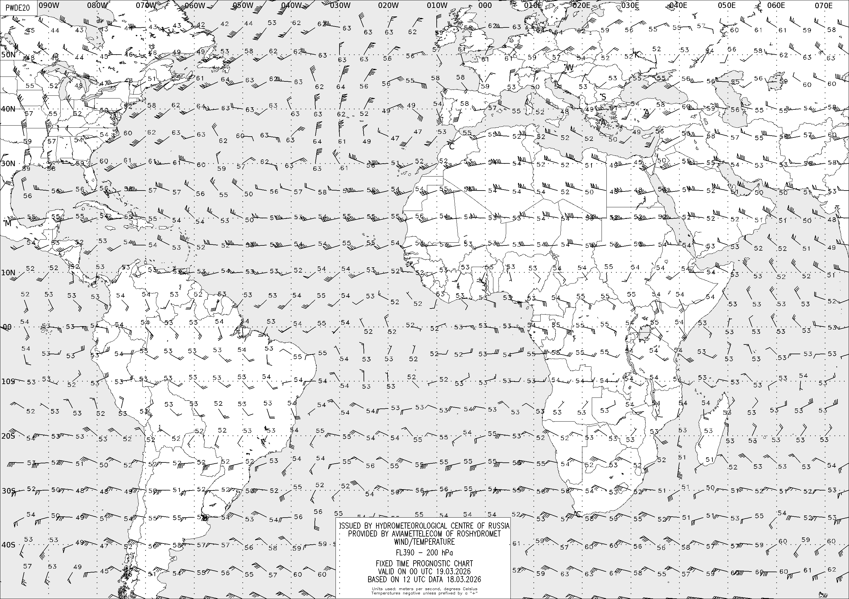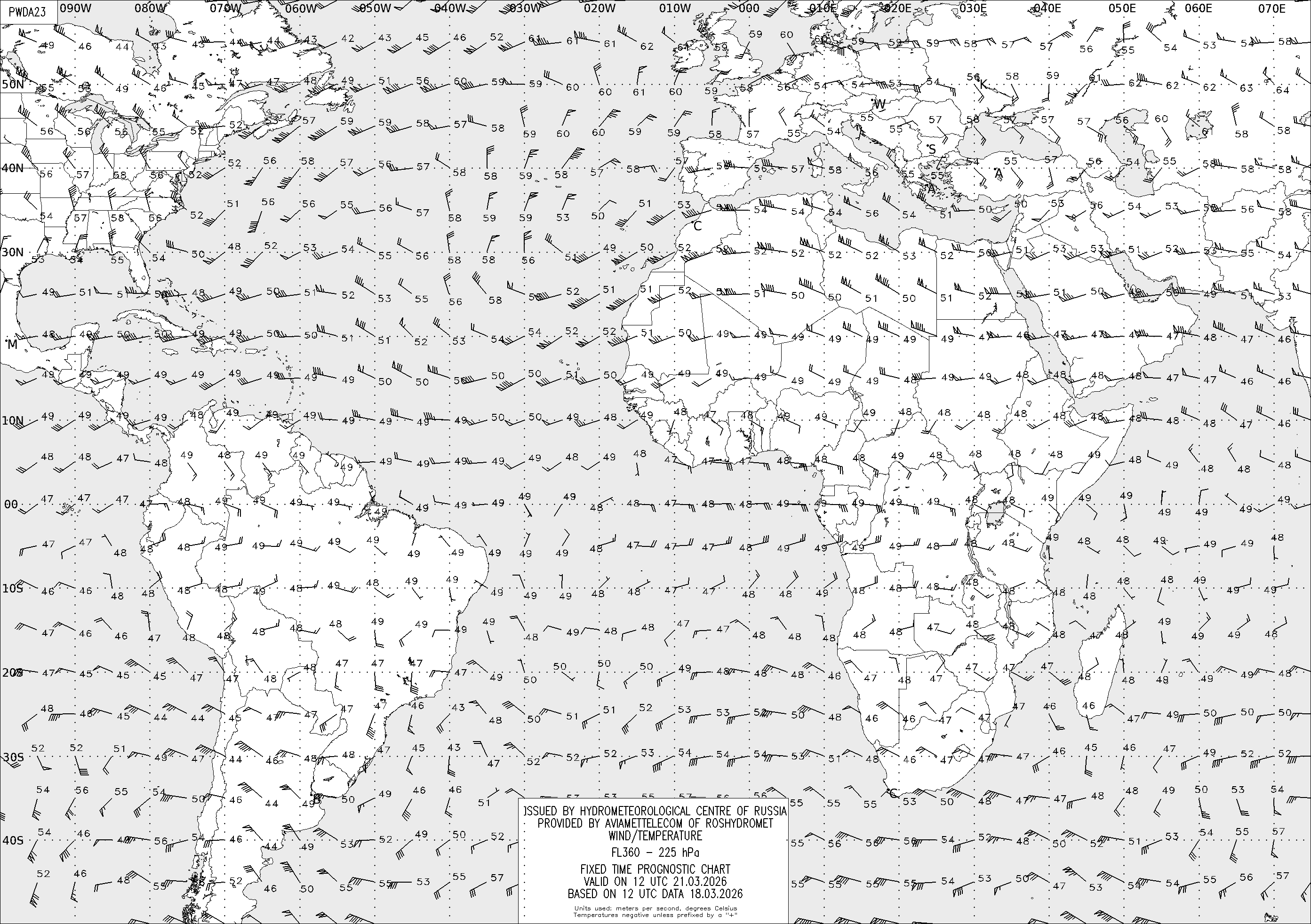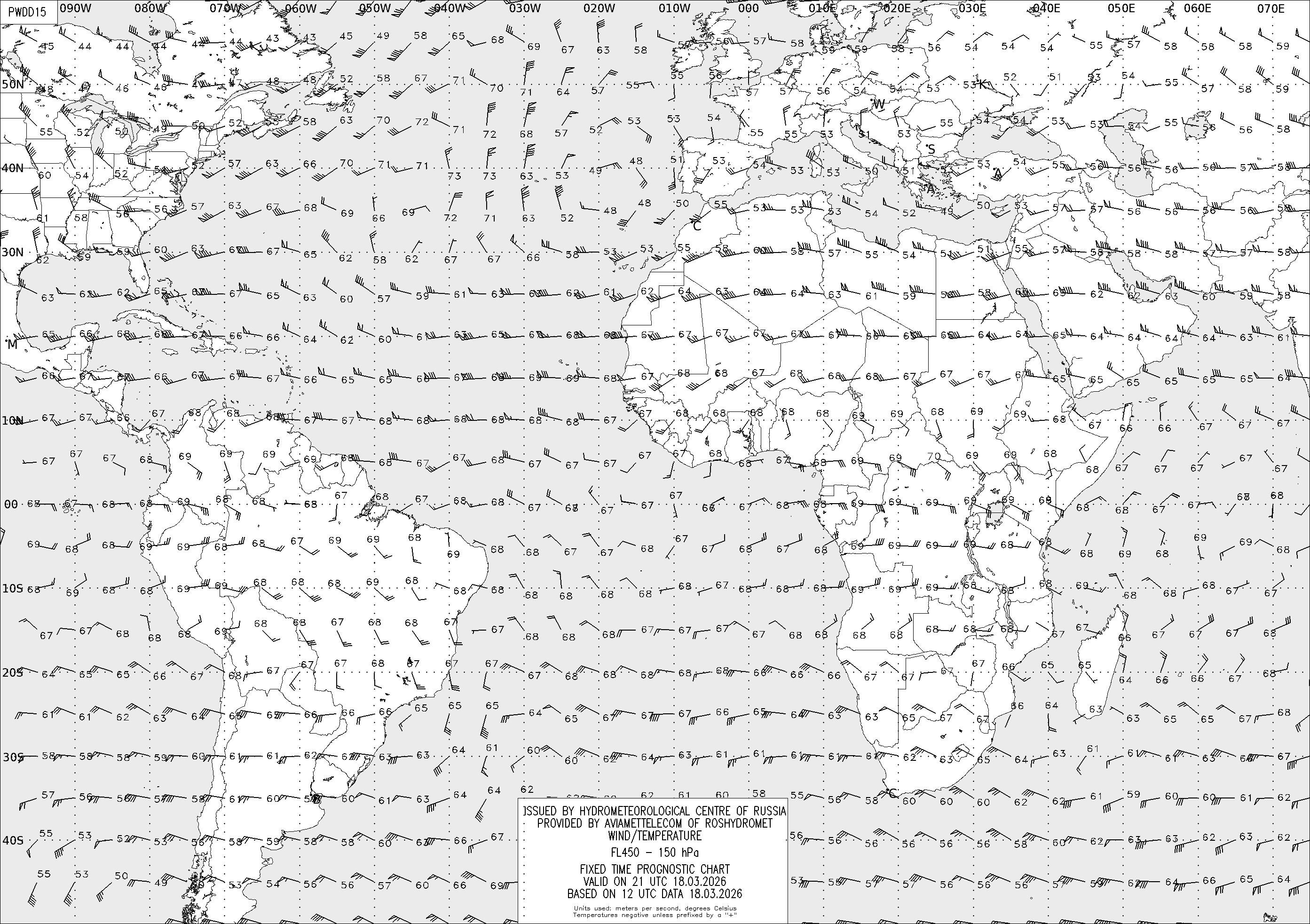 AREA D (Африка и Америка) по данным за 12 UTC 18.03.2026