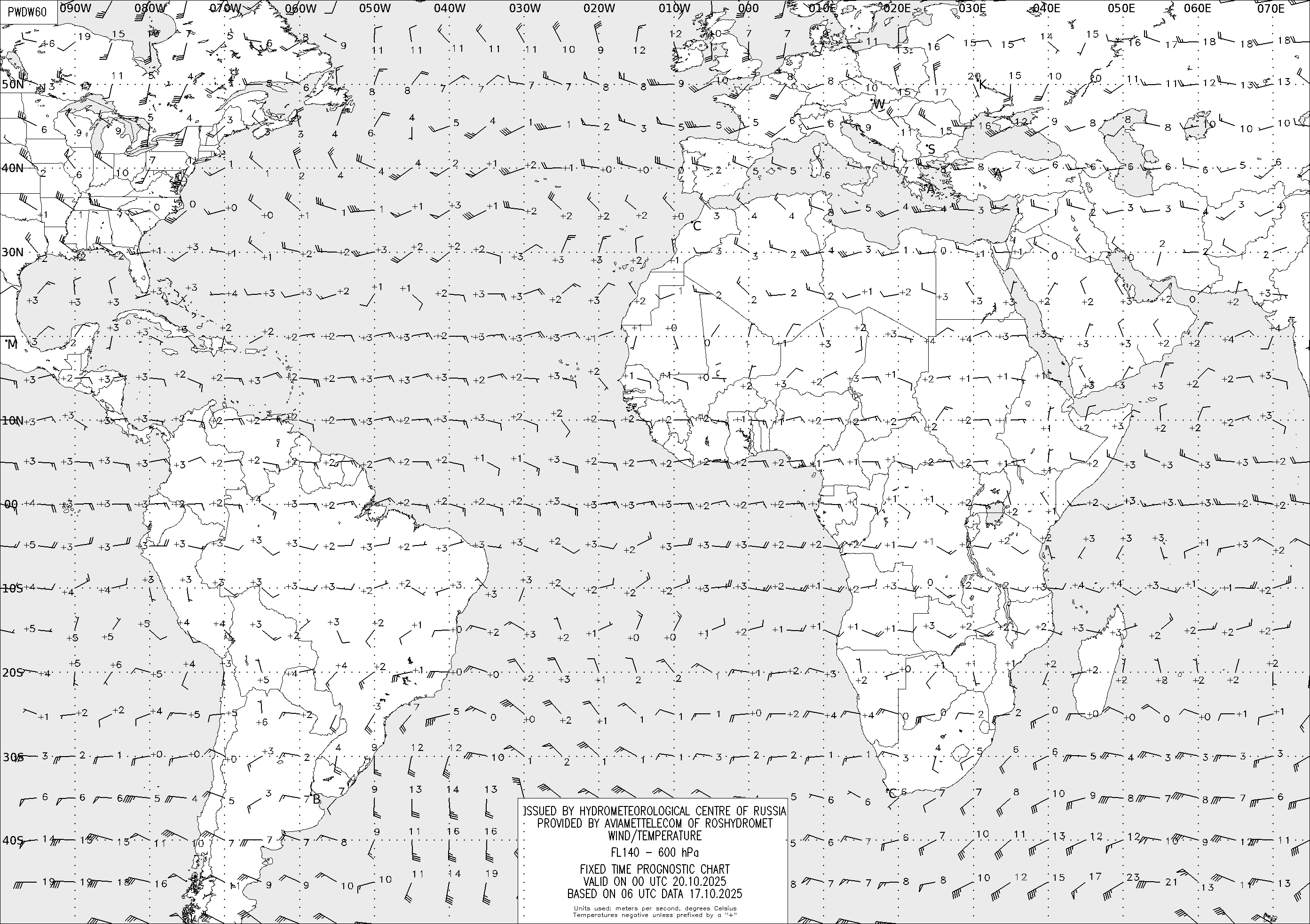 AREA D (Африка и Америка) по данным за 06 UTC 17.10.2025