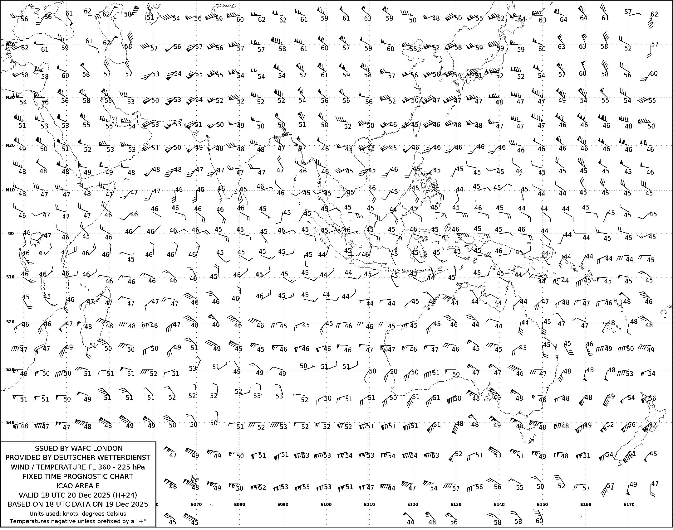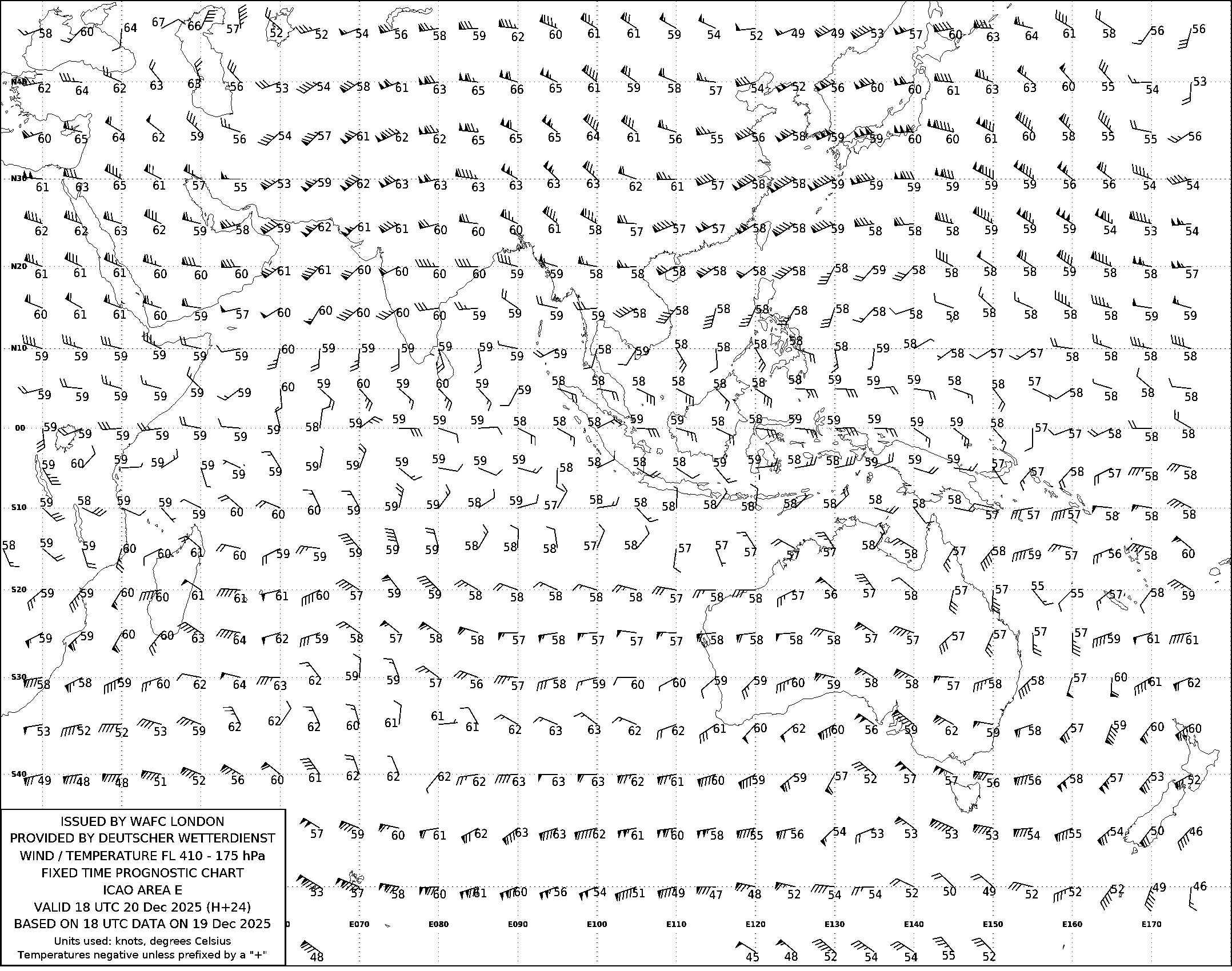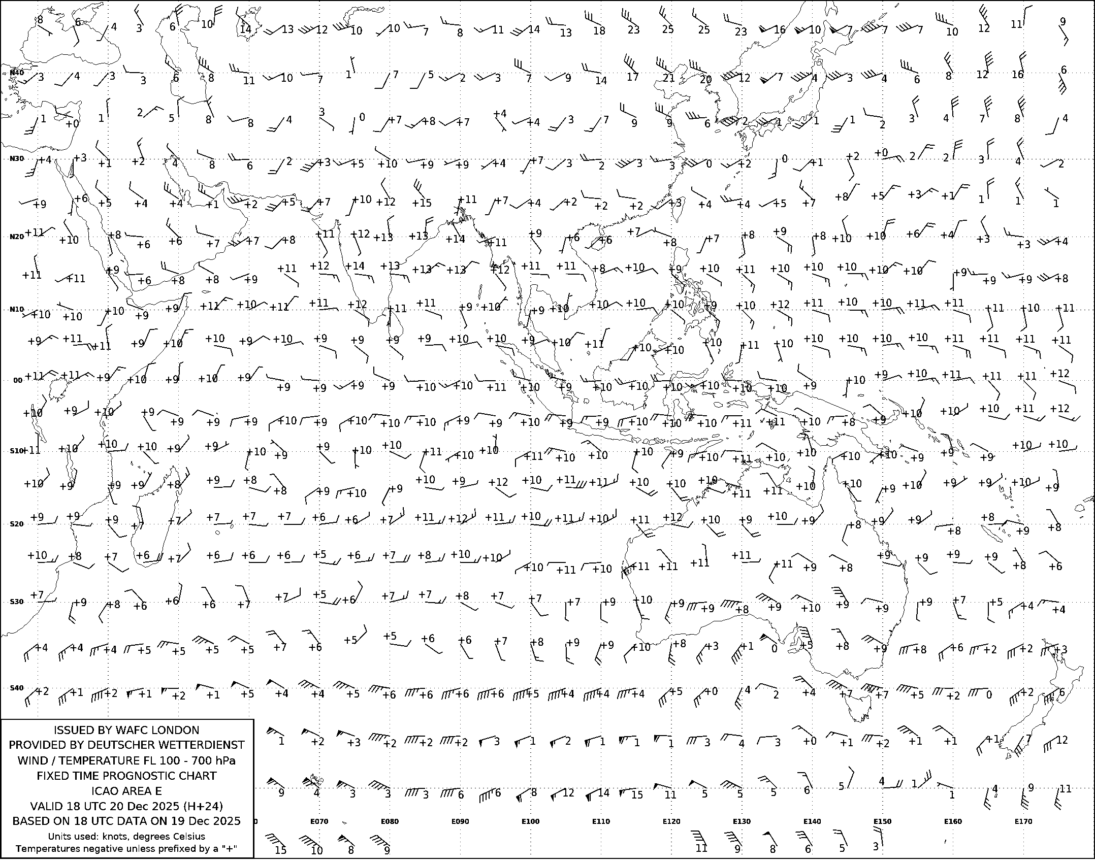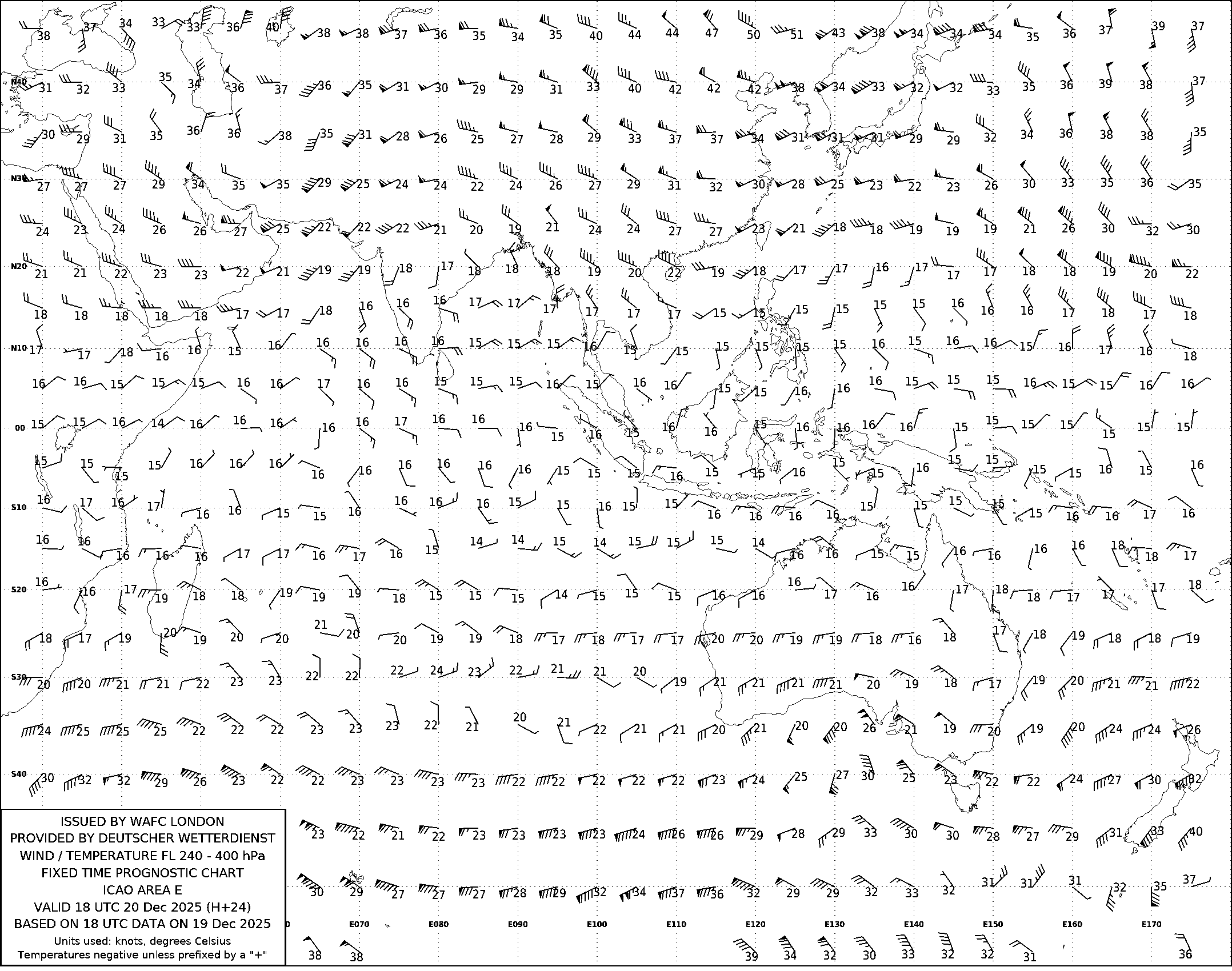 AREA E (Азия, Австралия и Индийский океан) по данным за 18 UTC 19.12.2025
